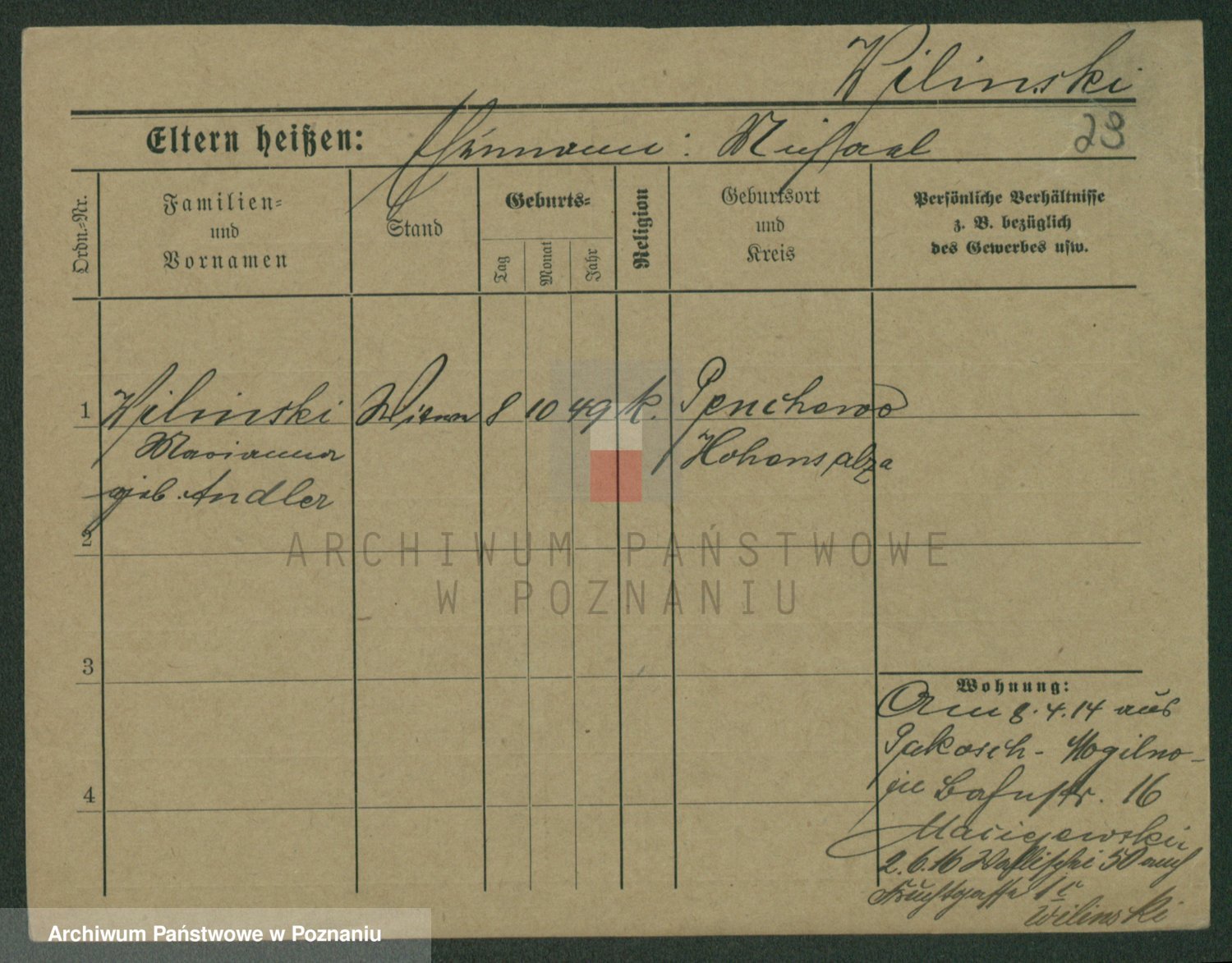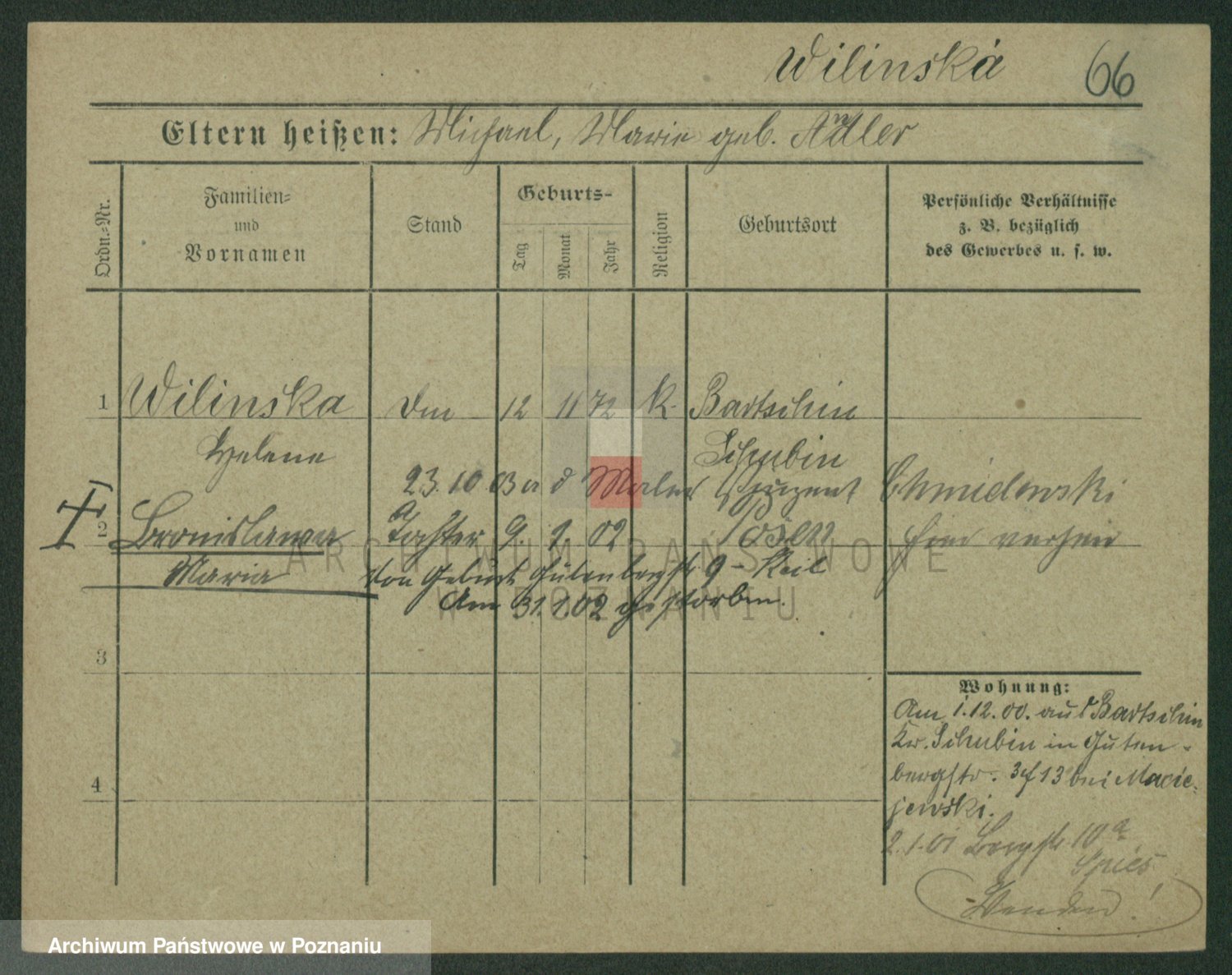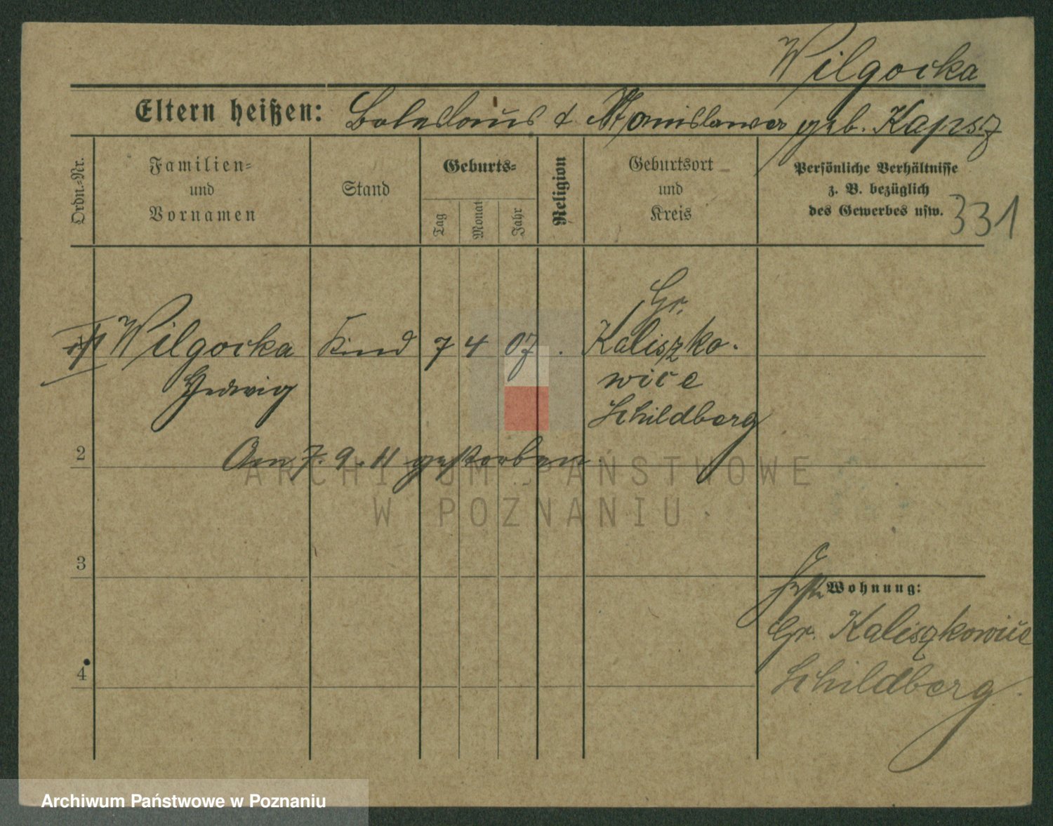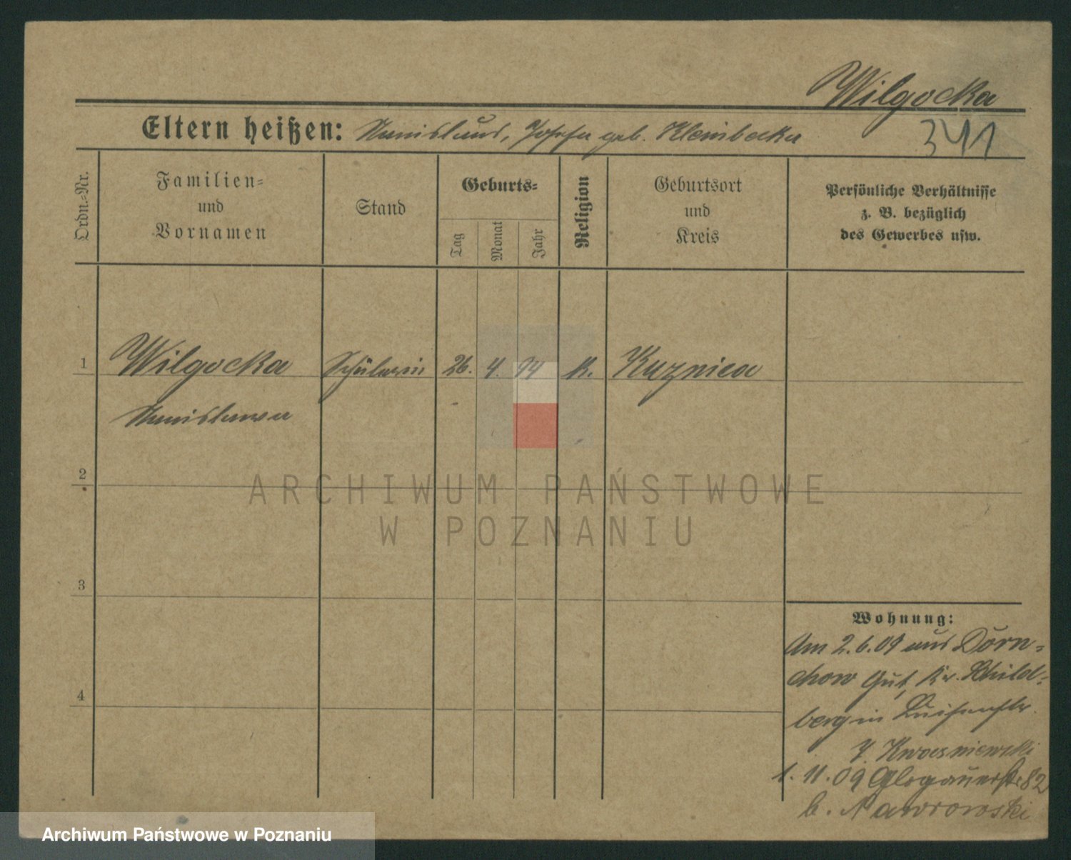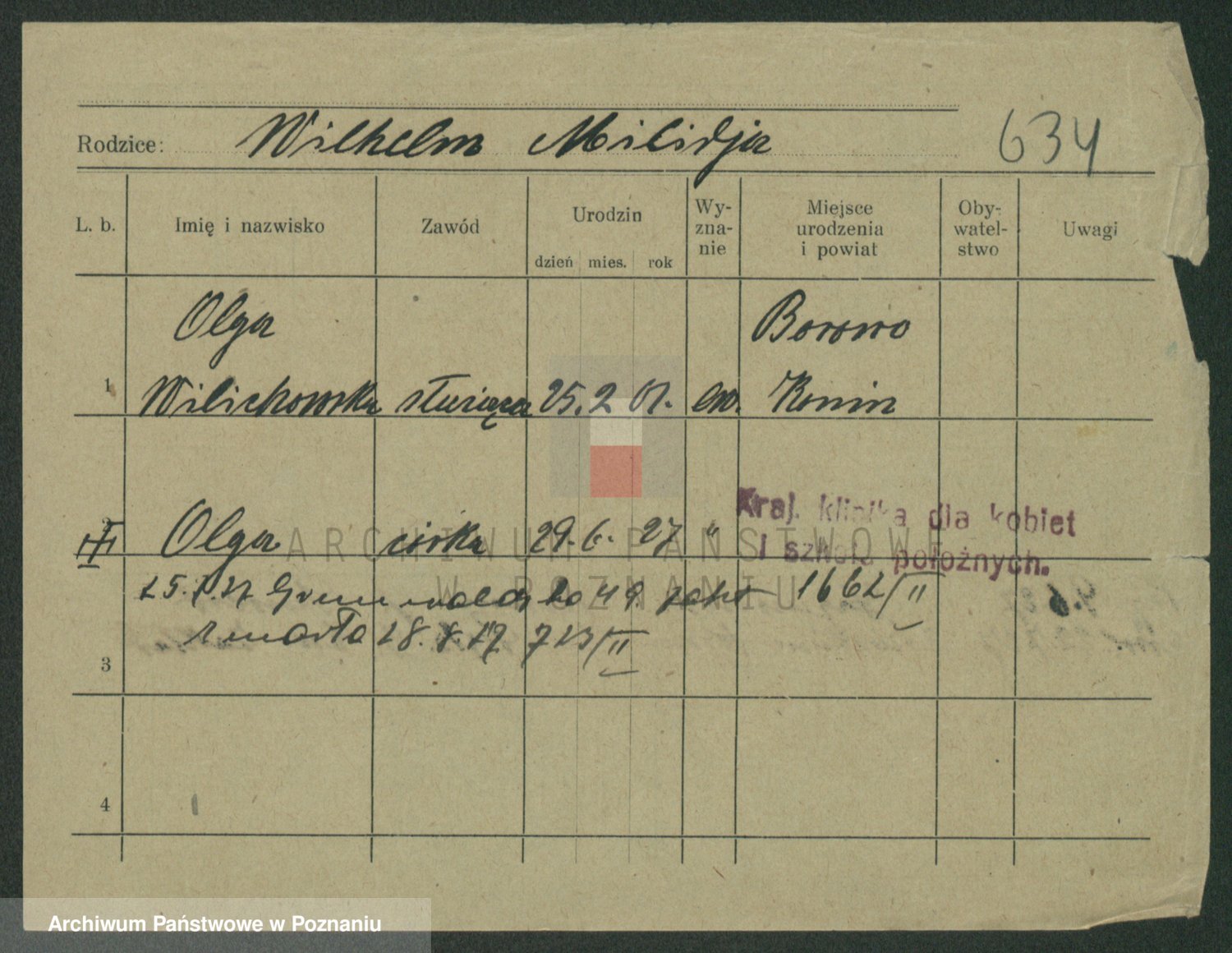 Wilinska zd. Klein, Wilgomina (!)