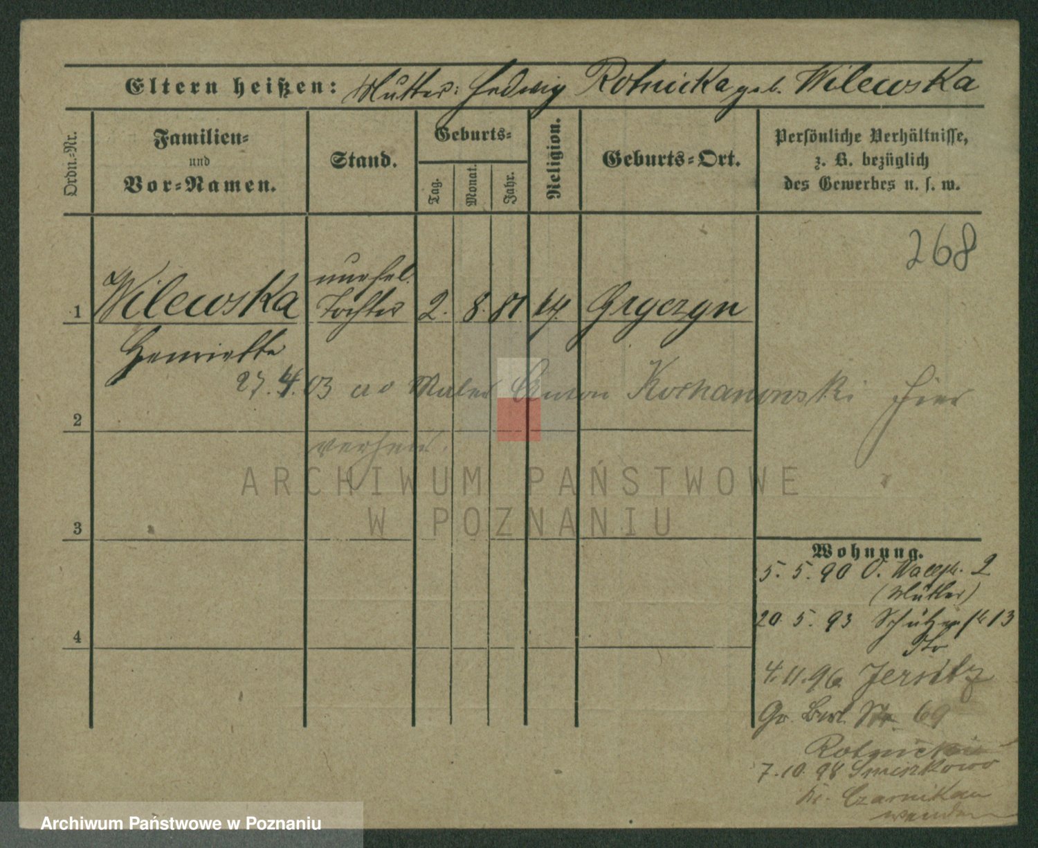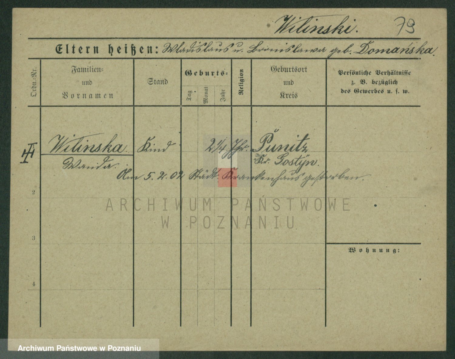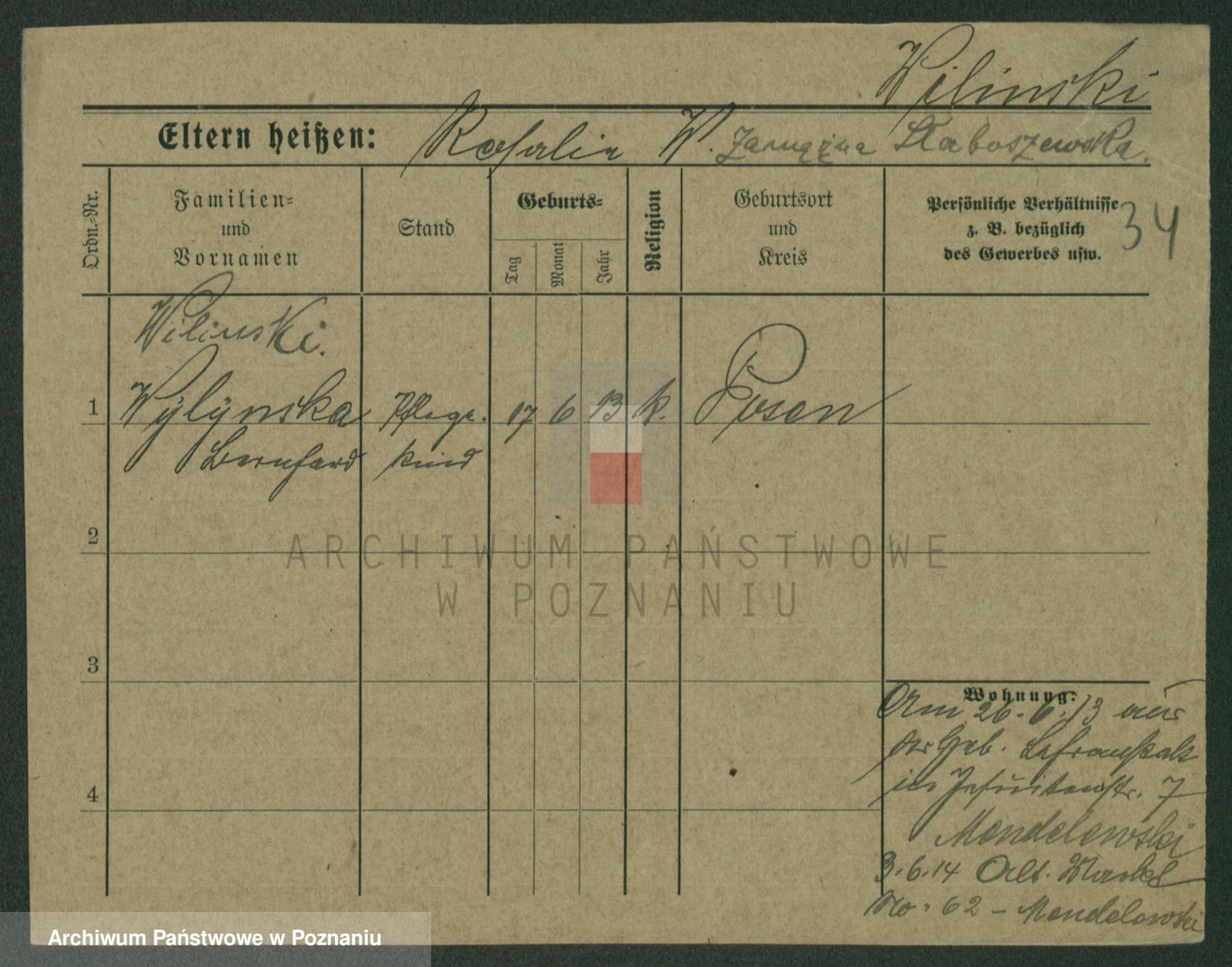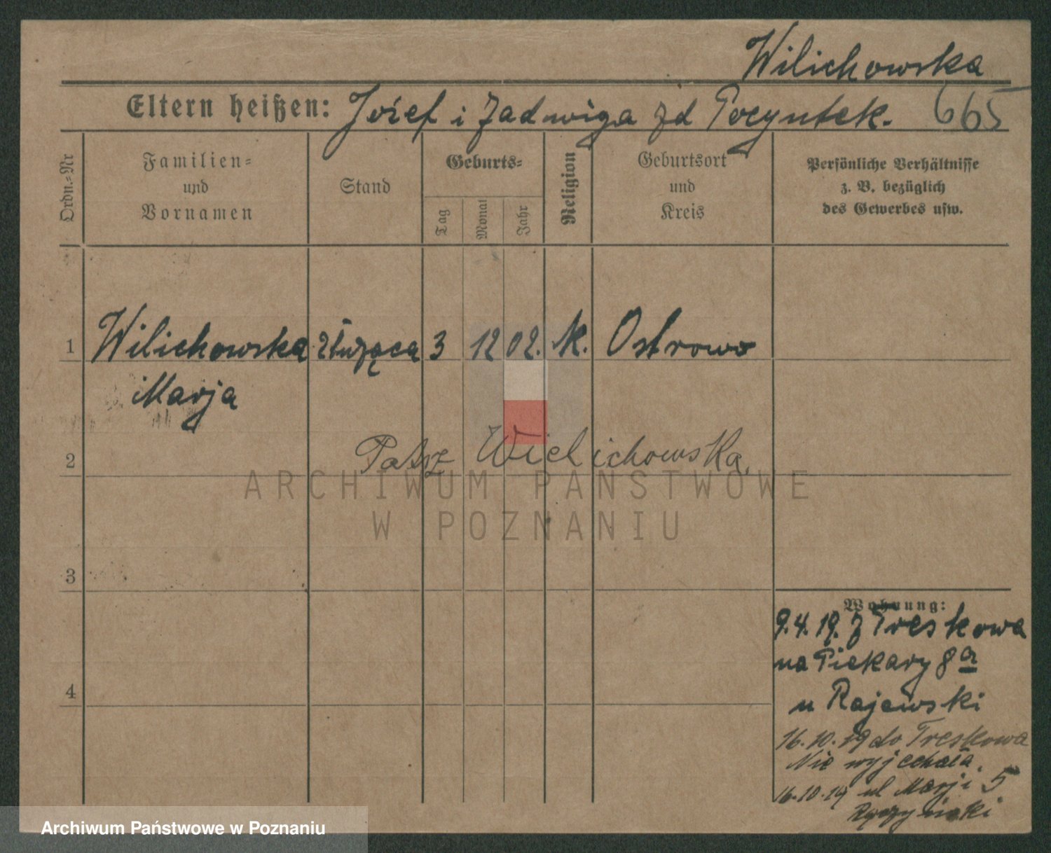 Wilinska zd. Klein, Wilgomina (!)