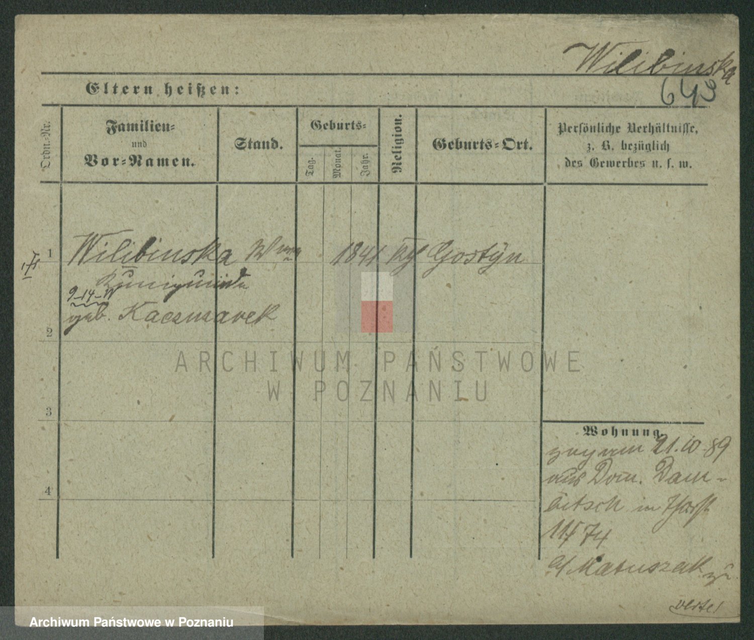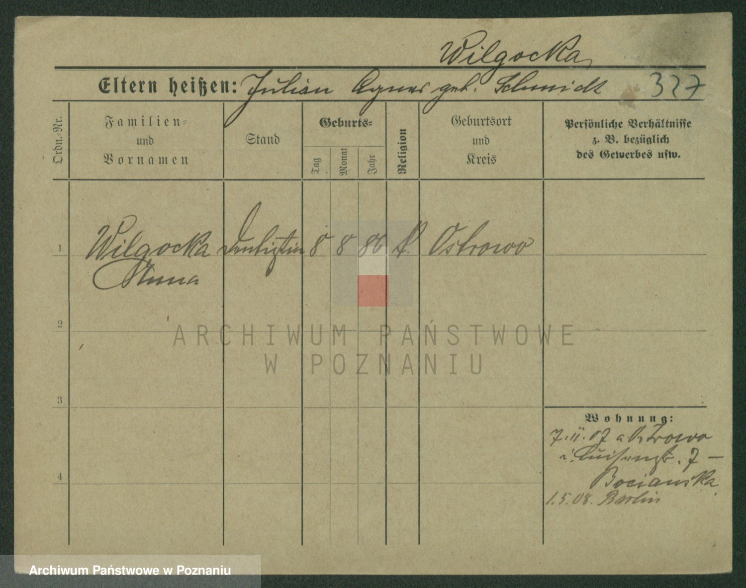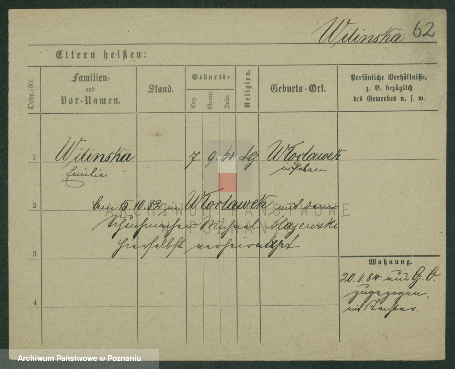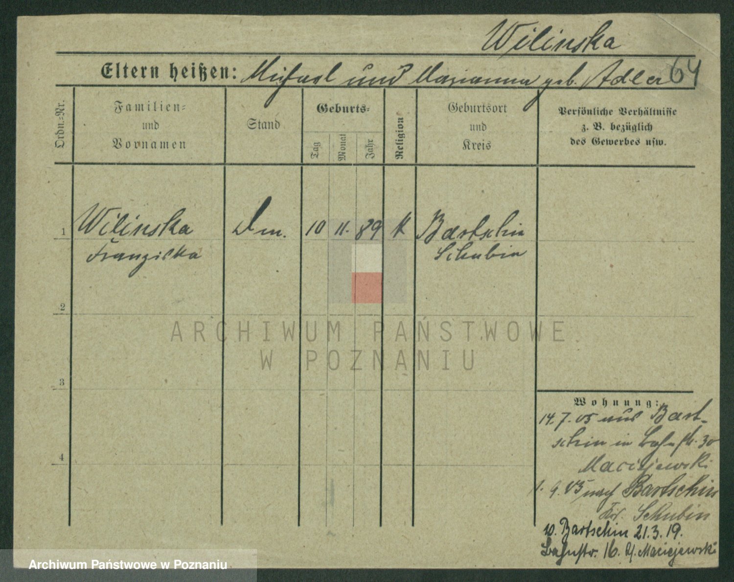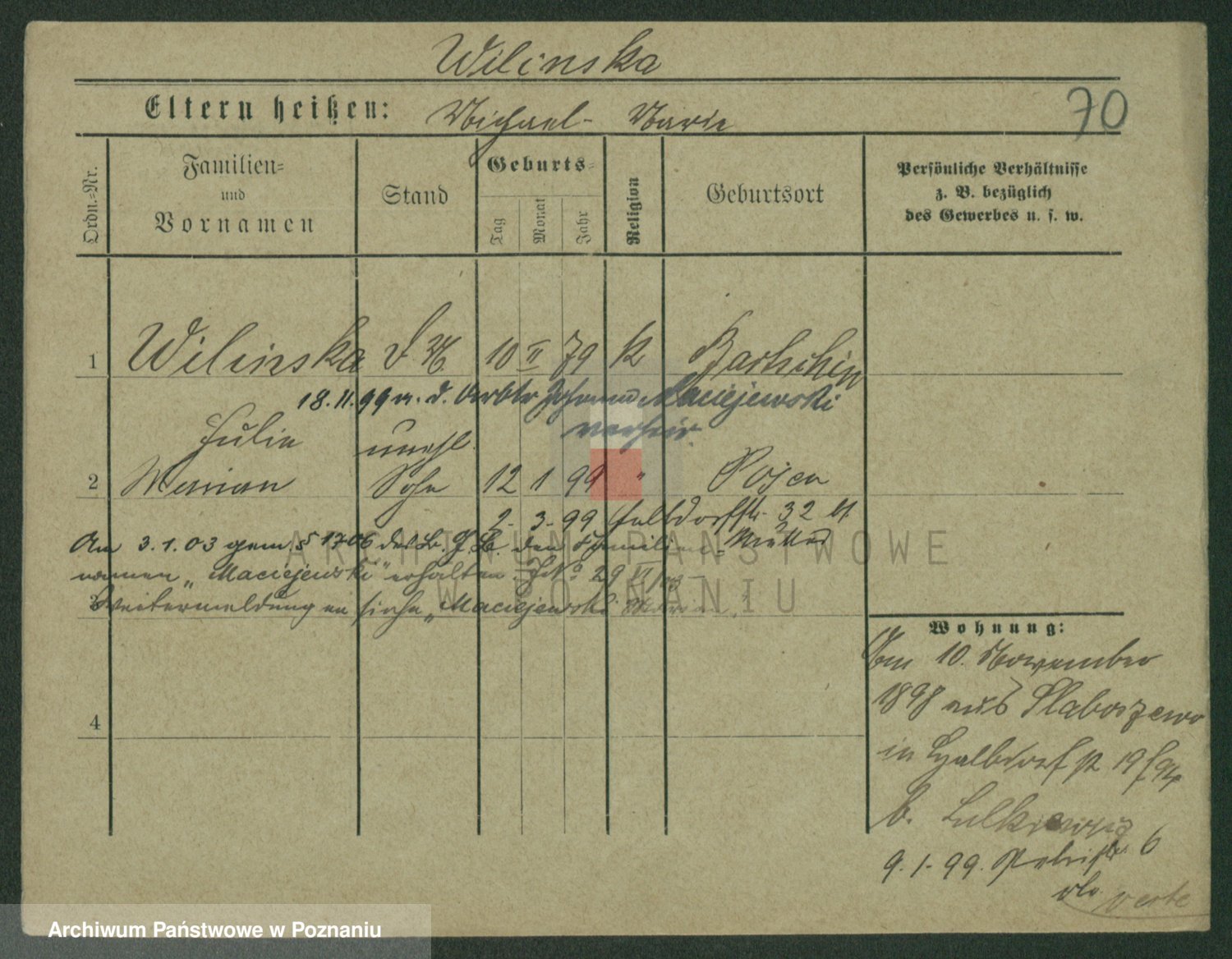 Wilinska zd. Klein, Wilgomina (!)