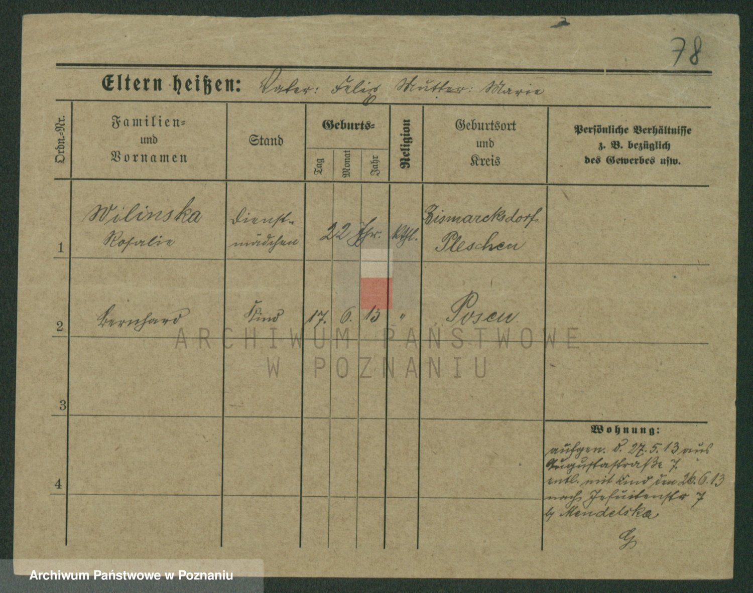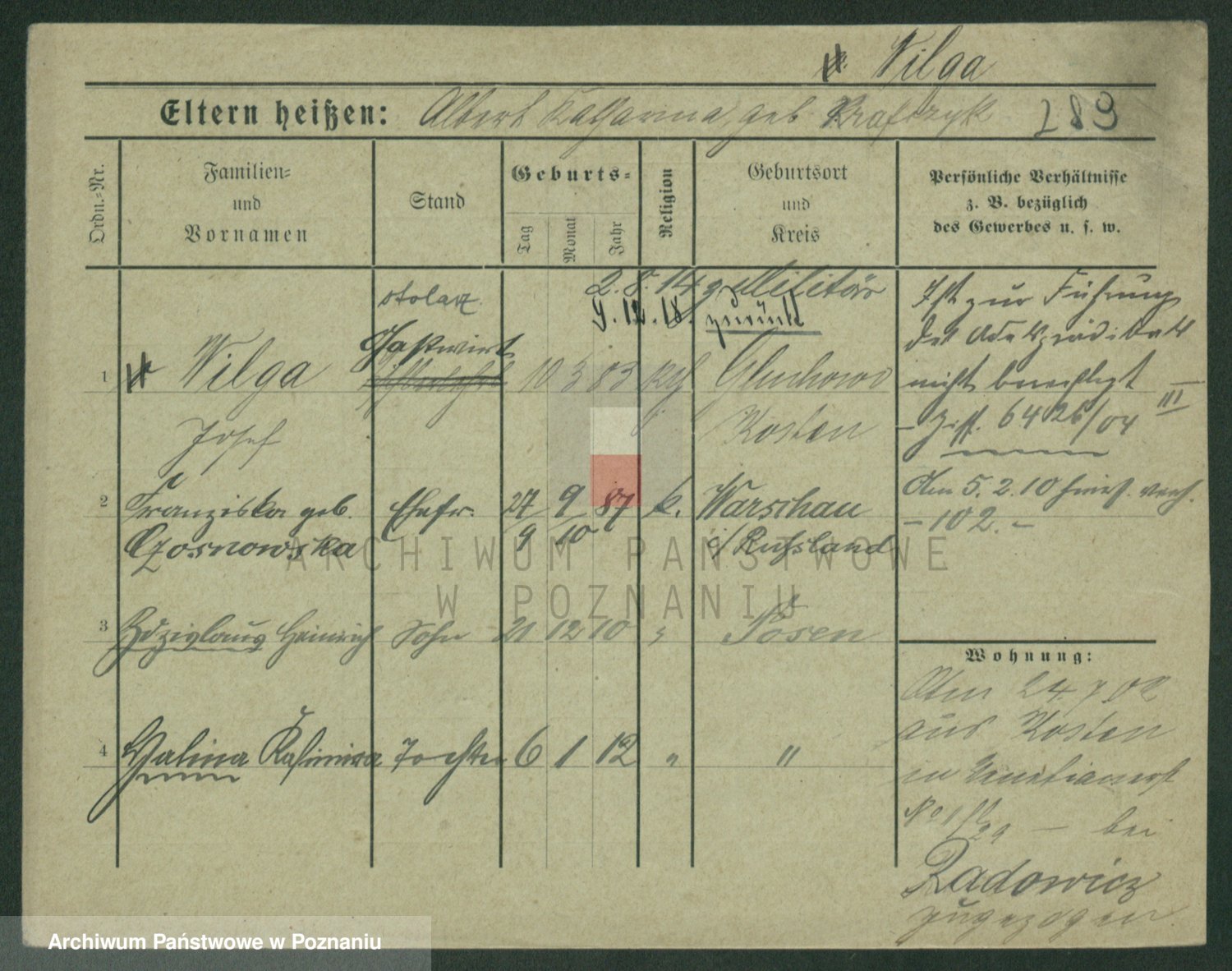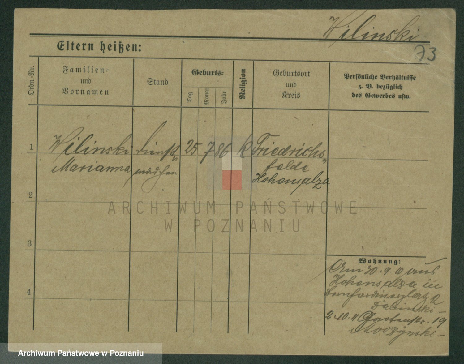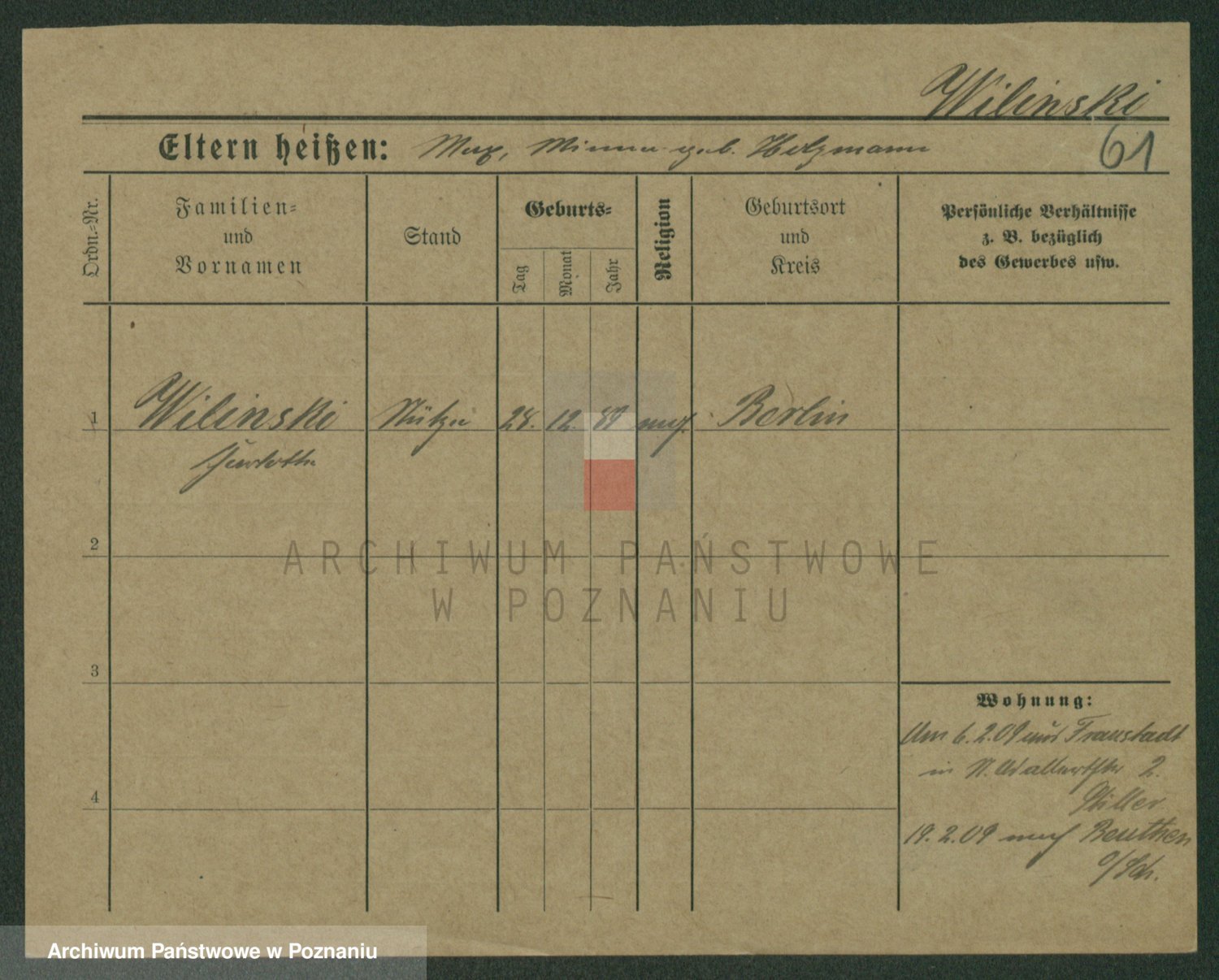 Wilinska zd. Klein, Wilgomina (!)
