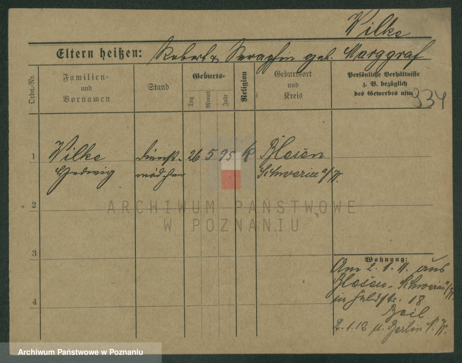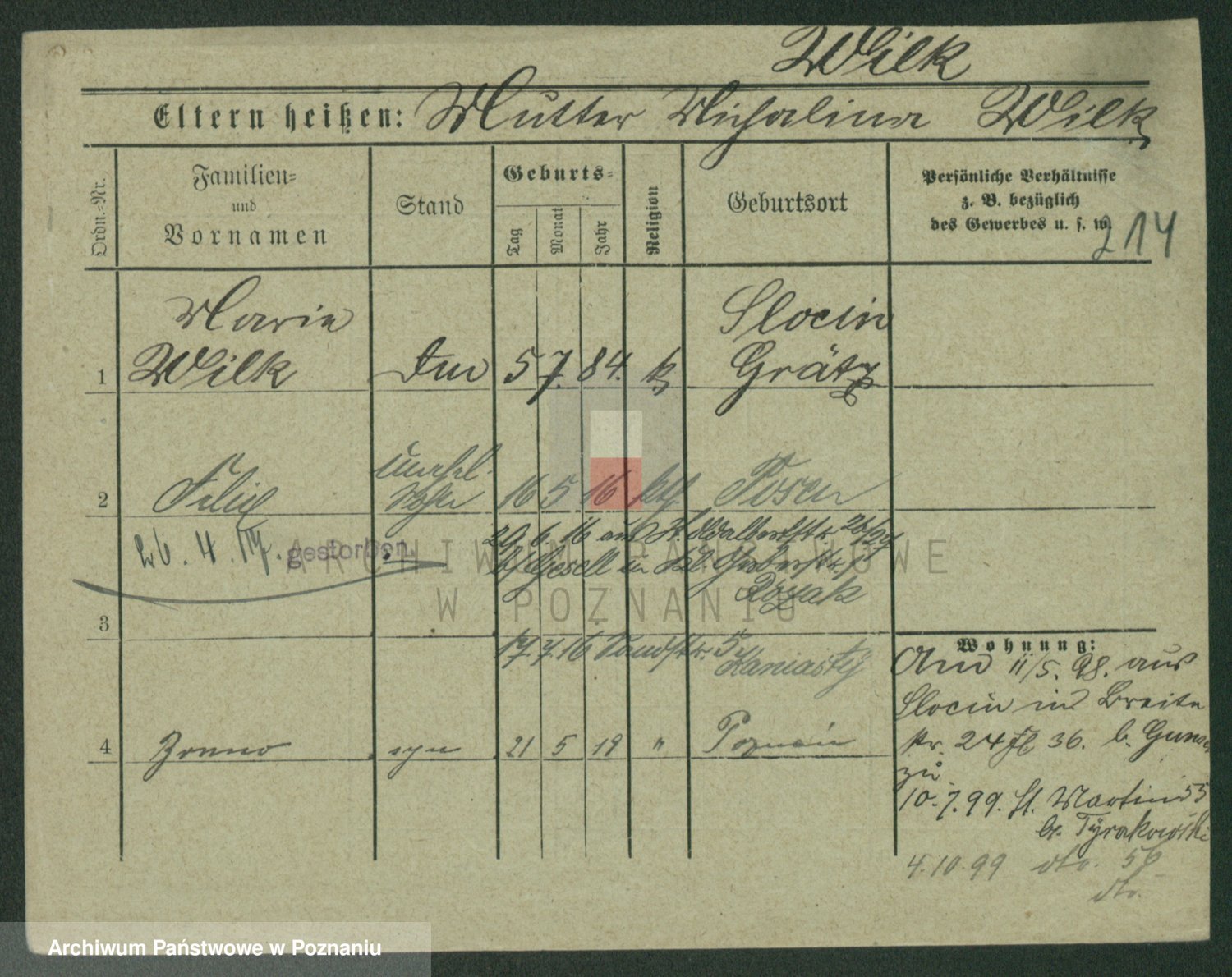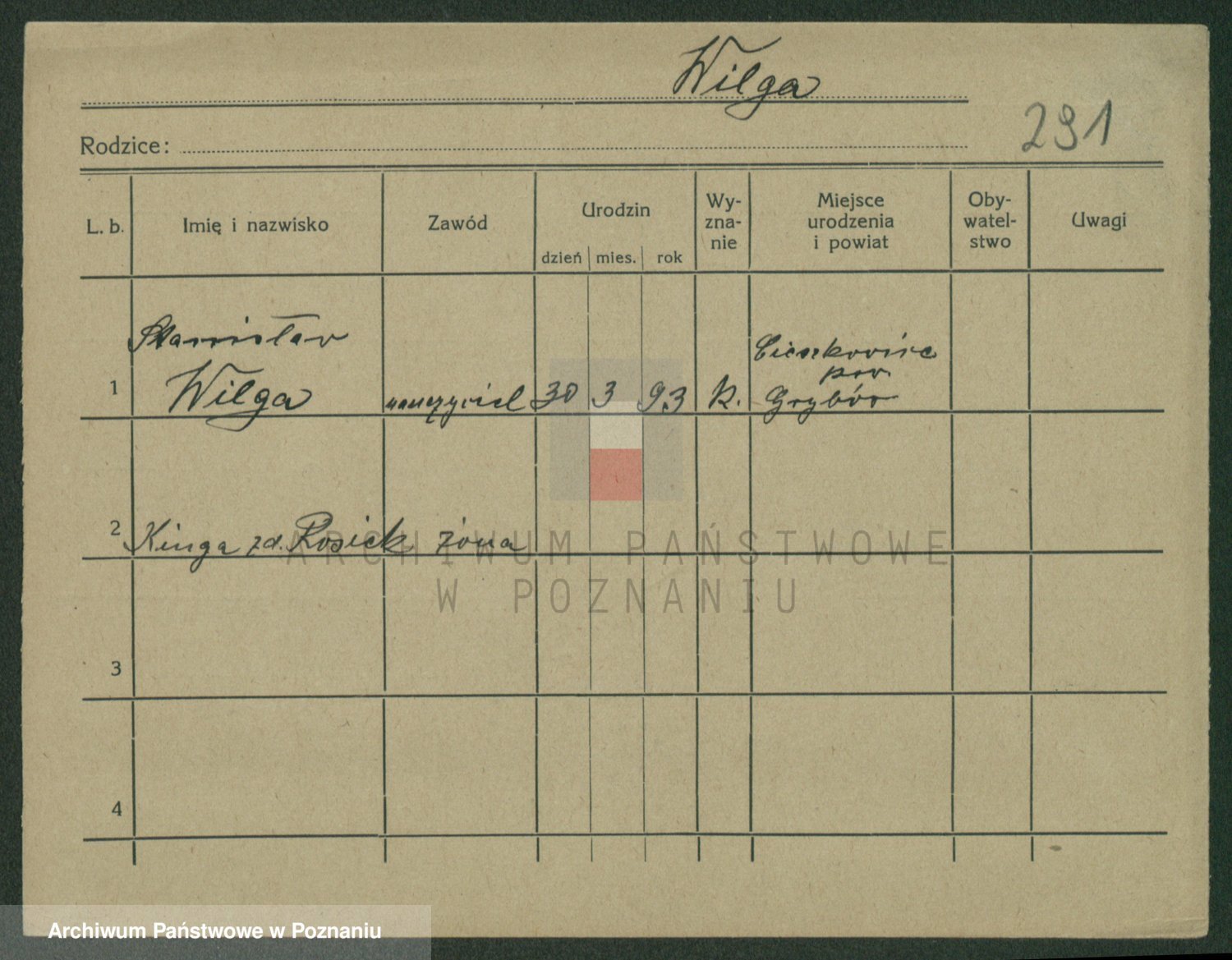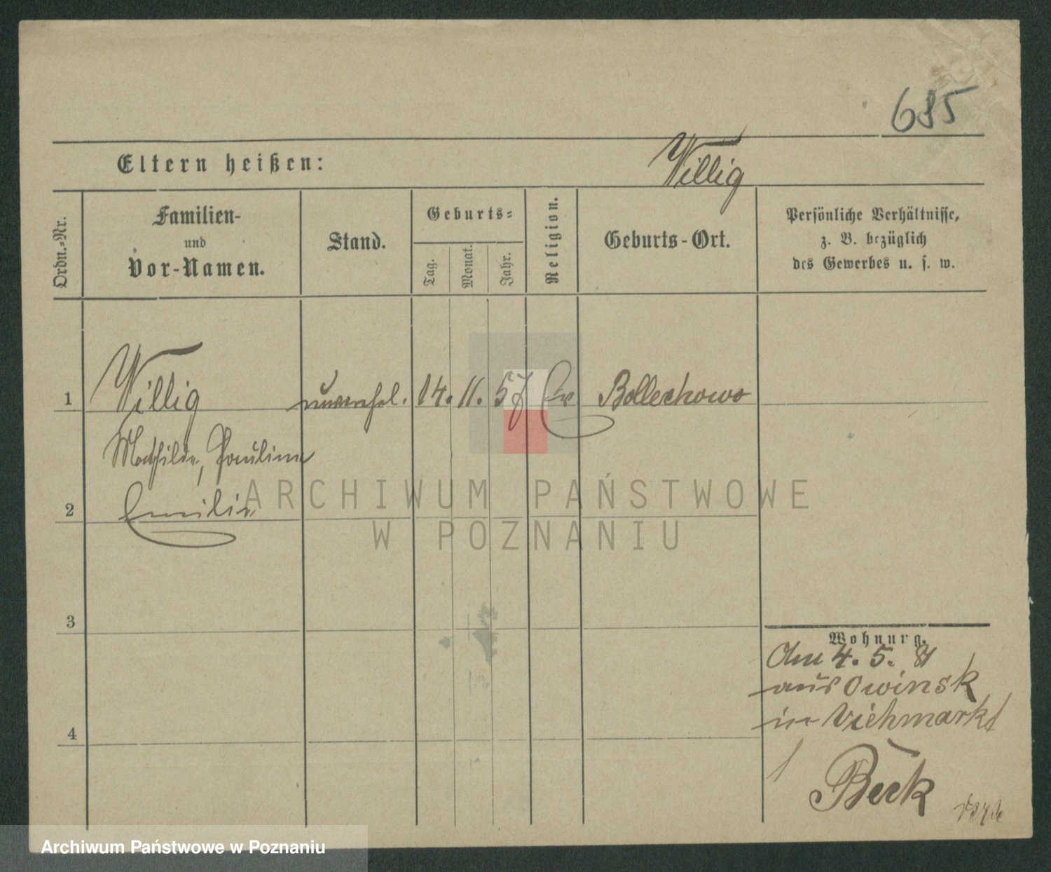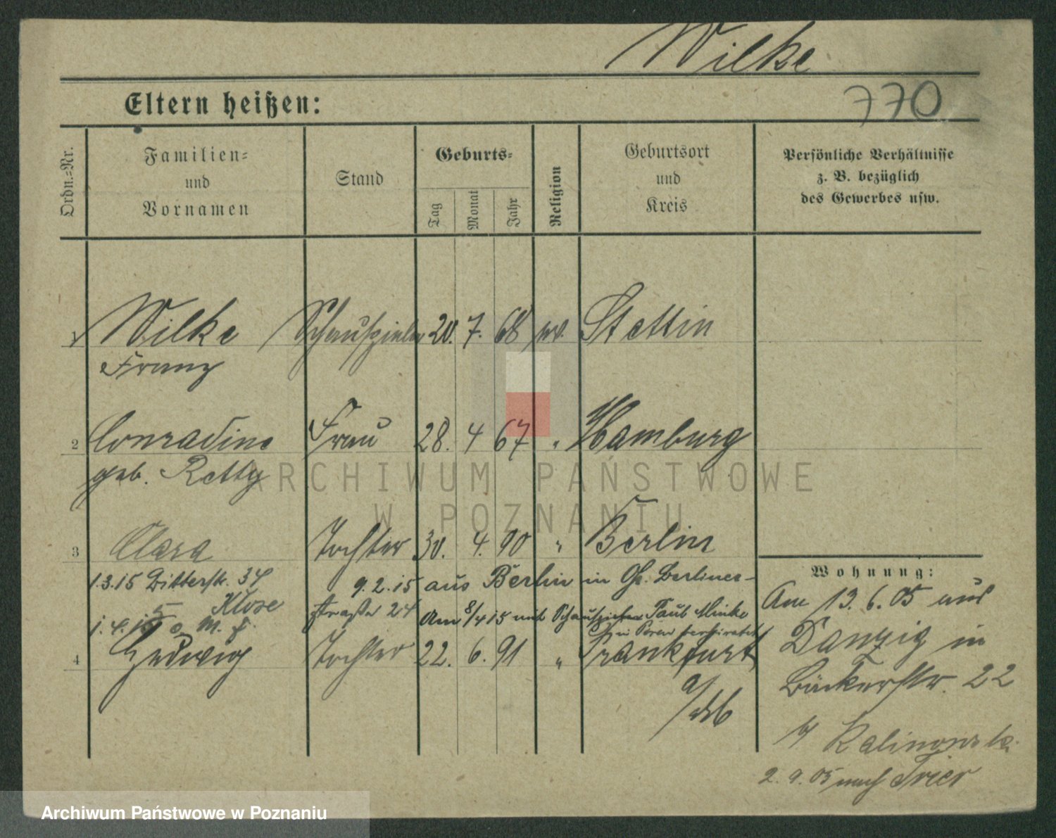 Wilinska zd. Klein, Wilgomina (!)