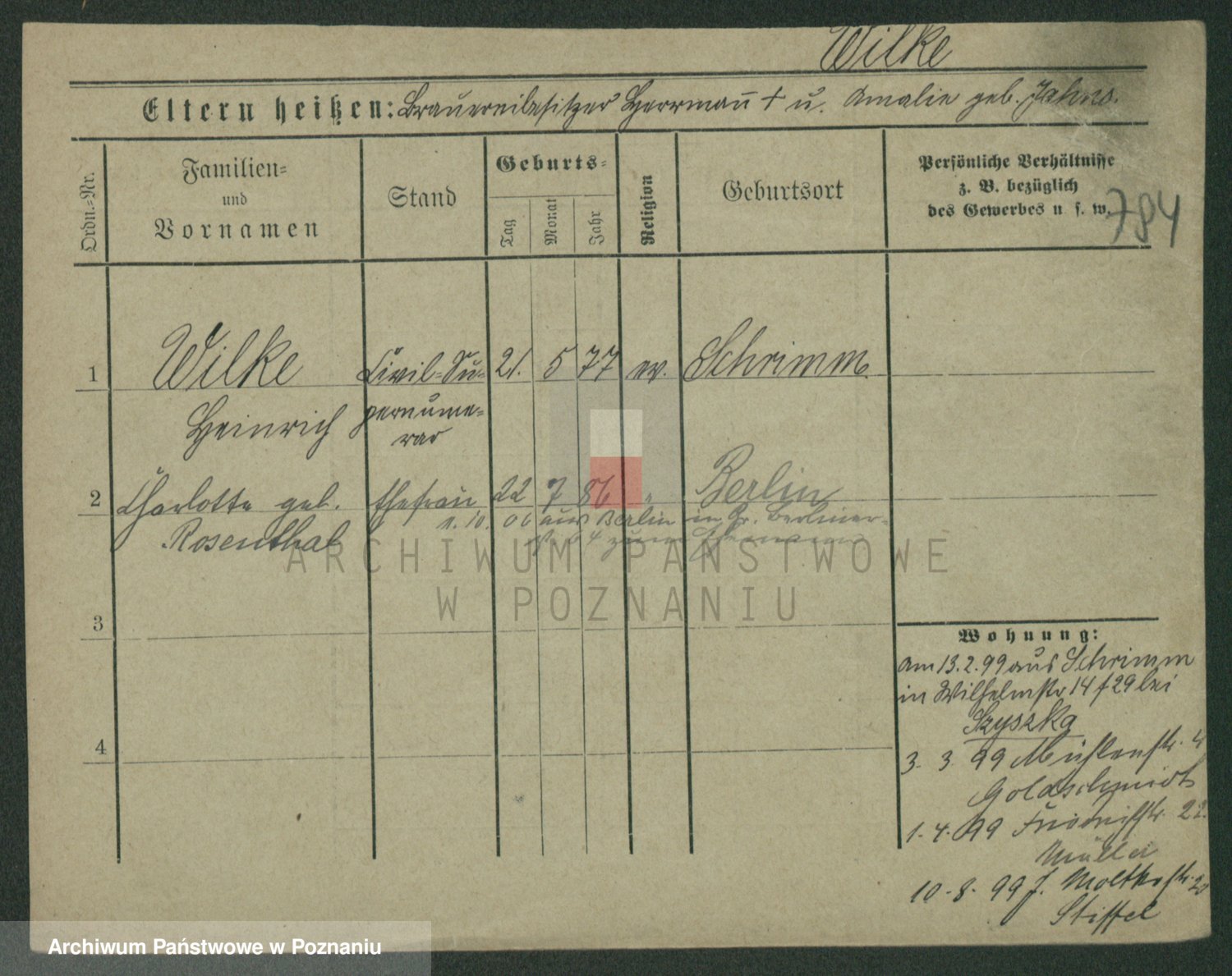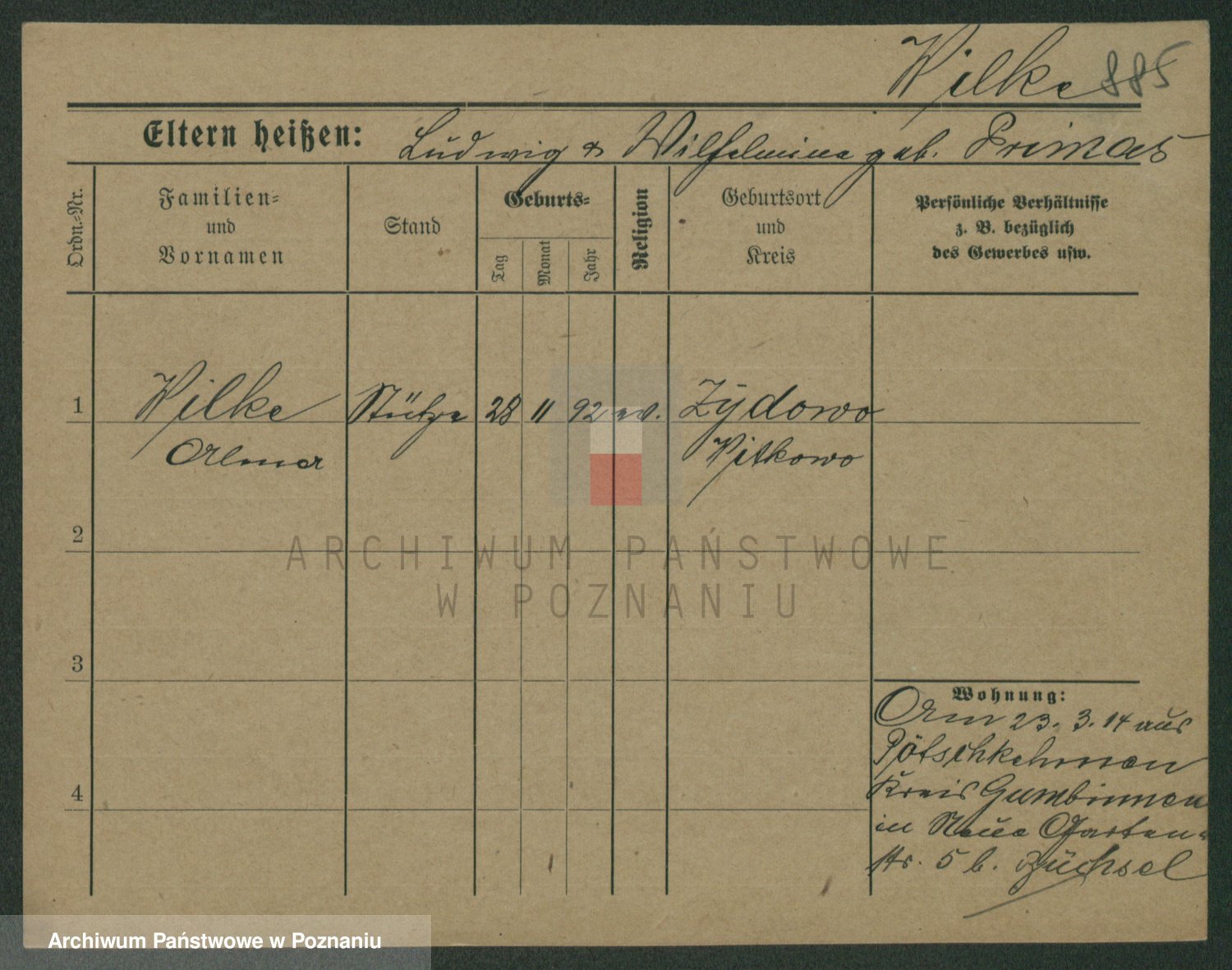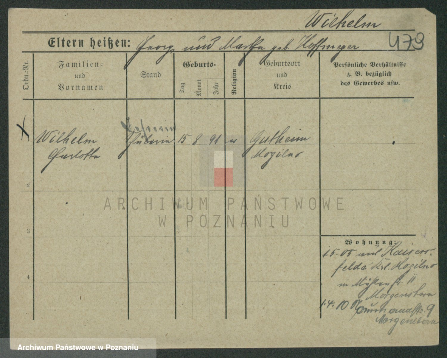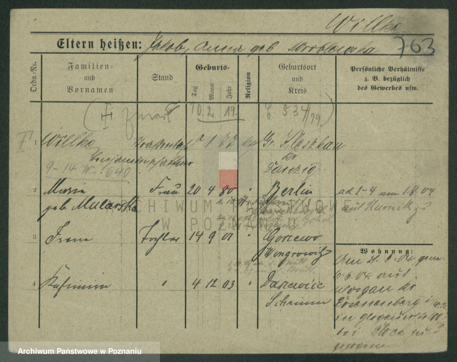 Wilinska zd. Klein, Wilgomina (!)