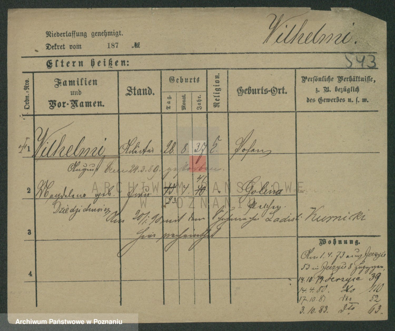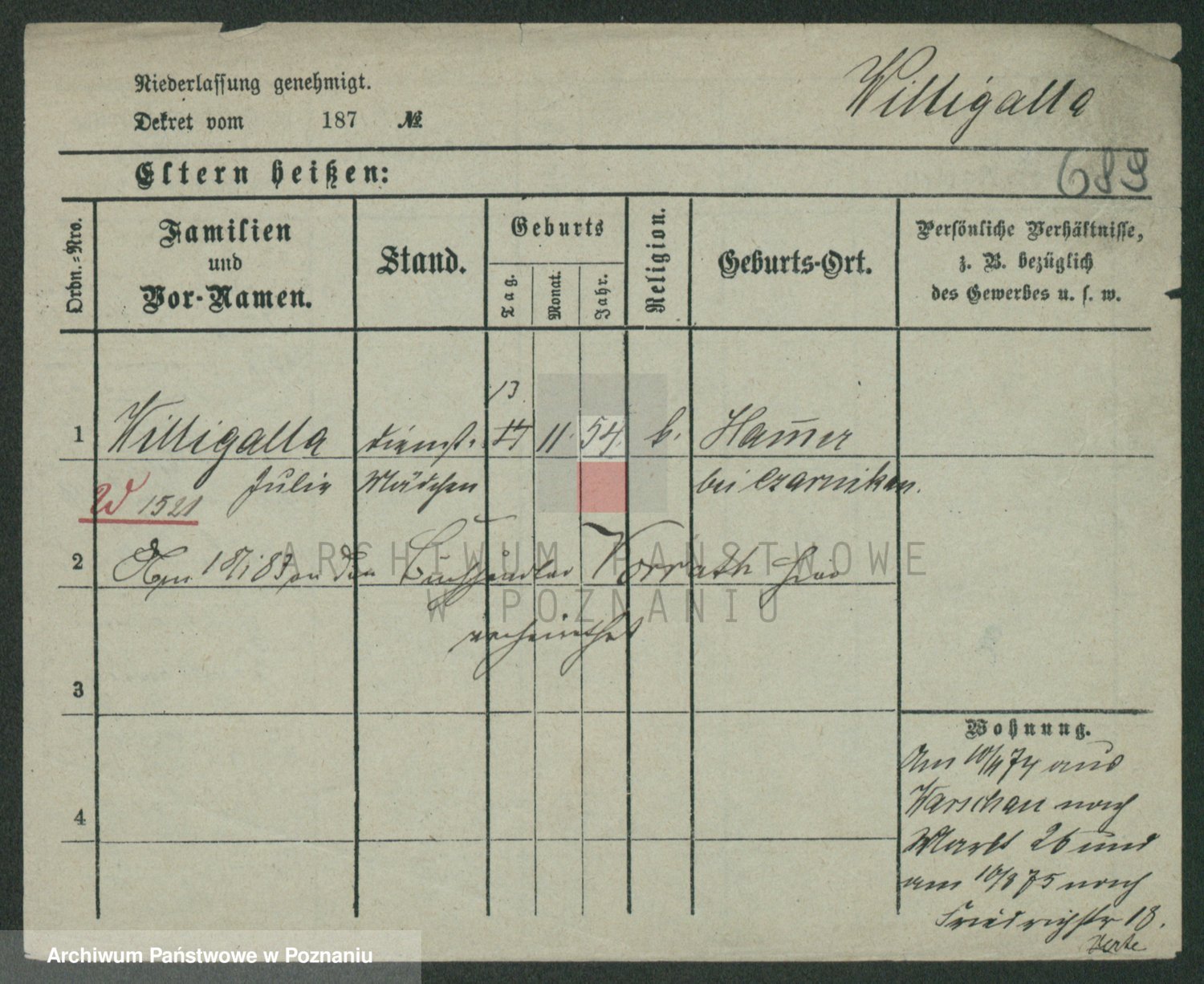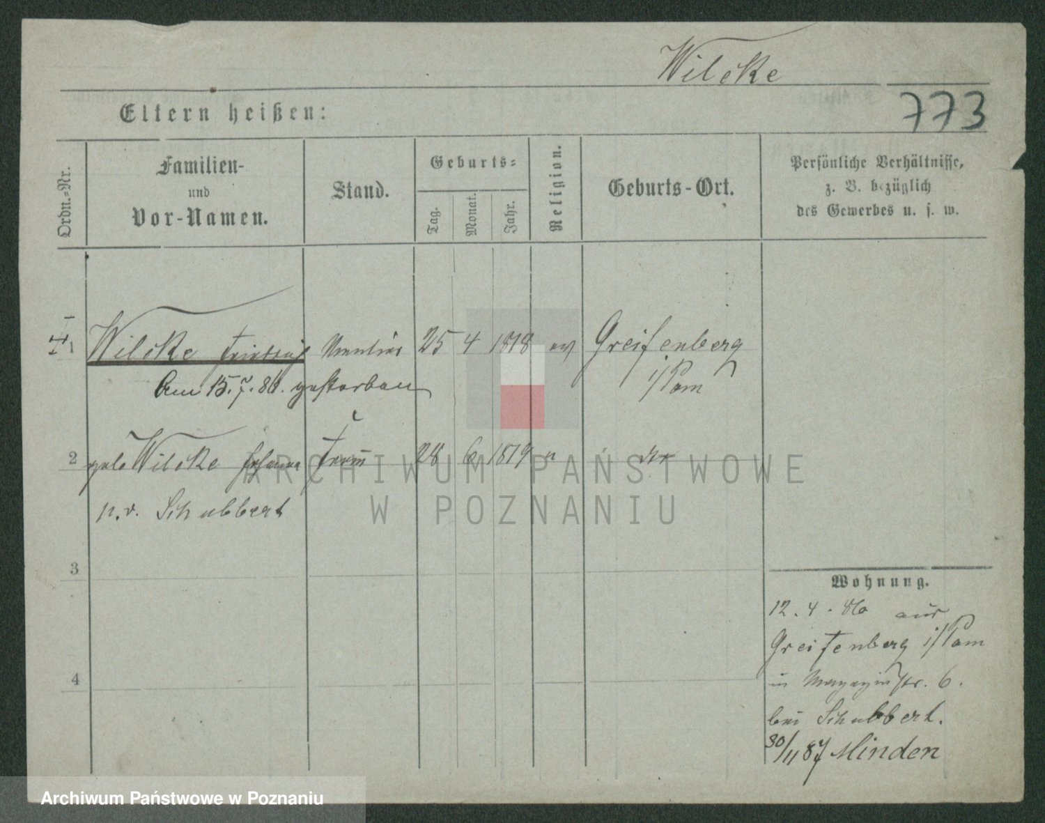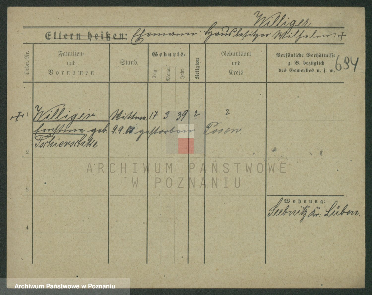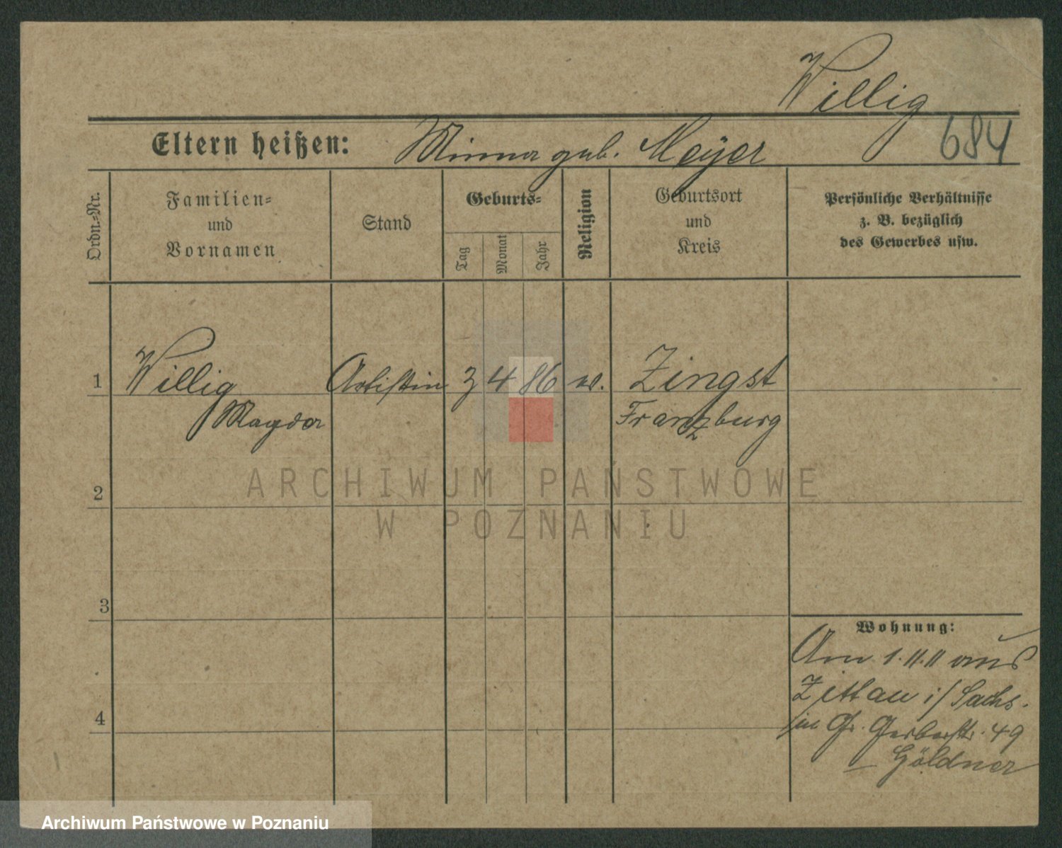 Wilinska zd. Klein, Wilgomina (!)