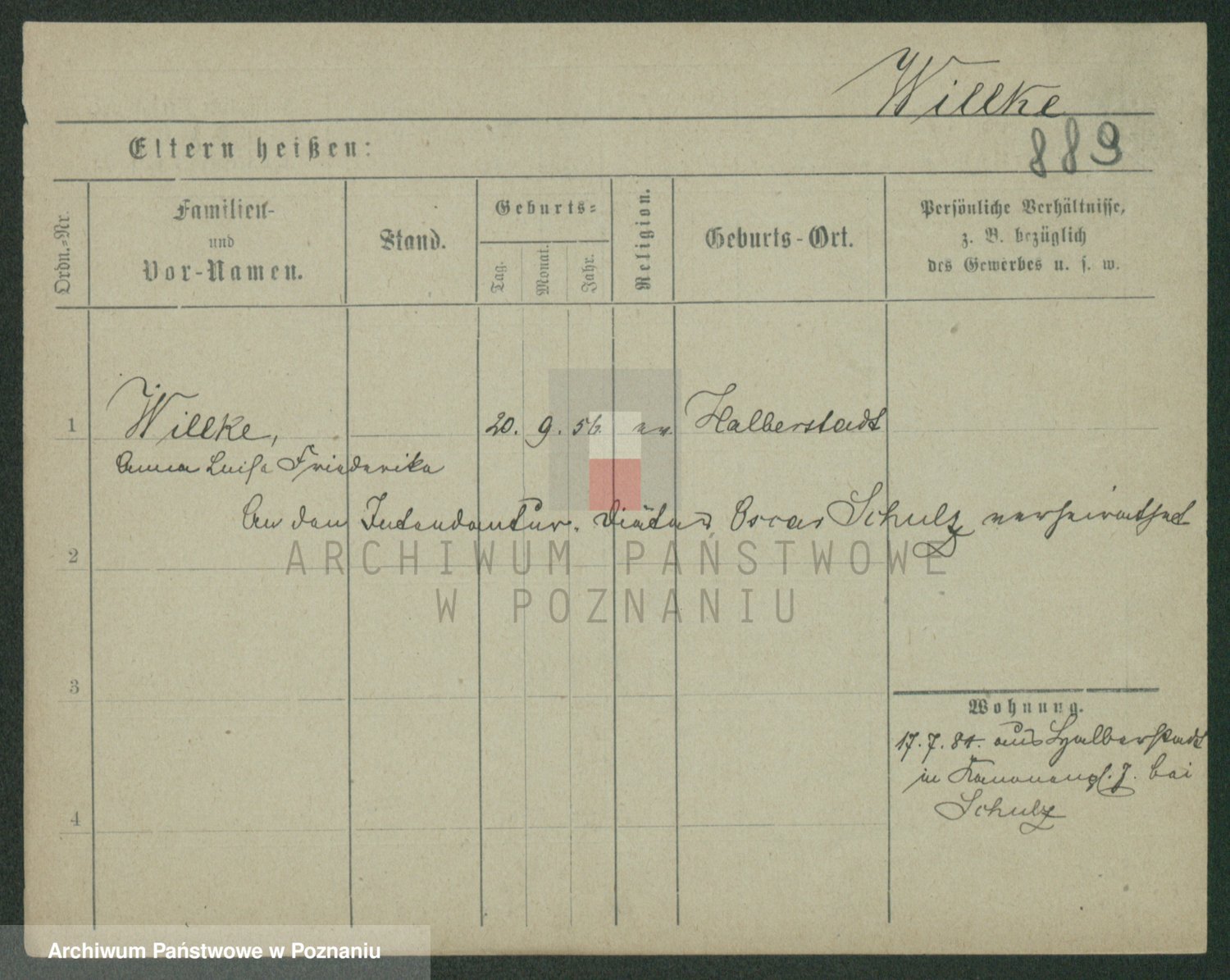 Willke później zam. Schulz, Anna Luisa Friederika