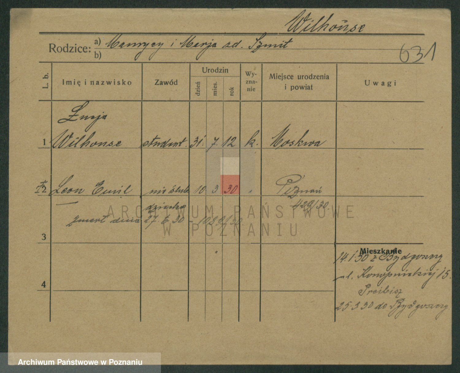 Wilinski vel Wylynska (!), Bernhard