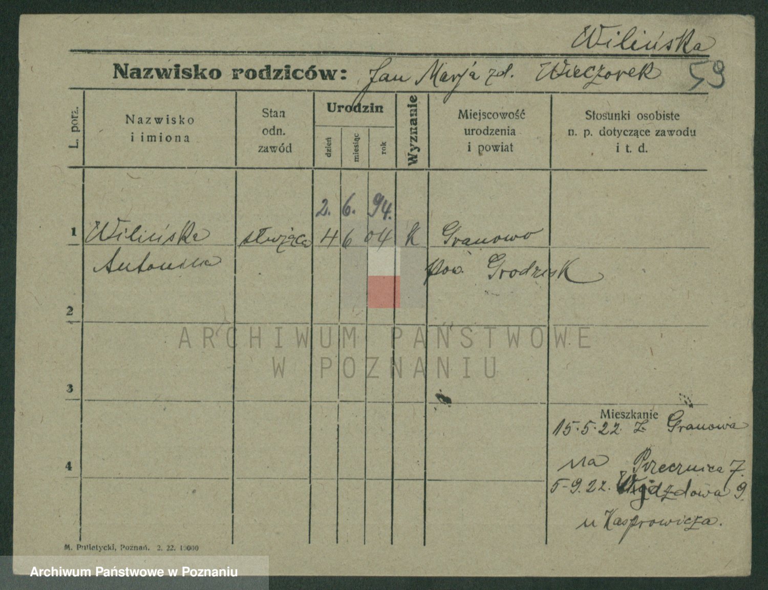 Wilinska zd. Jankowska, Marja
