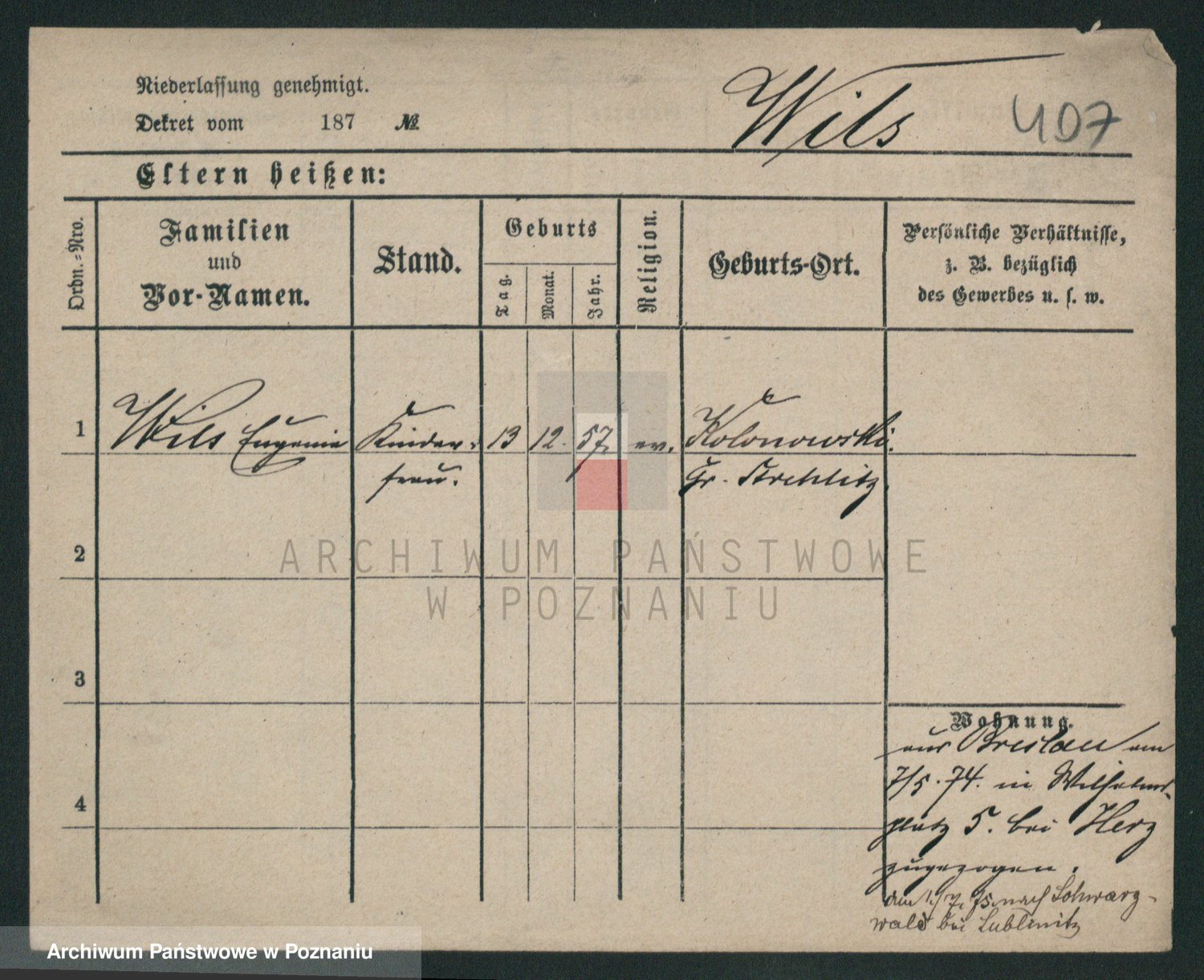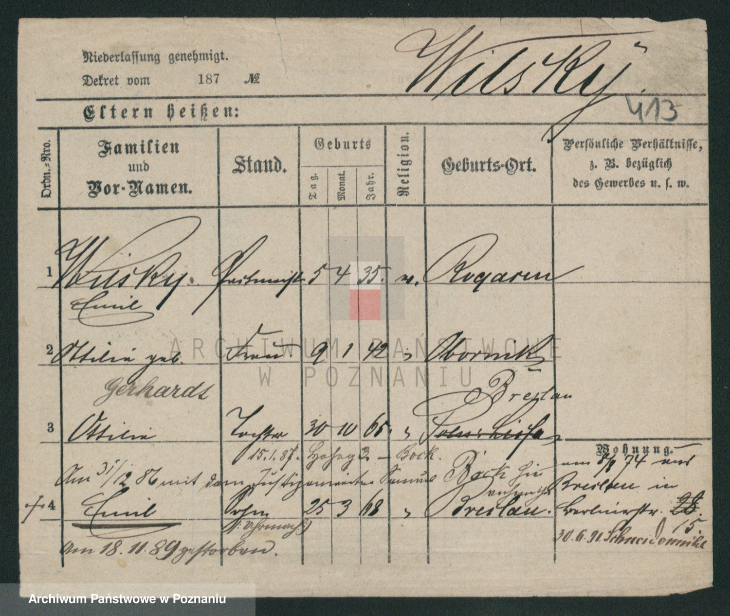 Wilken z d. Klemczak I v. Kern, Stanislawa
