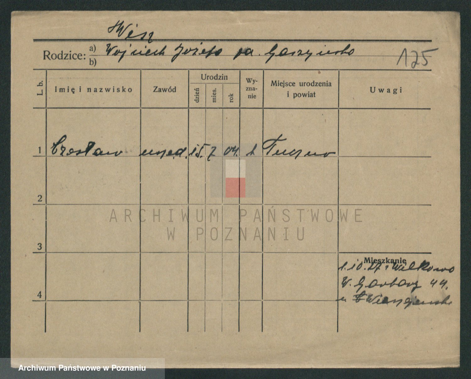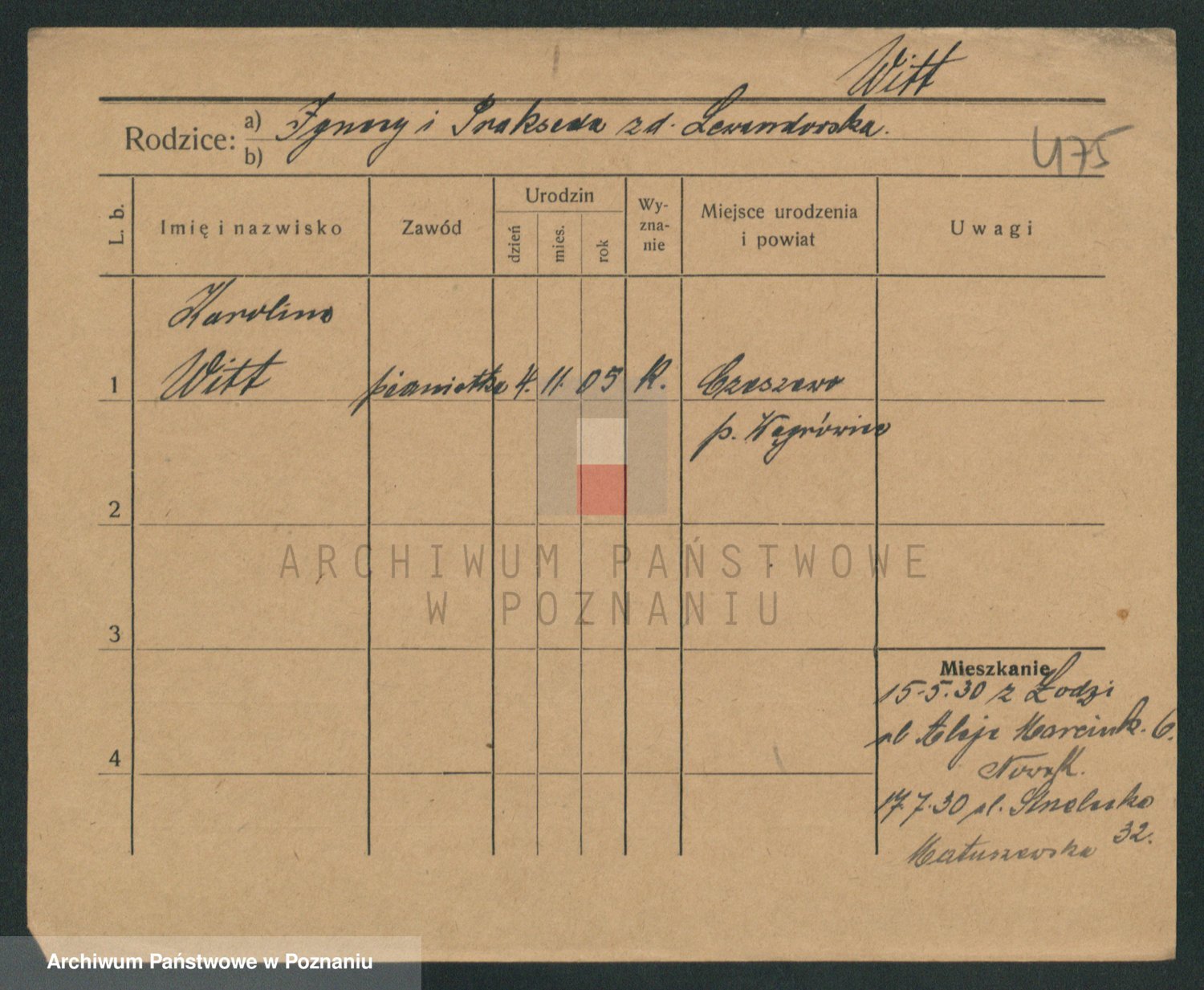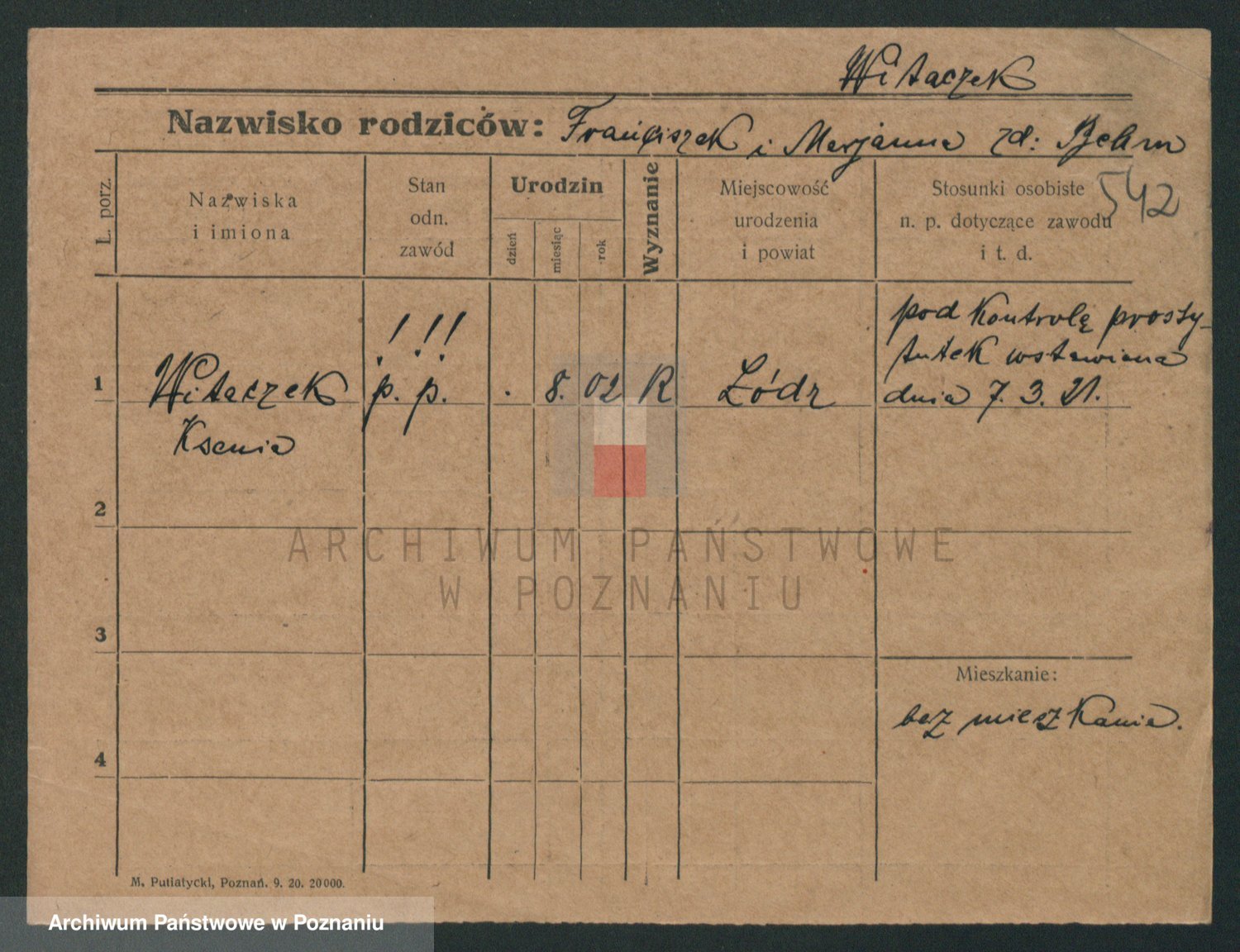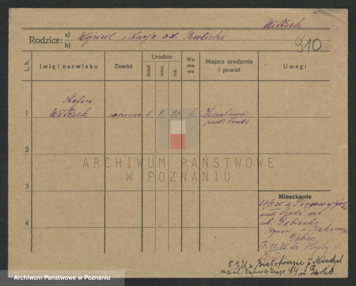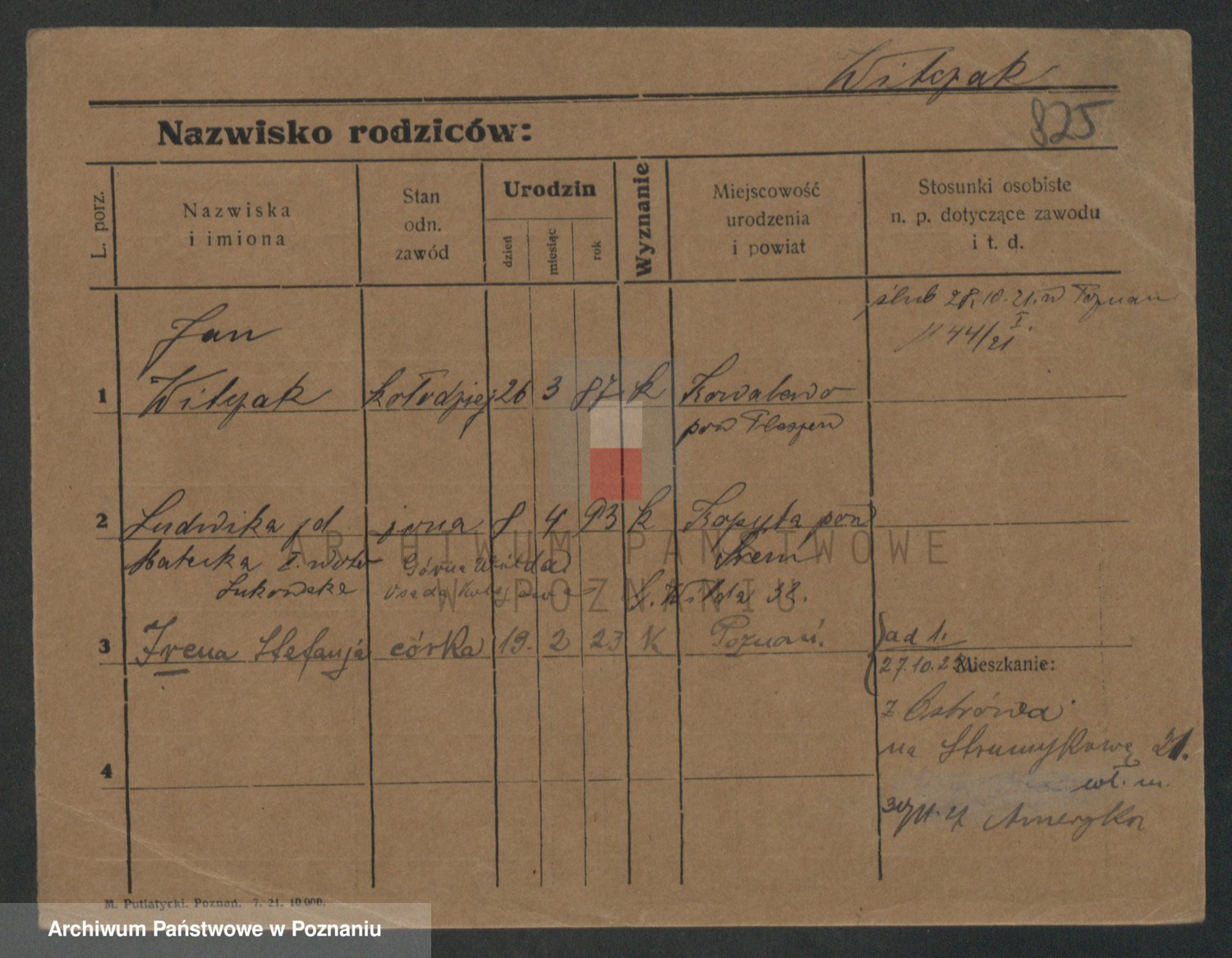 Podgląd karty osobowej dostępny jest po kliknięciu na nazwisko lub ikonkę karty. Można dokonywać powiększenia (ikony na górze) lub przechodzić między kolejnymi skanami (strzałki po bokach).