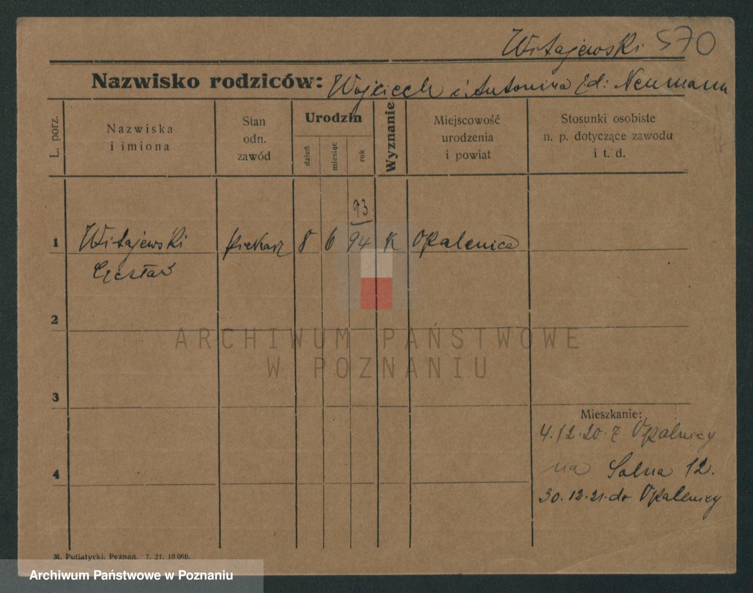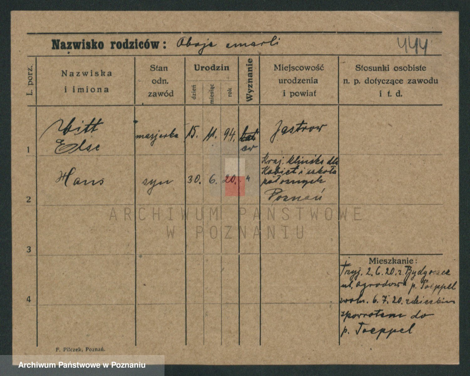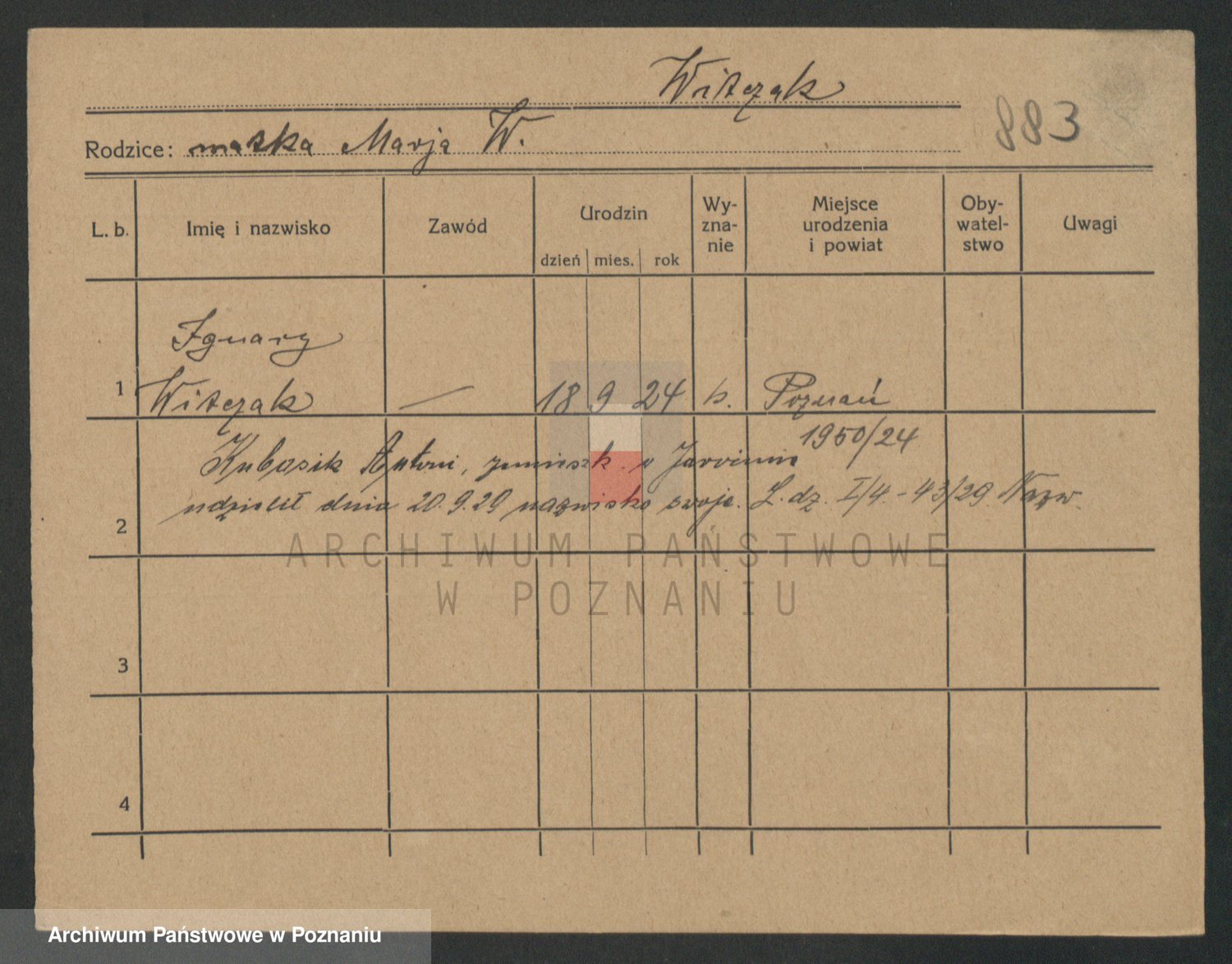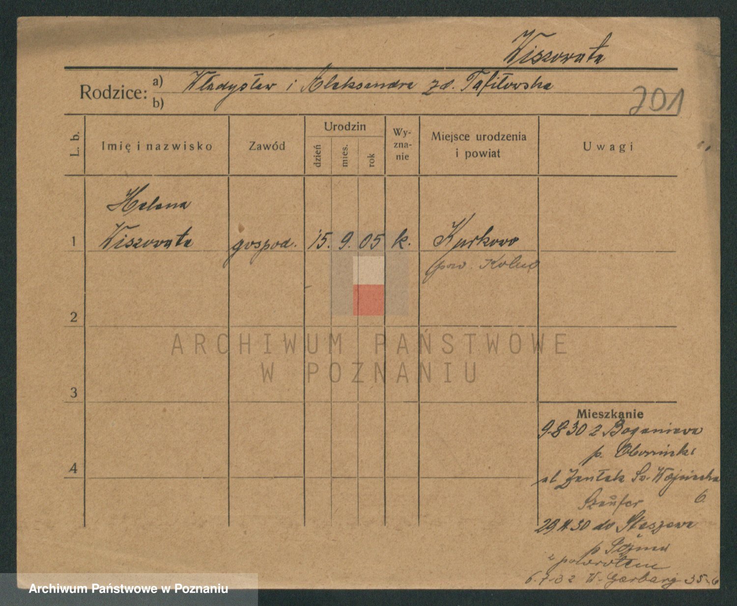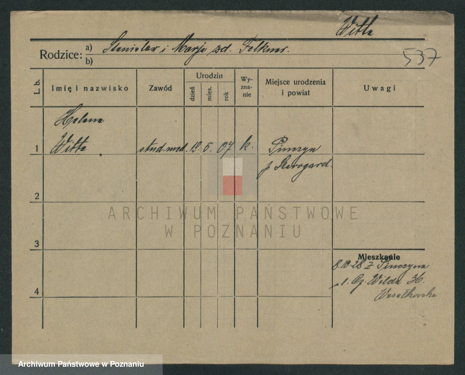 Podgląd karty osobowej dostępny jest po kliknięciu na nazwisko lub ikonkę karty. Można dokonywać powiększenia (ikony na górze) lub przechodzić między kolejnymi skanami (strzałki po bokach).
