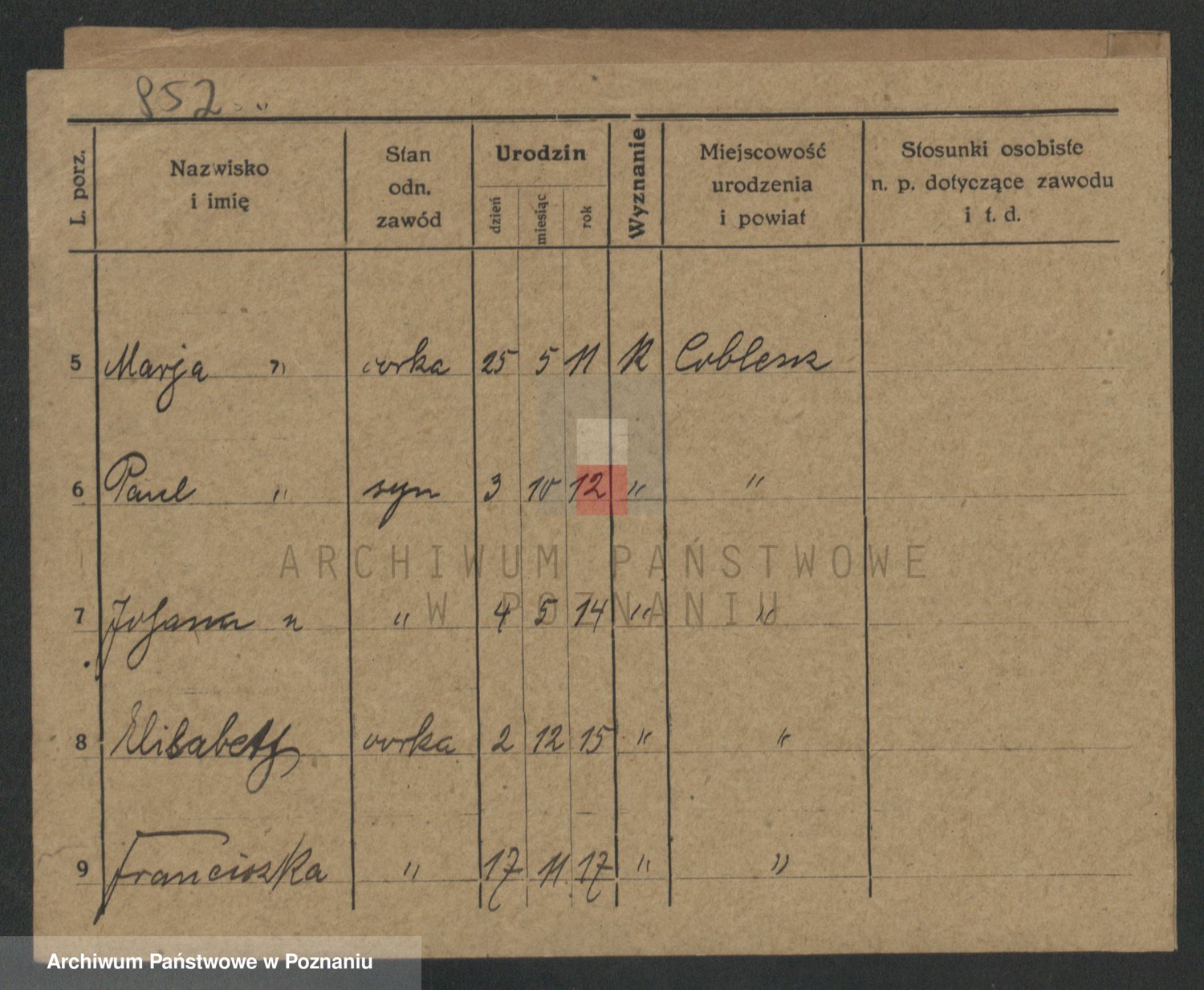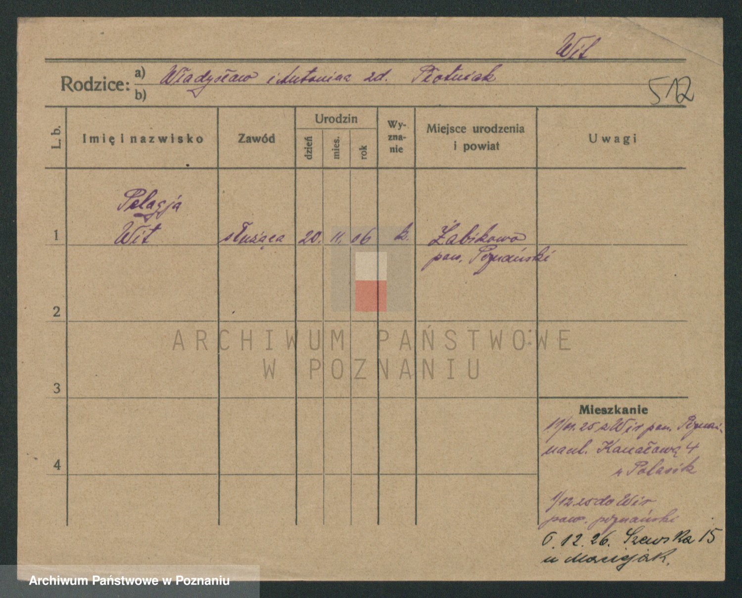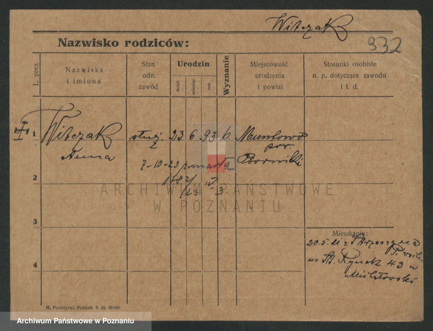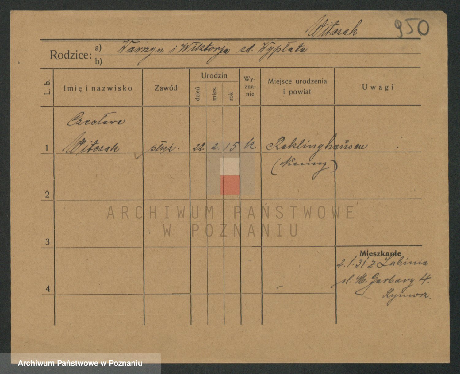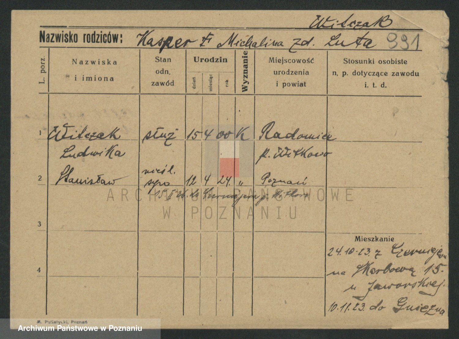 Podgląd karty osobowej dostępny jest po kliknięciu na nazwisko lub ikonkę karty. Można dokonywać powiększenia (ikony na górze) lub przechodzić między kolejnymi skanami (strzałki po bokach).