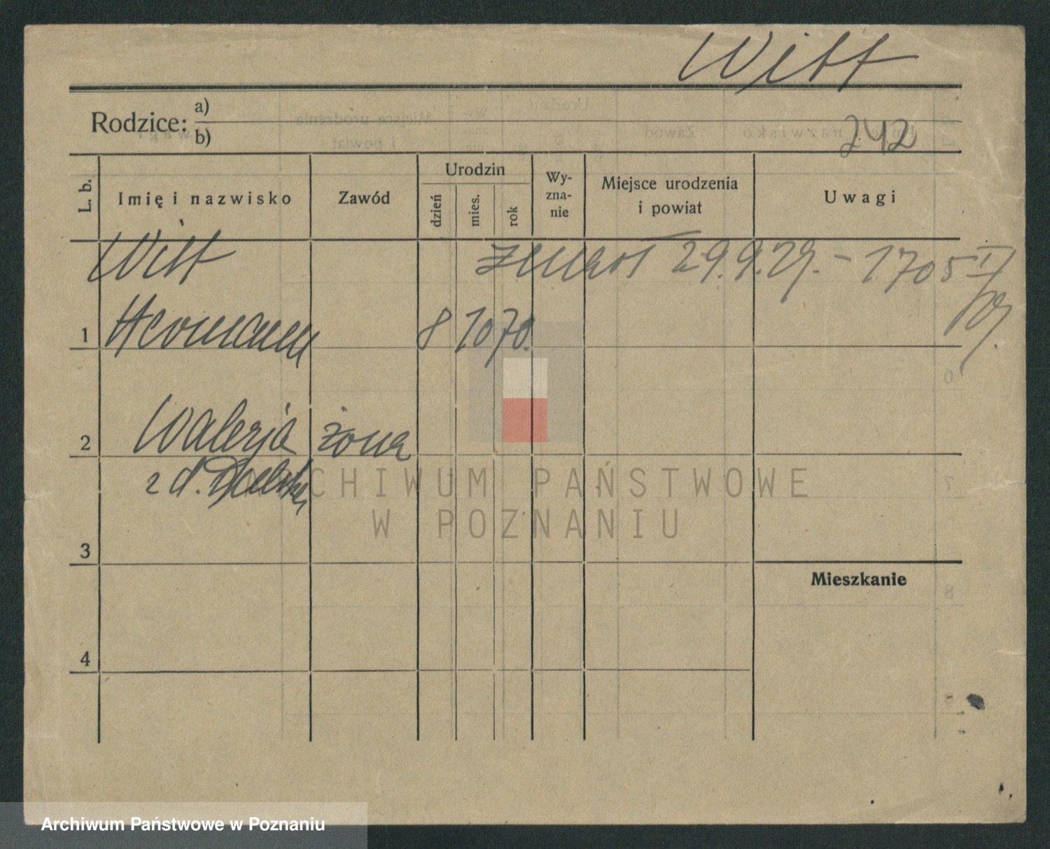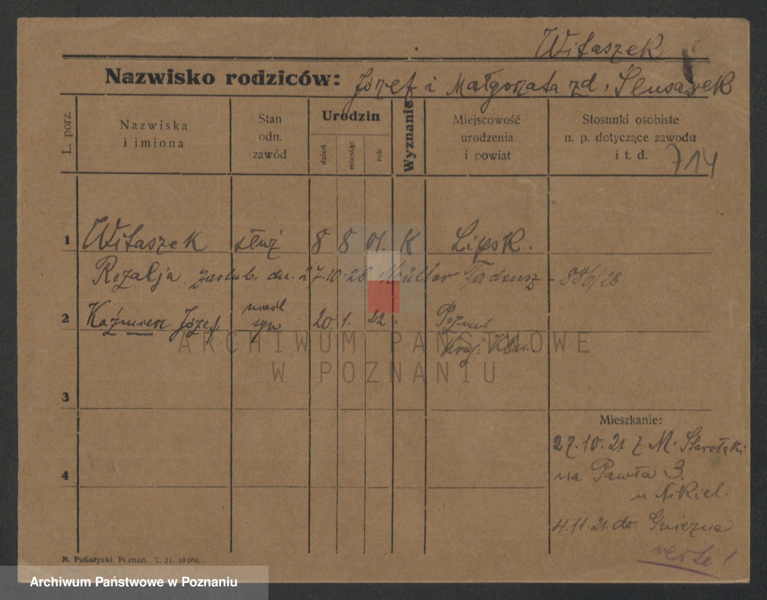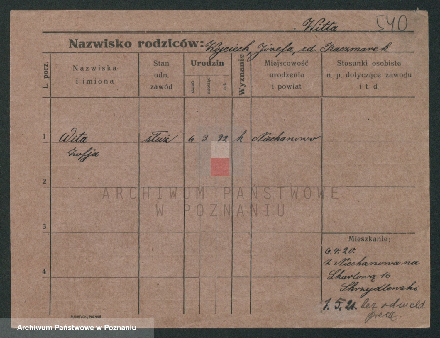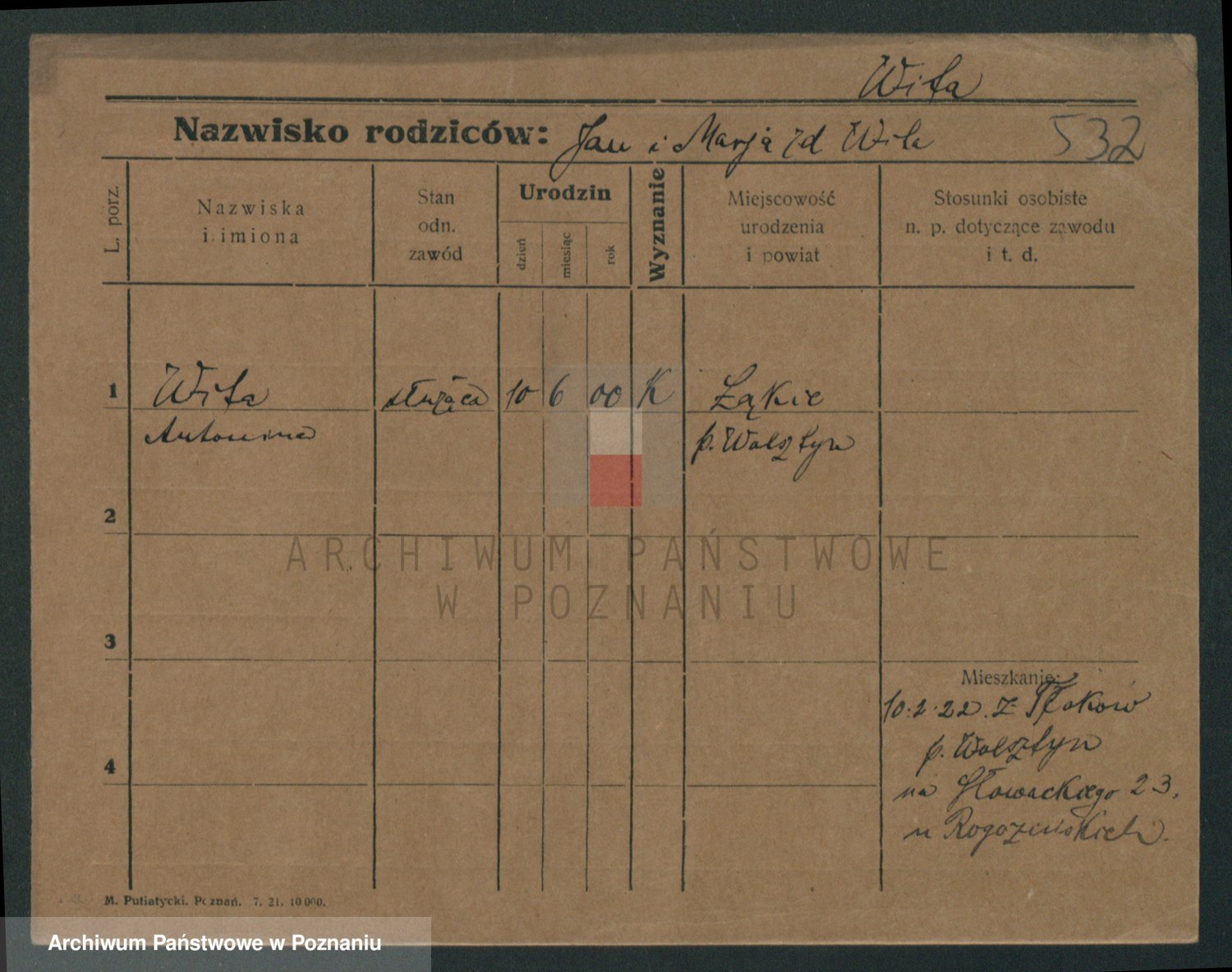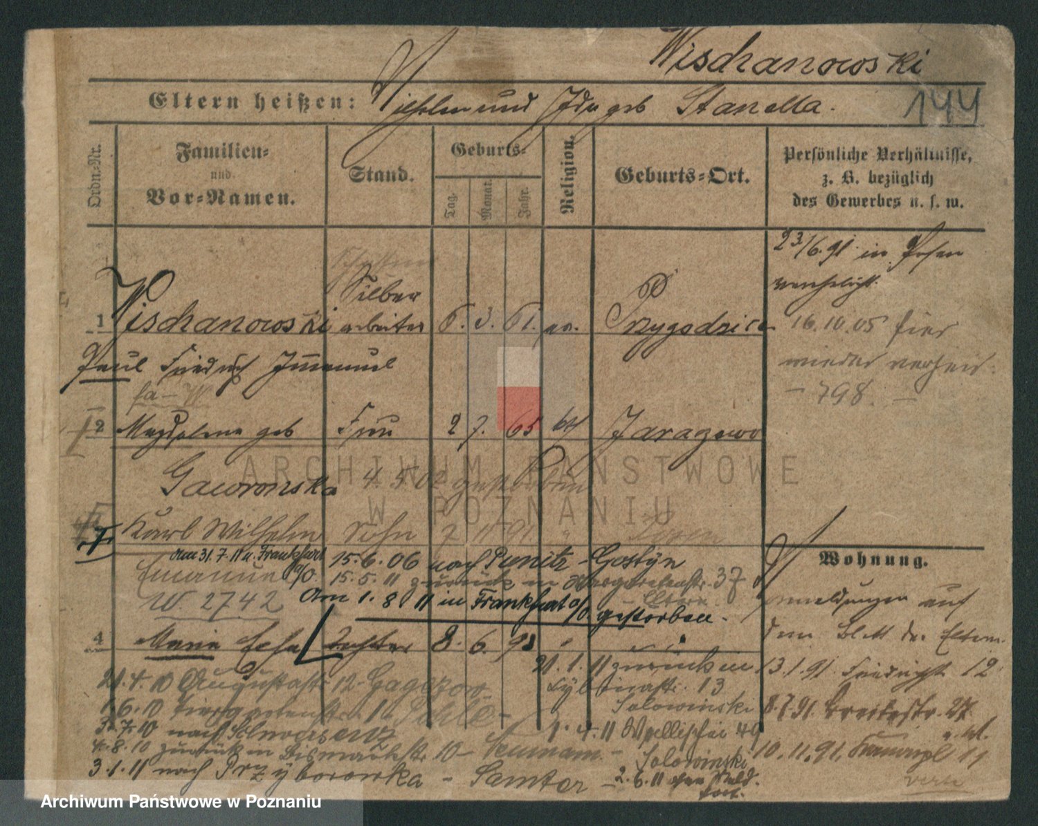 Podgląd karty osobowej dostępny jest po kliknięciu na nazwisko lub ikonkę karty. Można dokonywać powiększenia (ikony na górze) lub przechodzić między kolejnymi skanami (strzałki po bokach).