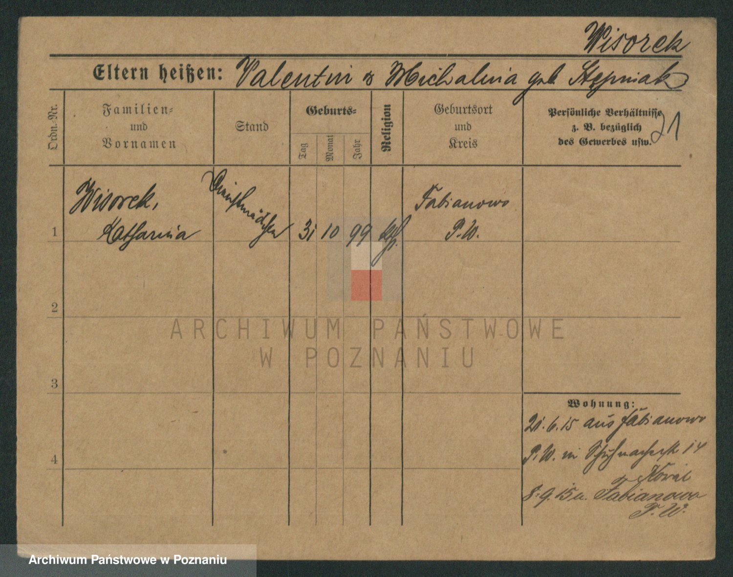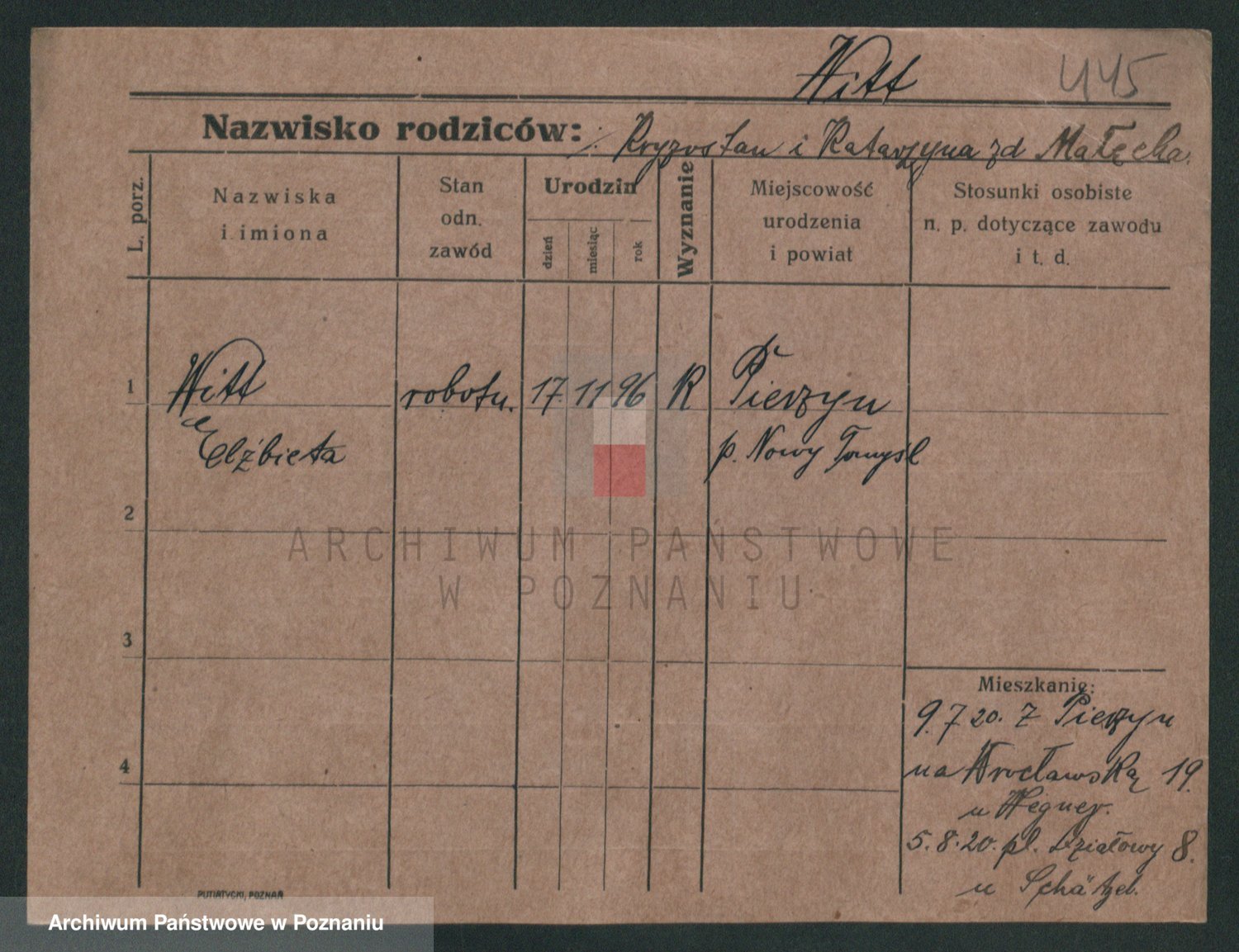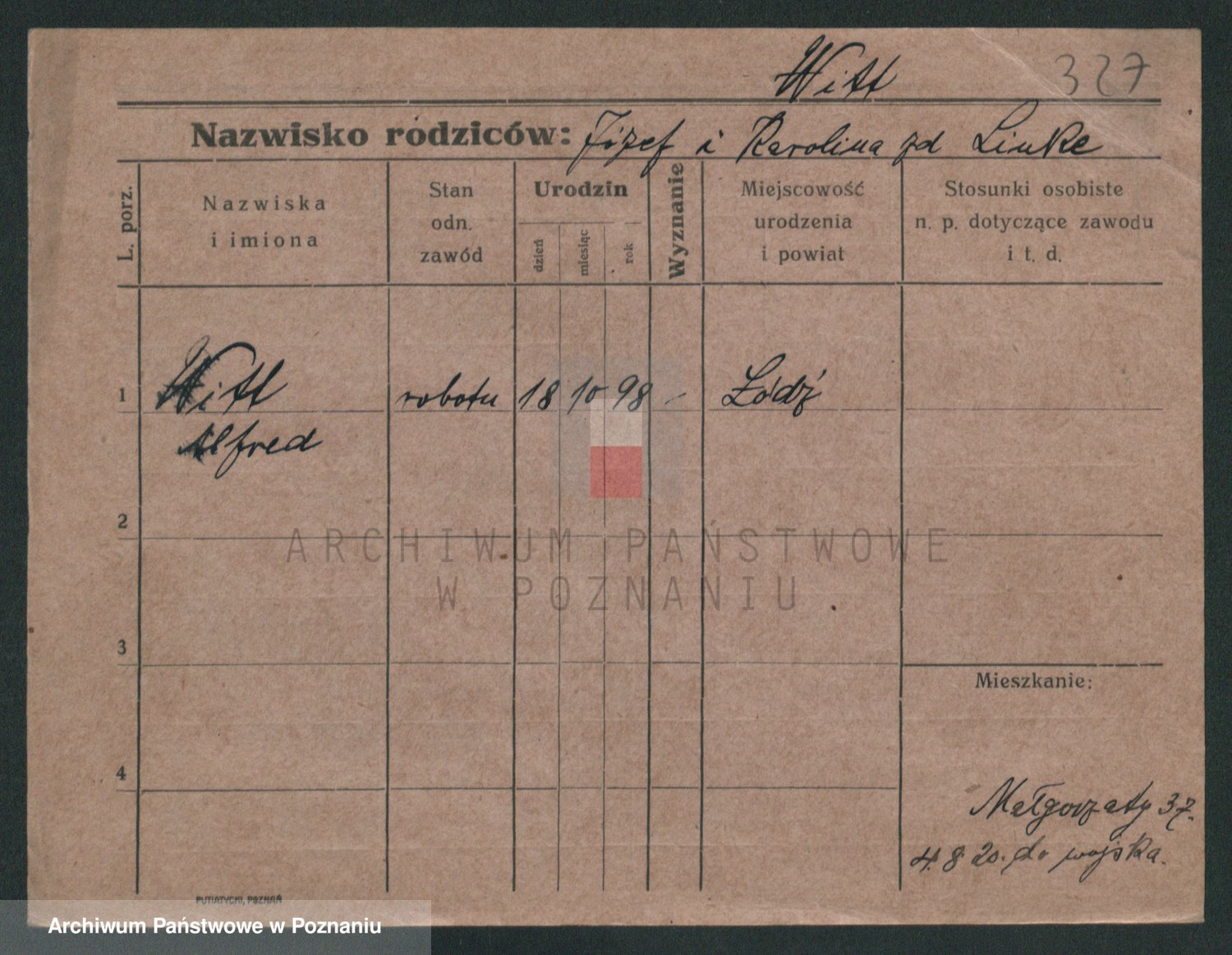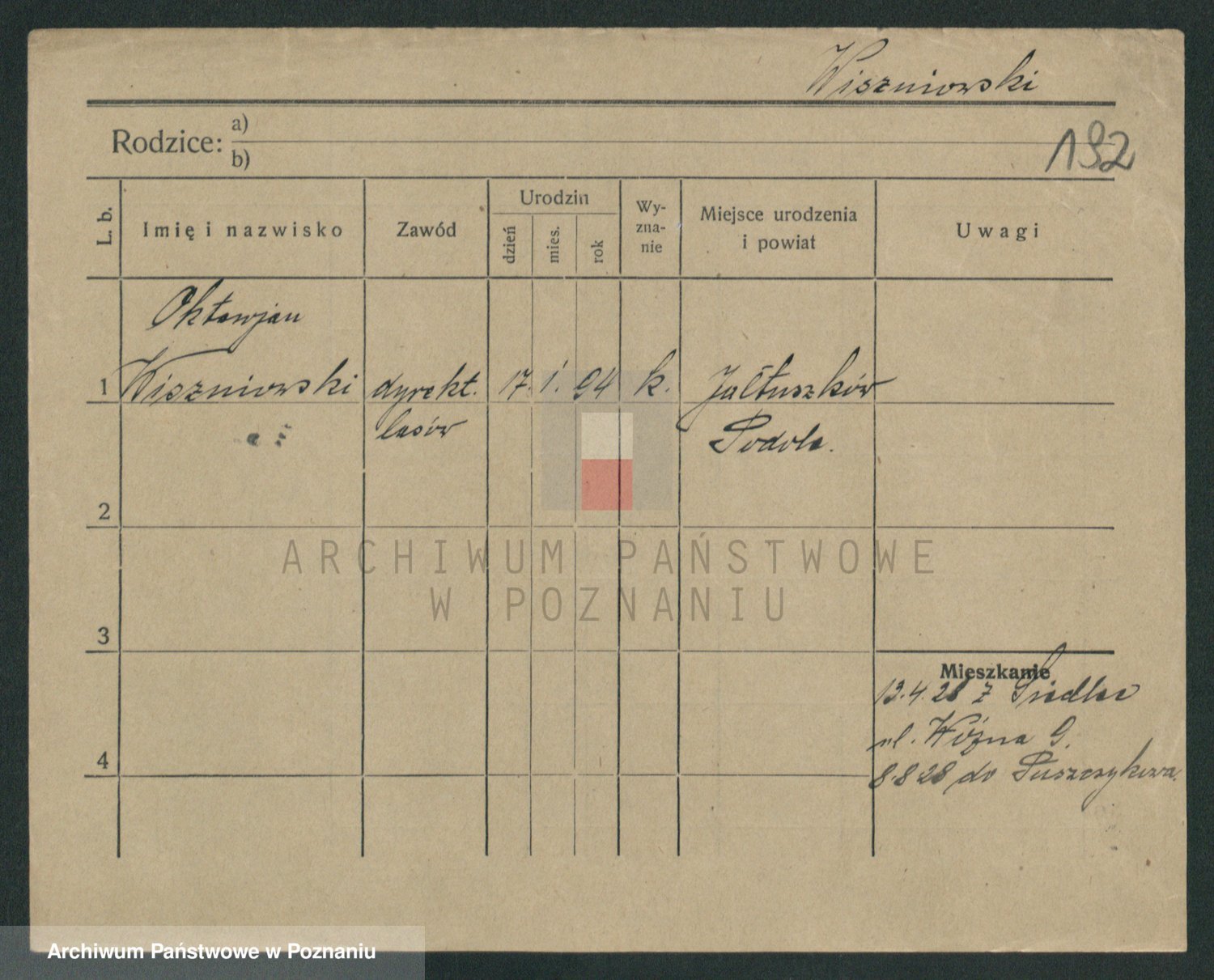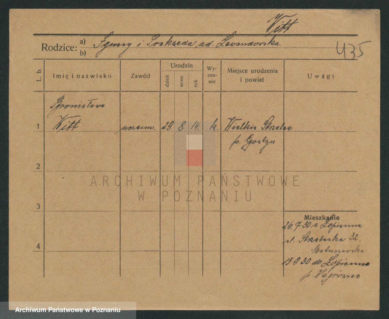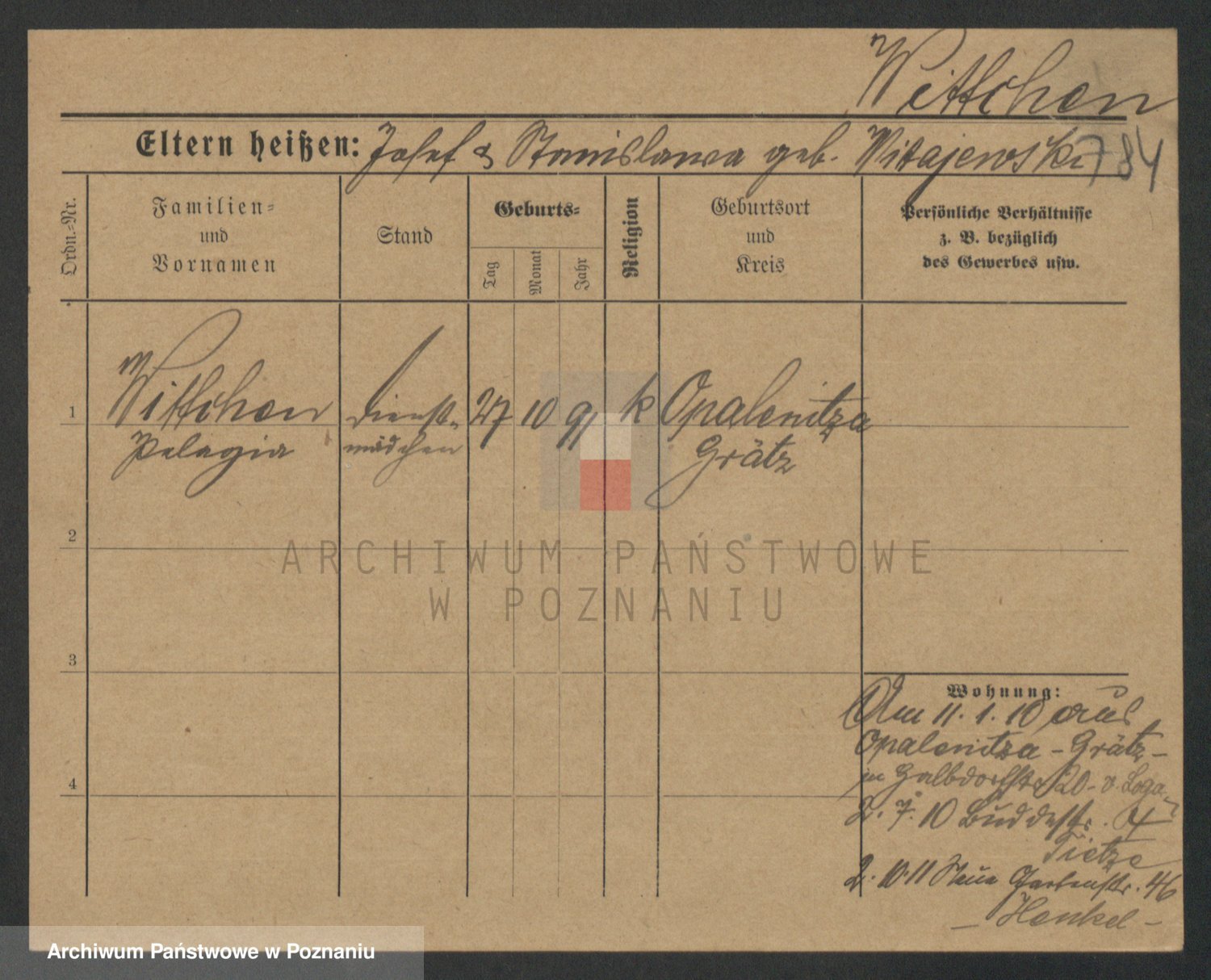 Podgląd karty osobowej dostępny jest po kliknięciu na nazwisko lub ikonkę karty. Można dokonywać powiększenia (ikony na górze) lub przechodzić między kolejnymi skanami (strzałki po bokach).