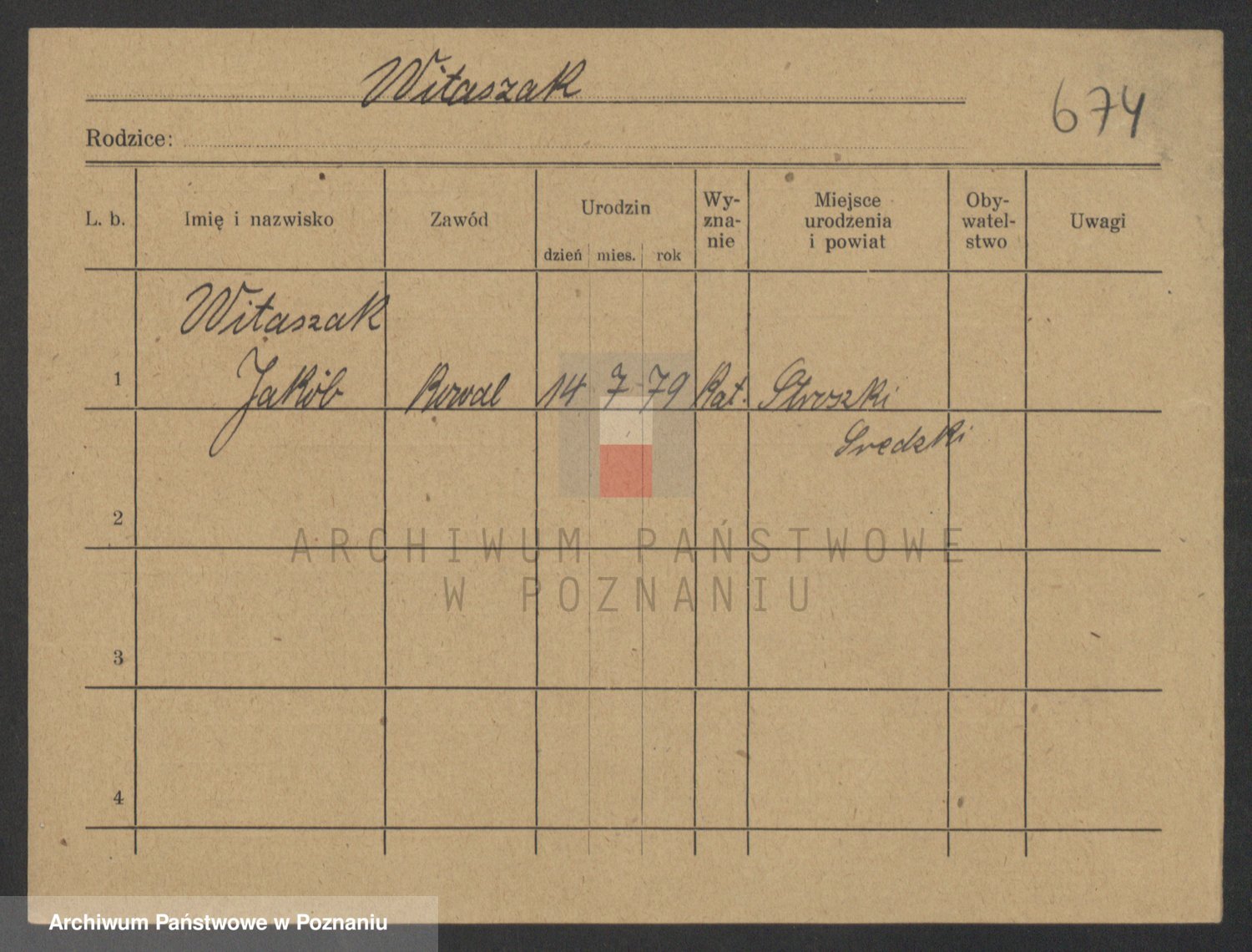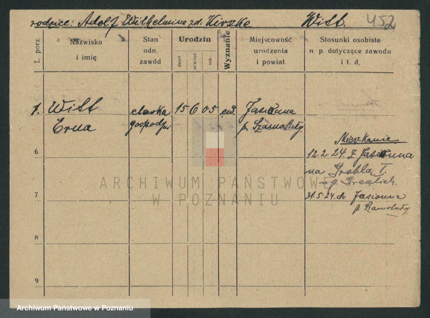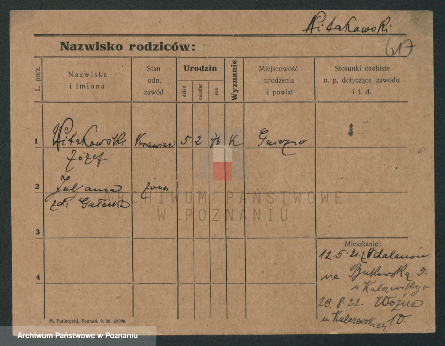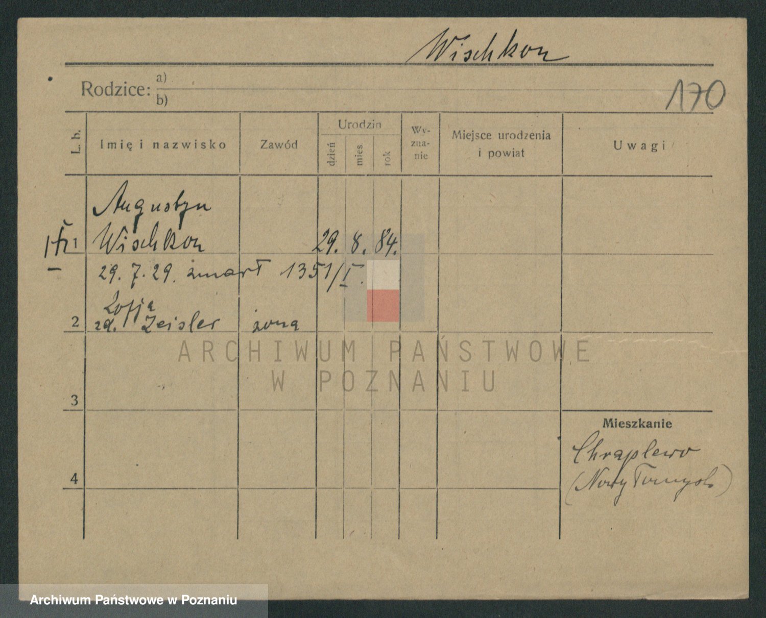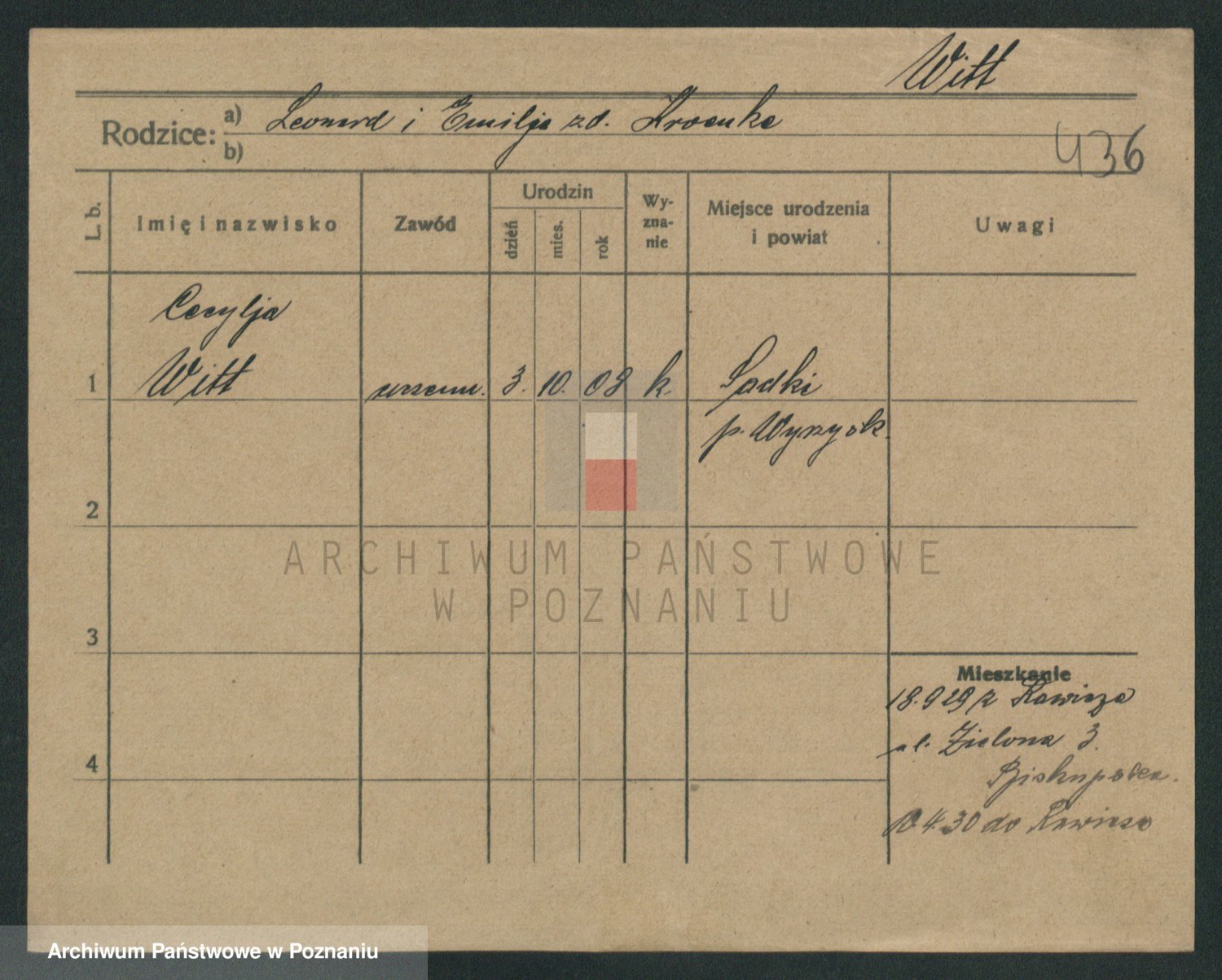 Podgląd karty osobowej dostępny jest po kliknięciu na nazwisko lub ikonkę karty. Można dokonywać powiększenia (ikony na górze) lub przechodzić między kolejnymi skanami (strzałki po bokach).