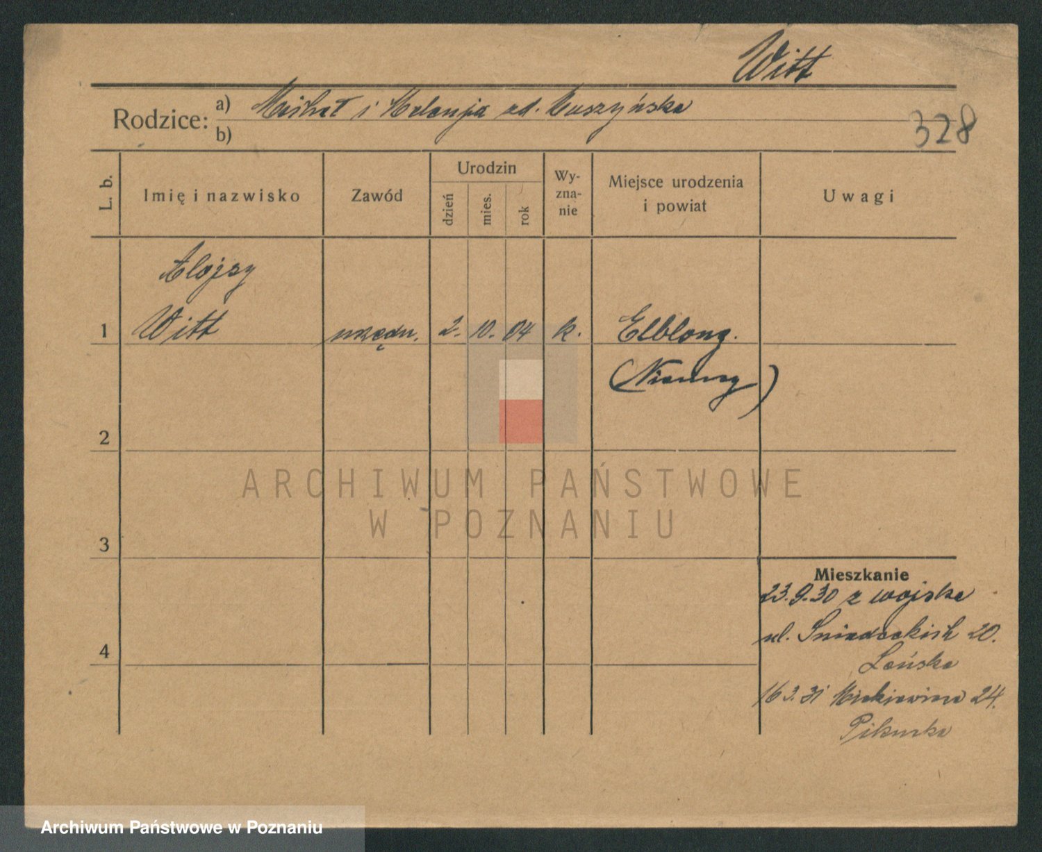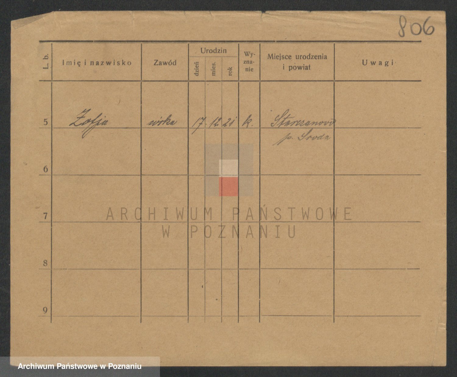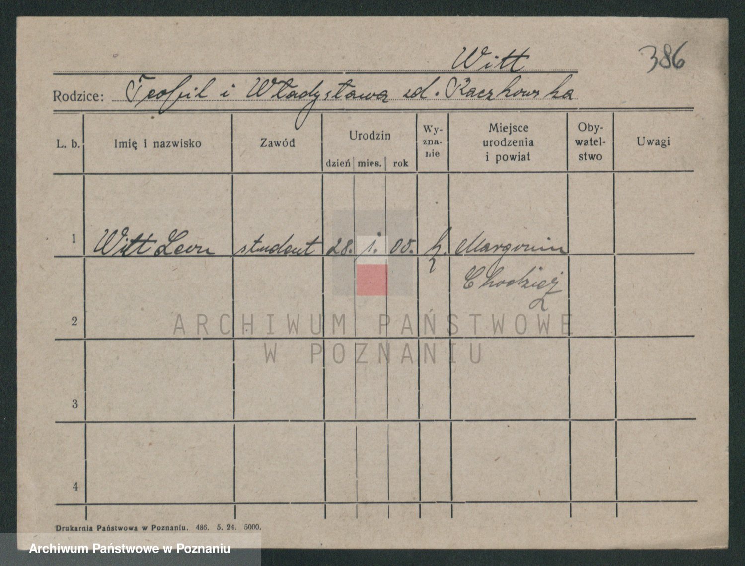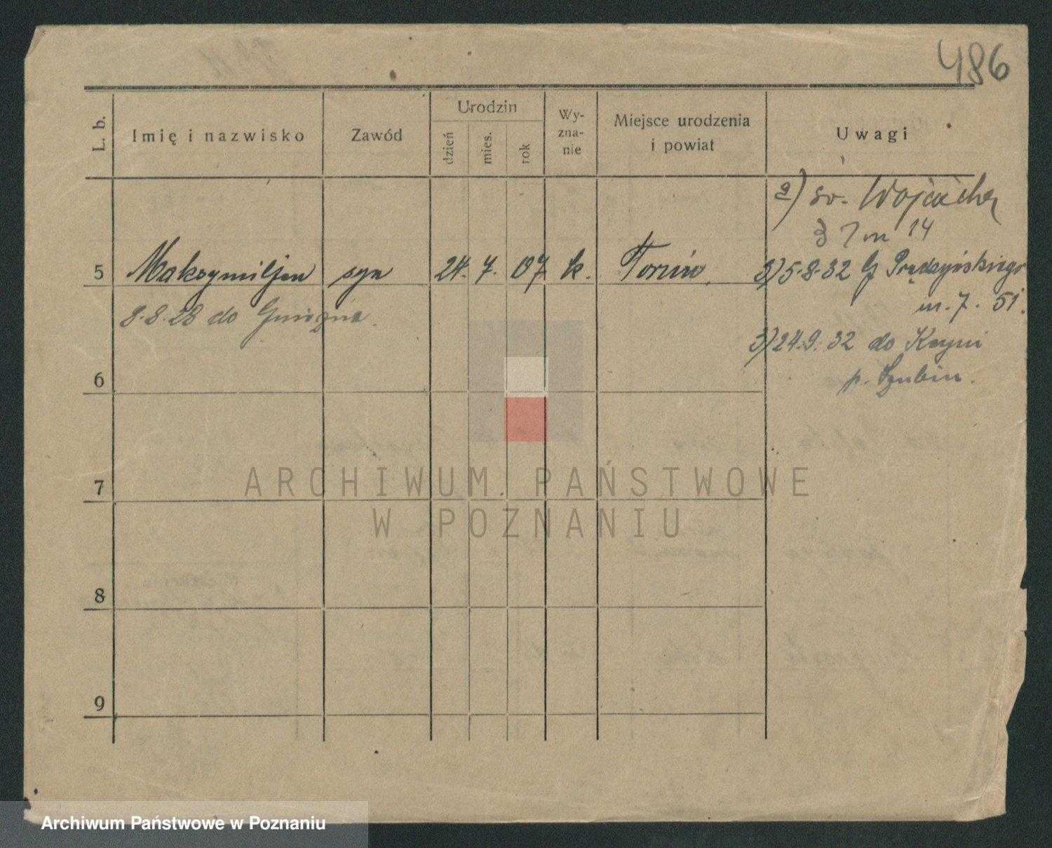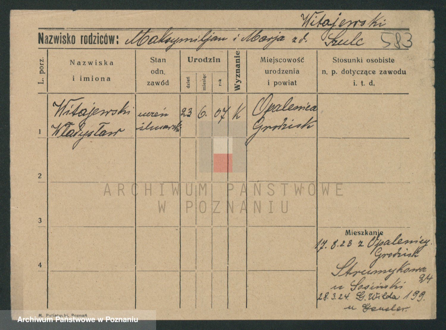 Podgląd karty osobowej dostępny jest po kliknięciu na nazwisko lub ikonkę karty. Można dokonywać powiększenia (ikony na górze) lub przechodzić między kolejnymi skanami (strzałki po bokach).