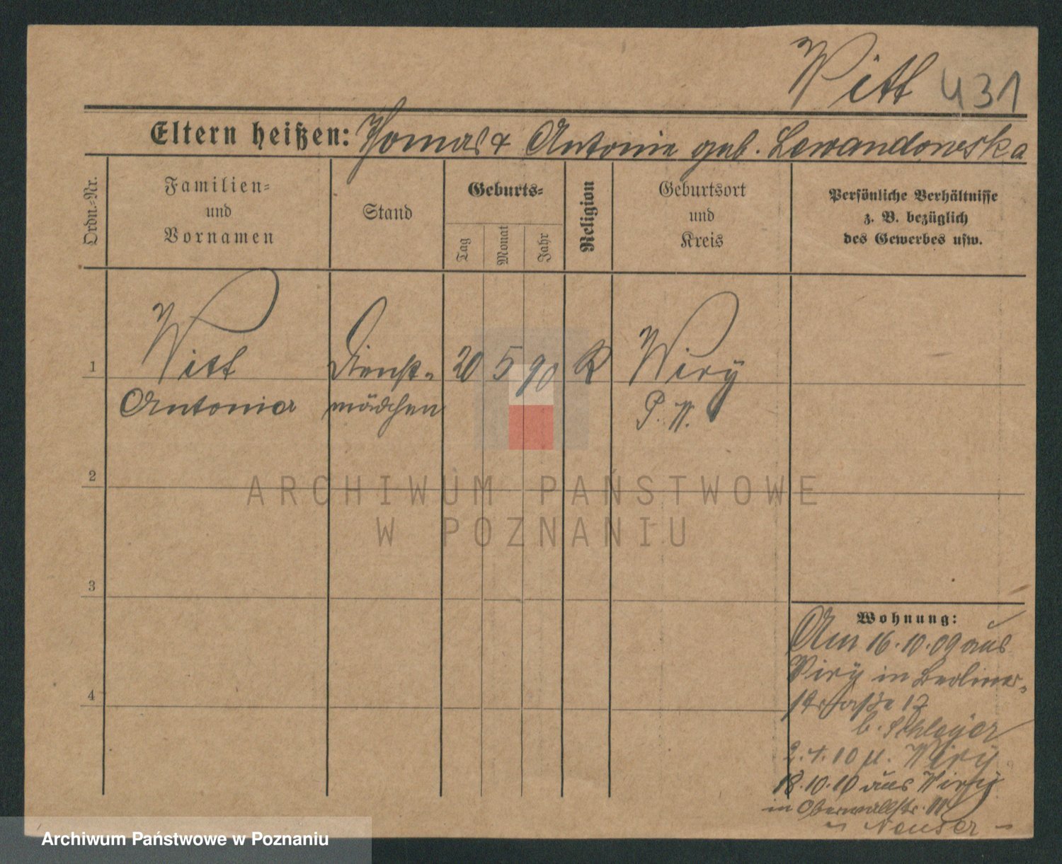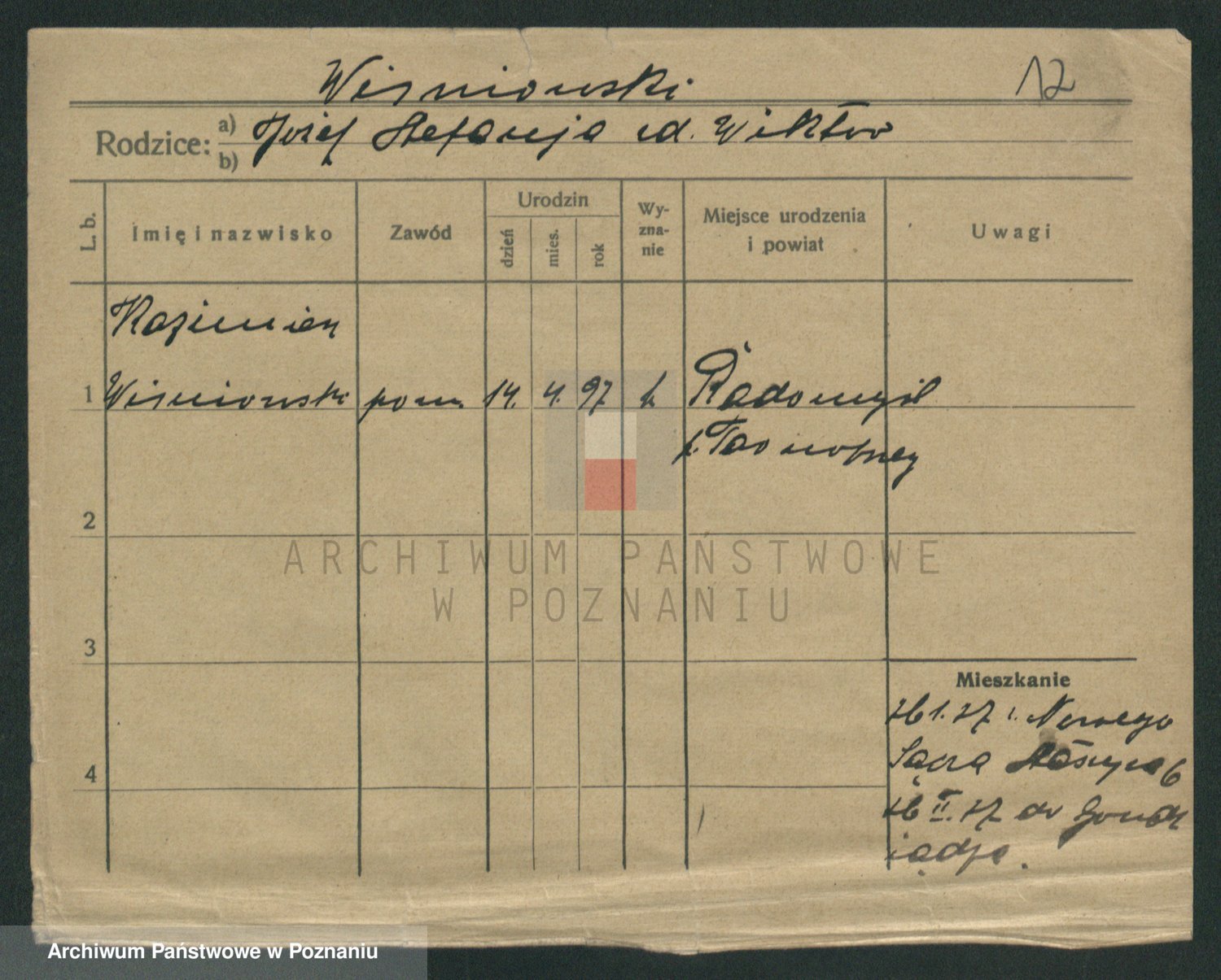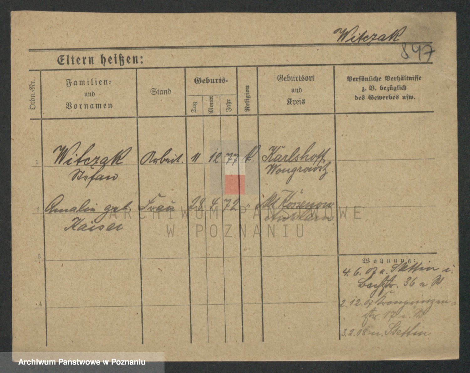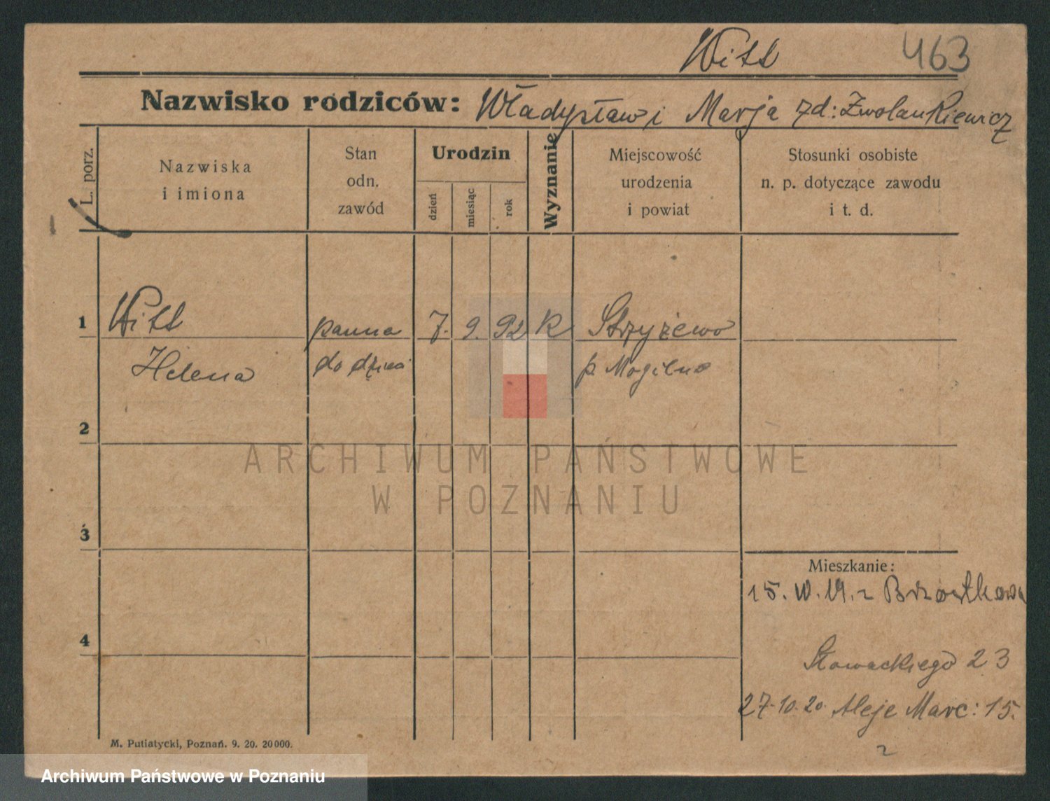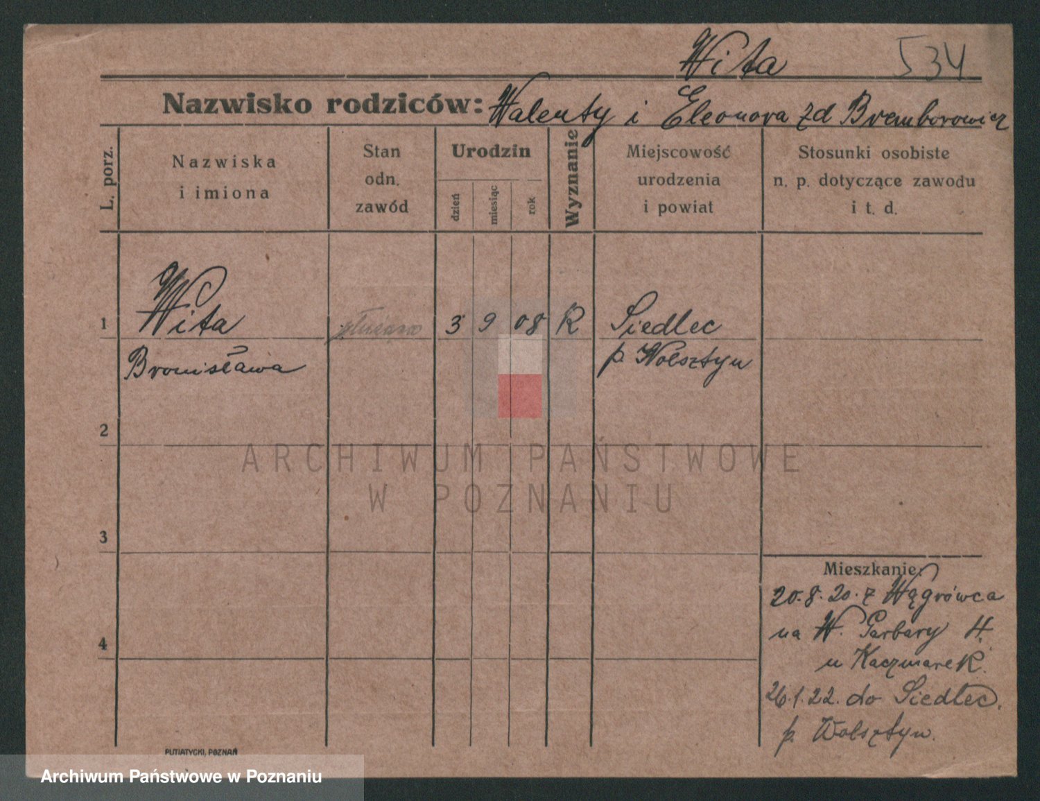 Podgląd karty osobowej dostępny jest po kliknięciu na nazwisko lub ikonkę karty. Można dokonywać powiększenia (ikony na górze) lub przechodzić między kolejnymi skanami (strzałki po bokach).