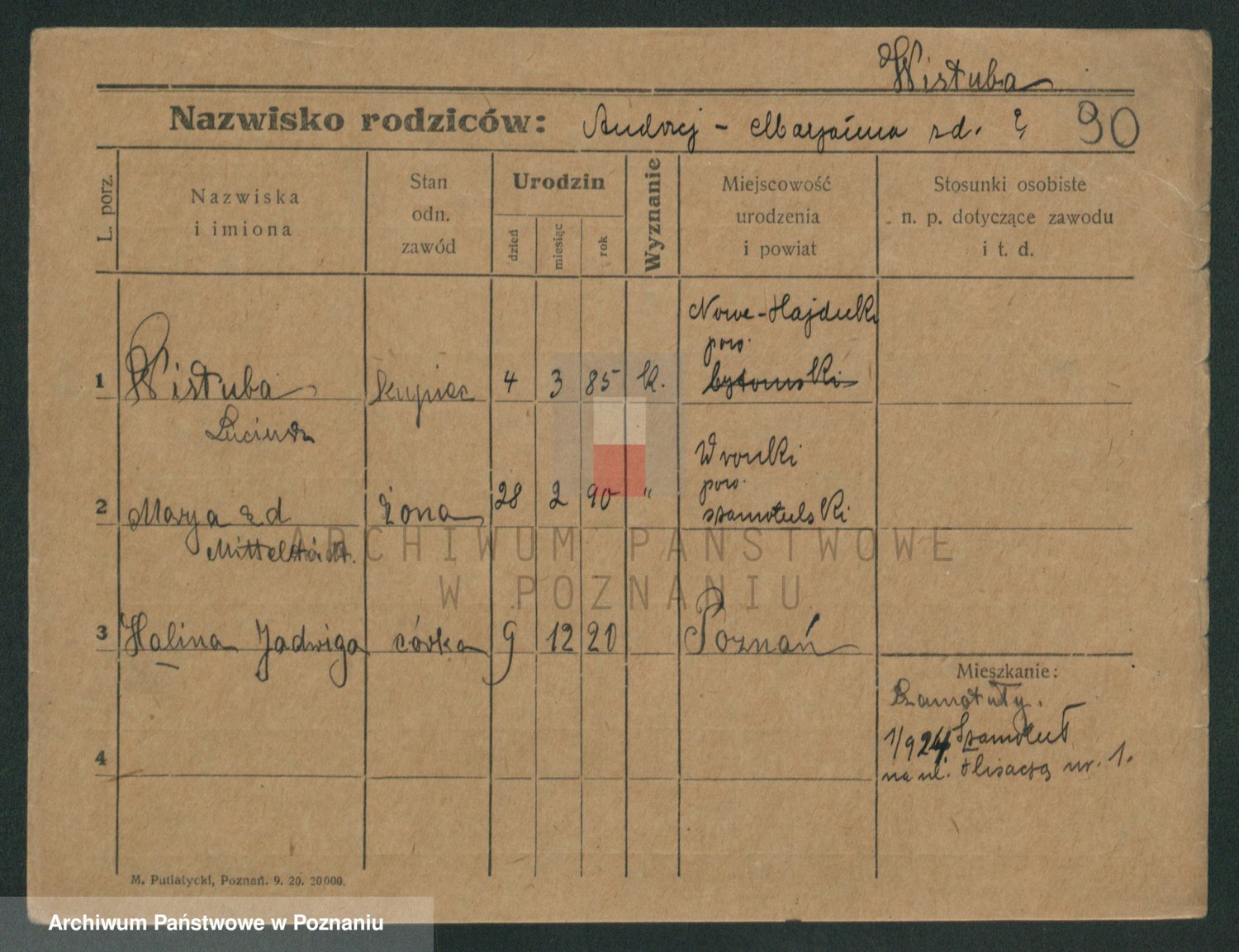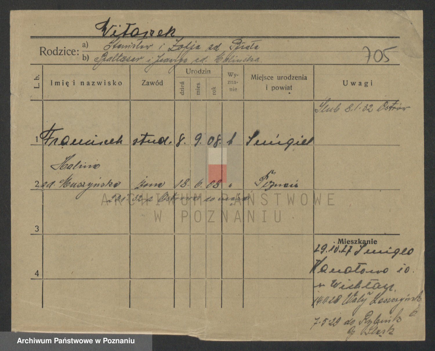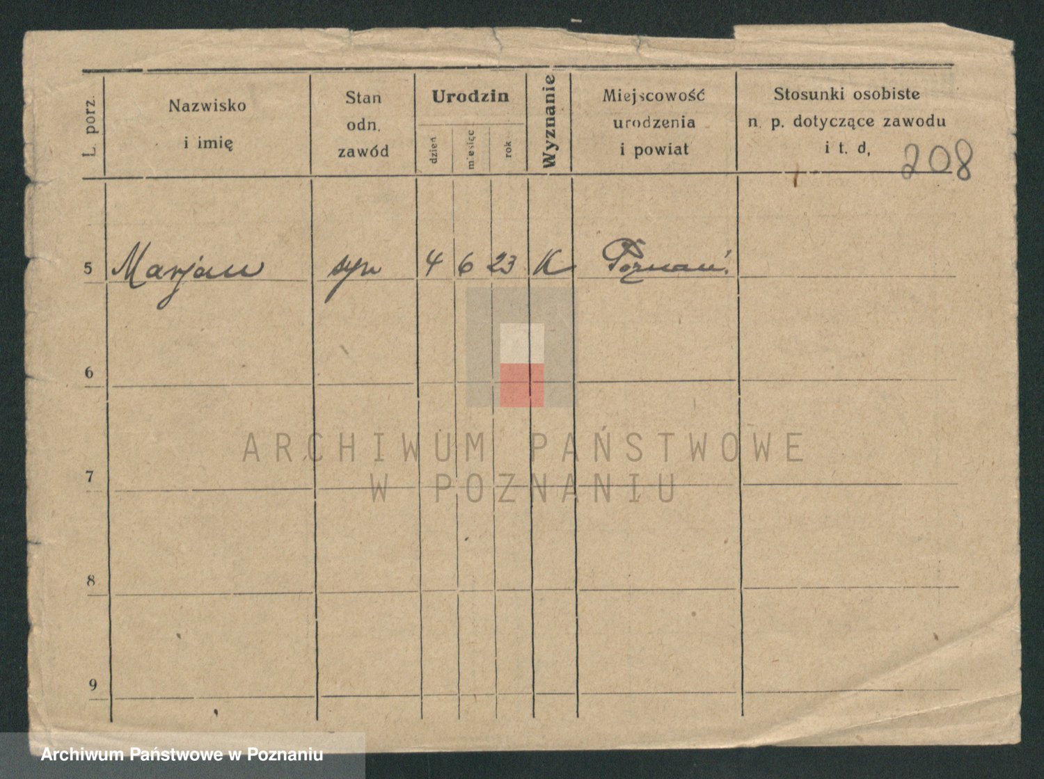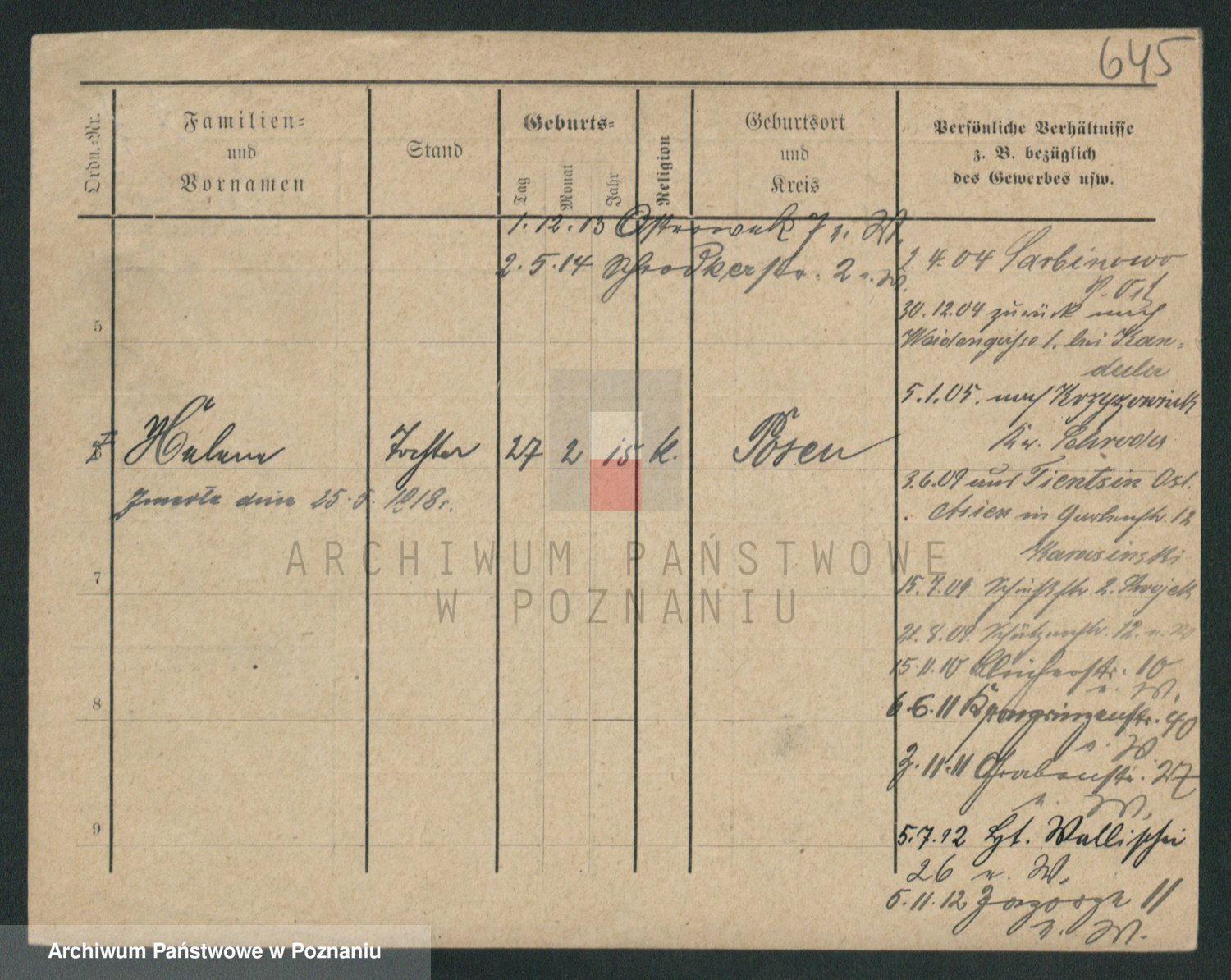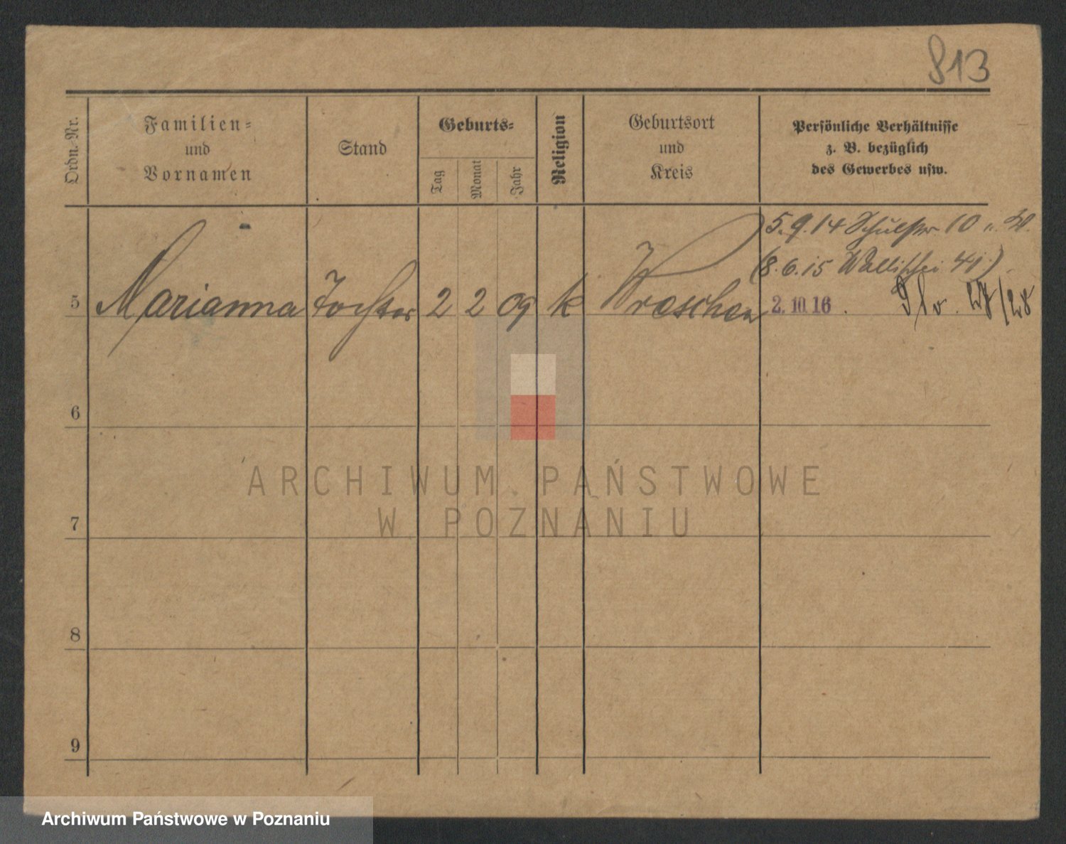 Podgląd karty osobowej dostępny jest po kliknięciu na nazwisko lub ikonkę karty. Można dokonywać powiększenia (ikony na górze) lub przechodzić między kolejnymi skanami (strzałki po bokach).