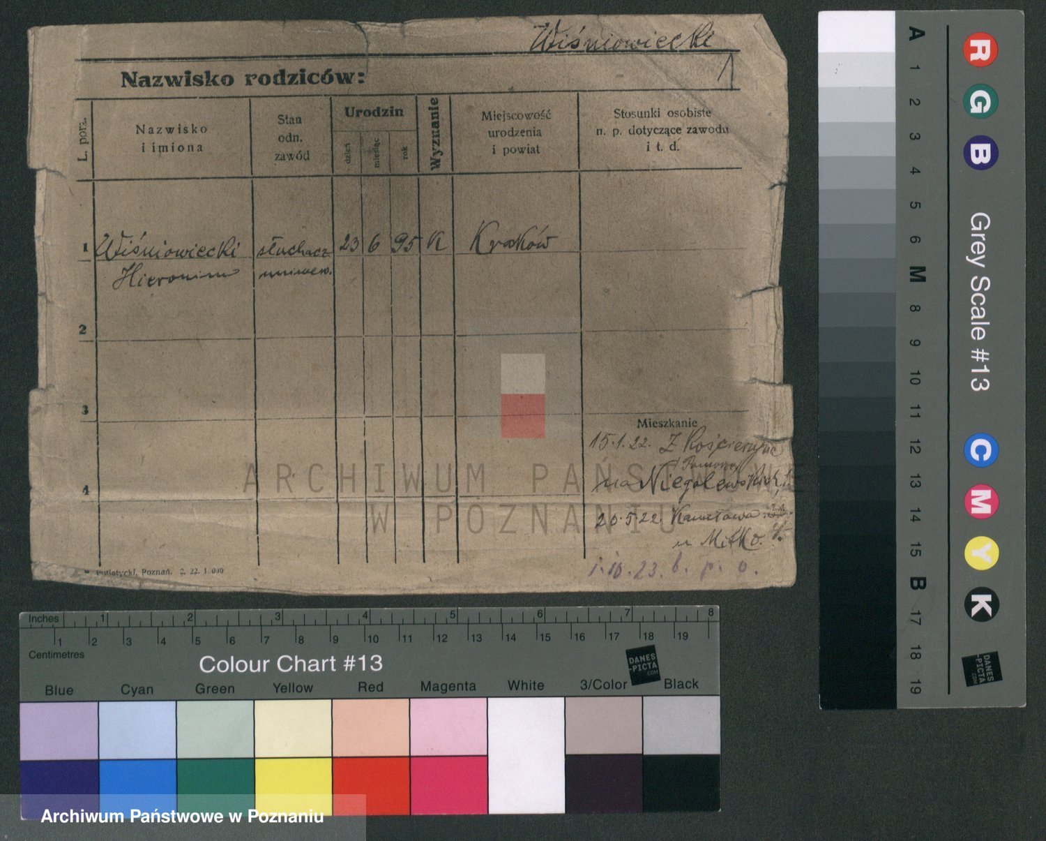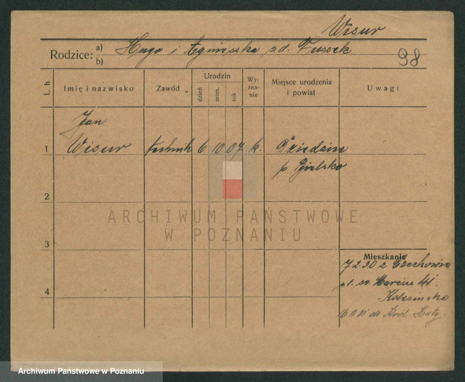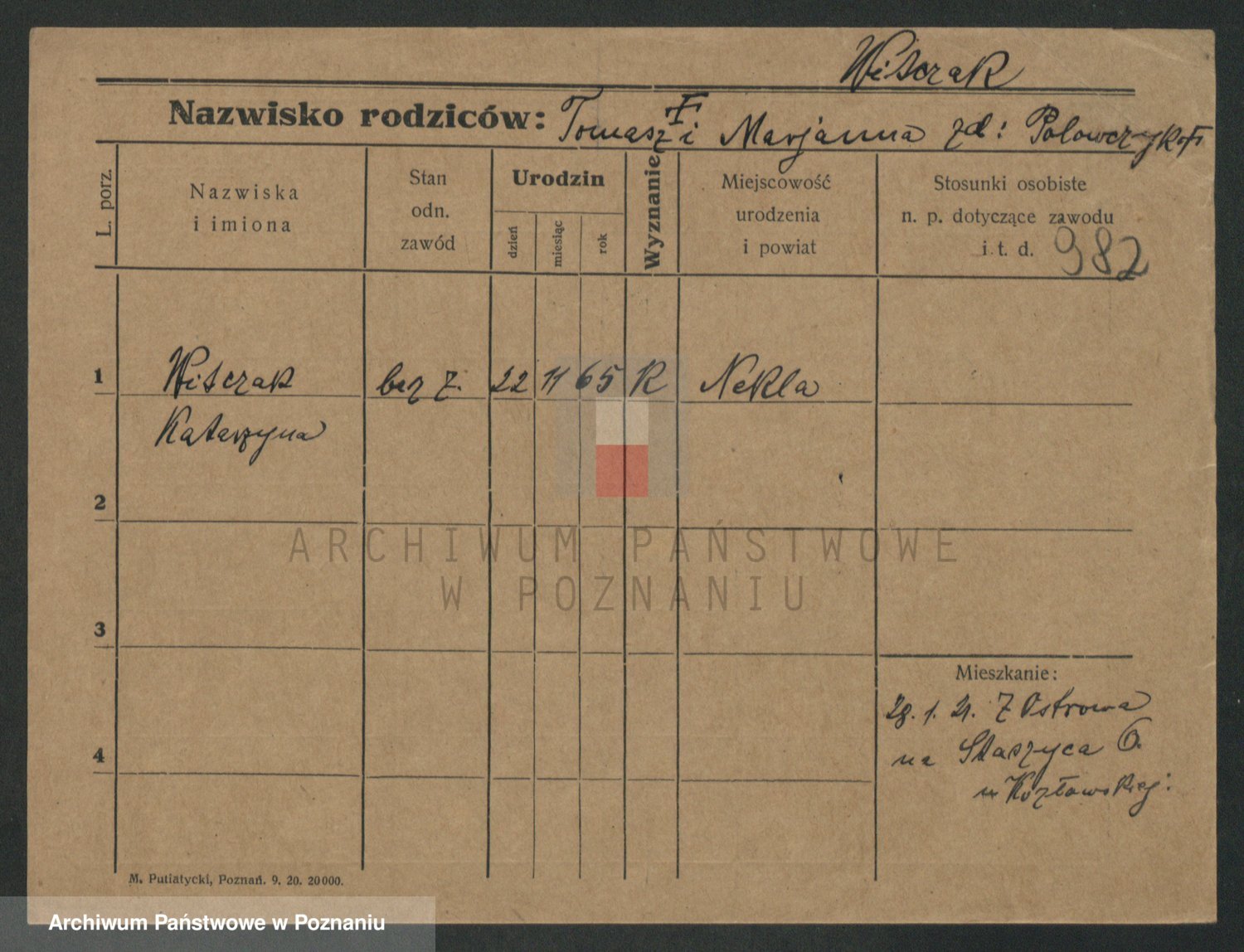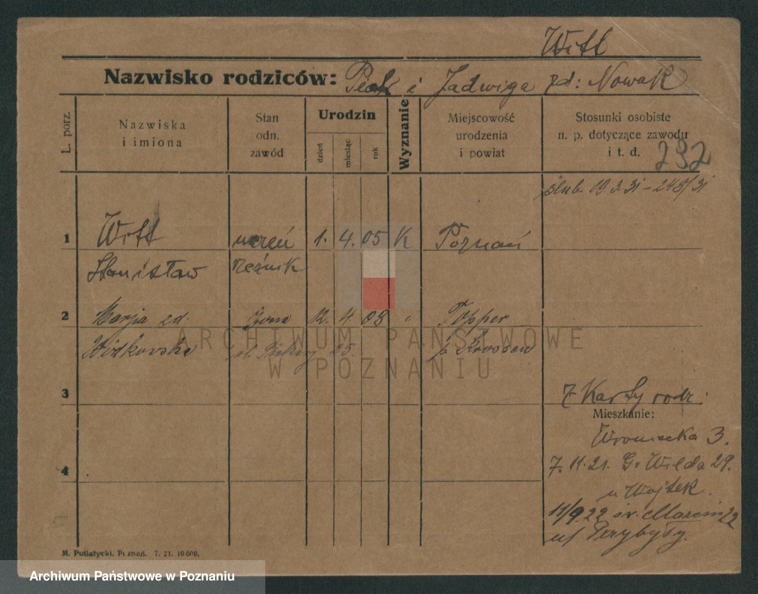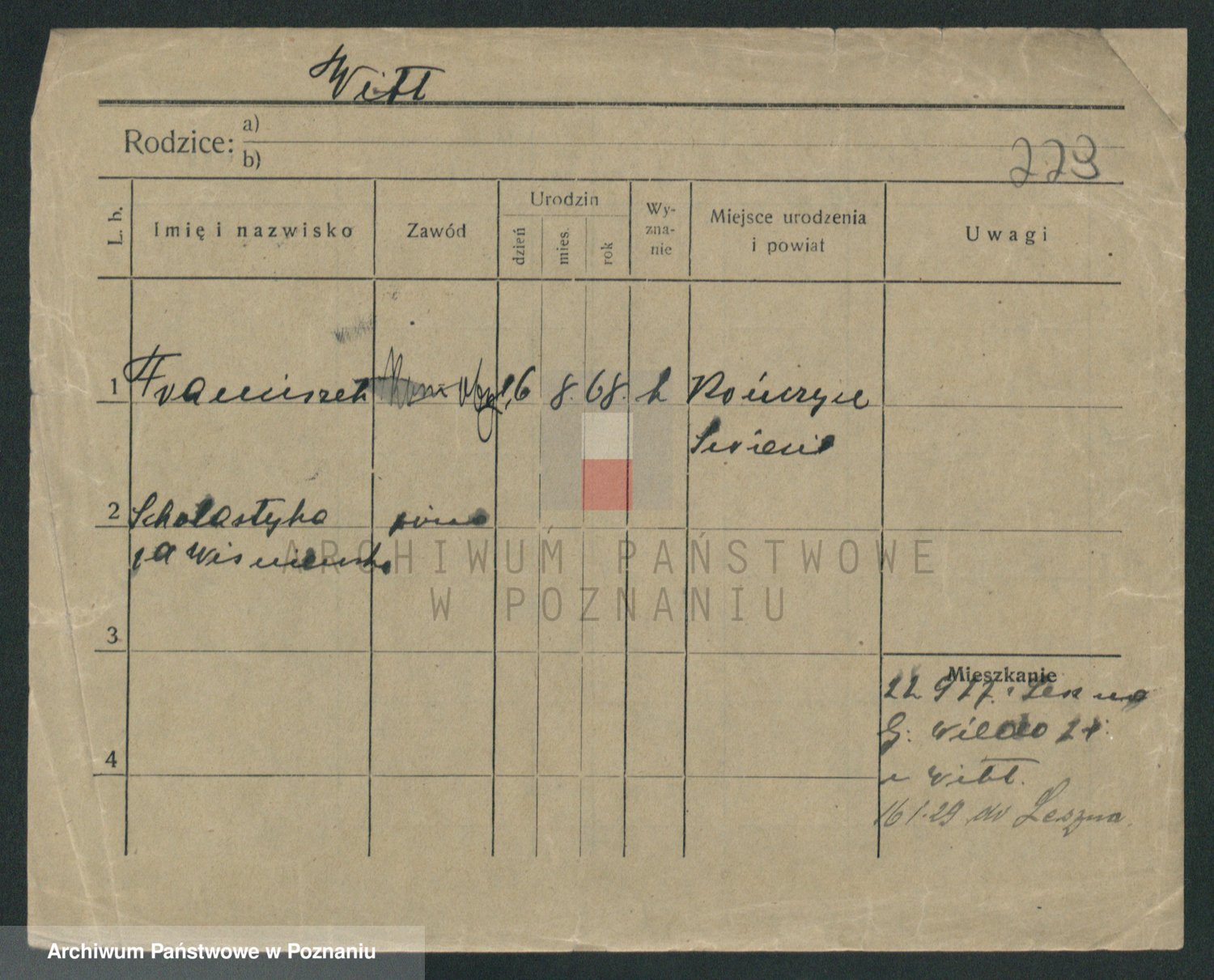 Podgląd karty osobowej dostępny jest po kliknięciu na nazwisko lub ikonkę karty. Można dokonywać powiększenia (ikony na górze) lub przechodzić między kolejnymi skanami (strzałki po bokach).