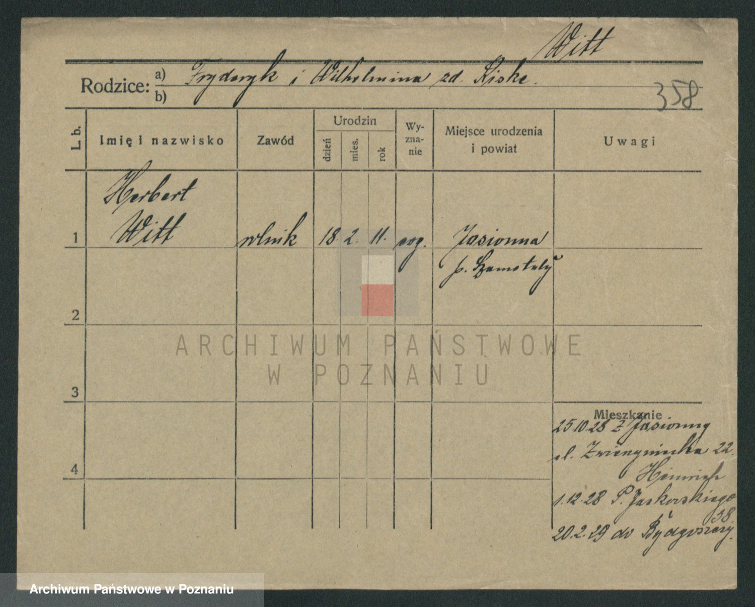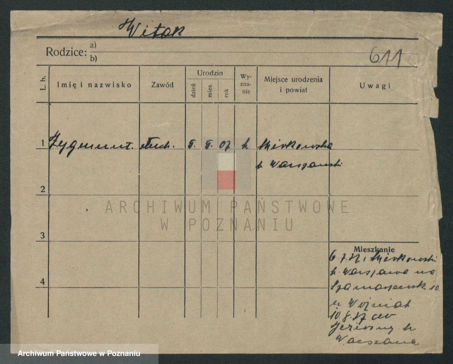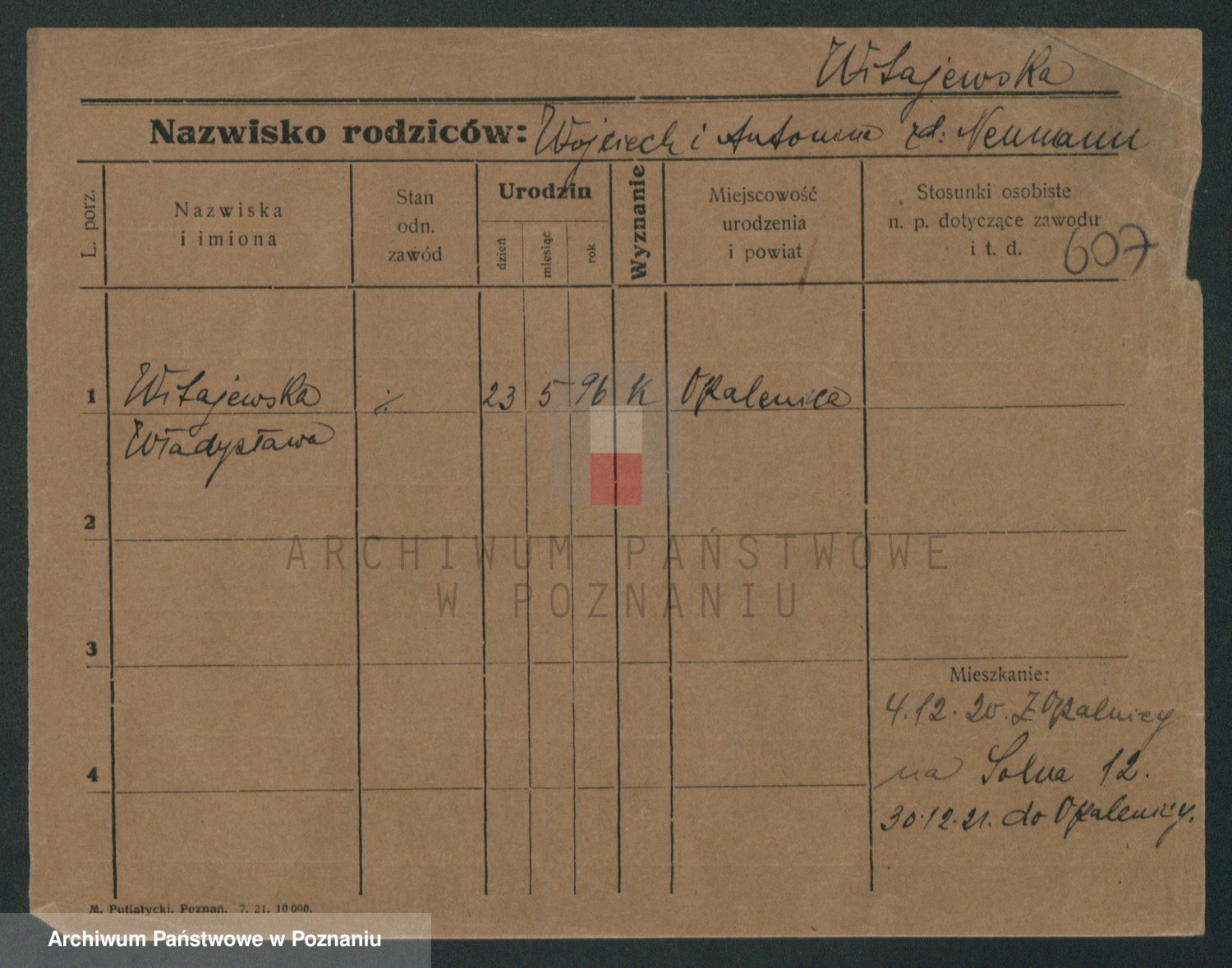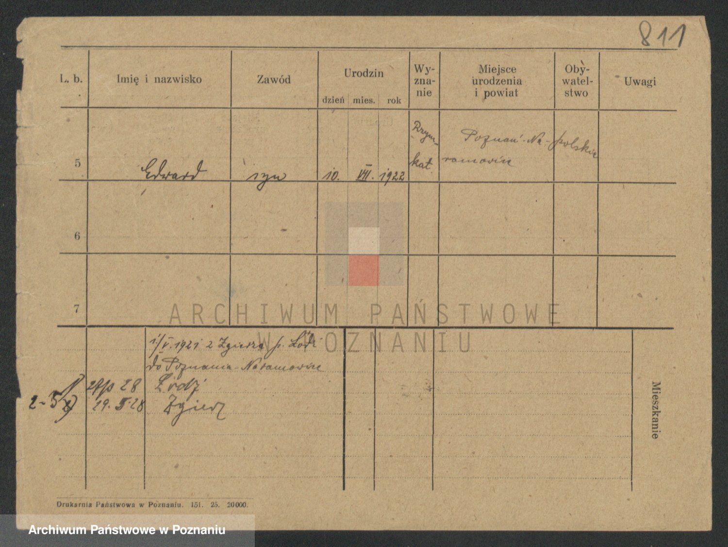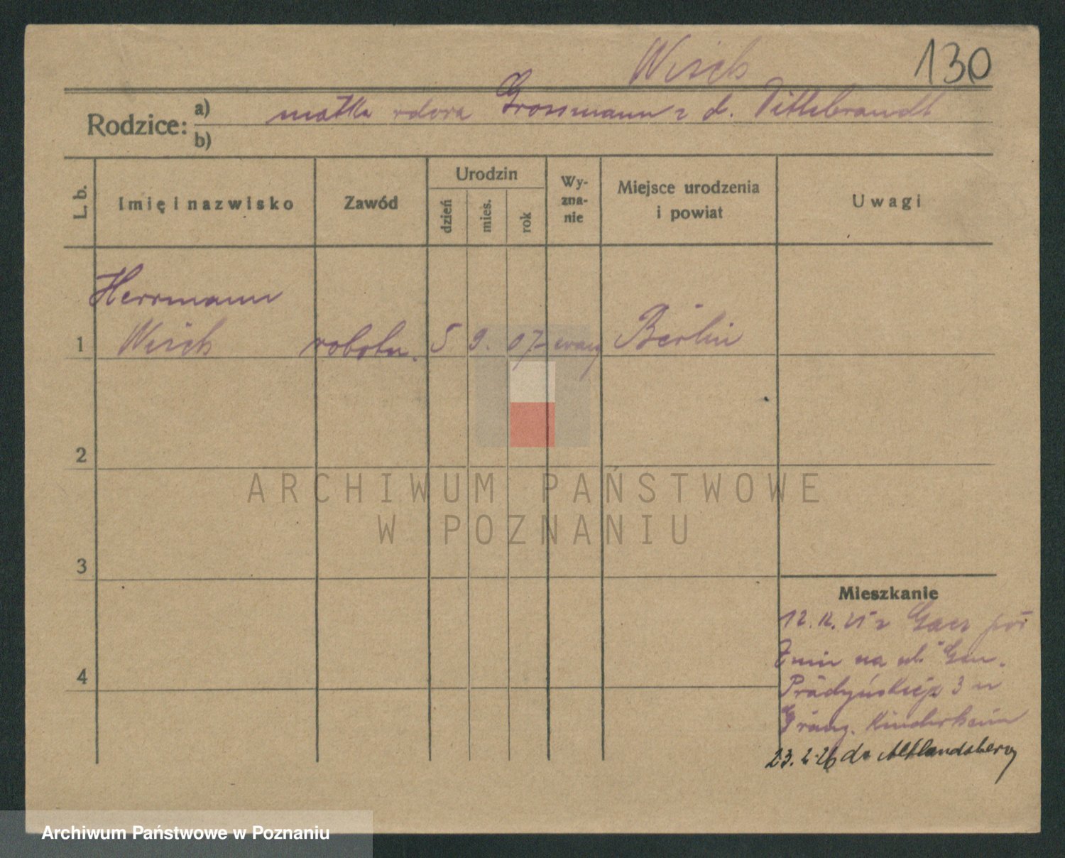Podgląd karty osobowej dostępny jest po kliknięciu na nazwisko lub ikonkę karty. Można dokonywać powiększenia (ikony na górze) lub przechodzić między kolejnymi skanami (strzałki po bokach).