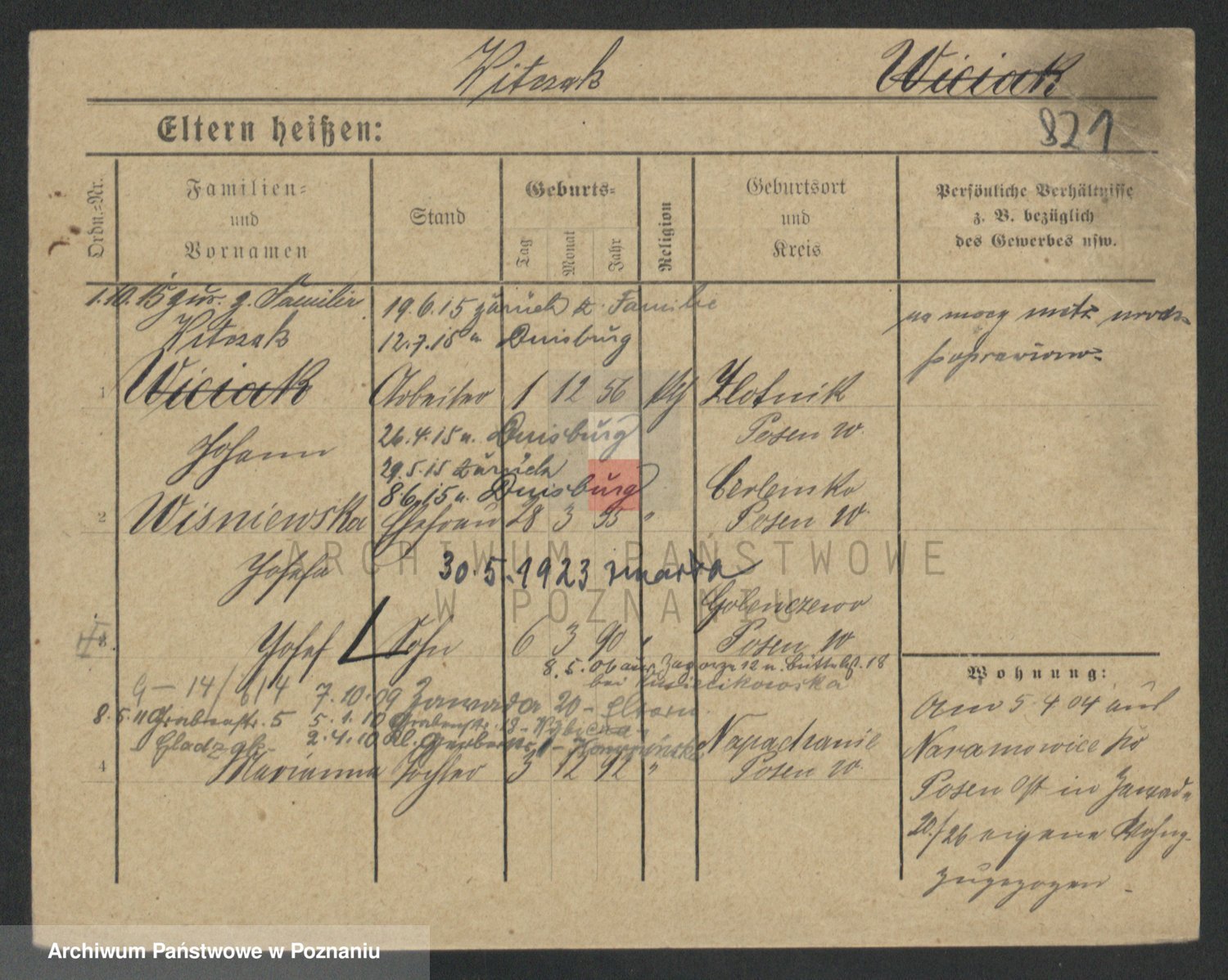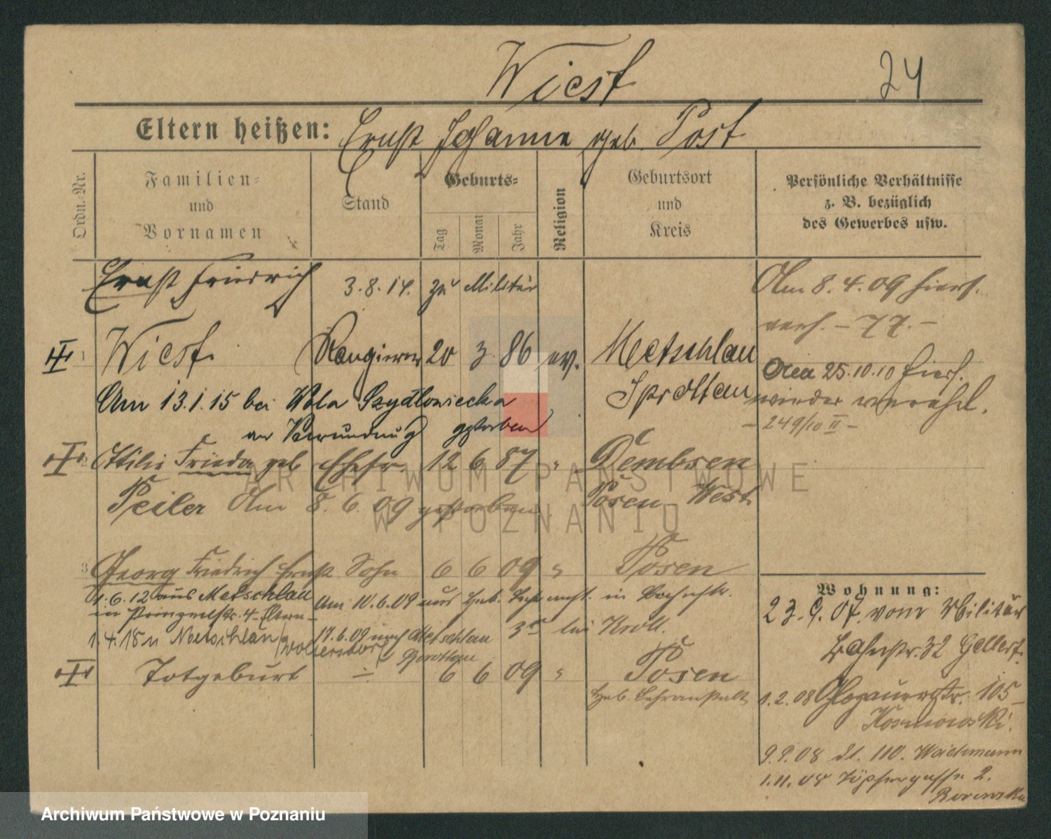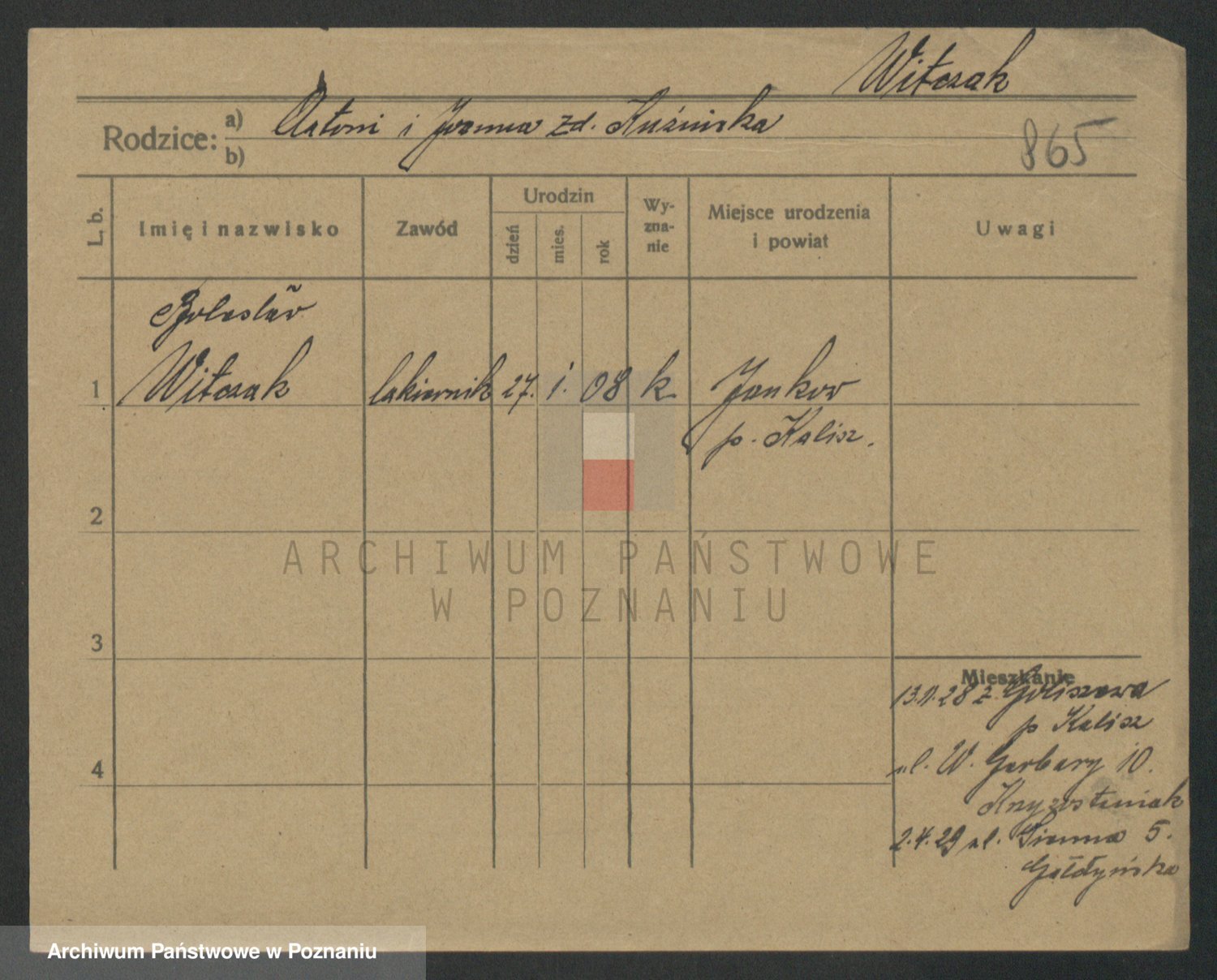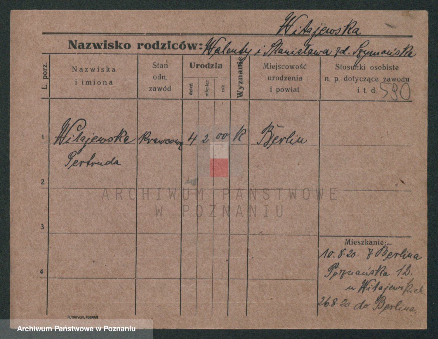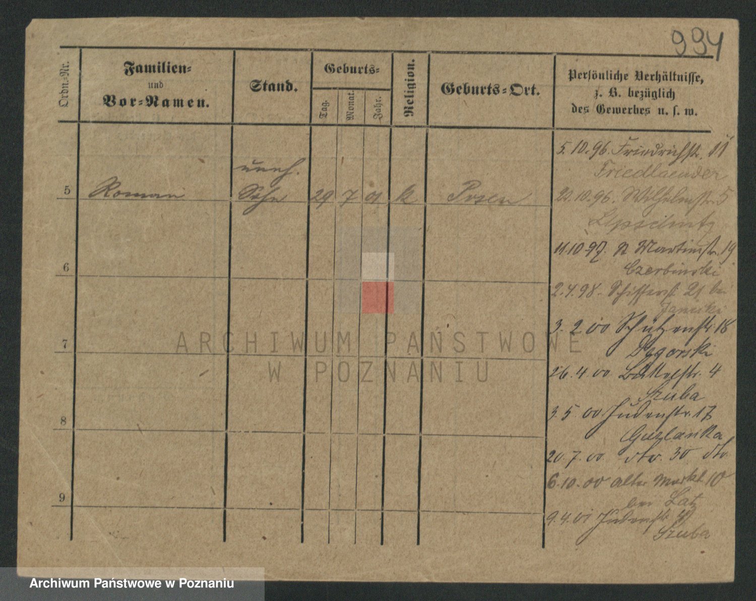 Podgląd karty osobowej dostępny jest po kliknięciu na nazwisko lub ikonkę karty. Można dokonywać powiększenia (ikony na górze) lub przechodzić między kolejnymi skanami (strzałki po bokach).