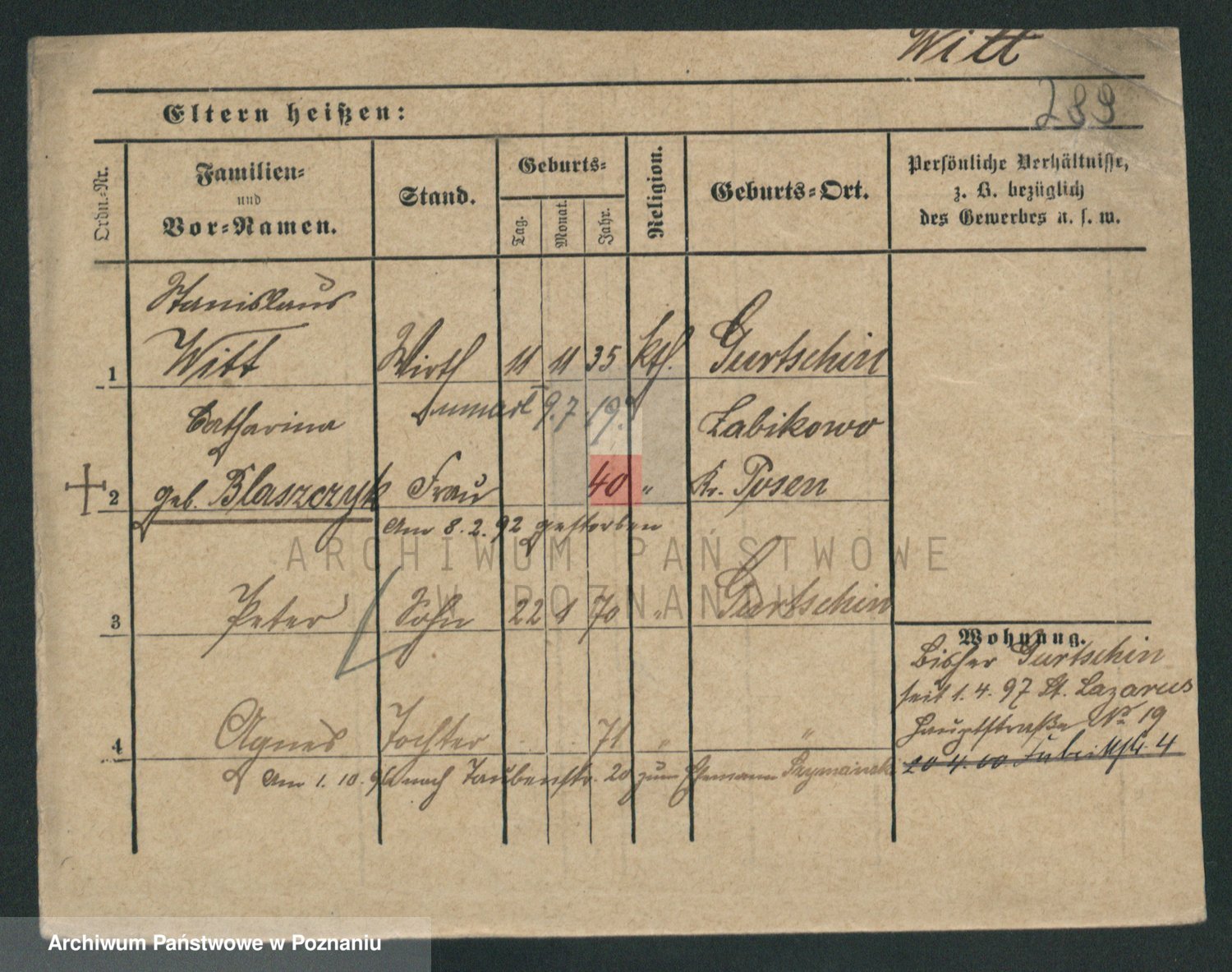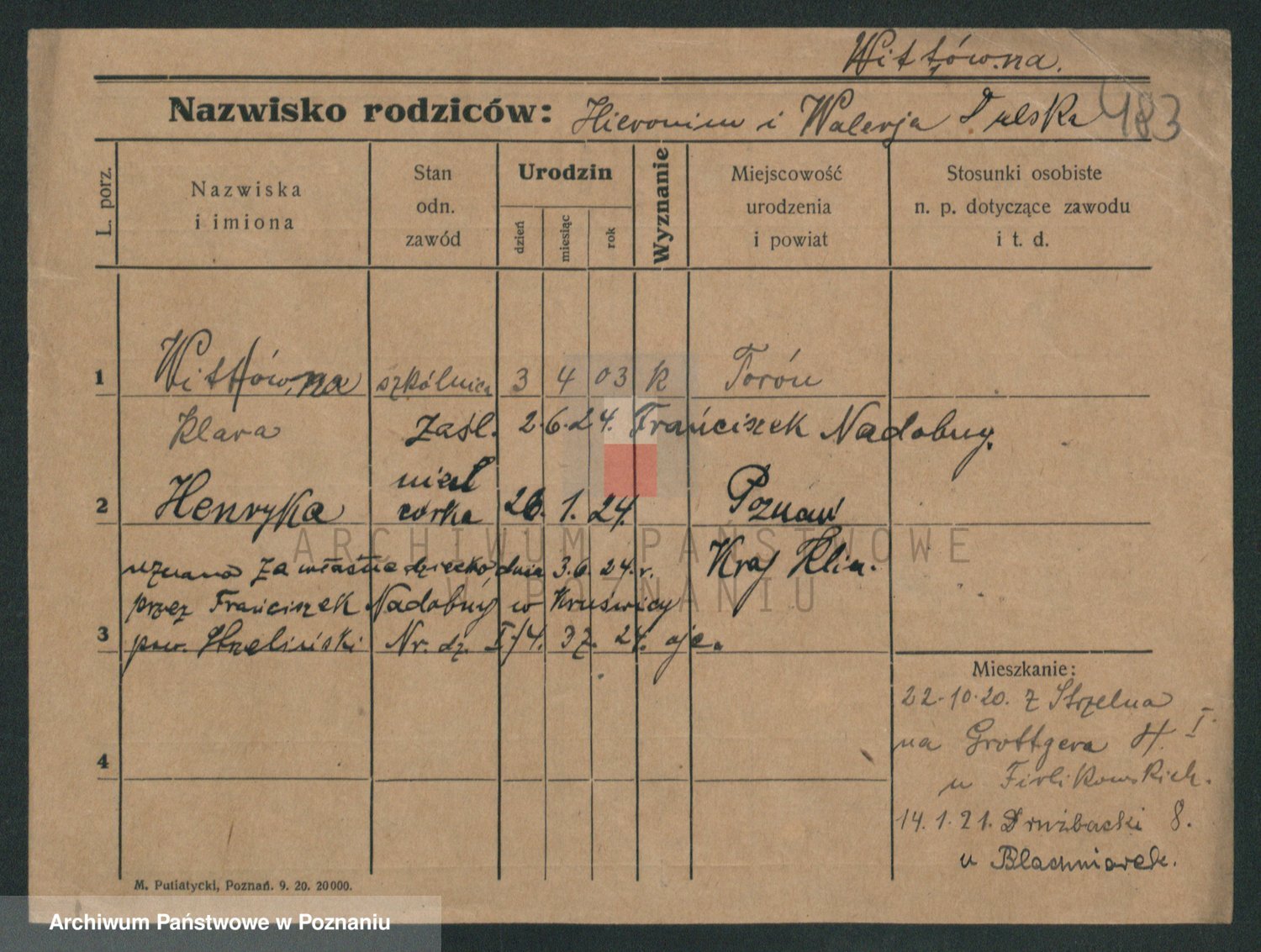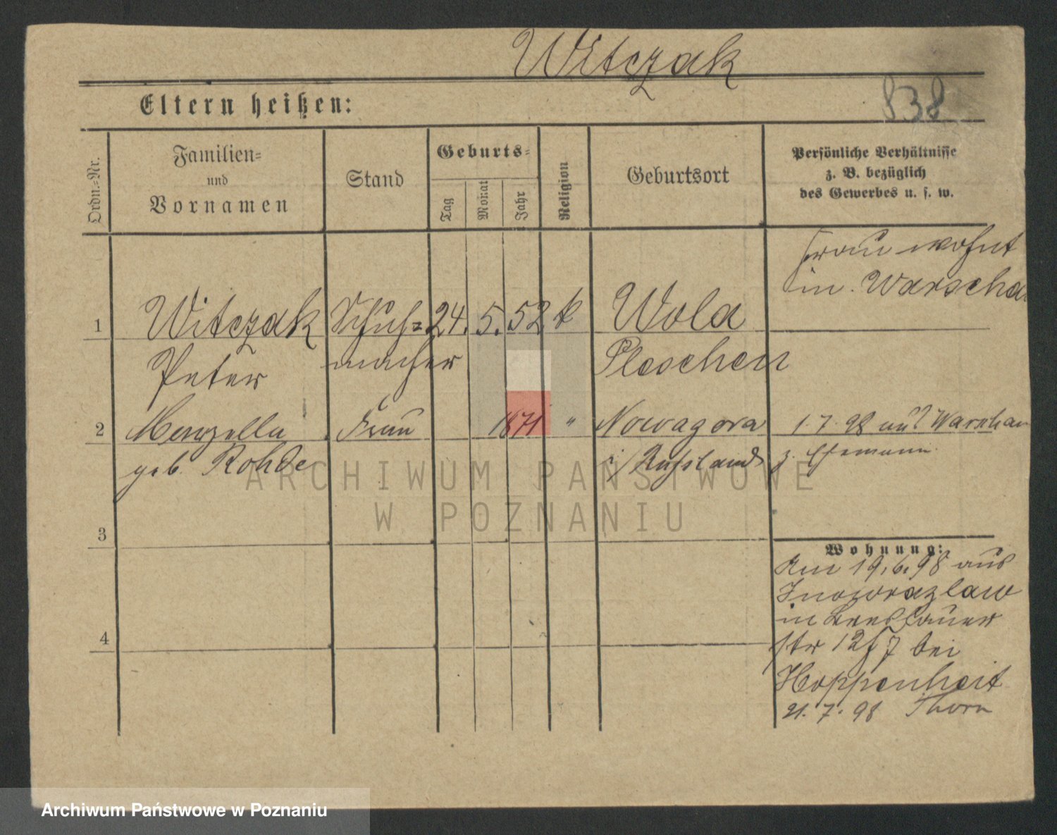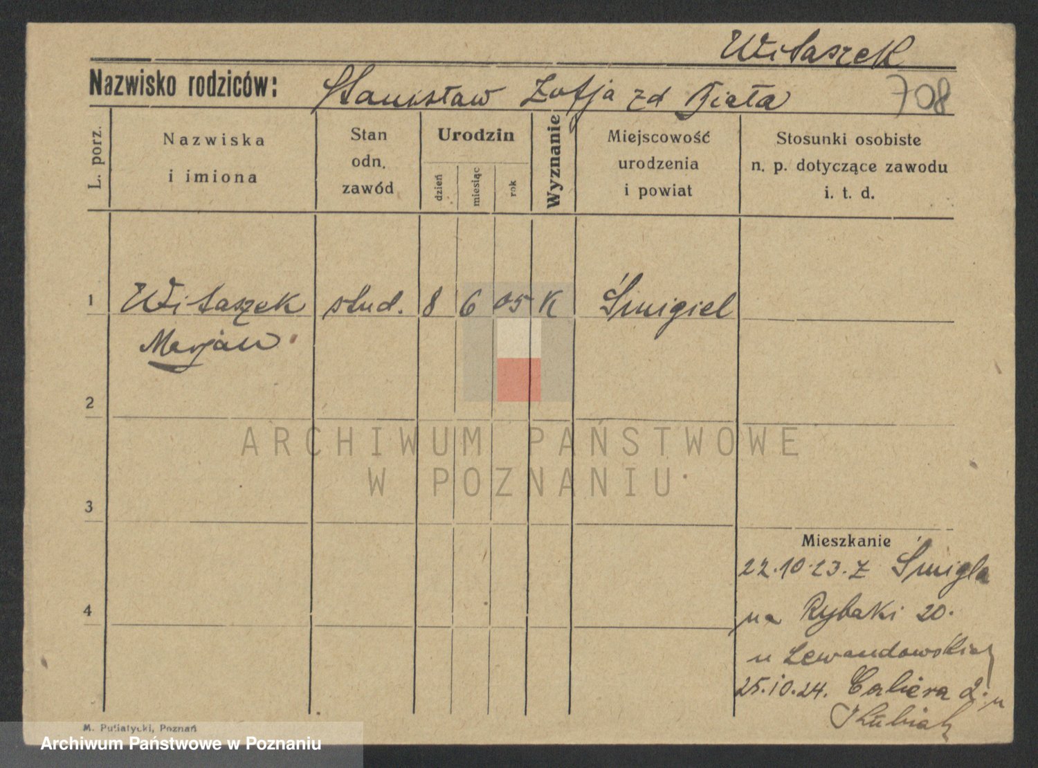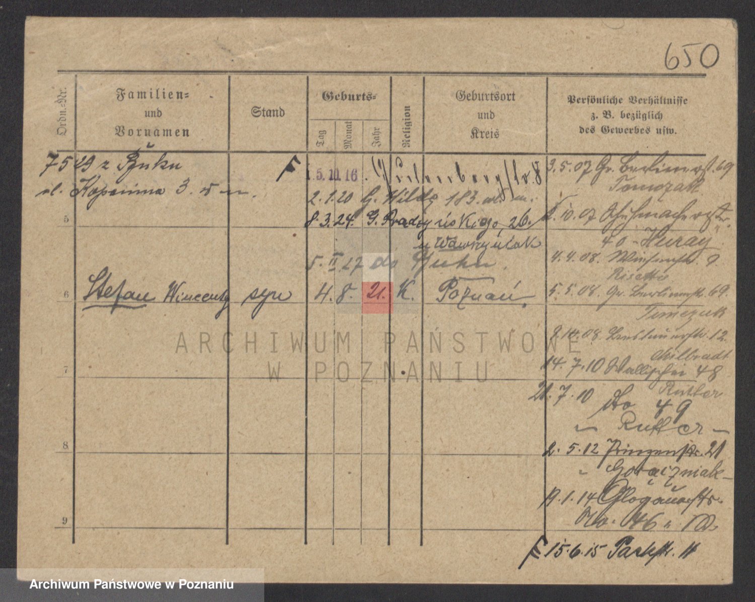 Podgląd karty osobowej dostępny jest po kliknięciu na nazwisko lub ikonkę karty. Można dokonywać powiększenia (ikony na górze) lub przechodzić między kolejnymi skanami (strzałki po bokach).