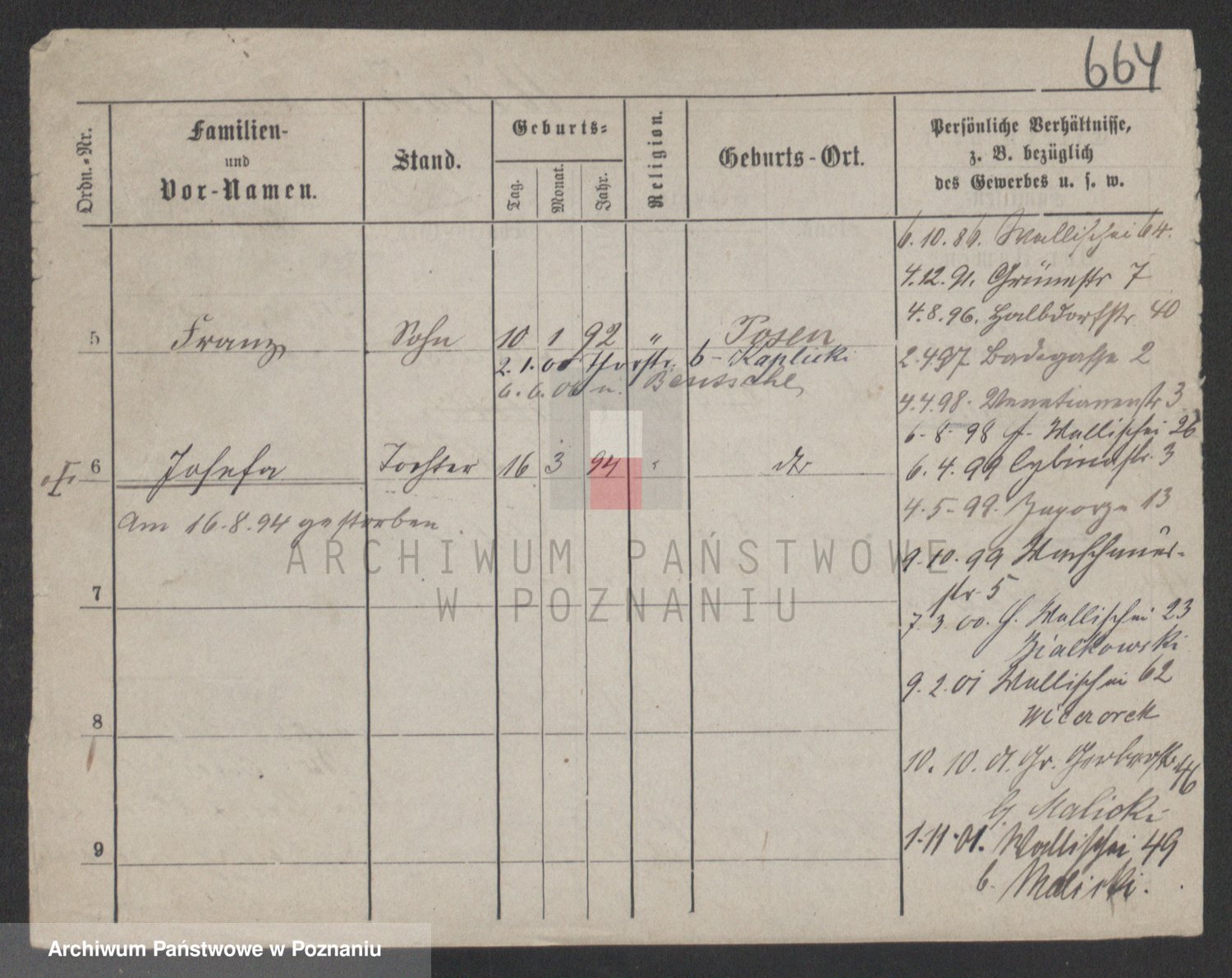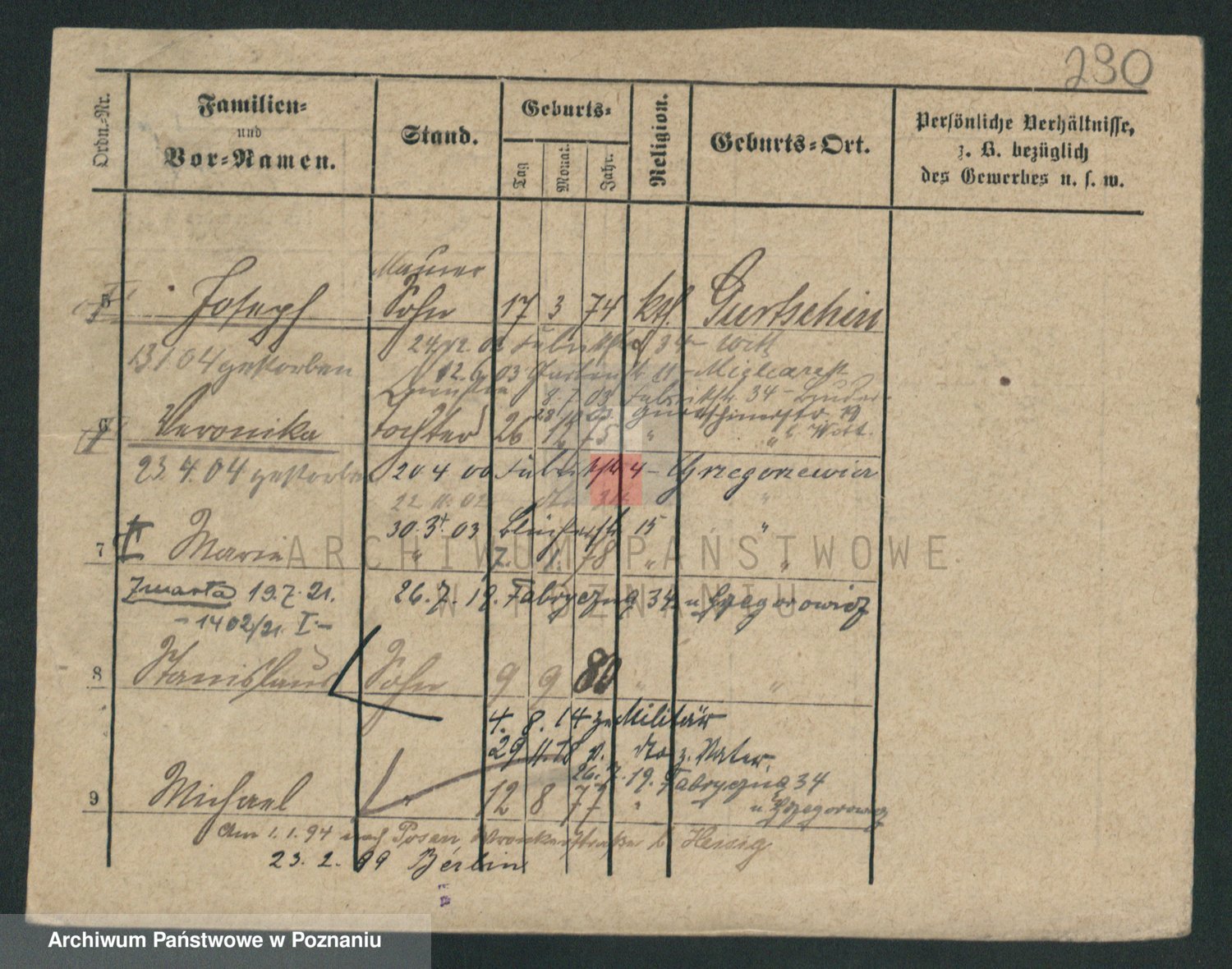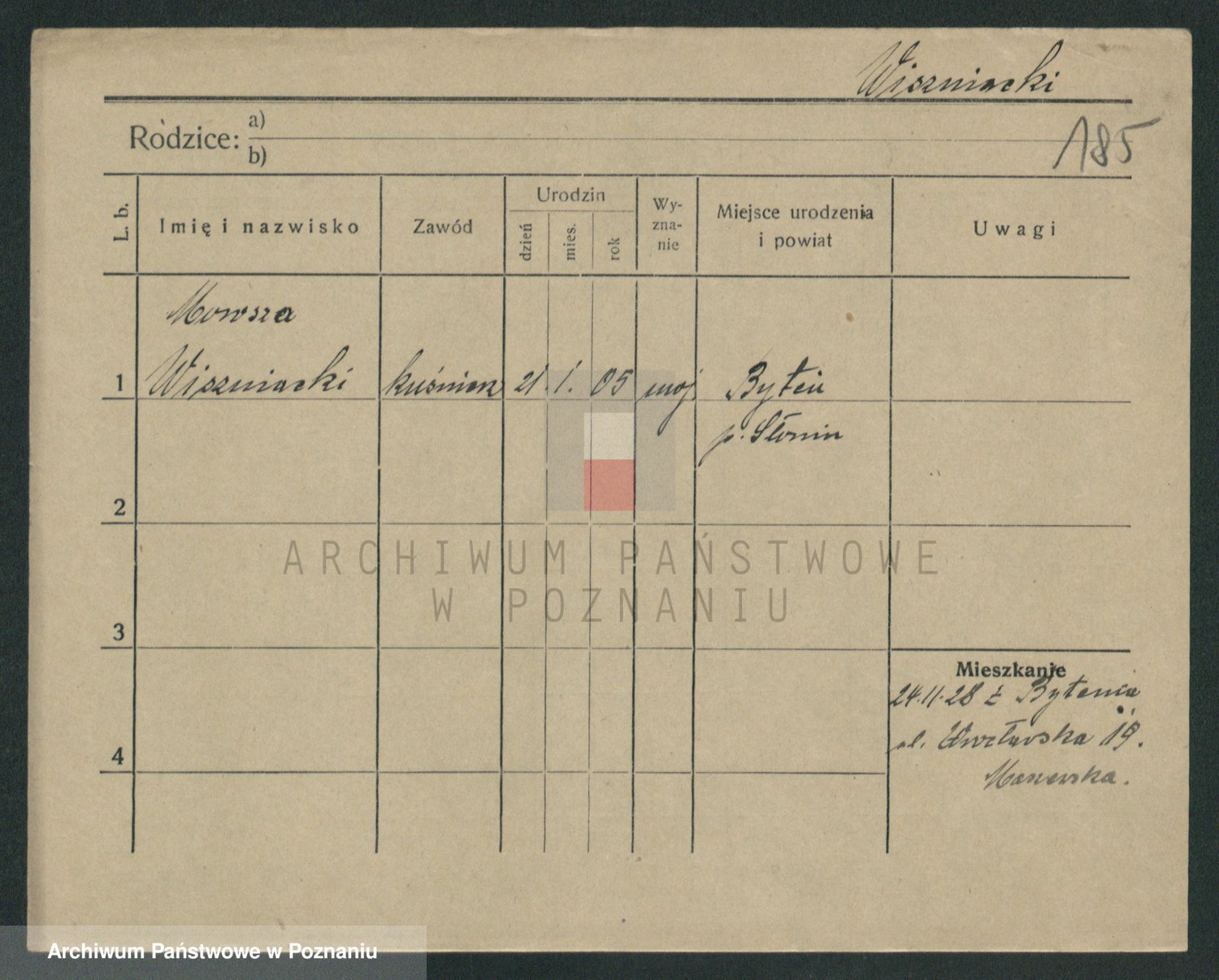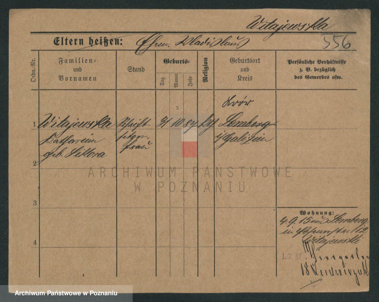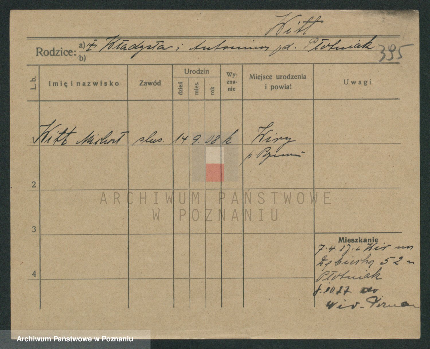 Podgląd karty osobowej dostępny jest po kliknięciu na nazwisko lub ikonkę karty. Można dokonywać powiększenia (ikony na górze) lub przechodzić między kolejnymi skanami (strzałki po bokach).