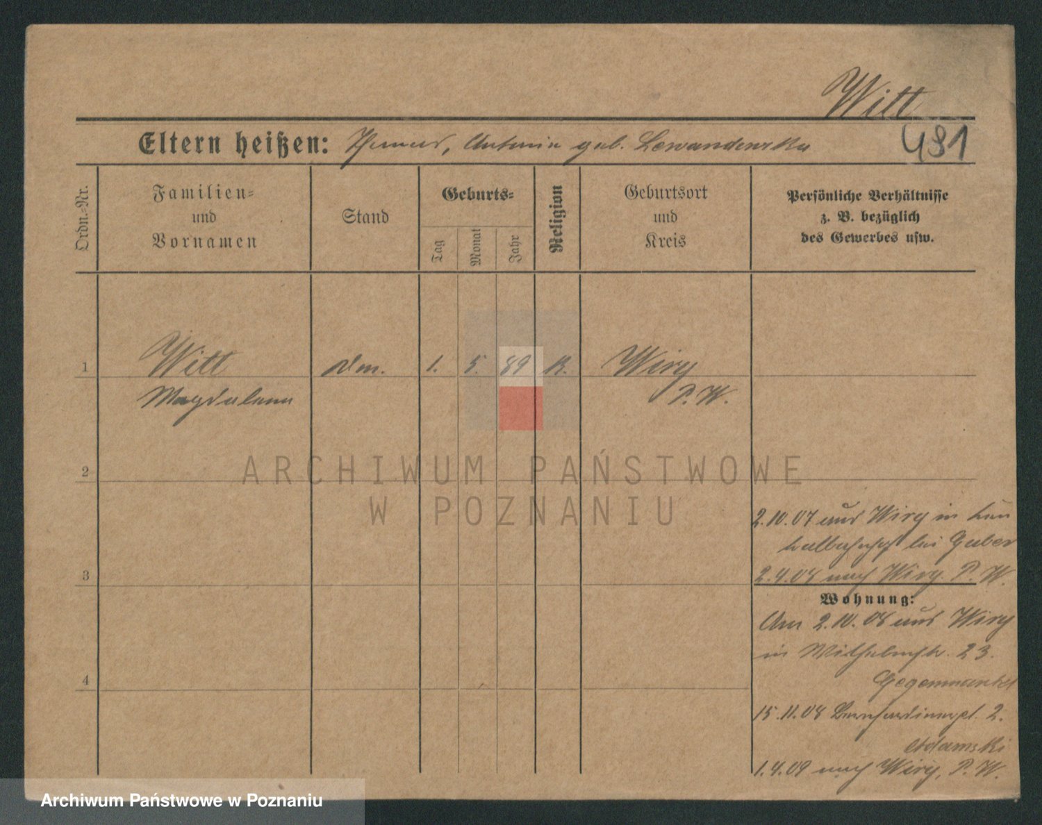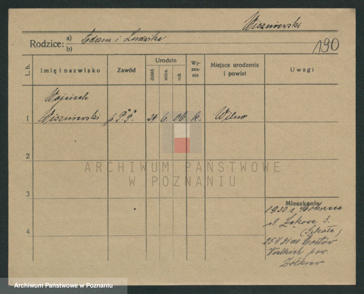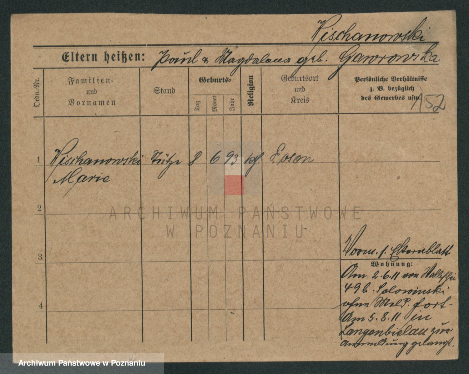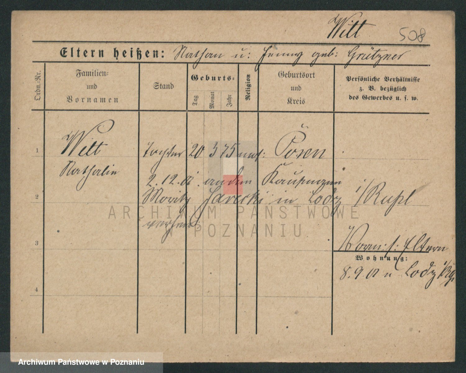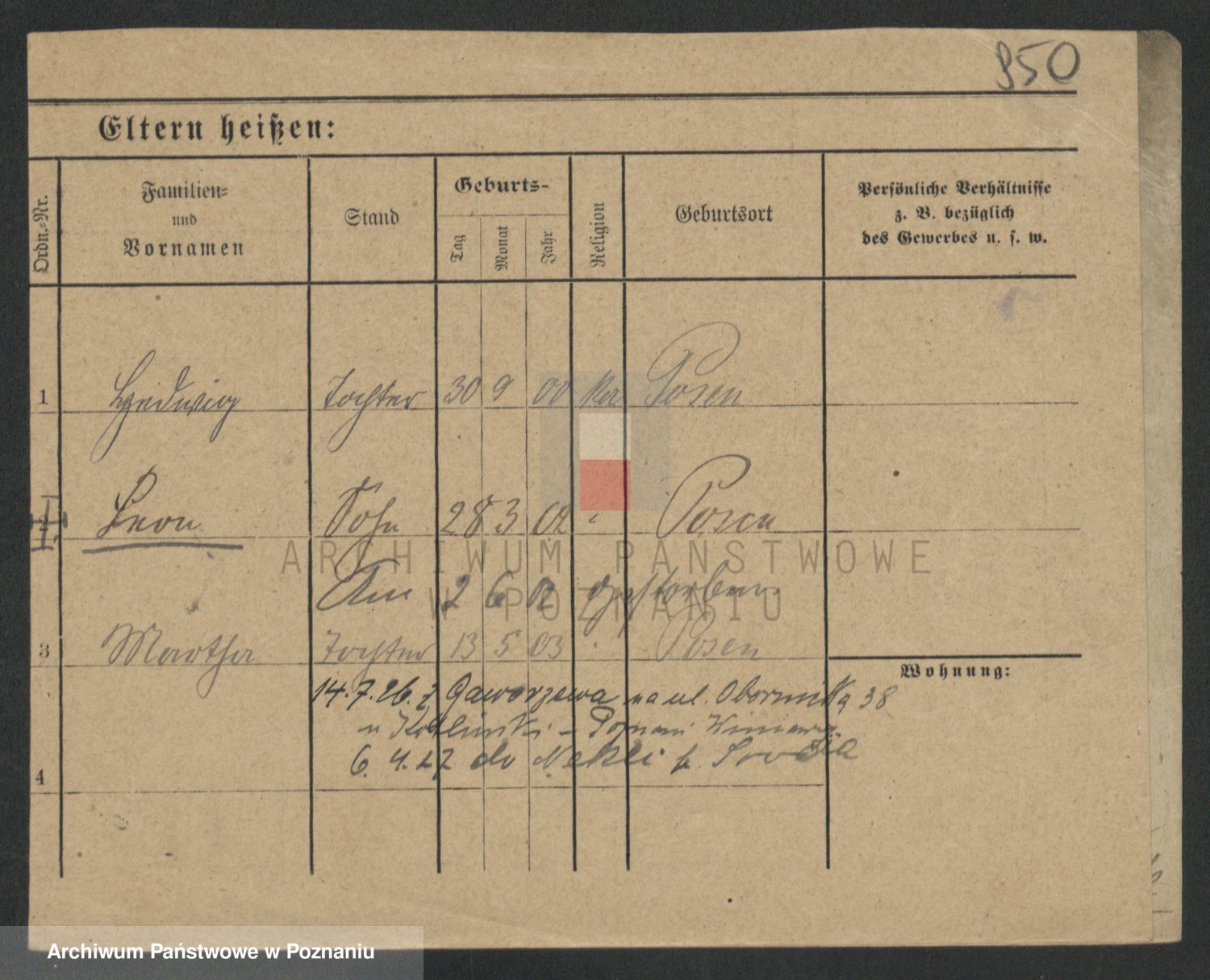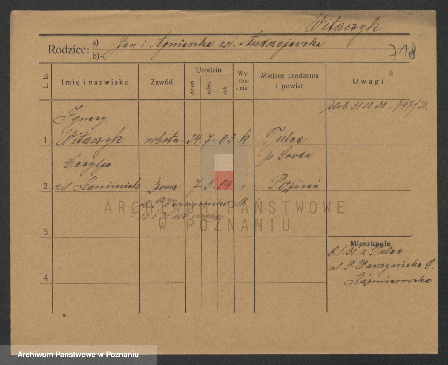 Podgląd karty osobowej dostępny jest po kliknięciu na nazwisko lub ikonkę karty. Można dokonywać powiększenia (ikony na górze) lub przechodzić między kolejnymi skanami (strzałki po bokach).