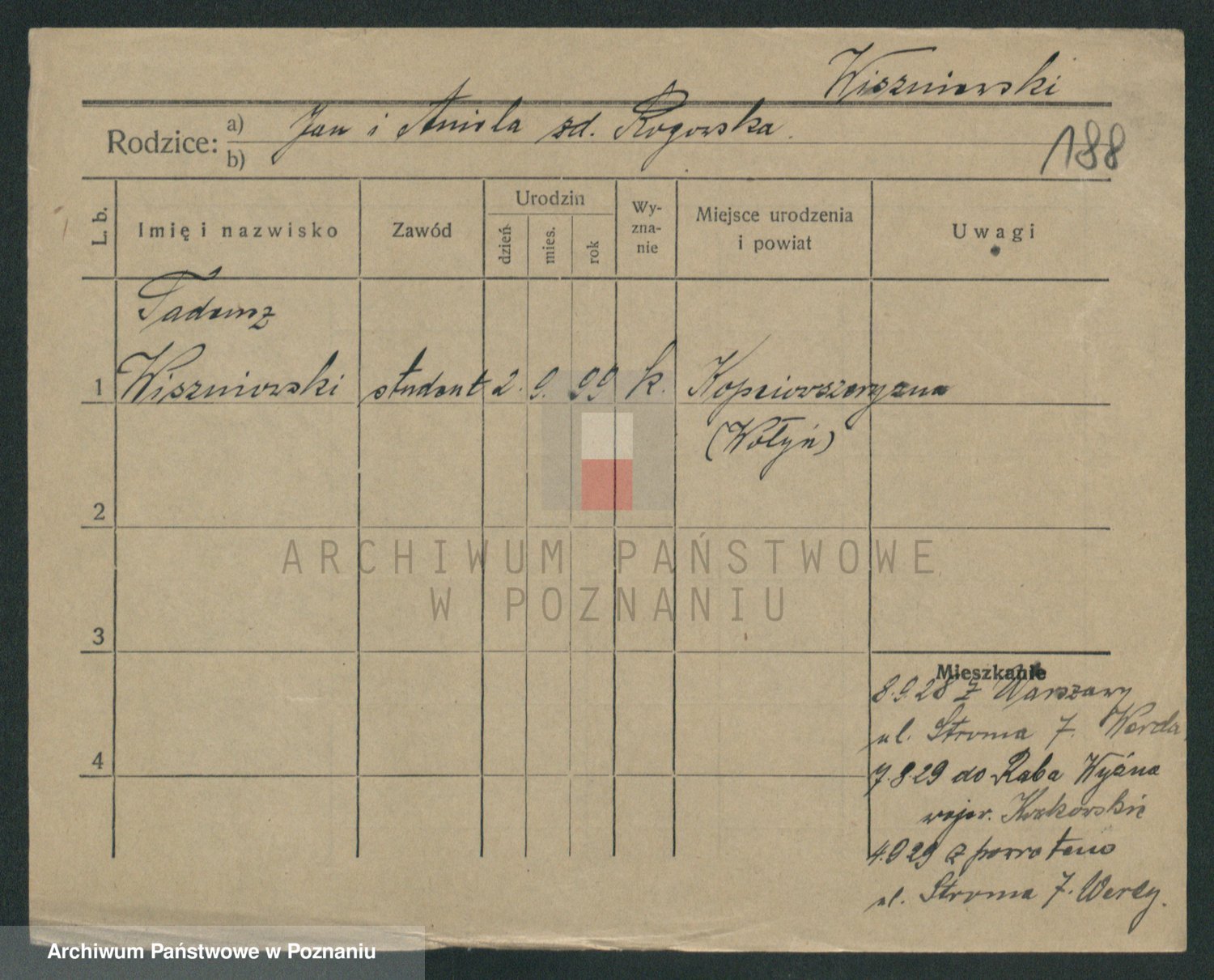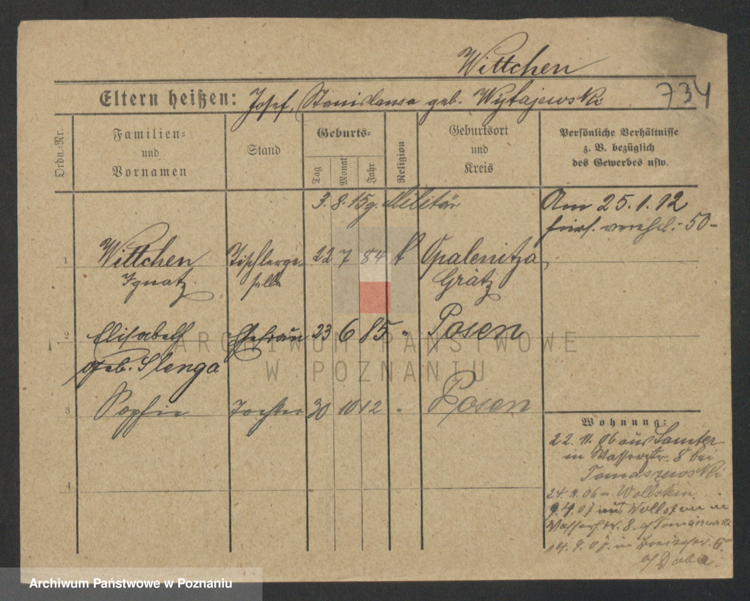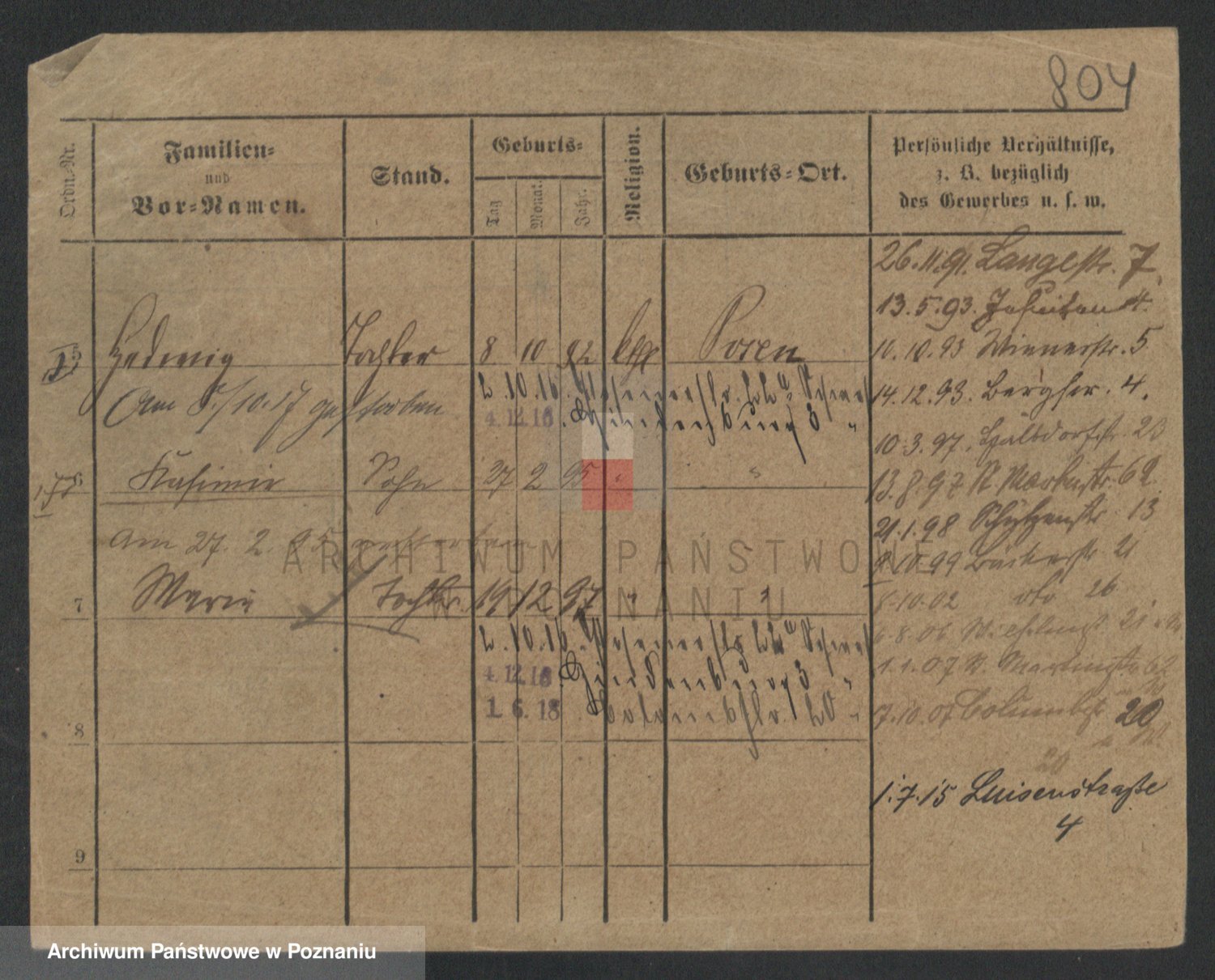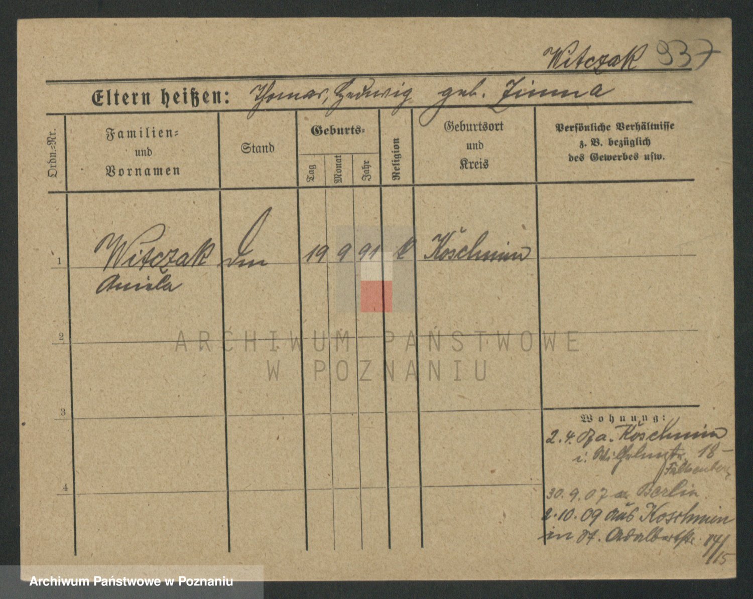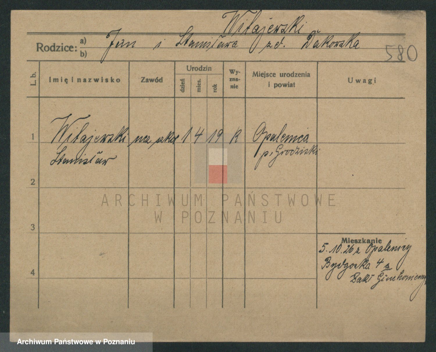 Podgląd karty osobowej dostępny jest po kliknięciu na nazwisko lub ikonkę karty. Można dokonywać powiększenia (ikony na górze) lub przechodzić między kolejnymi skanami (strzałki po bokach).