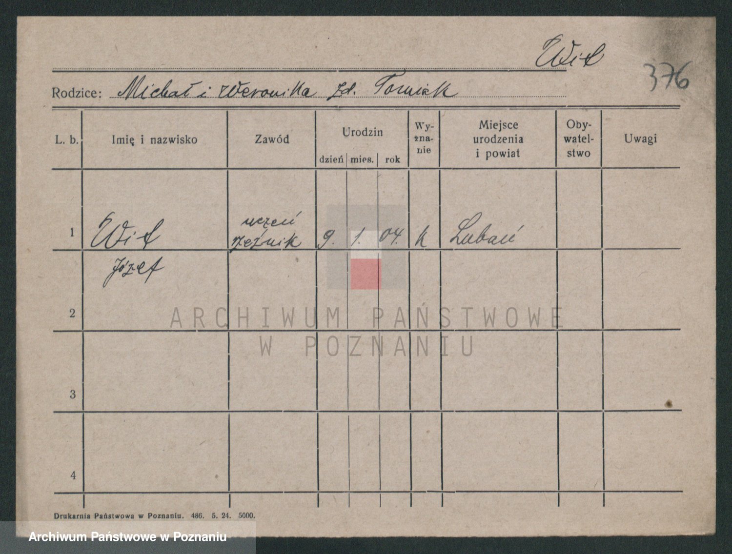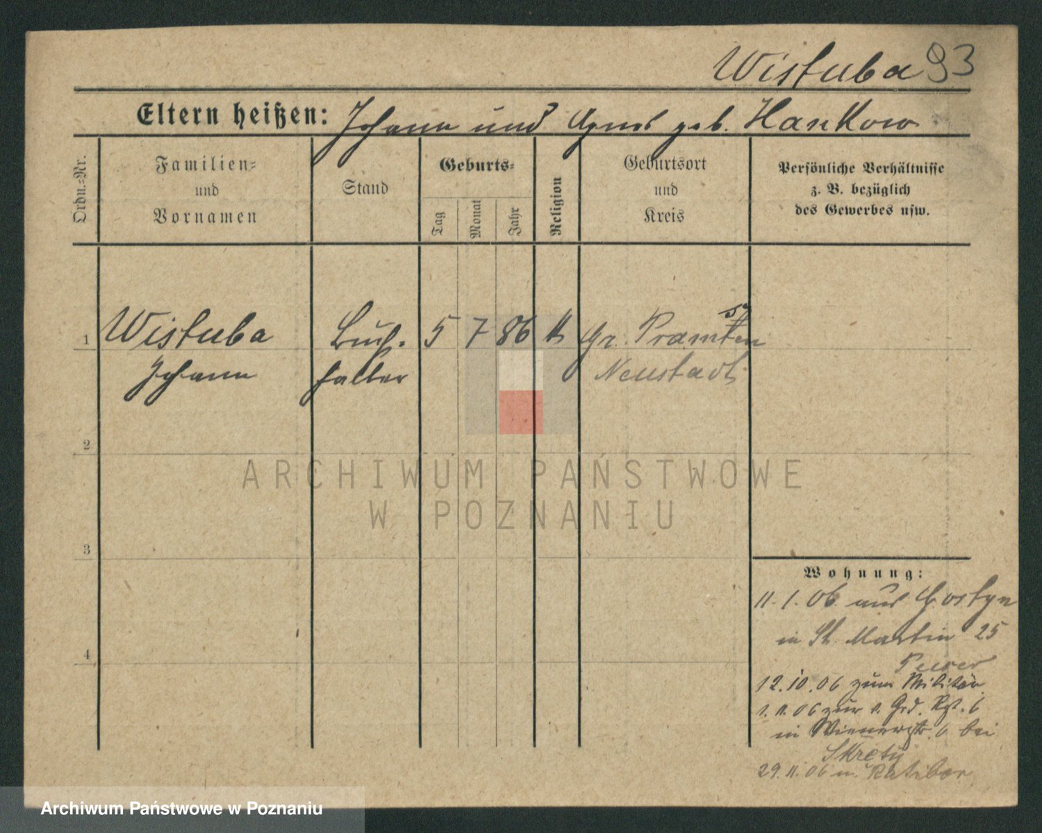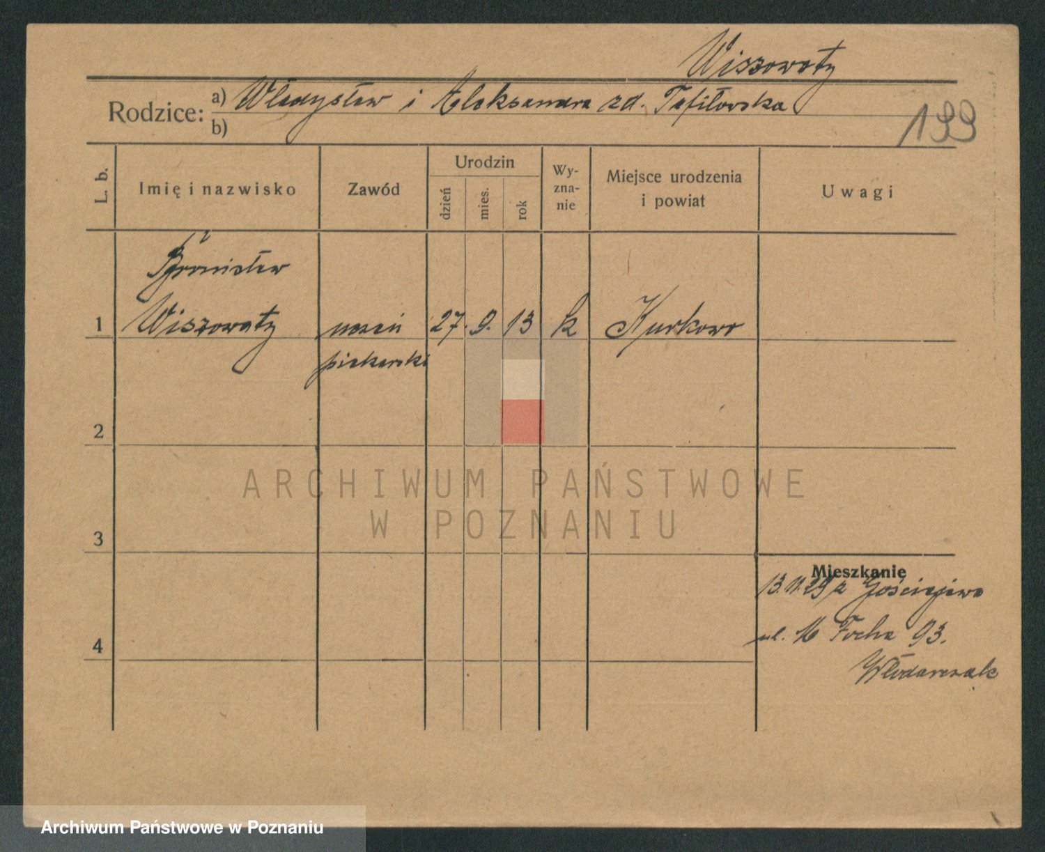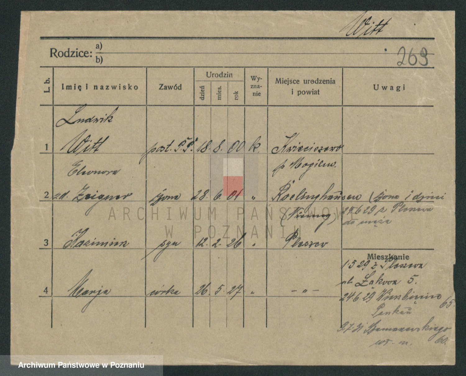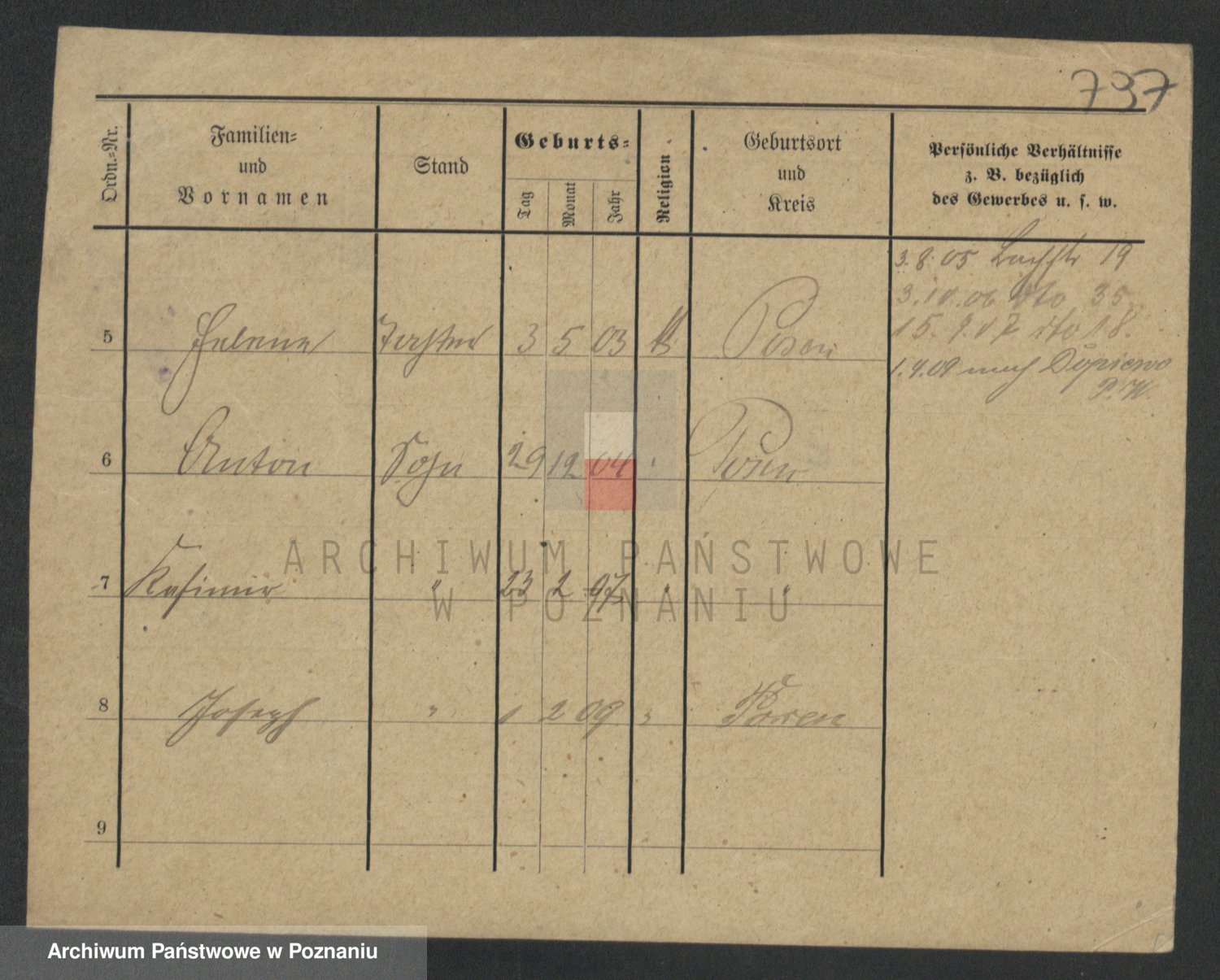Podgląd karty osobowej dostępny jest po kliknięciu na nazwisko lub ikonkę karty. Można dokonywać powiększenia (ikony na górze) lub przechodzić między kolejnymi skanami (strzałki po bokach).