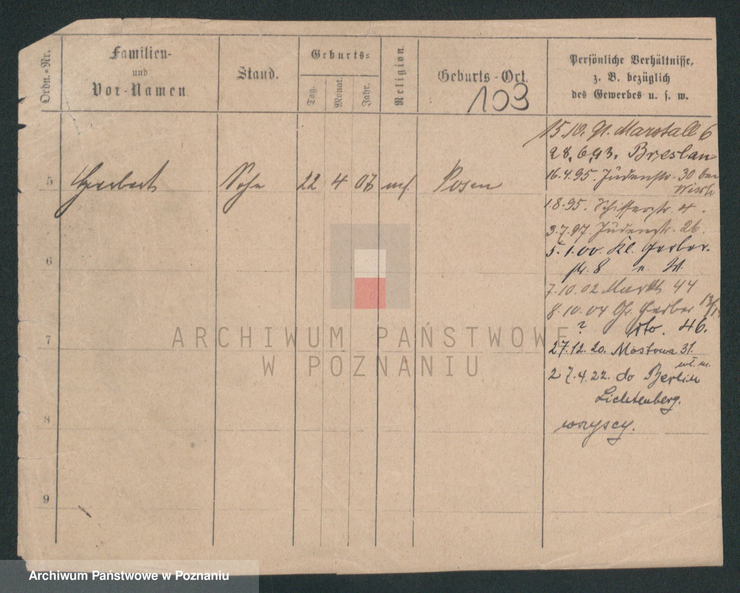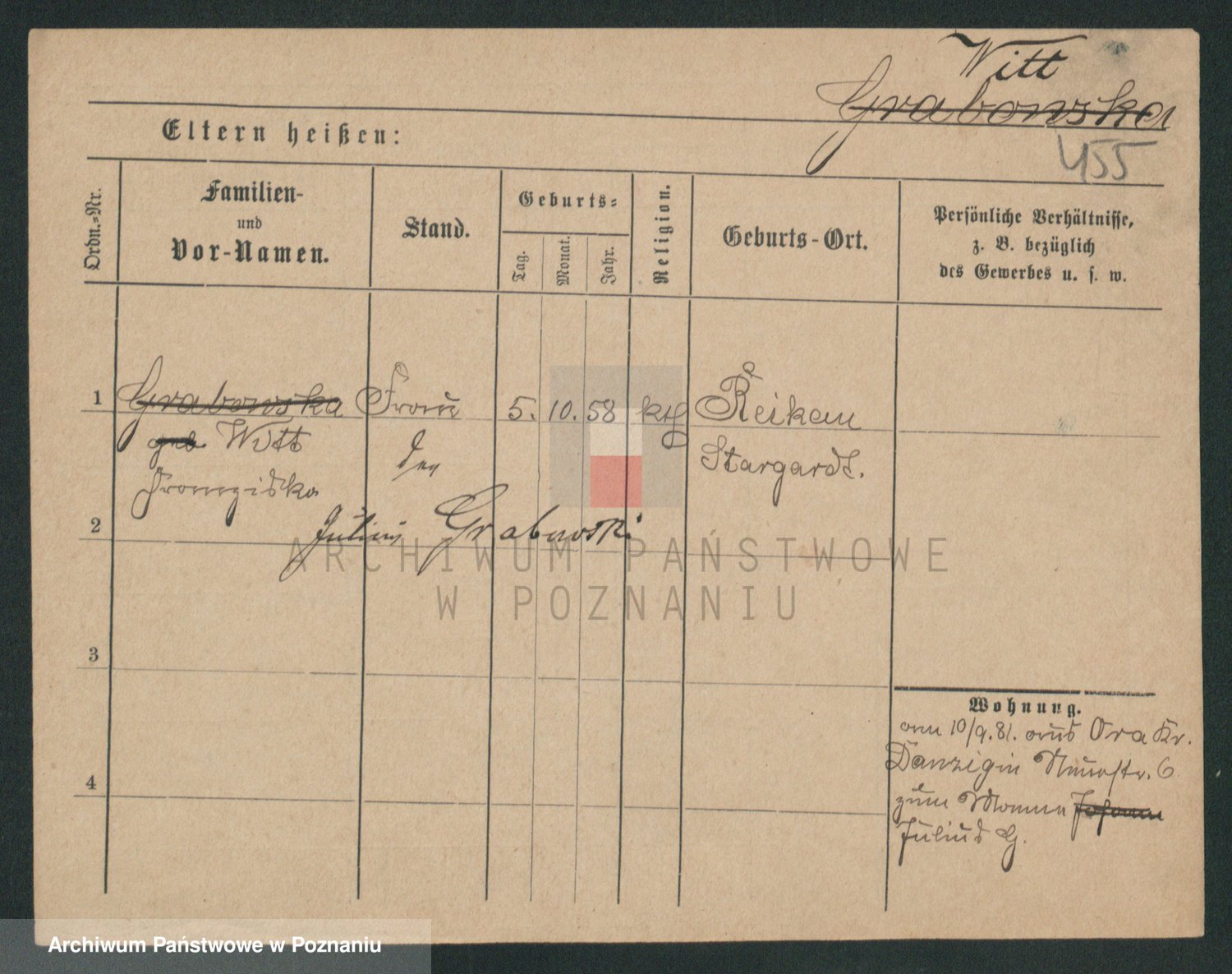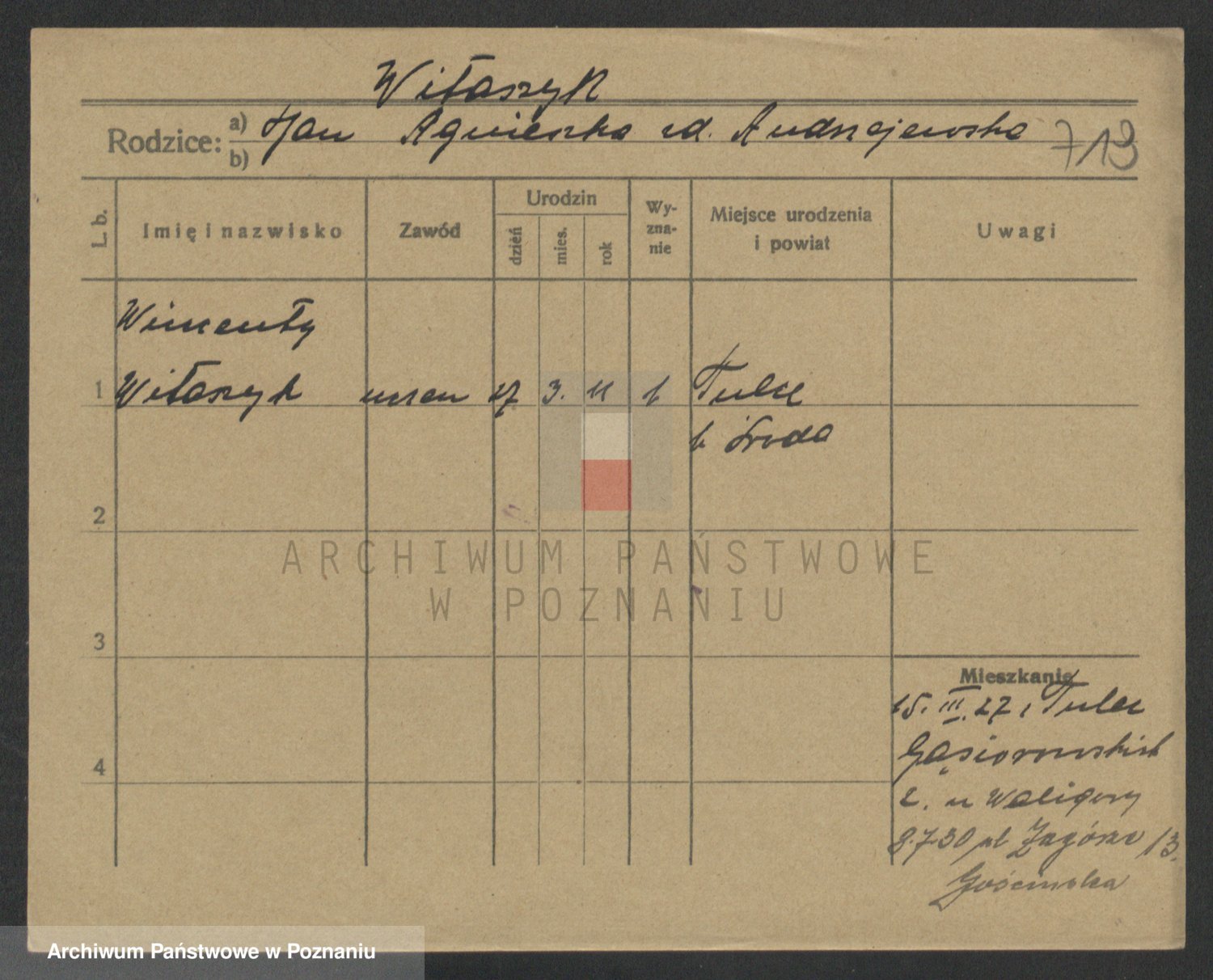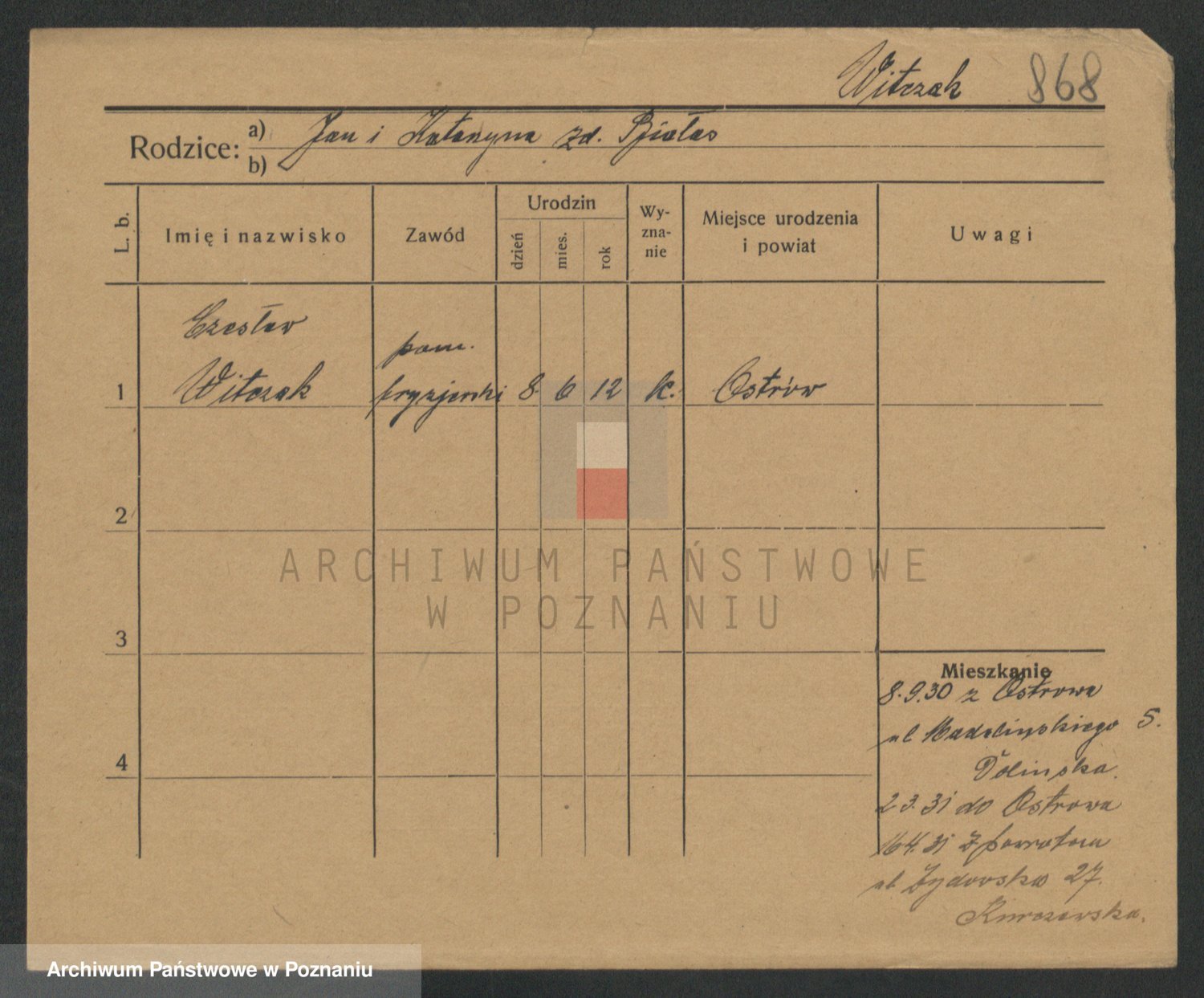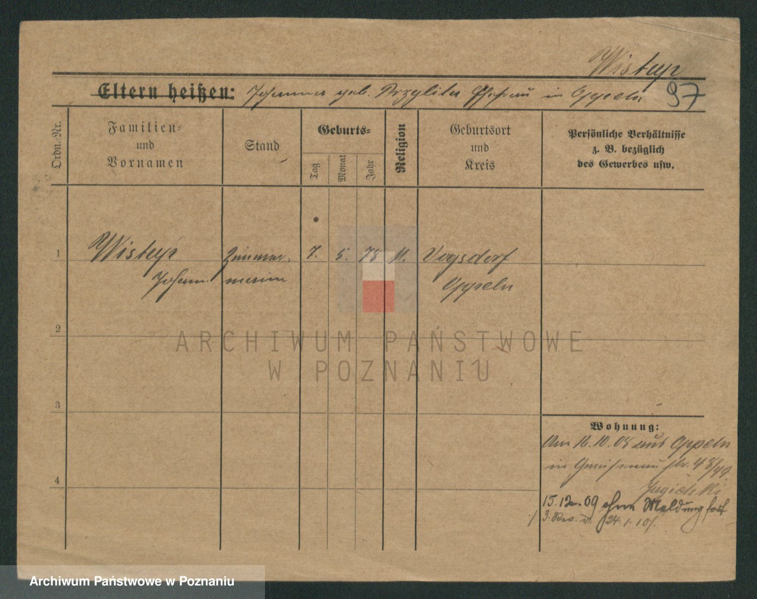 Podgląd karty osobowej dostępny jest po kliknięciu na nazwisko lub ikonkę karty. Można dokonywać powiększenia (ikony na górze) lub przechodzić między kolejnymi skanami (strzałki po bokach).