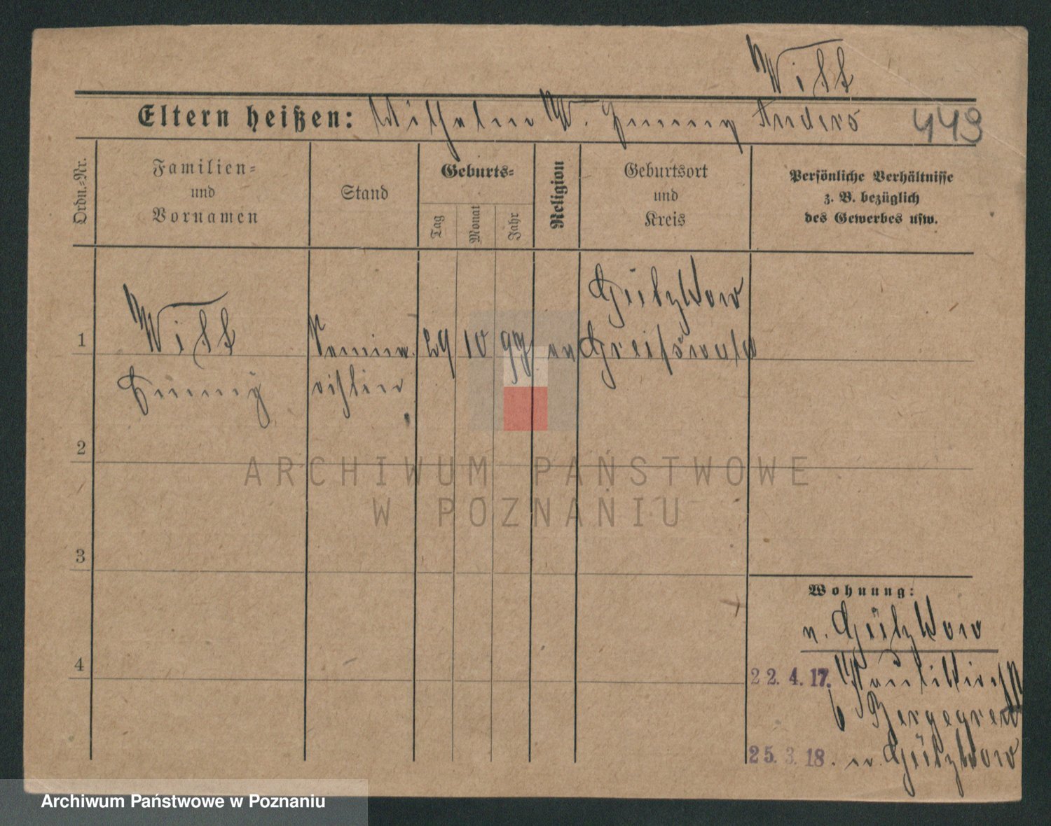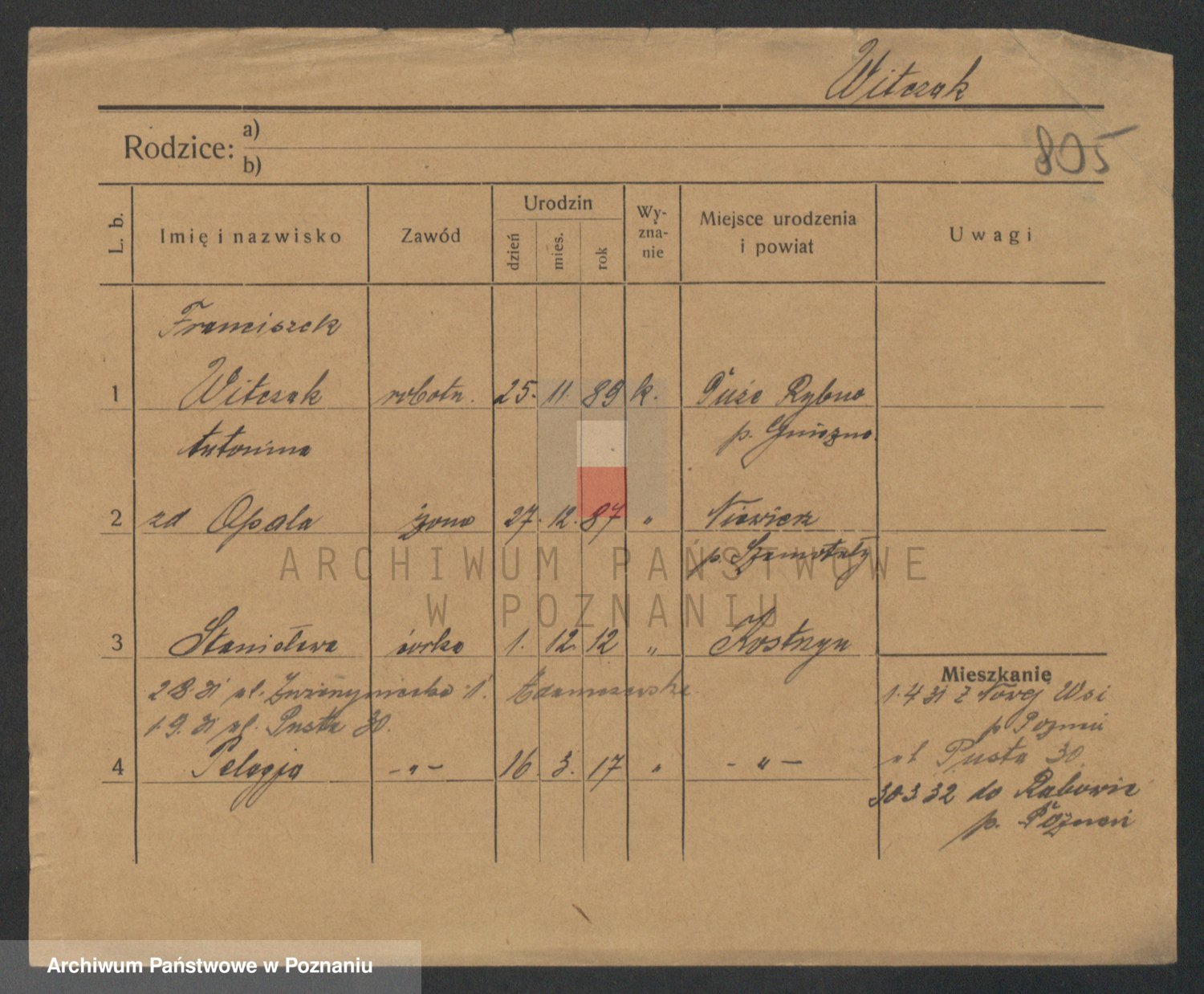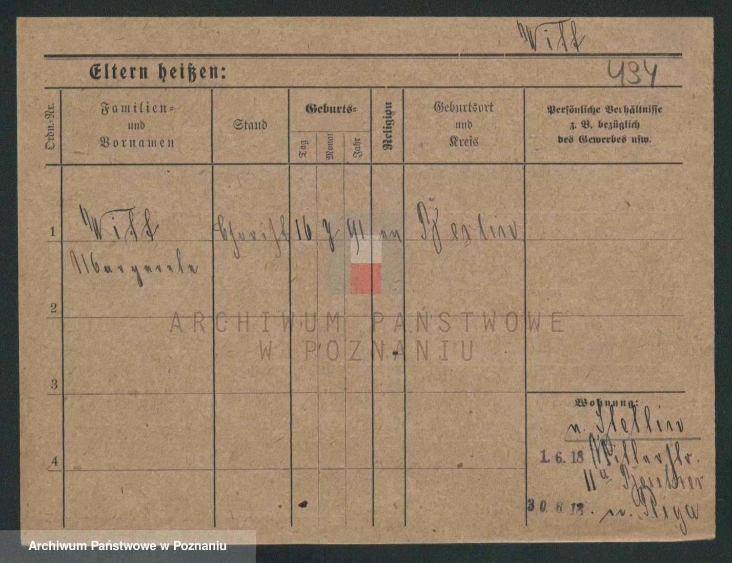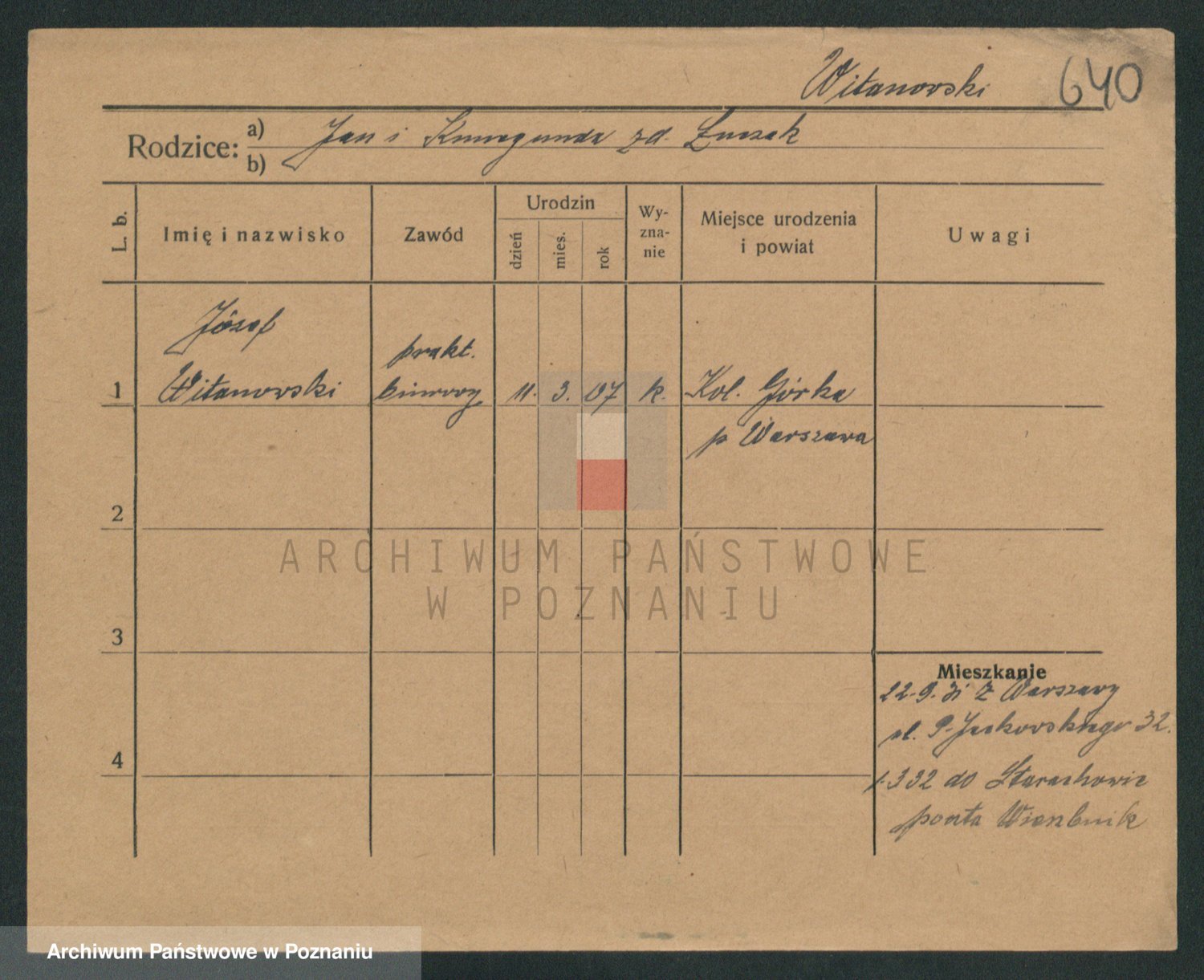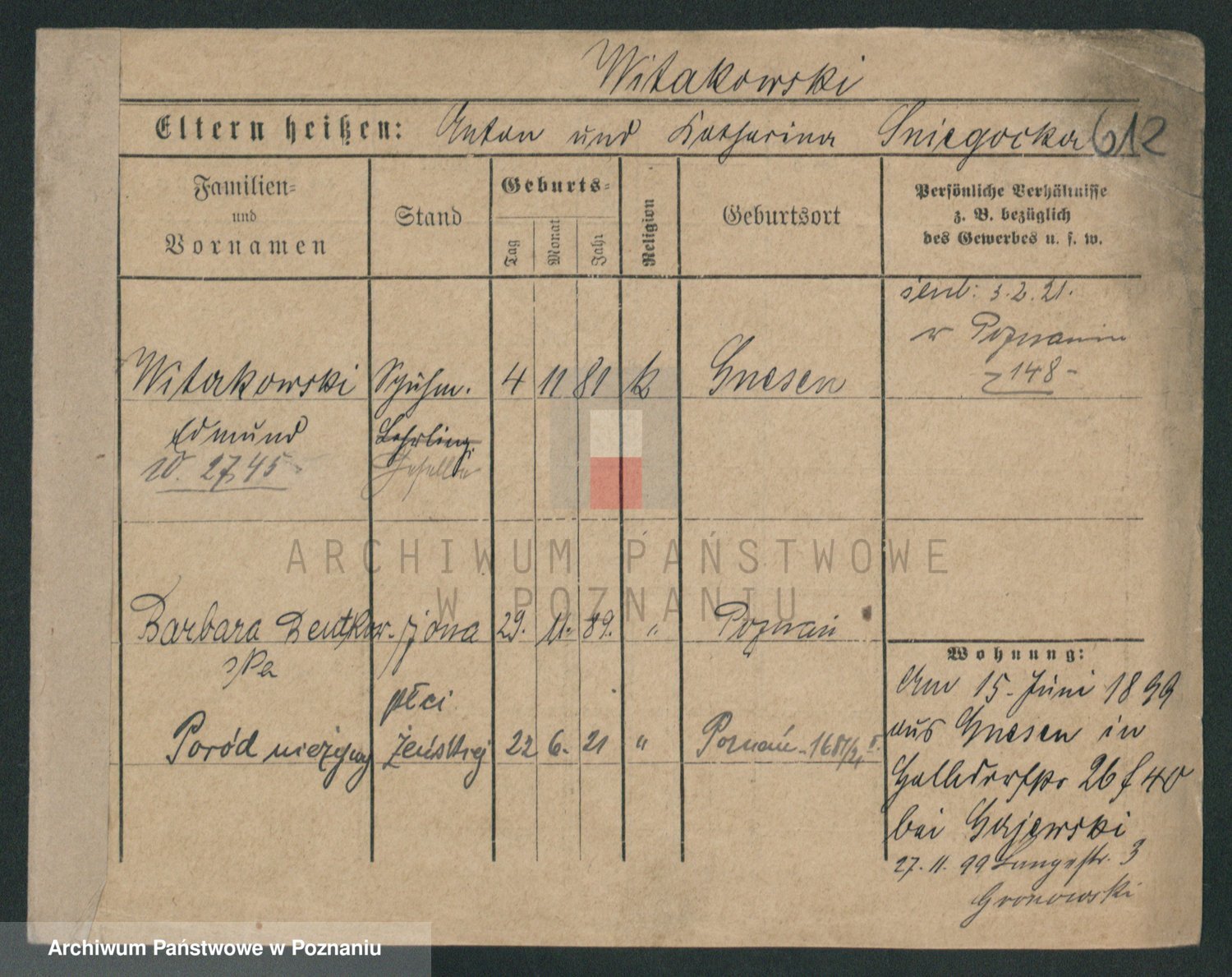 Podgląd karty osobowej dostępny jest po kliknięciu na nazwisko lub ikonkę karty. Można dokonywać powiększenia (ikony na górze) lub przechodzić między kolejnymi skanami (strzałki po bokach).