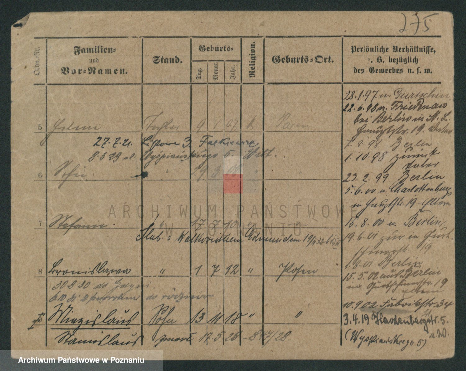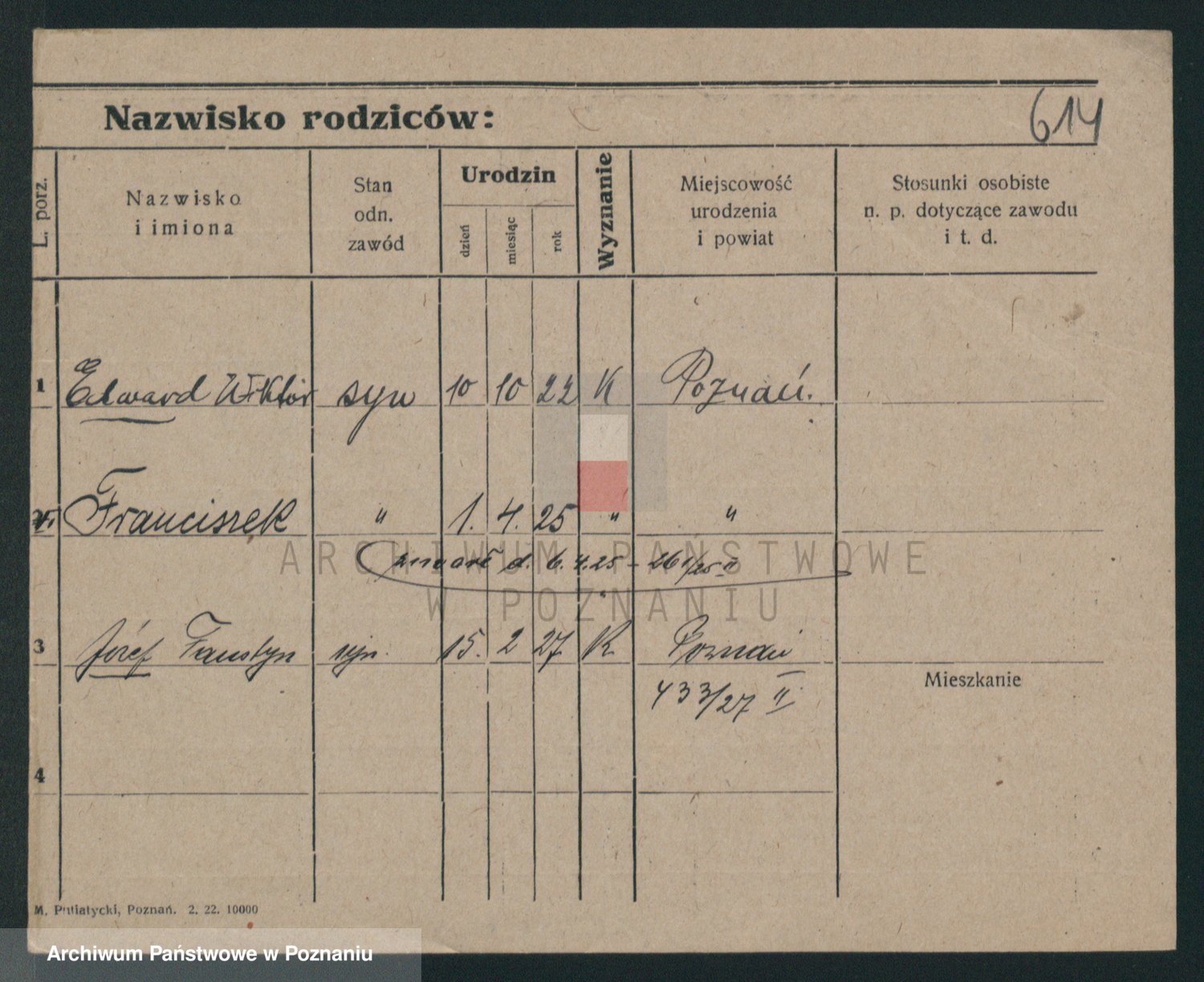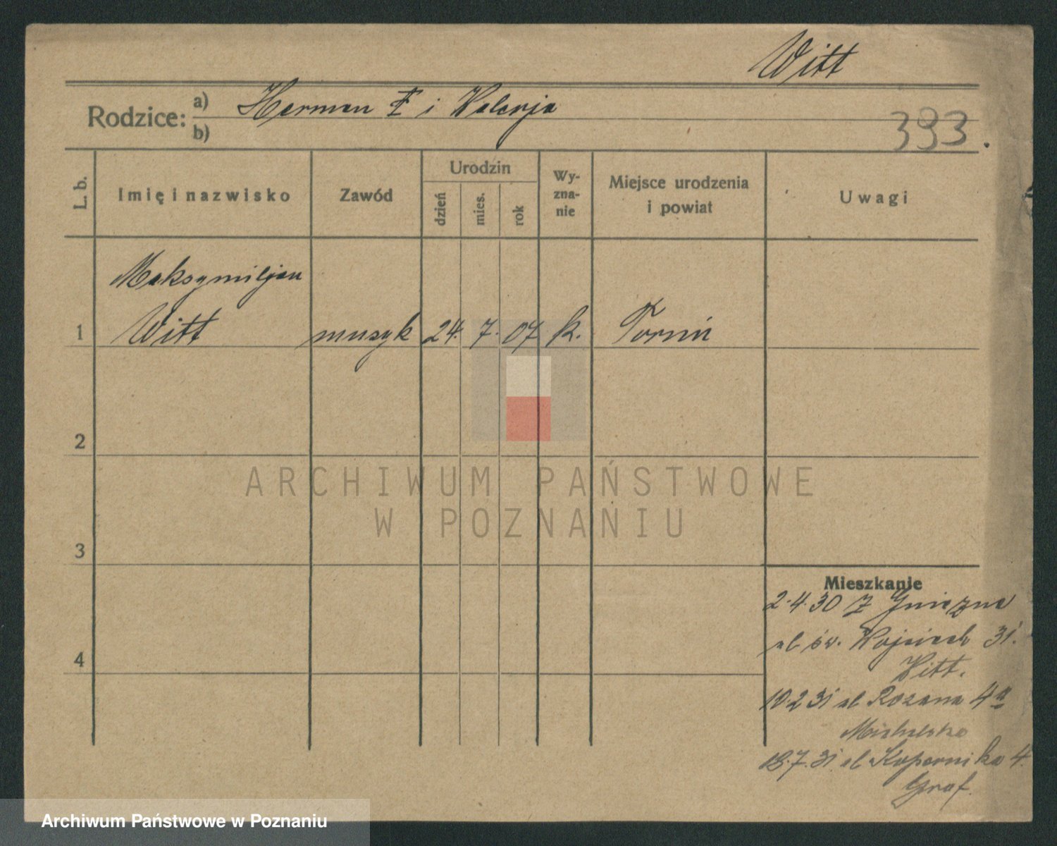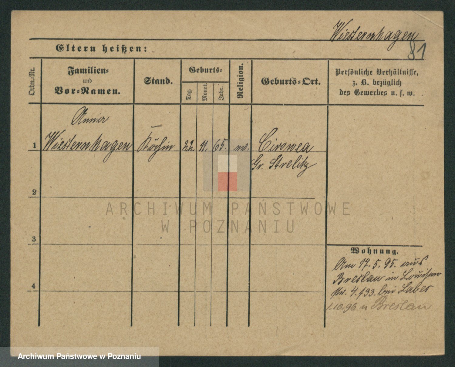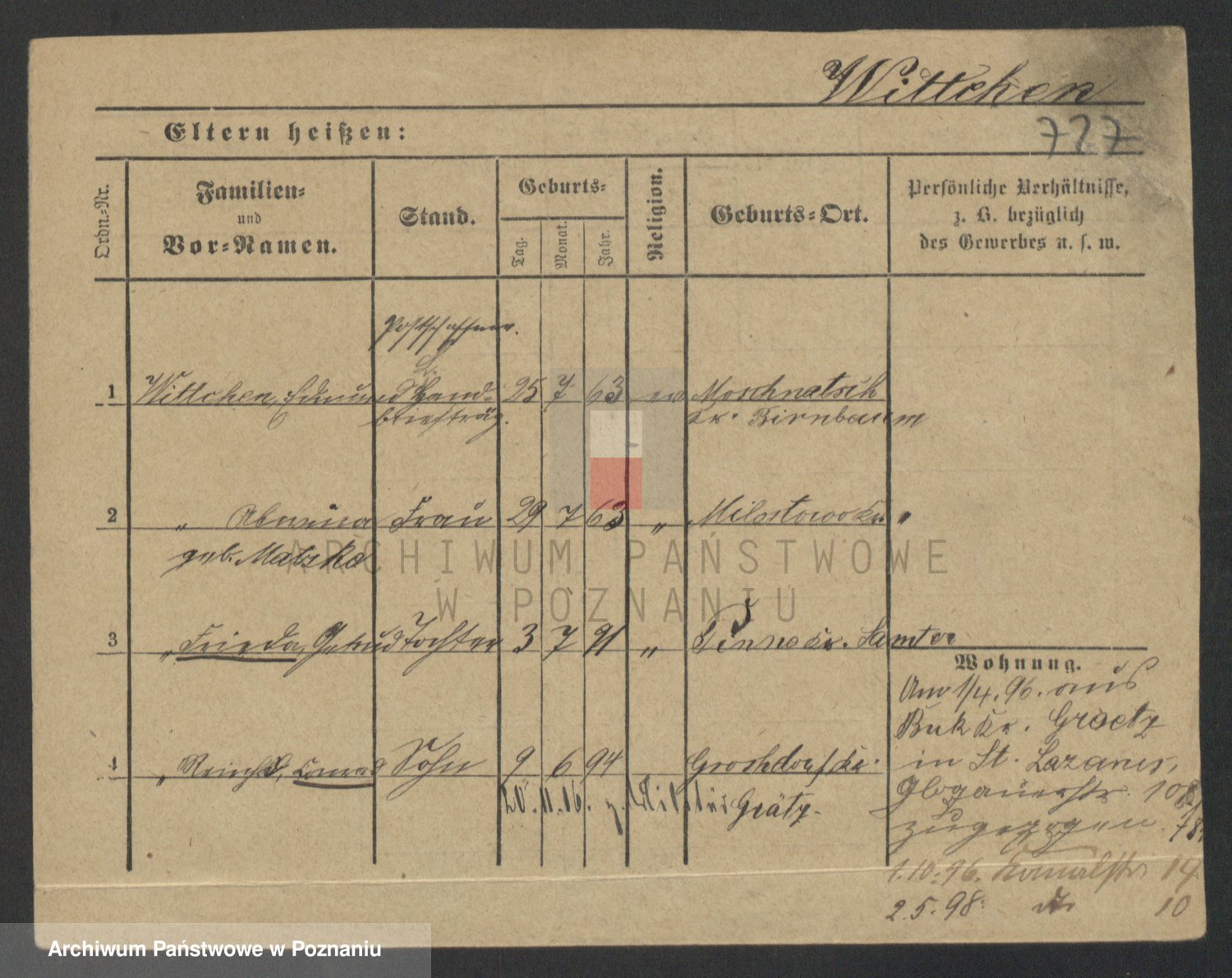 Podgląd karty osobowej dostępny jest po kliknięciu na nazwisko lub ikonkę karty. Można dokonywać powiększenia (ikony na górze) lub przechodzić między kolejnymi skanami (strzałki po bokach).