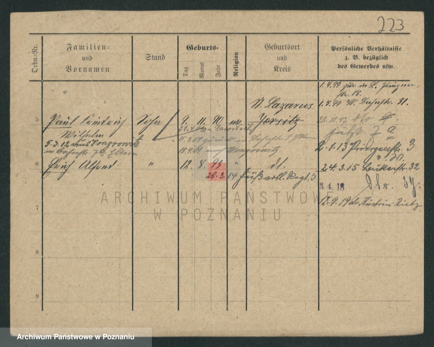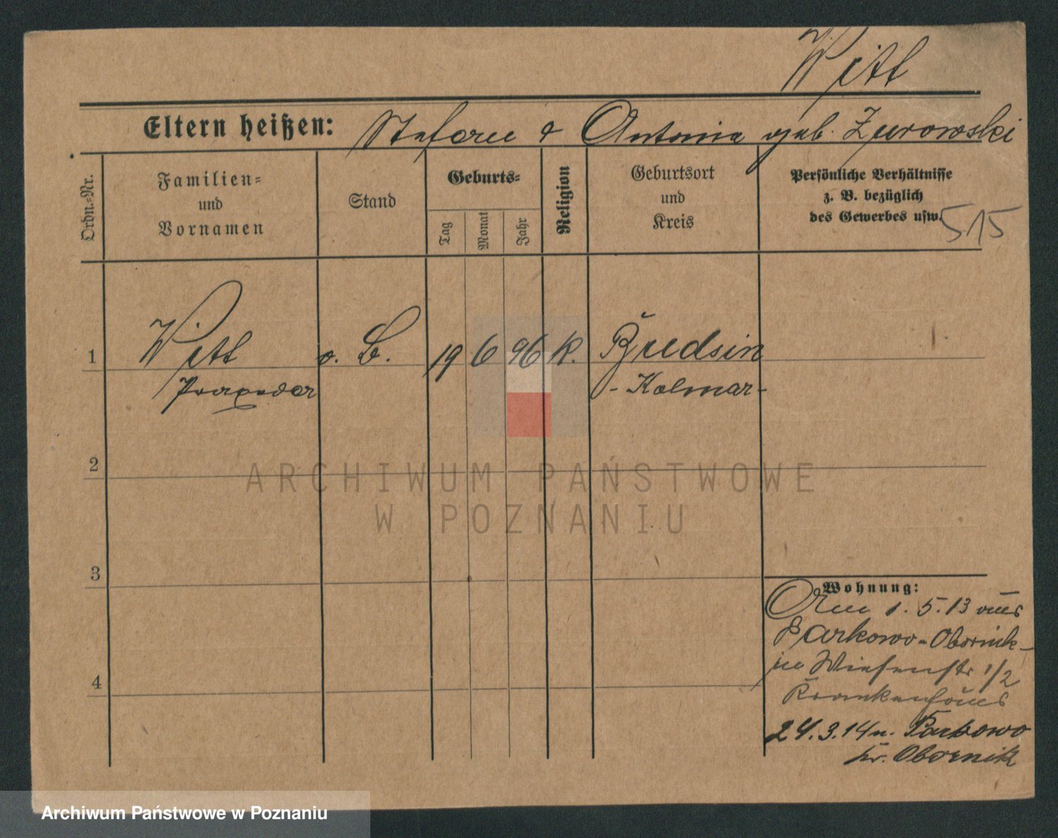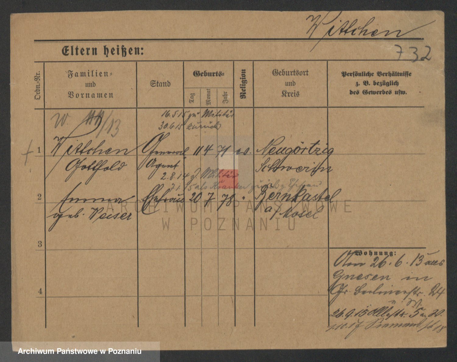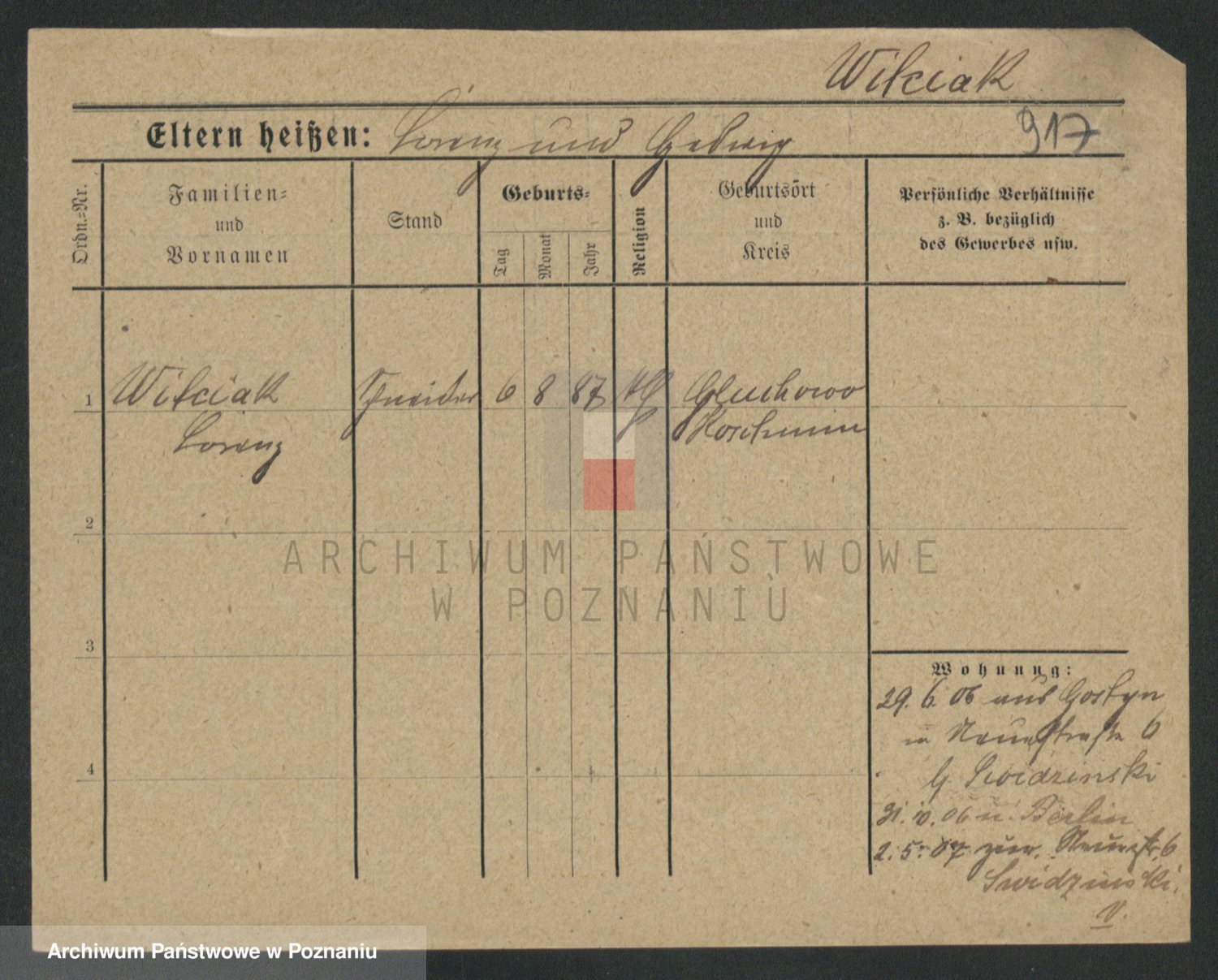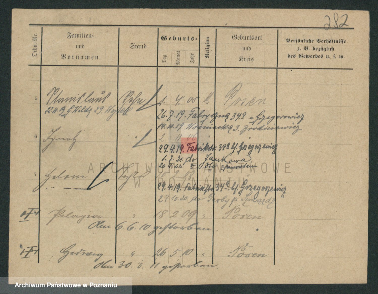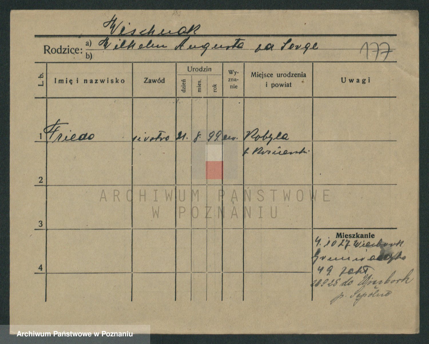 Podgląd karty osobowej dostępny jest po kliknięciu na nazwisko lub ikonkę karty. Można dokonywać powiększenia (ikony na górze) lub przechodzić między kolejnymi skanami (strzałki po bokach).