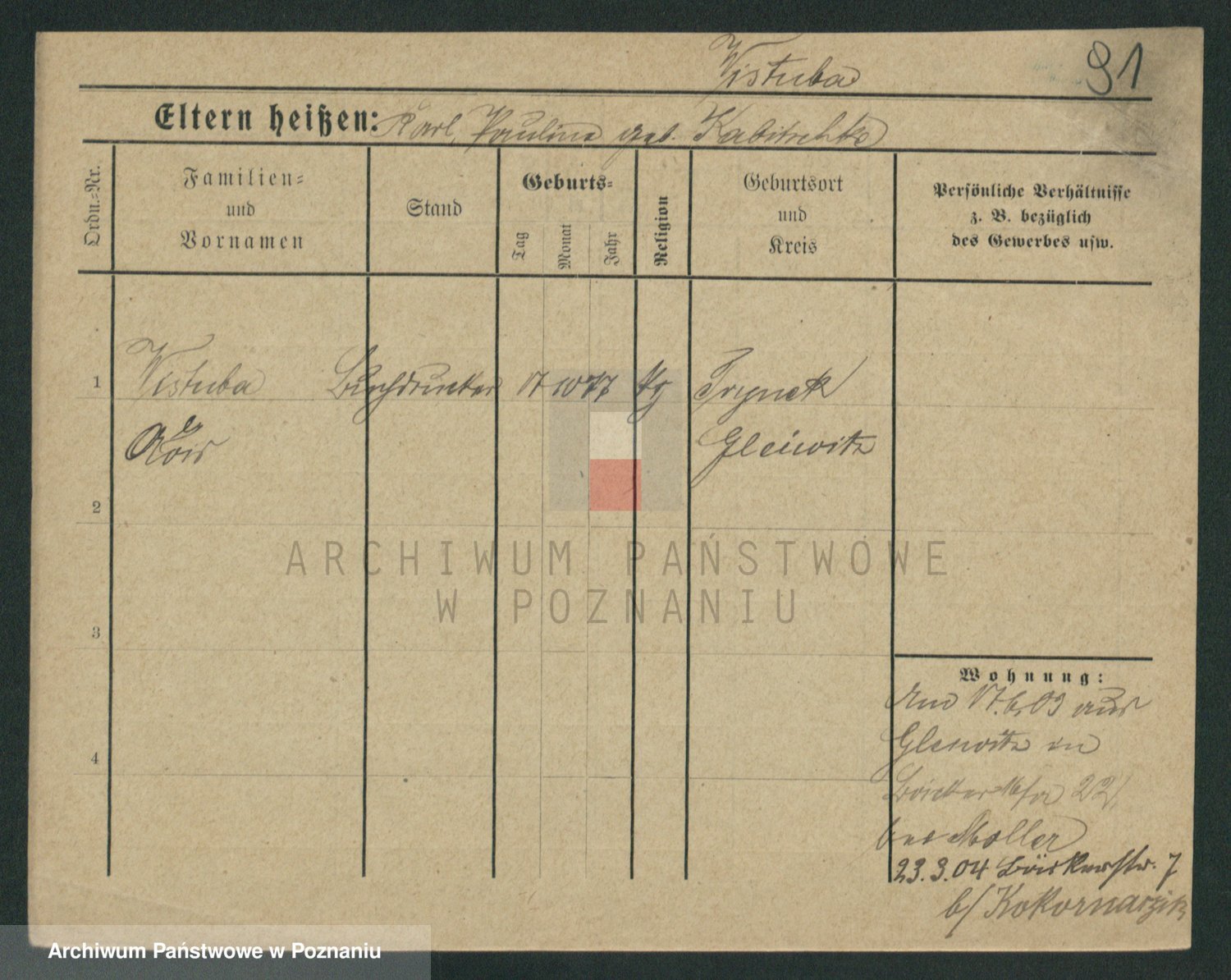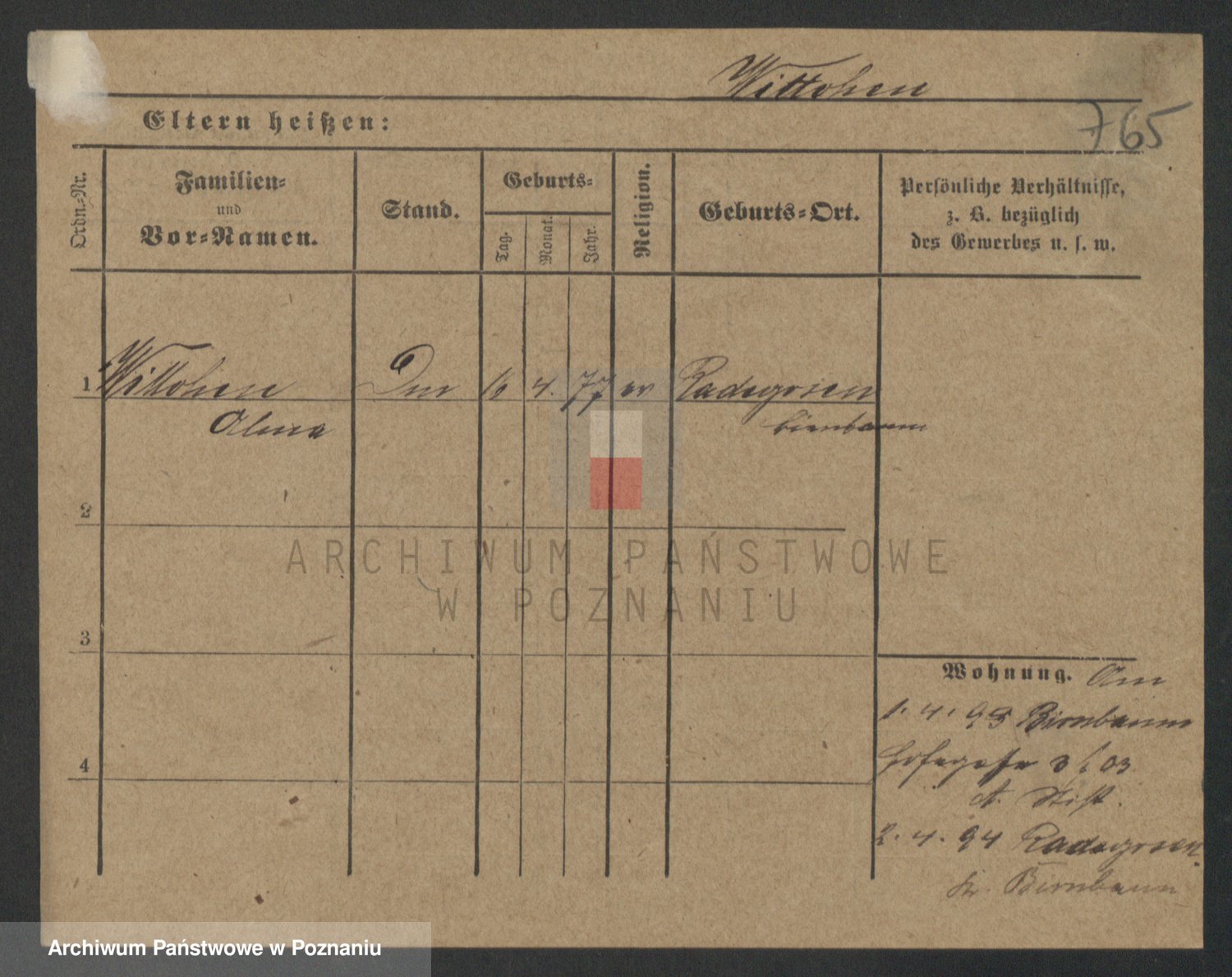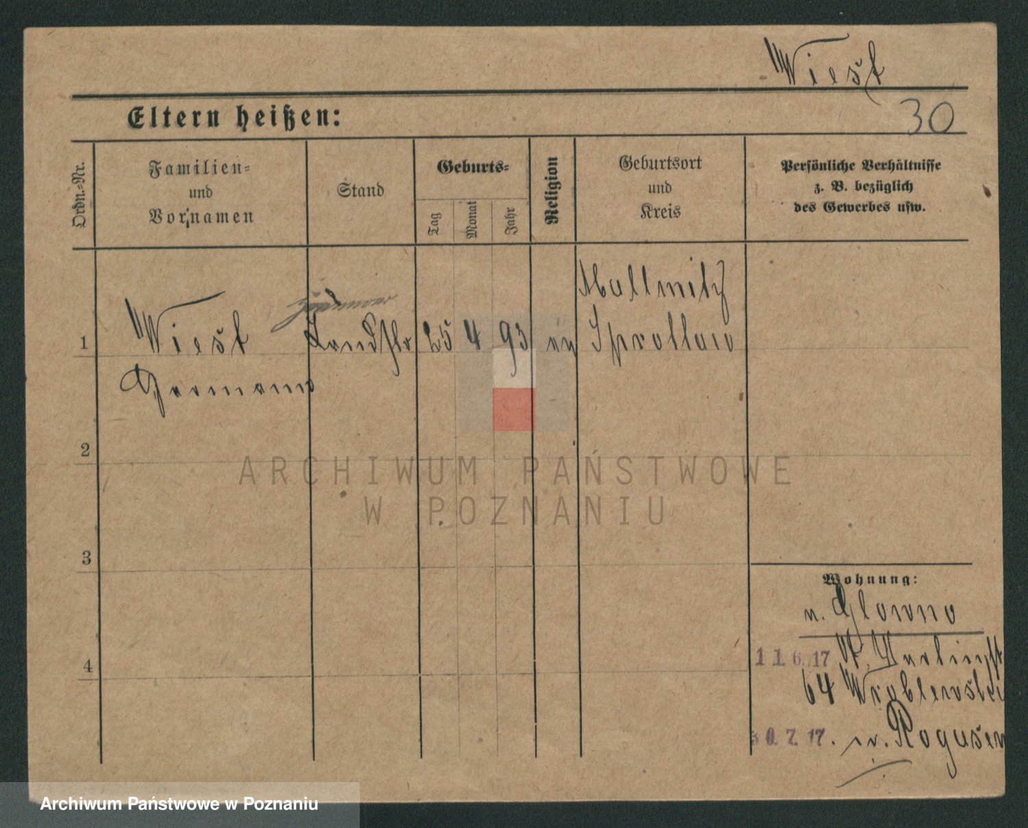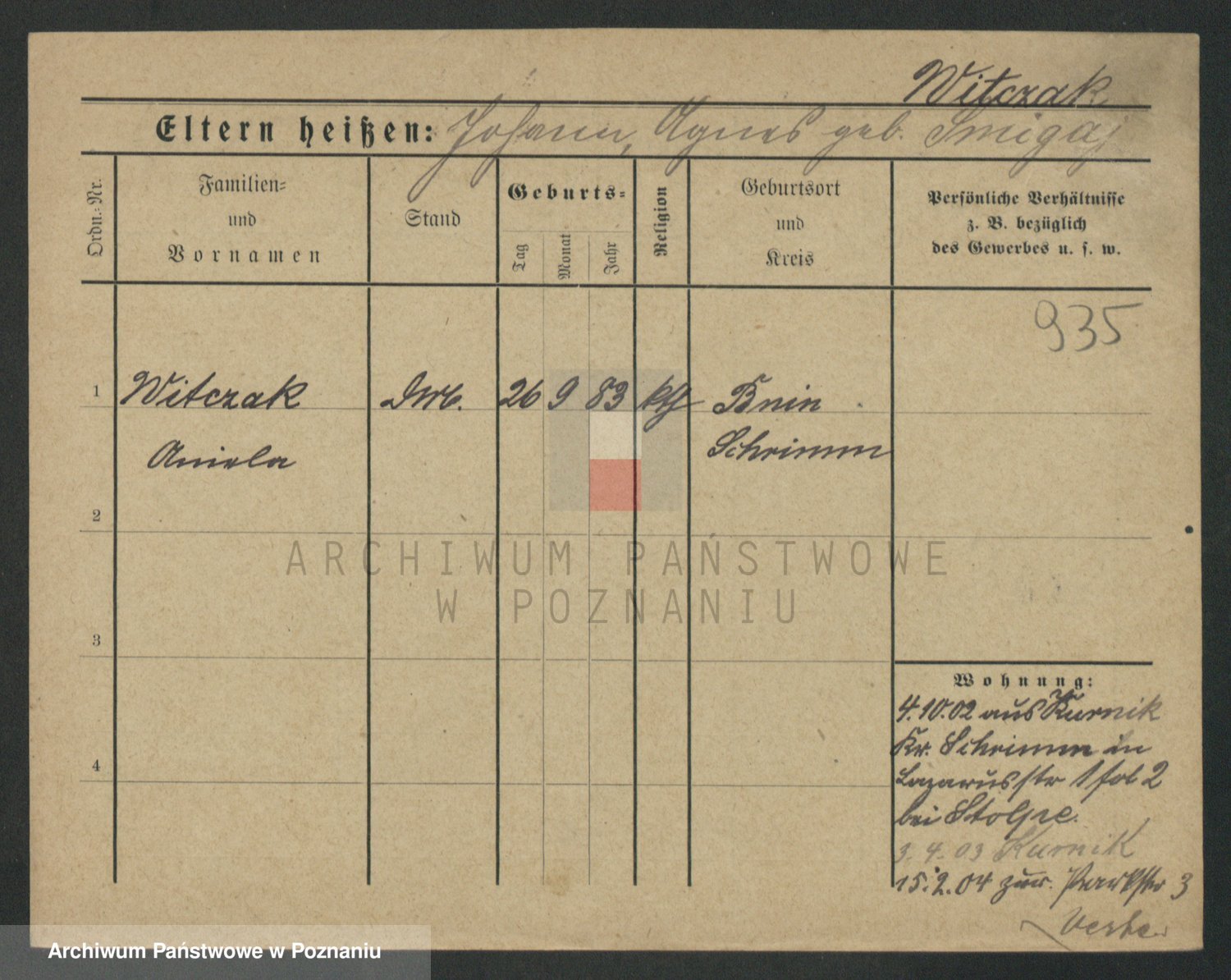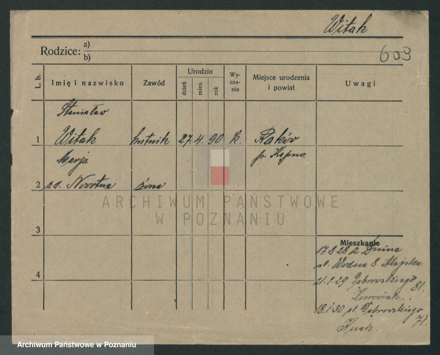 Podgląd karty osobowej dostępny jest po kliknięciu na nazwisko lub ikonkę karty. Można dokonywać powiększenia (ikony na górze) lub przechodzić między kolejnymi skanami (strzałki po bokach).
