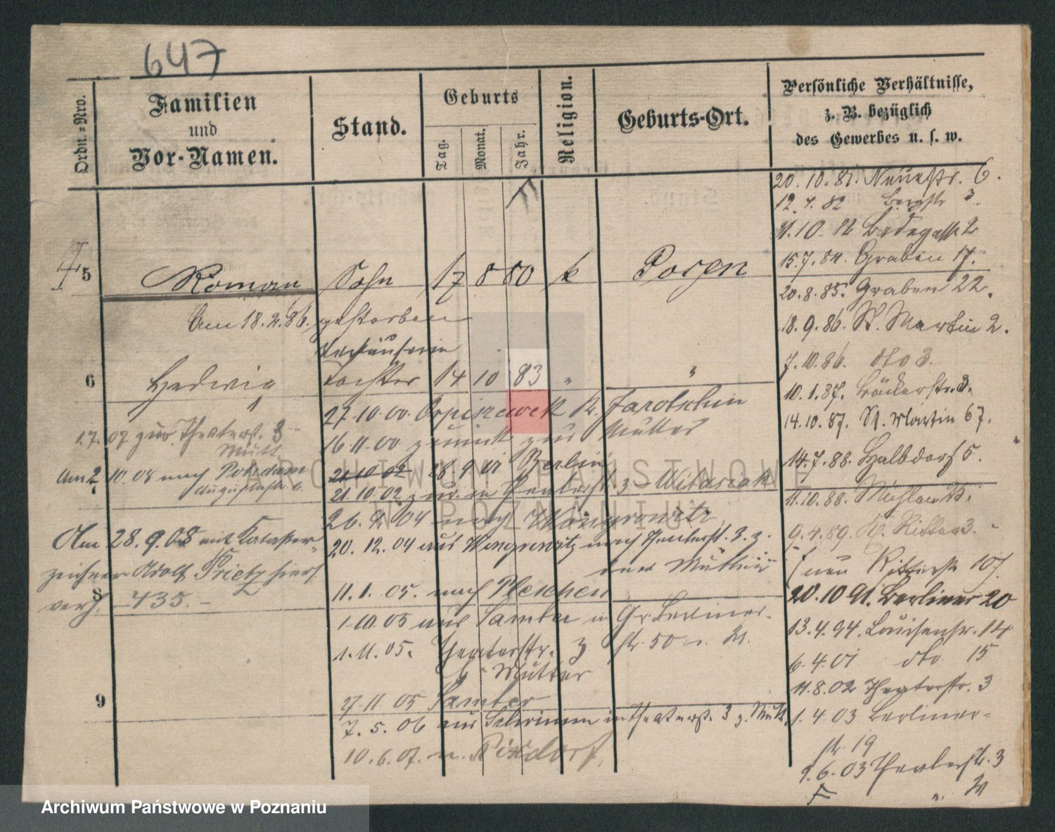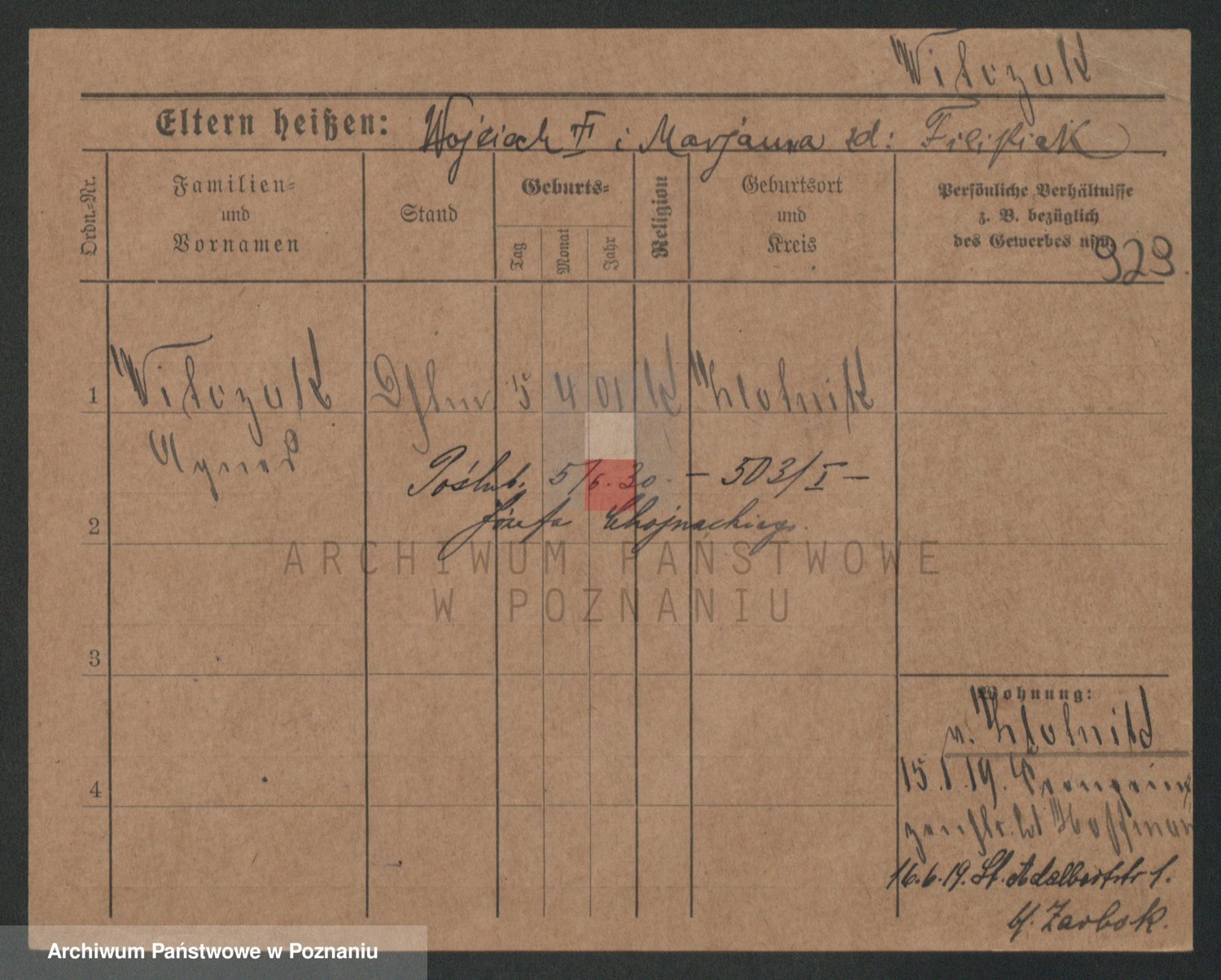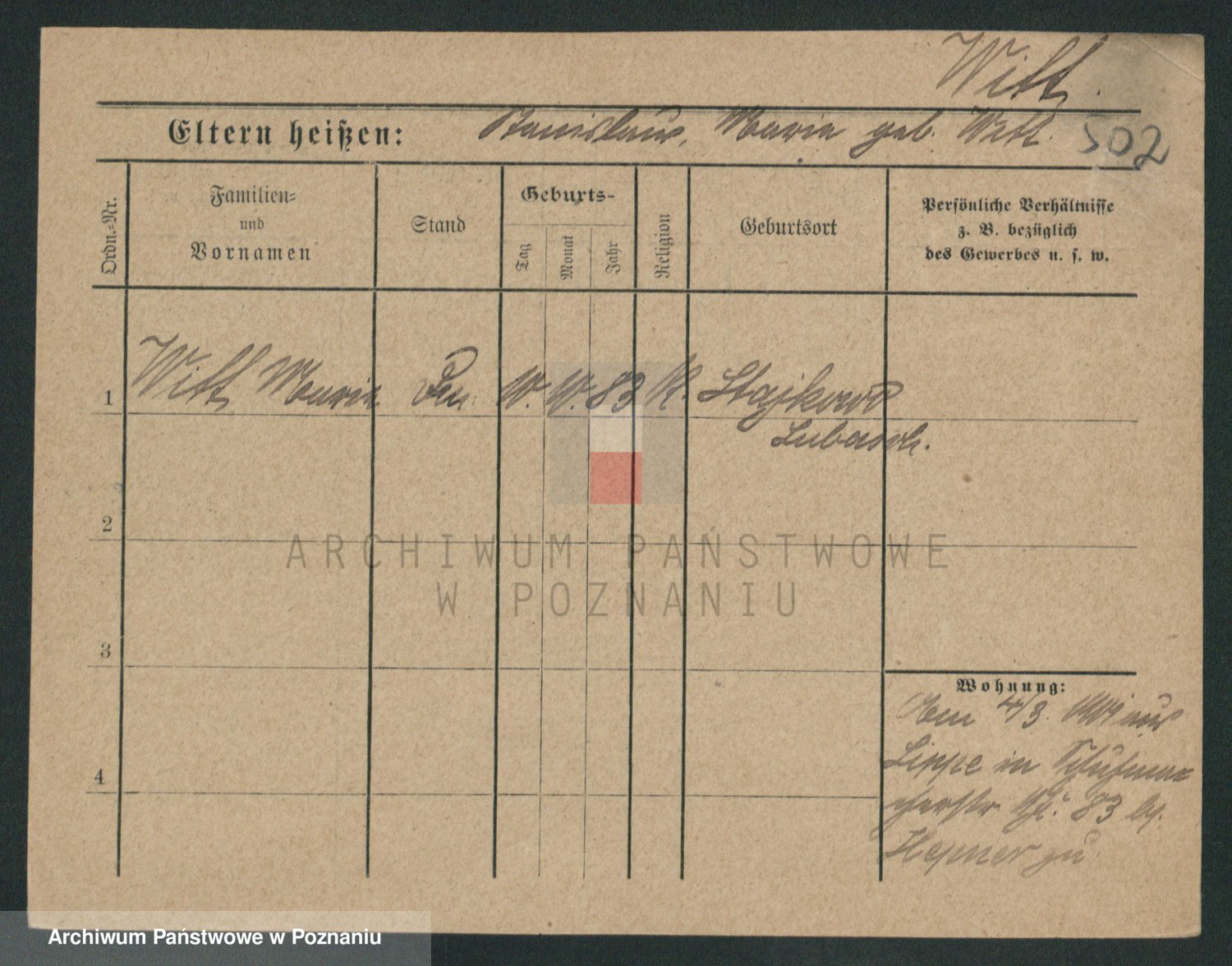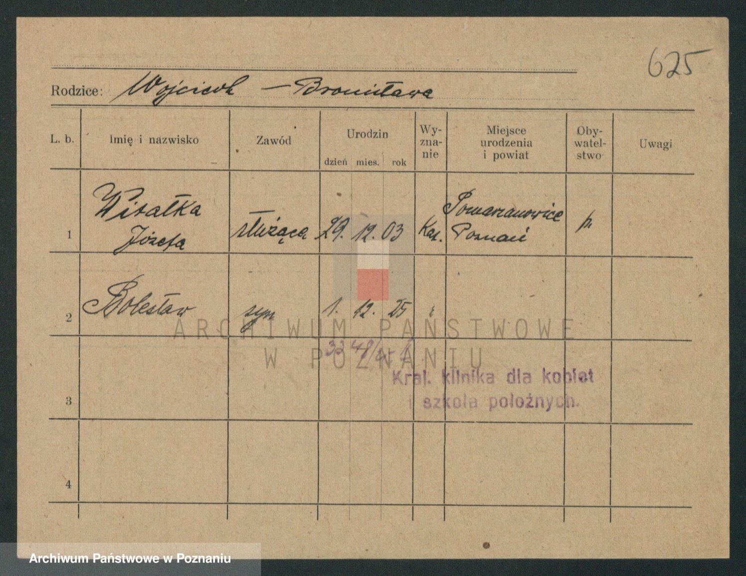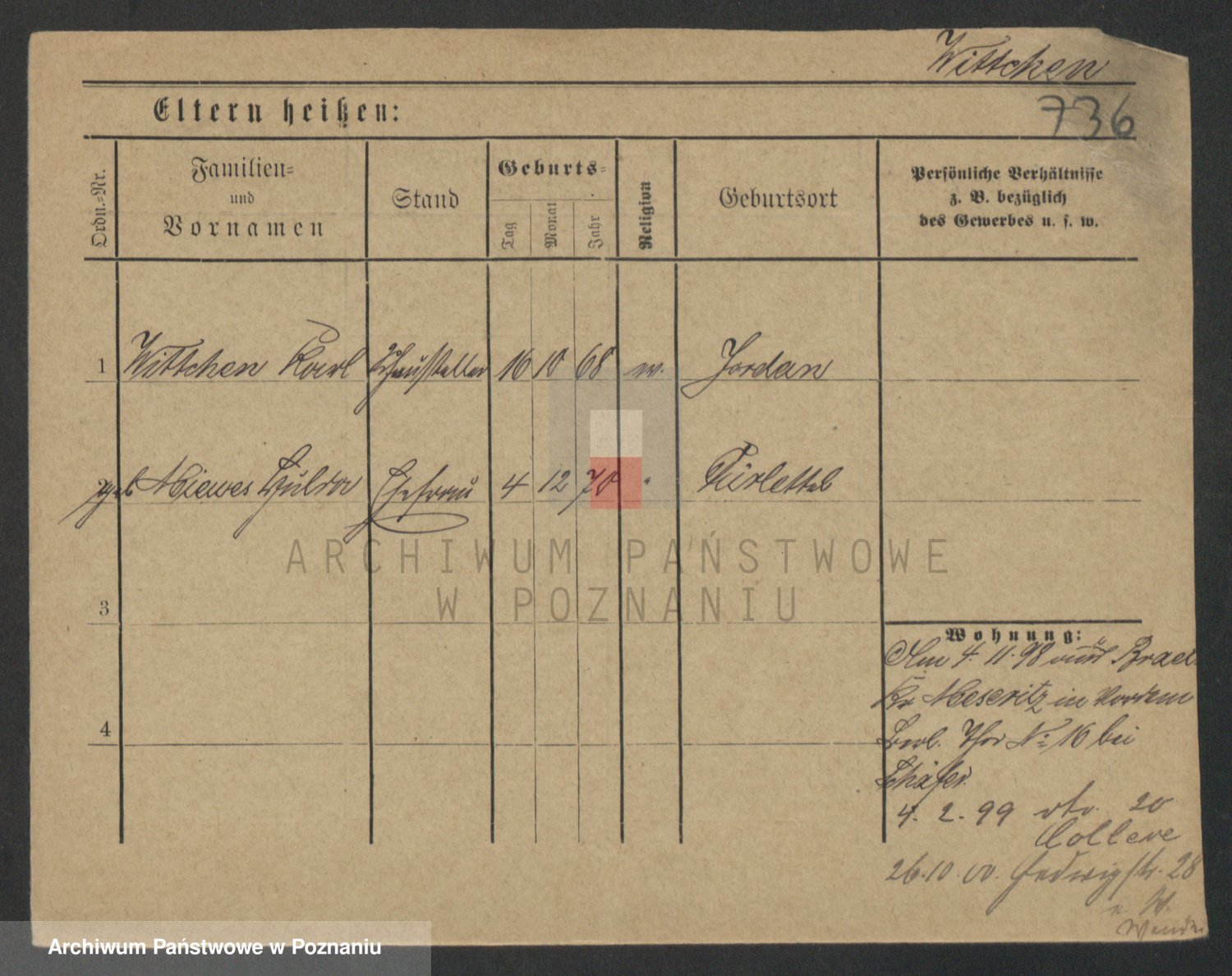 Podgląd karty osobowej dostępny jest po kliknięciu na nazwisko lub ikonkę karty. Można dokonywać powiększenia (ikony na górze) lub przechodzić między kolejnymi skanami (strzałki po bokach).