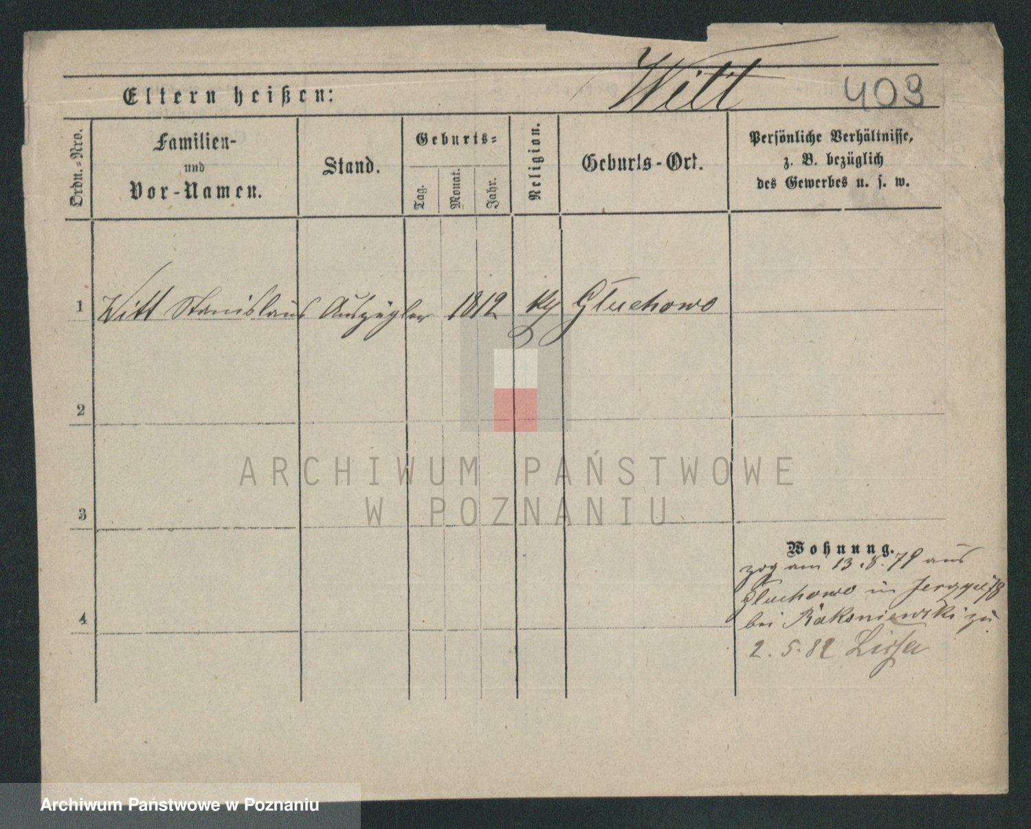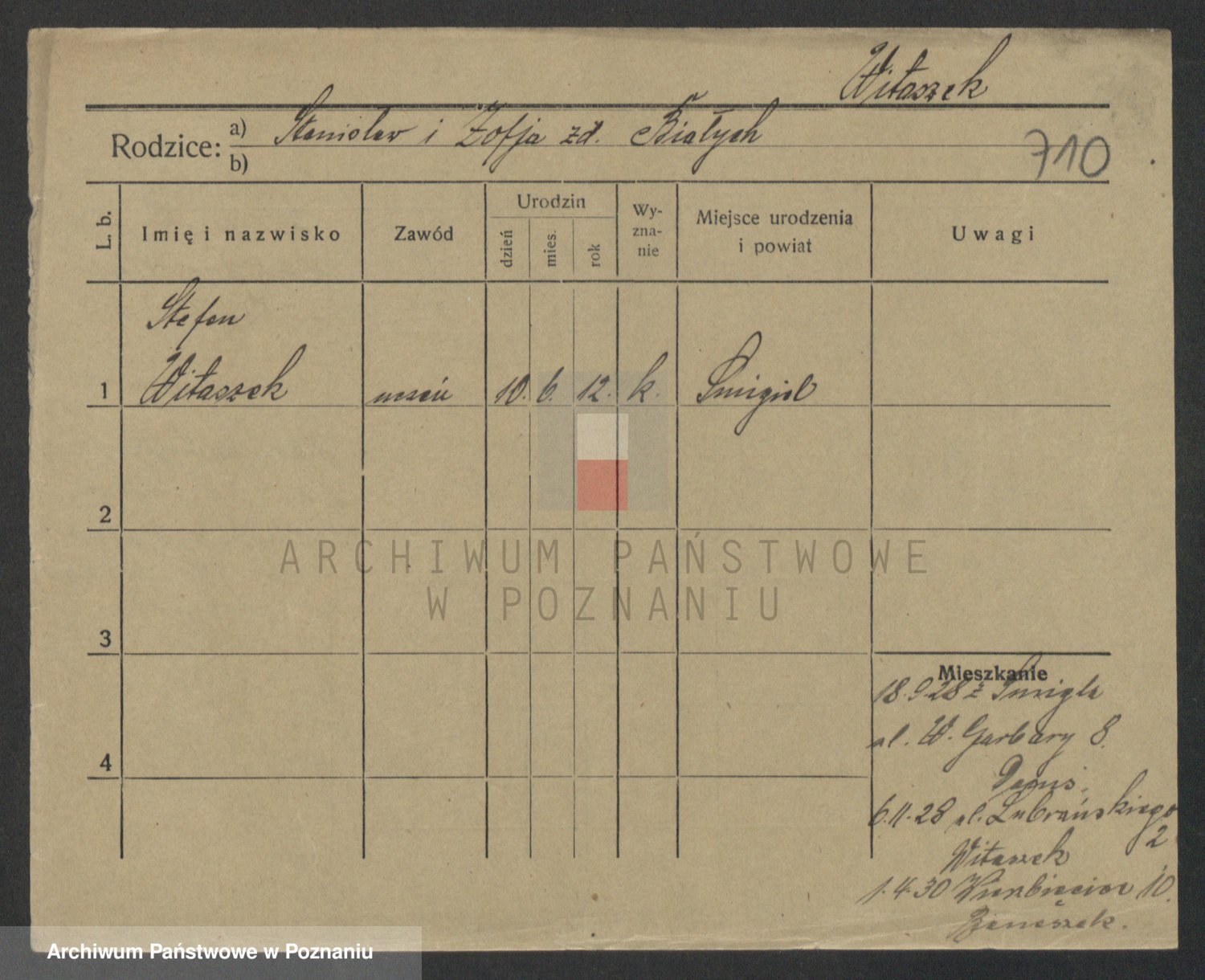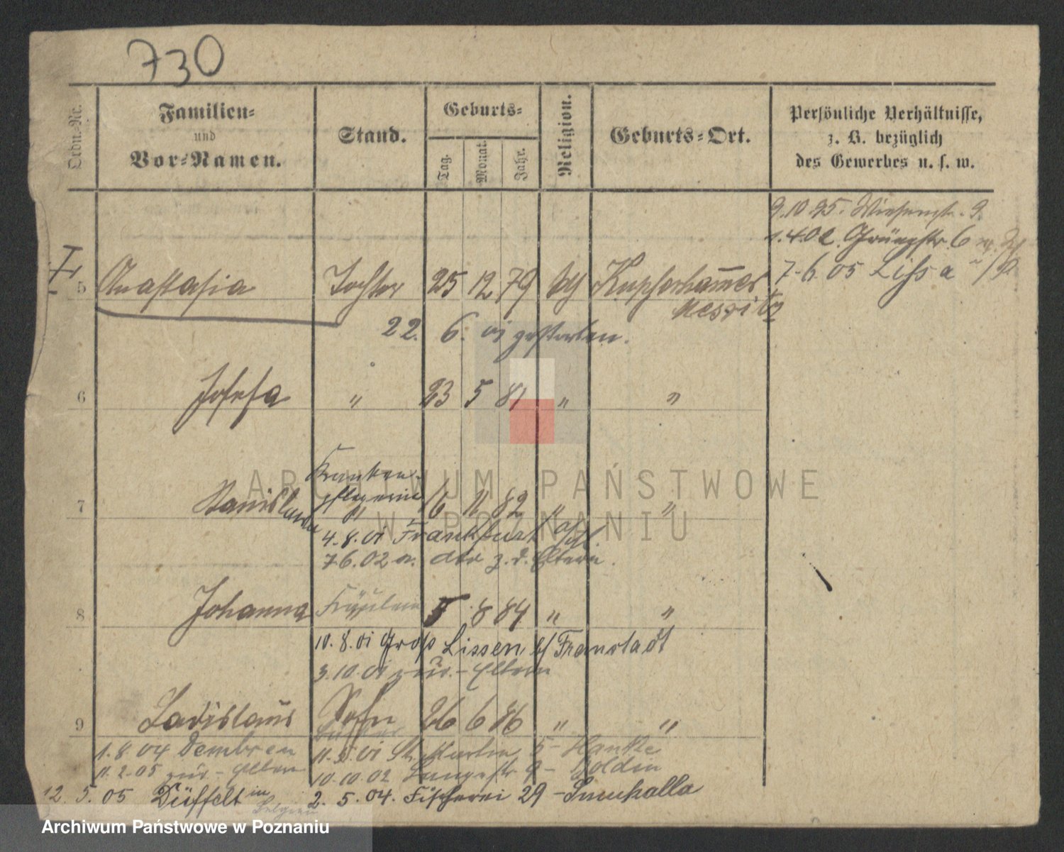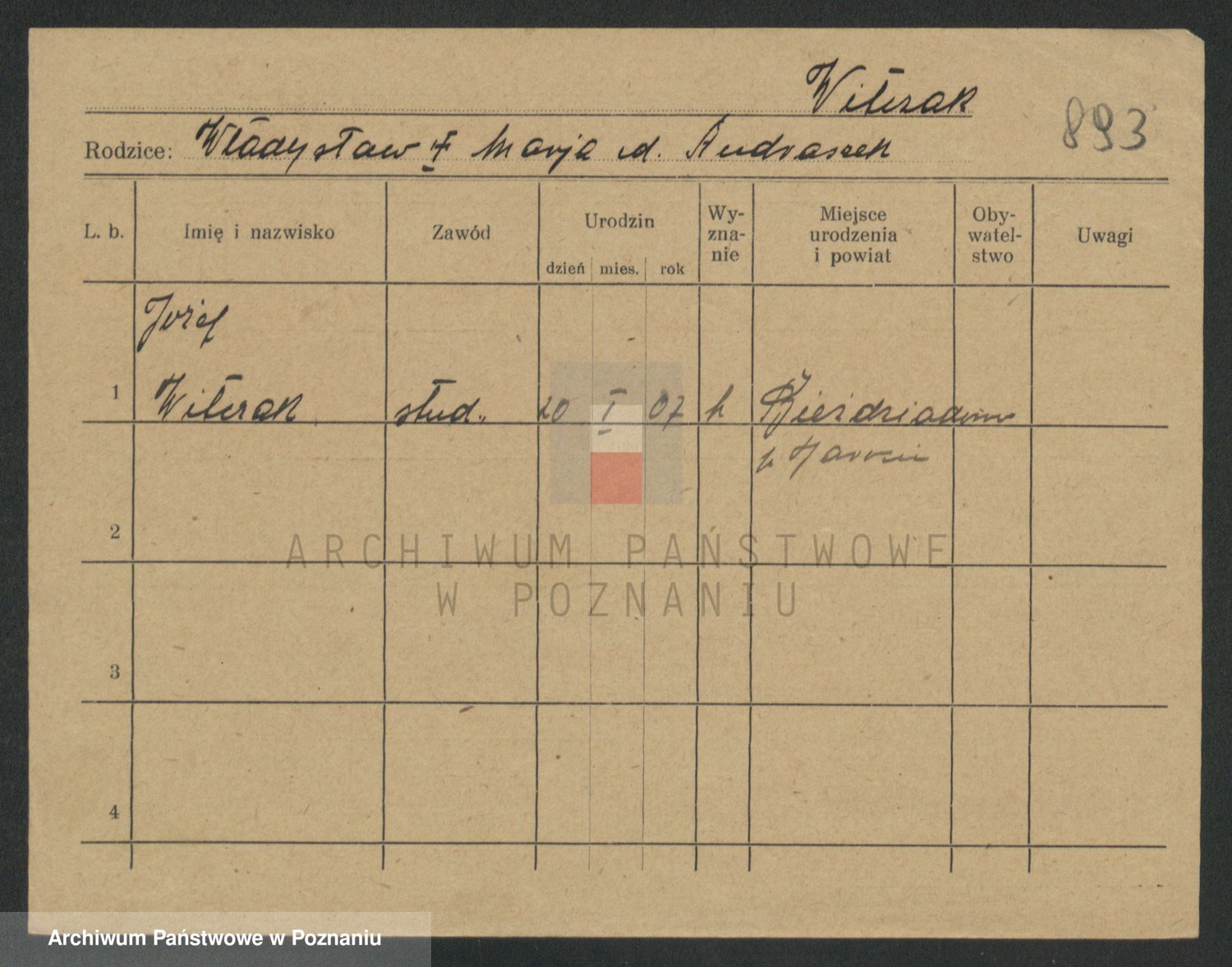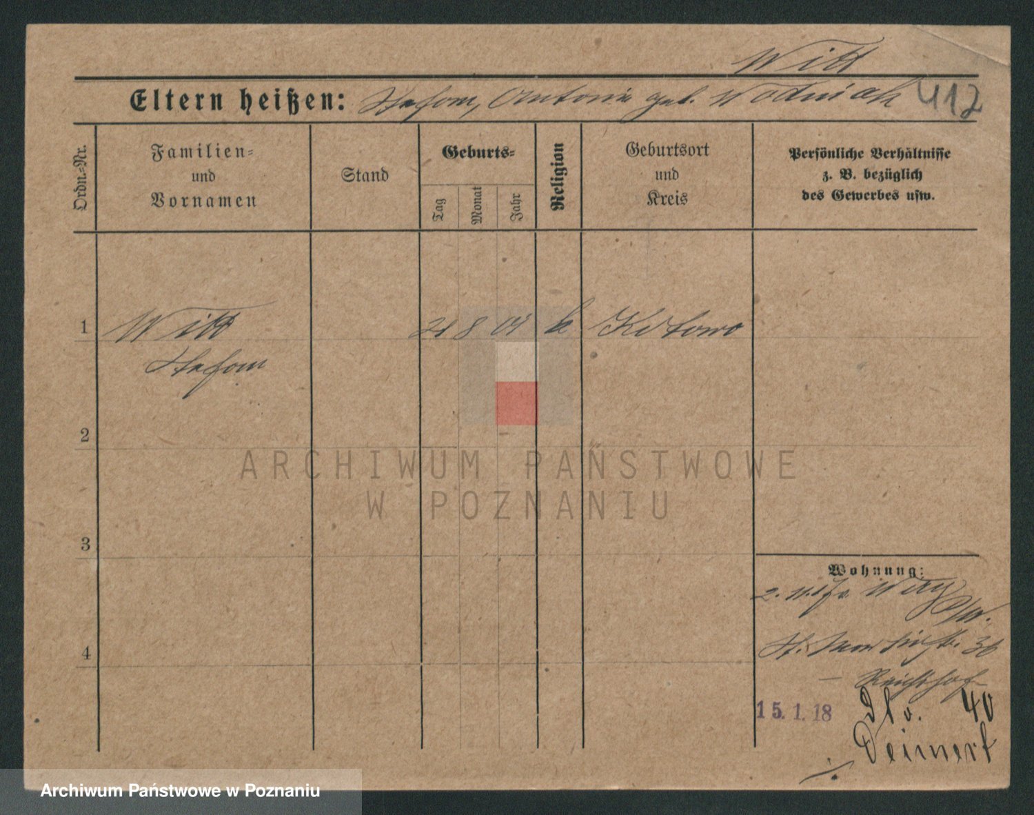 Podgląd karty osobowej dostępny jest po kliknięciu na nazwisko lub ikonkę karty. Można dokonywać powiększenia (ikony na górze) lub przechodzić między kolejnymi skanami (strzałki po bokach).