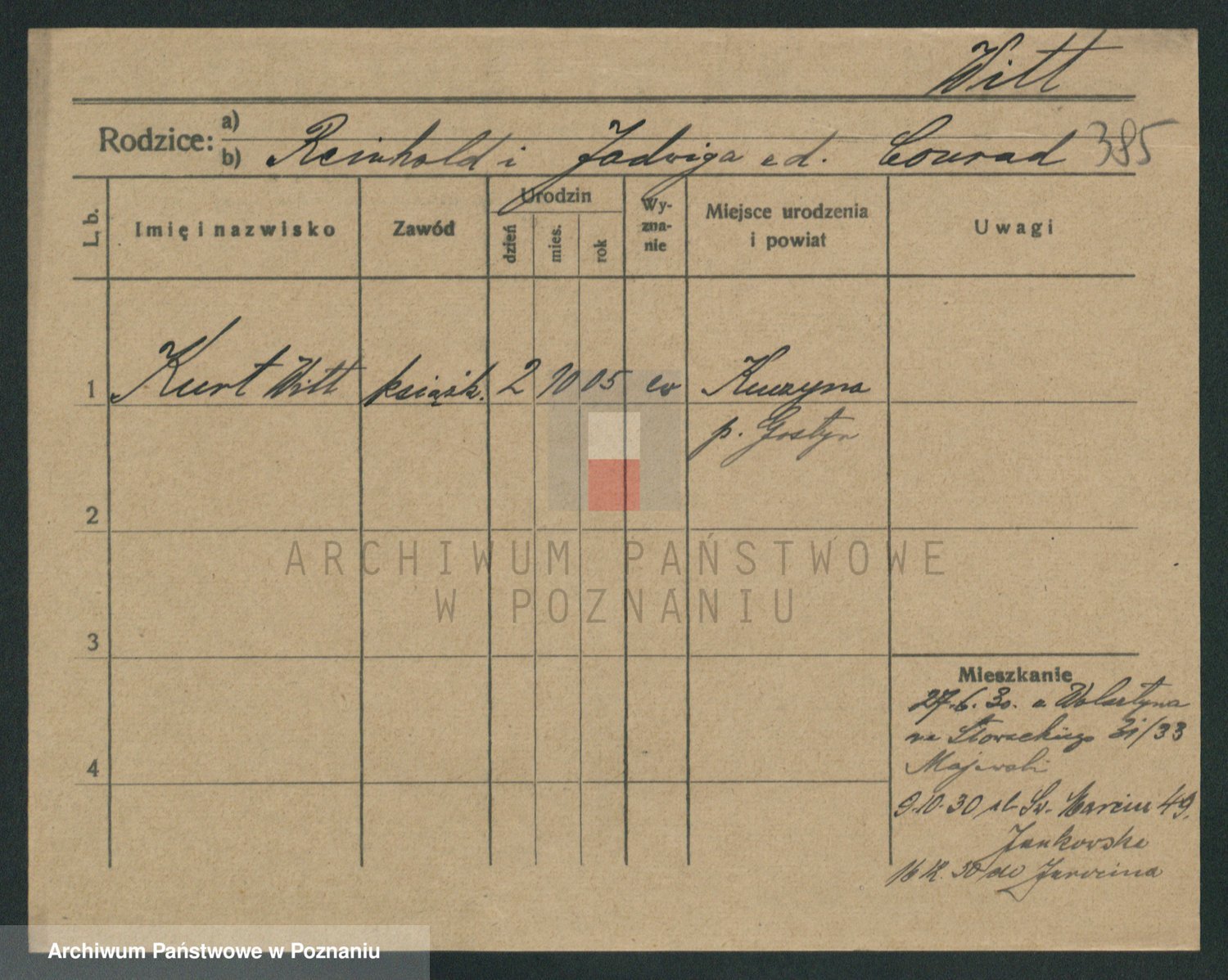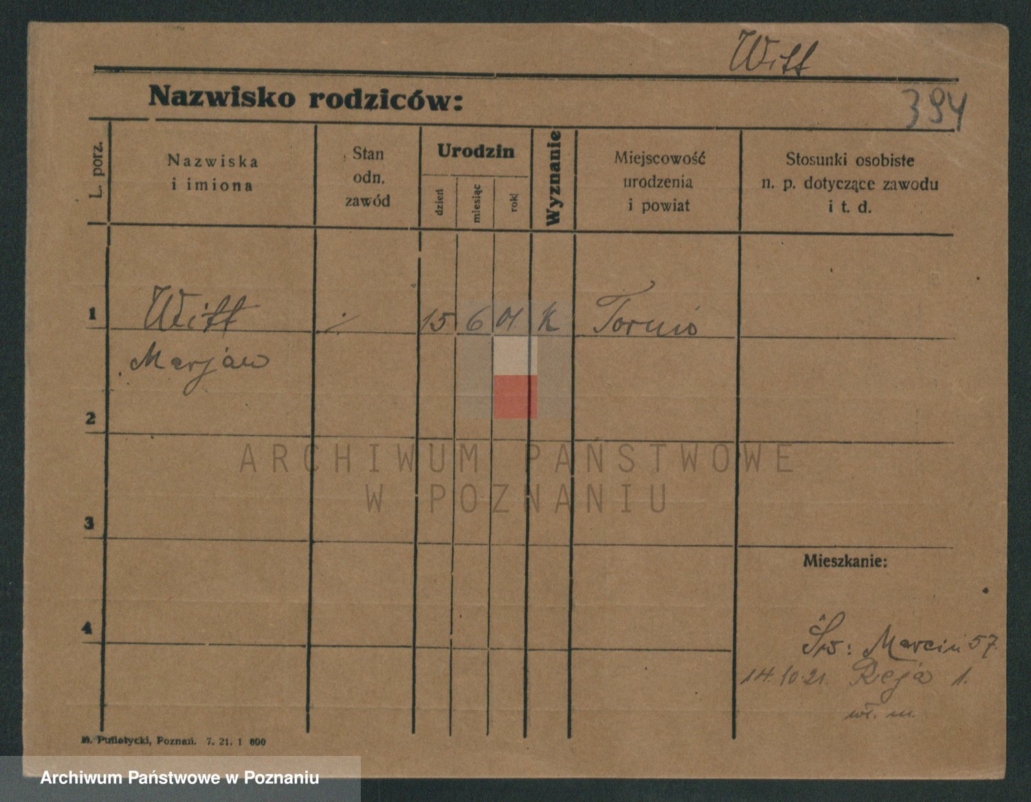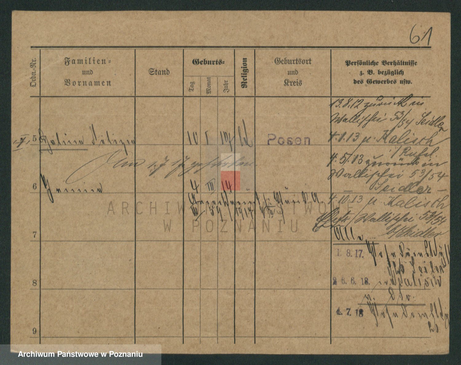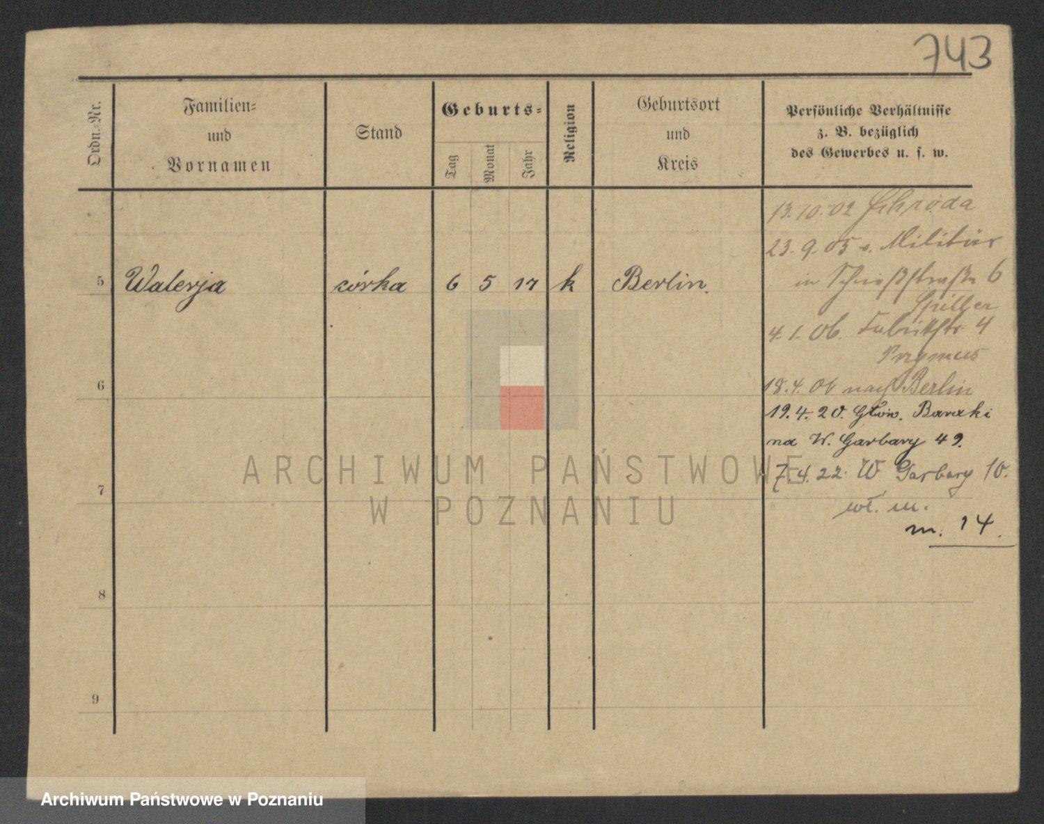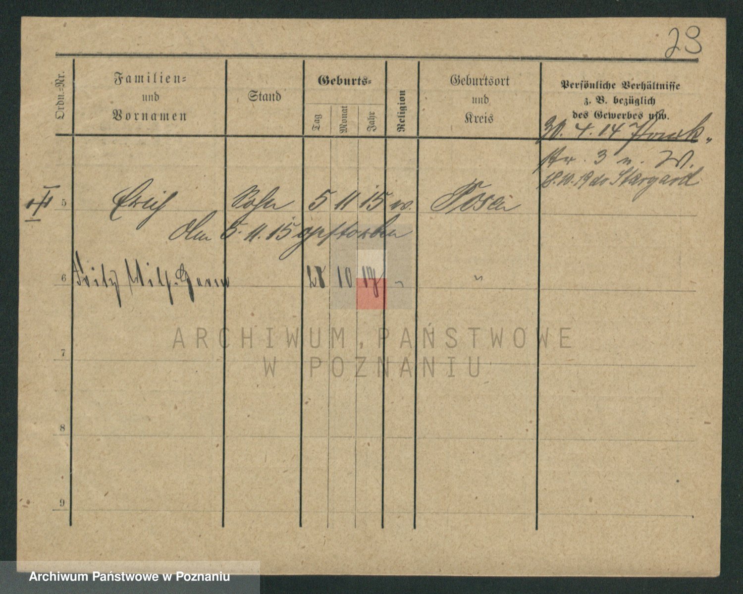 Podgląd karty osobowej dostępny jest po kliknięciu na nazwisko lub ikonkę karty. Można dokonywać powiększenia (ikony na górze) lub przechodzić między kolejnymi skanami (strzałki po bokach).