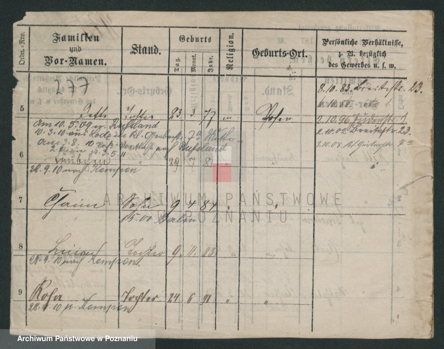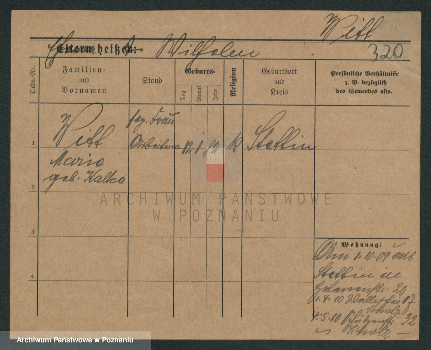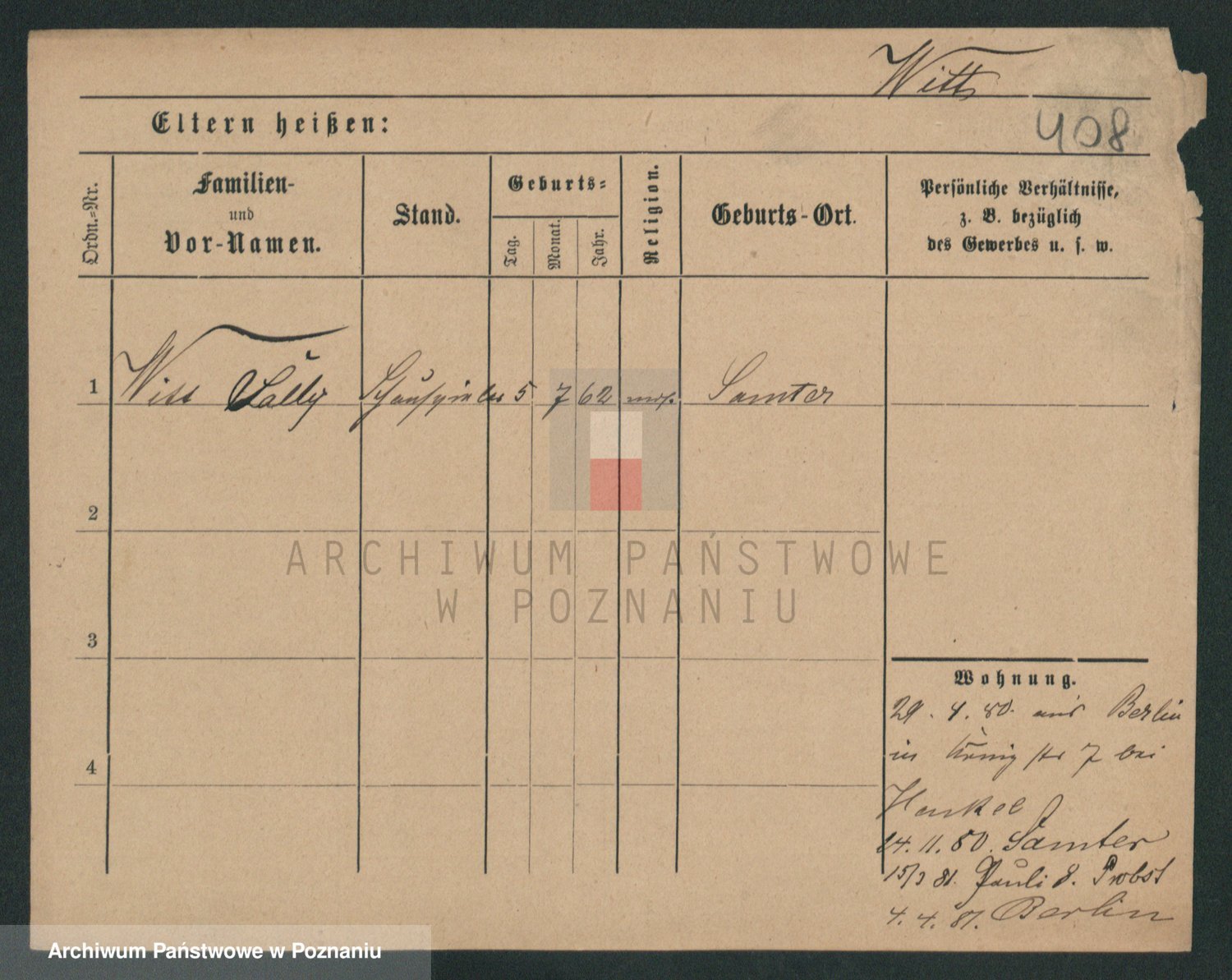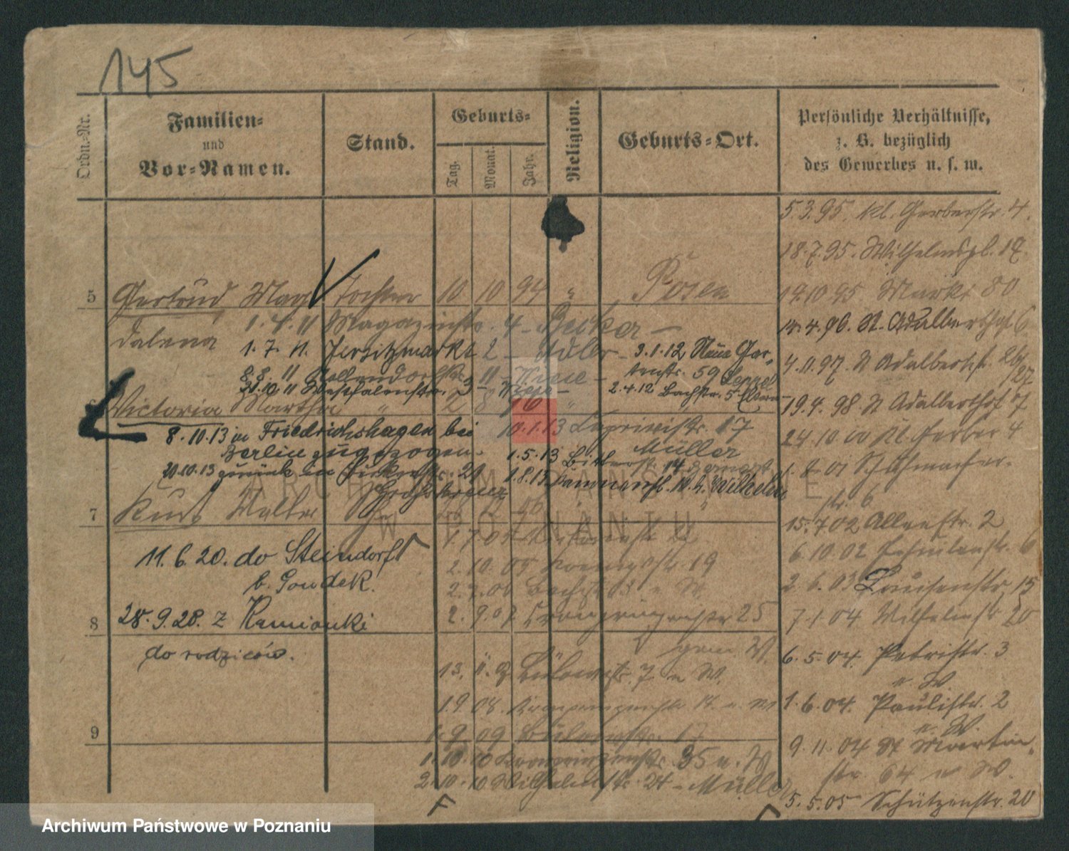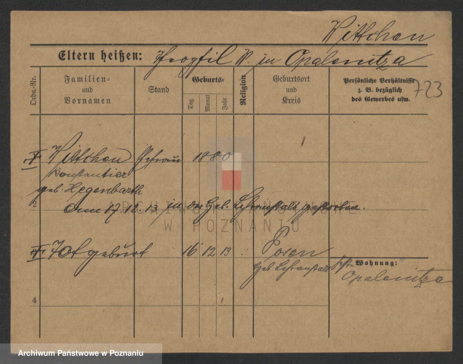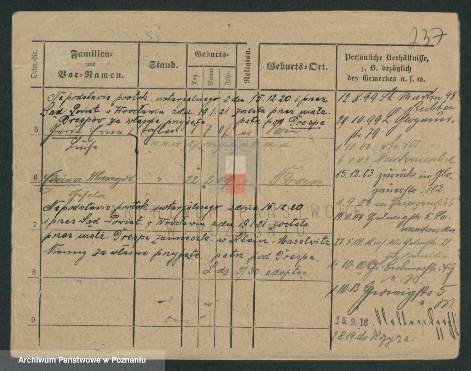 Podgląd karty osobowej dostępny jest po kliknięciu na nazwisko lub ikonkę karty. Można dokonywać powiększenia (ikony na górze) lub przechodzić między kolejnymi skanami (strzałki po bokach).