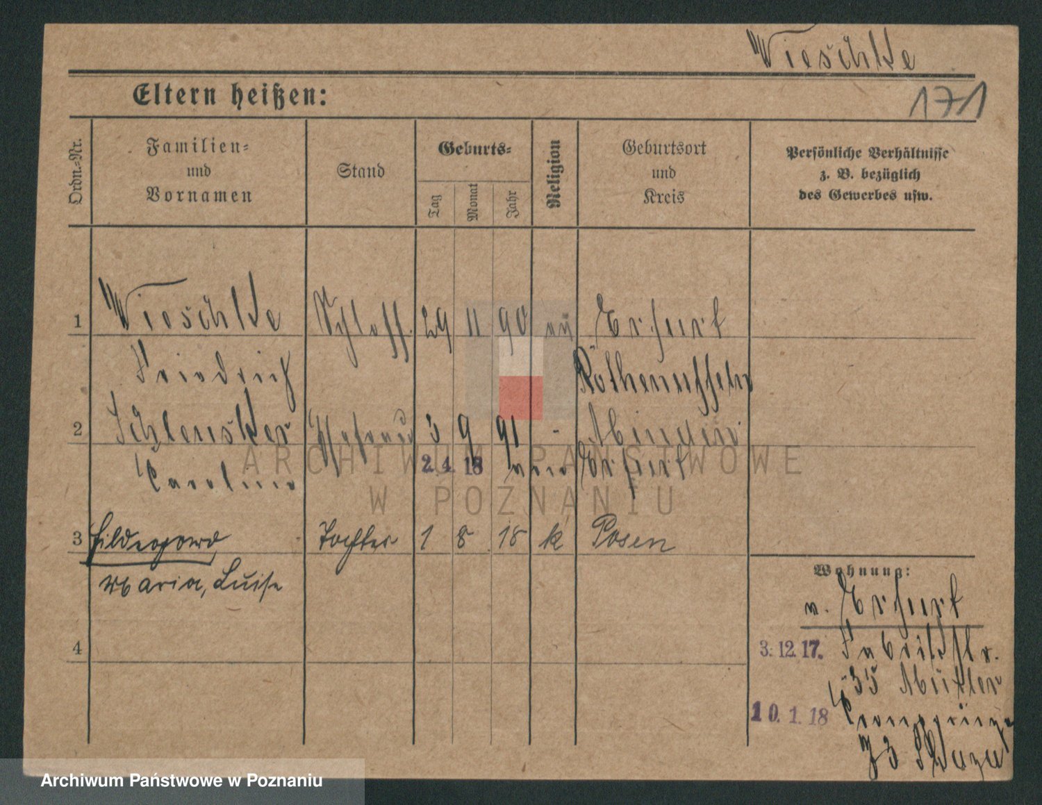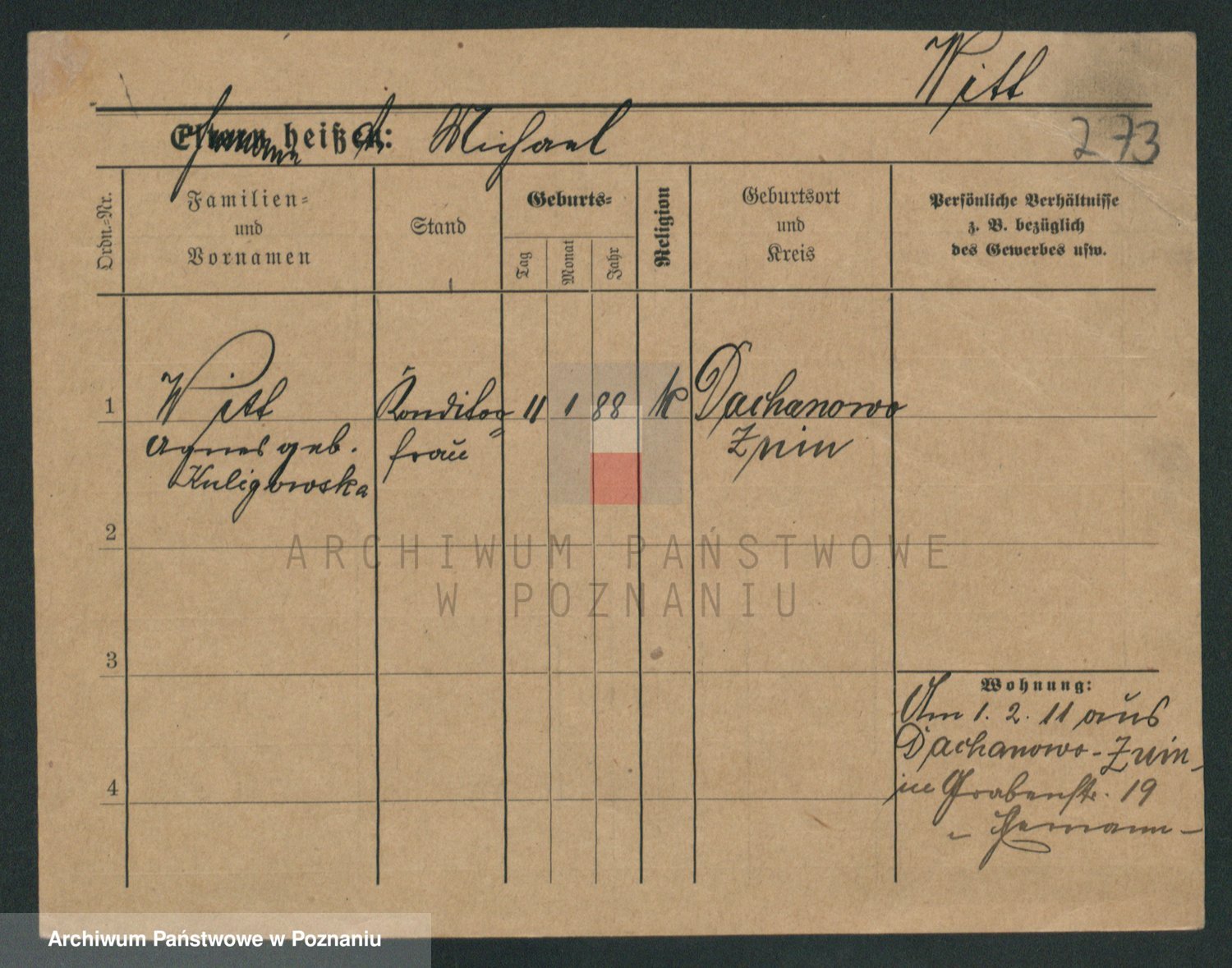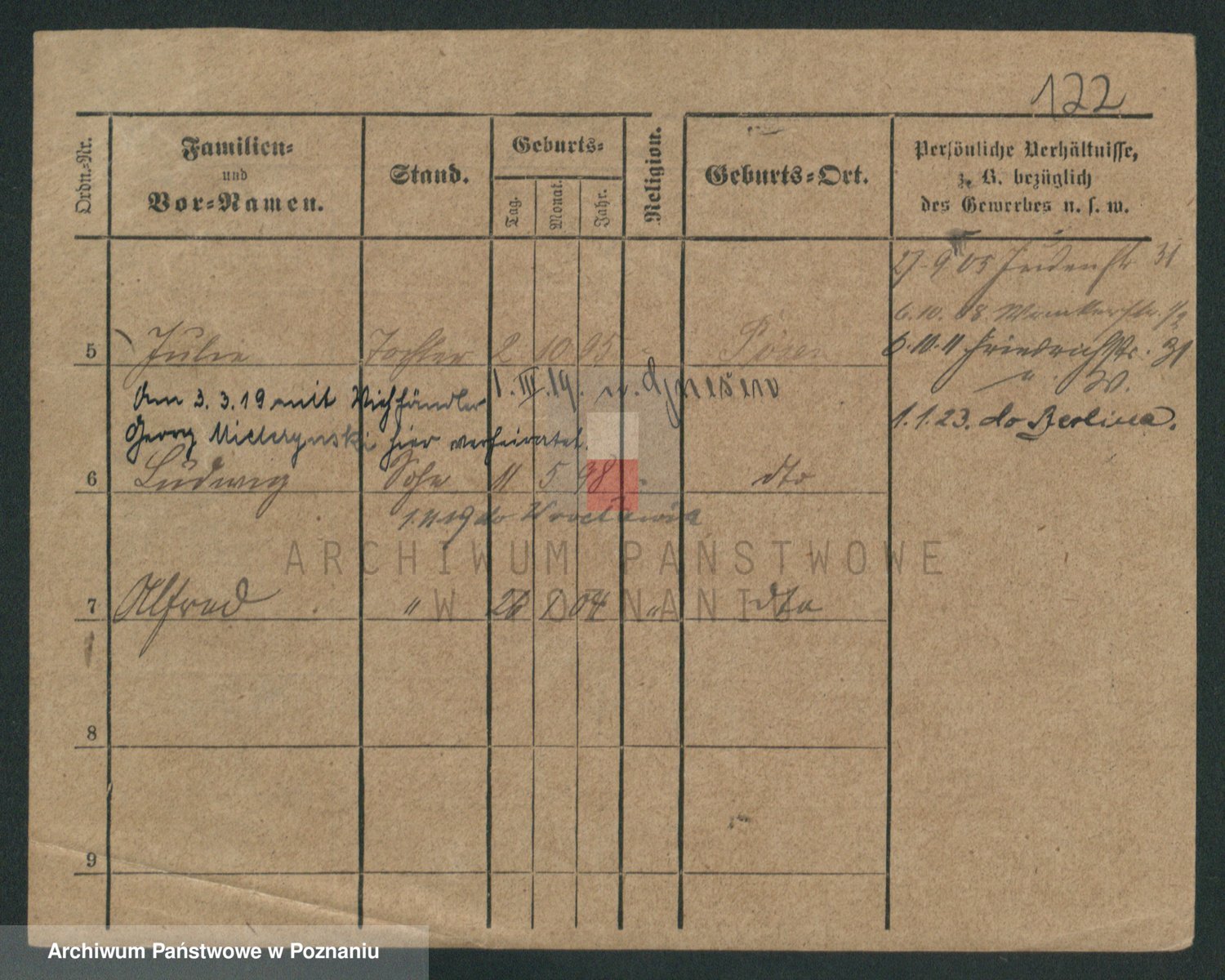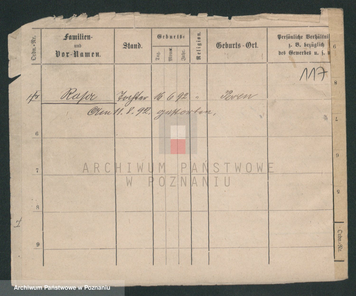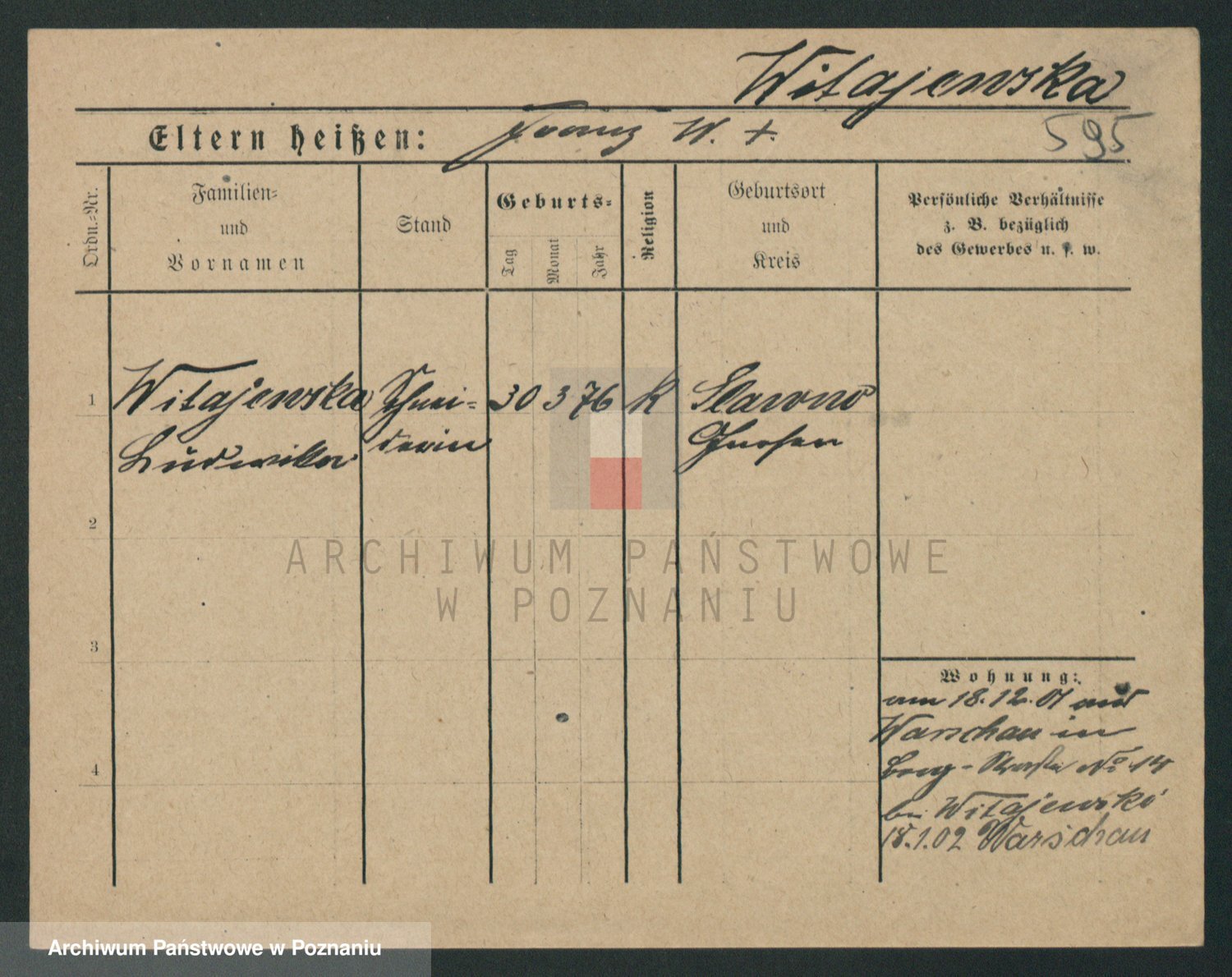 Podgląd karty osobowej dostępny jest po kliknięciu na nazwisko lub ikonkę karty. Można dokonywać powiększenia (ikony na górze) lub przechodzić między kolejnymi skanami (strzałki po bokach).
