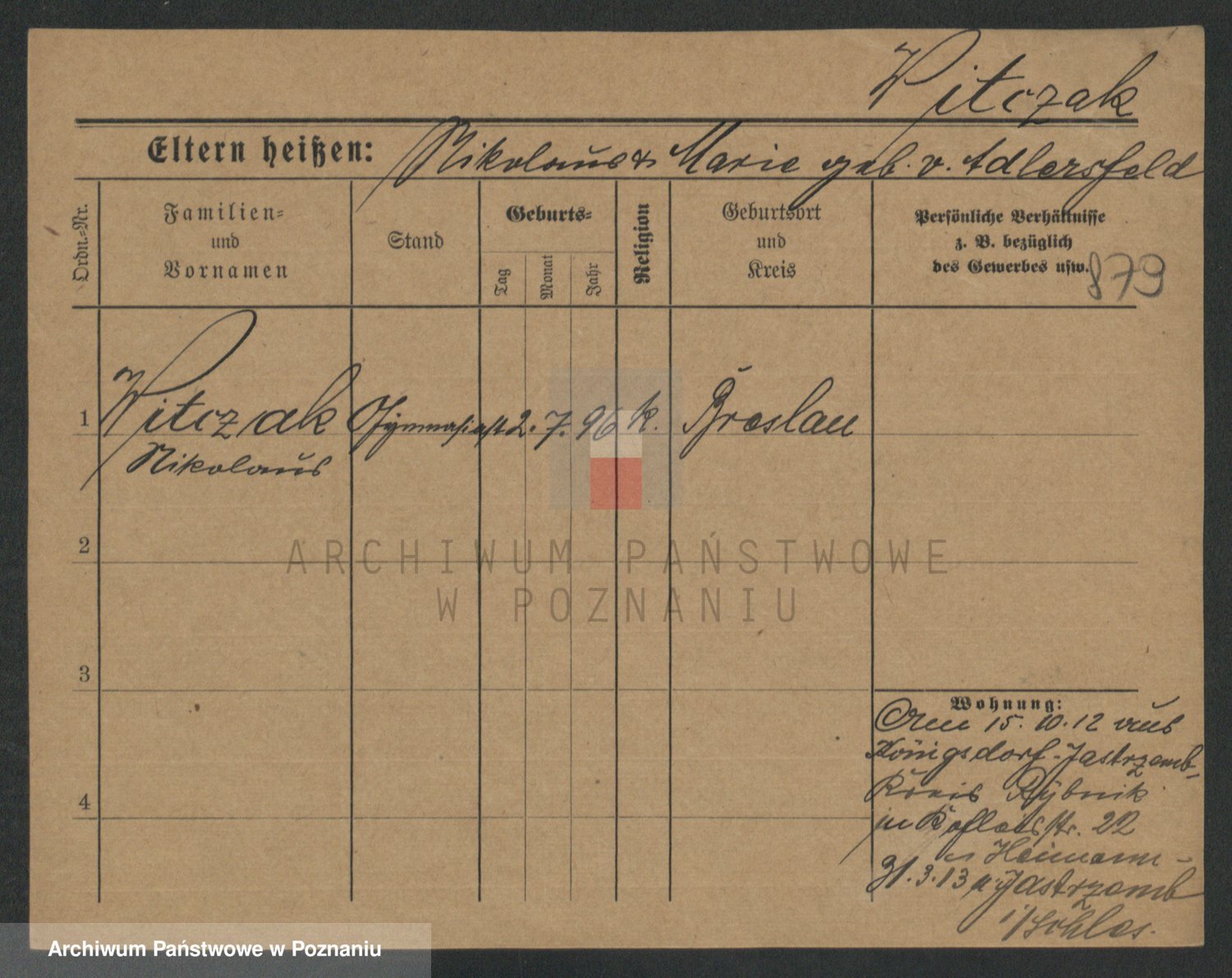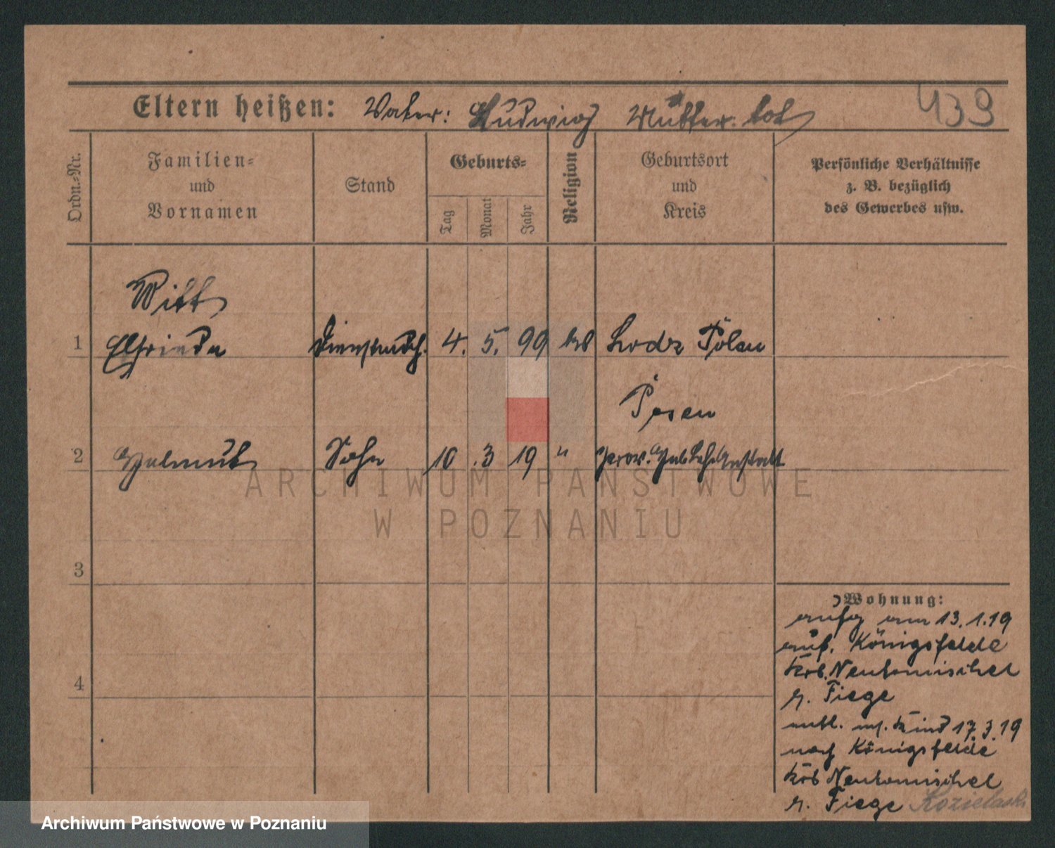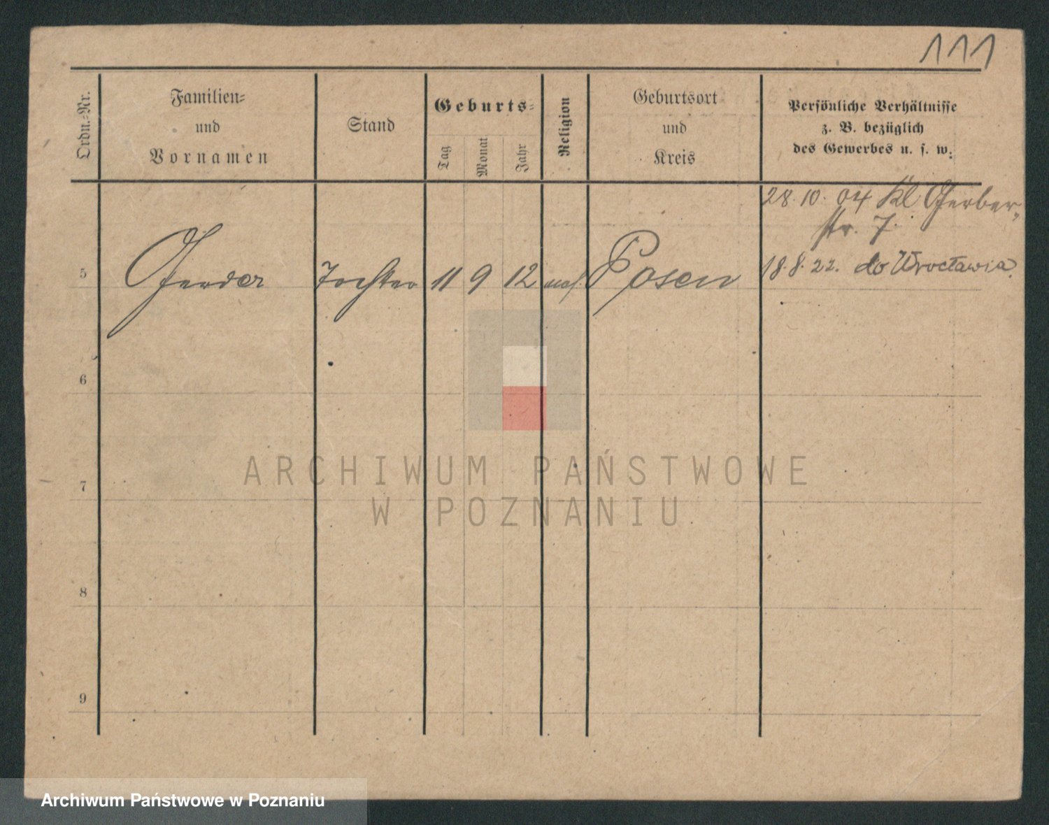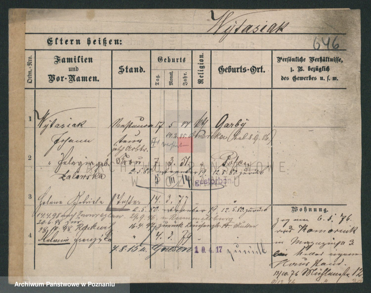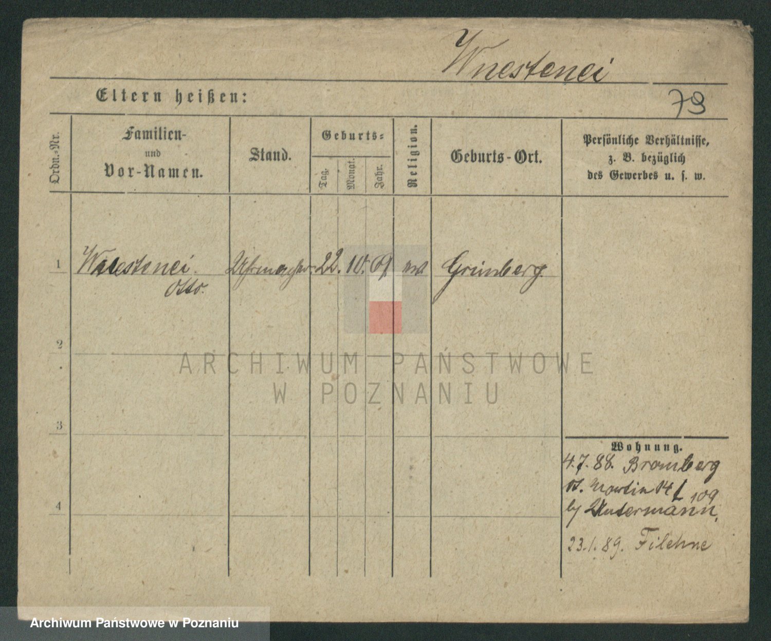 Podgląd karty osobowej dostępny jest po kliknięciu na nazwisko lub ikonkę karty. Można dokonywać powiększenia (ikony na górze) lub przechodzić między kolejnymi skanami (strzałki po bokach).