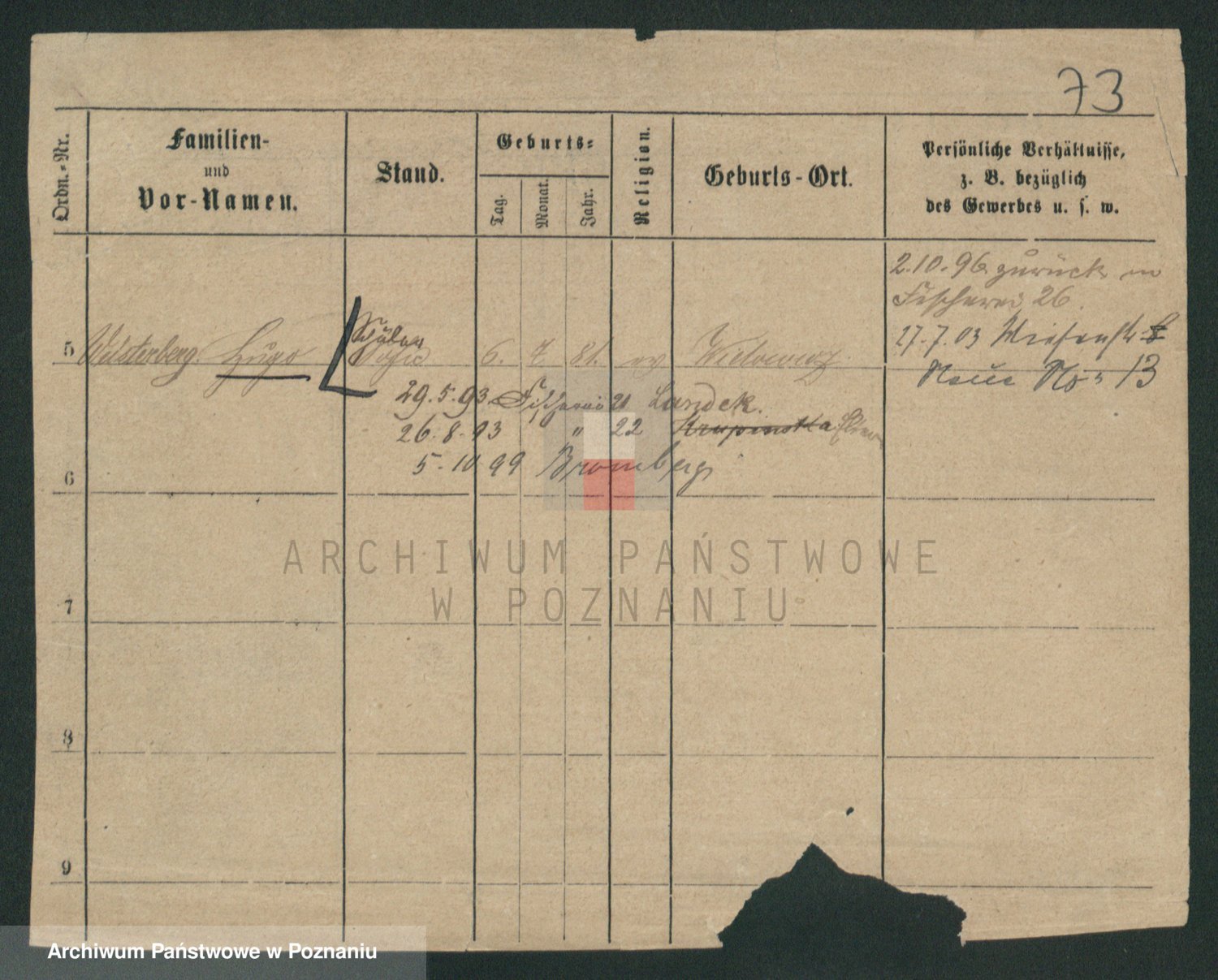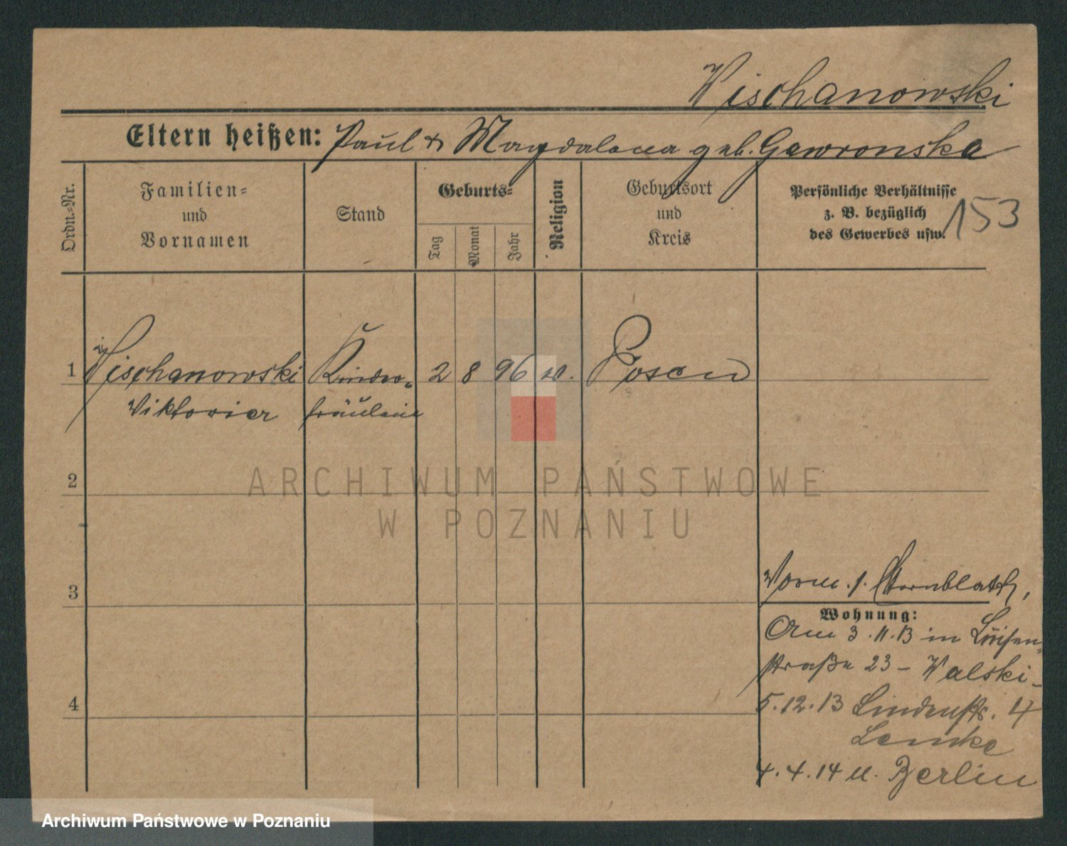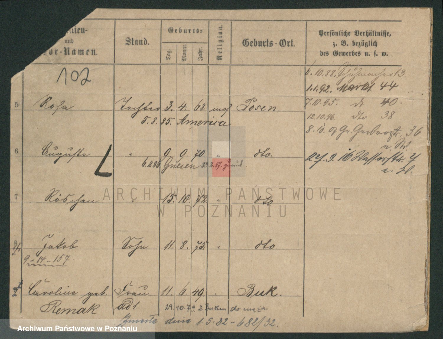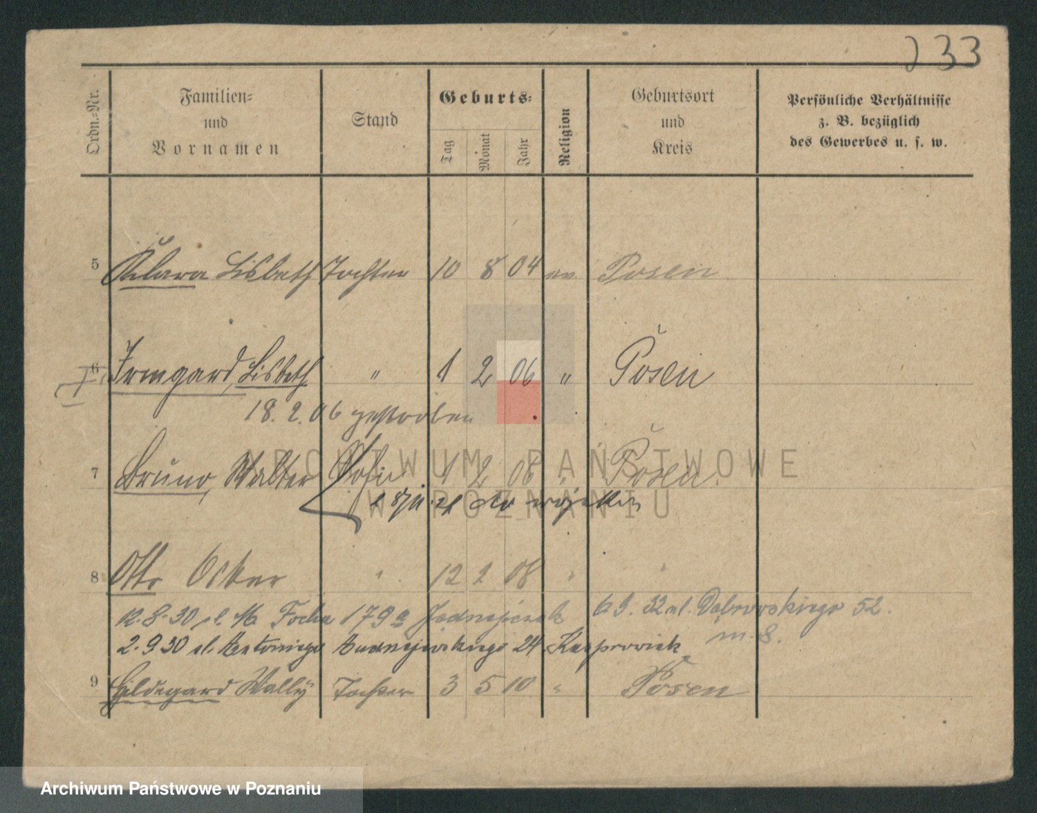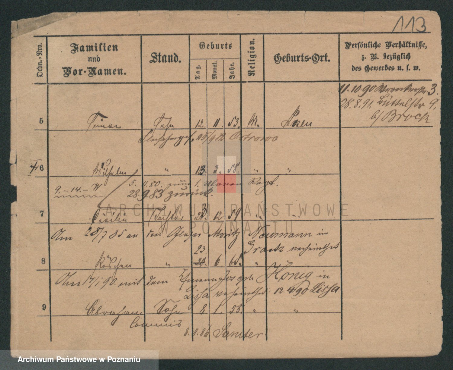 Podgląd karty osobowej dostępny jest po kliknięciu na nazwisko lub ikonkę karty. Można dokonywać powiększenia (ikony na górze) lub przechodzić między kolejnymi skanami (strzałki po bokach).