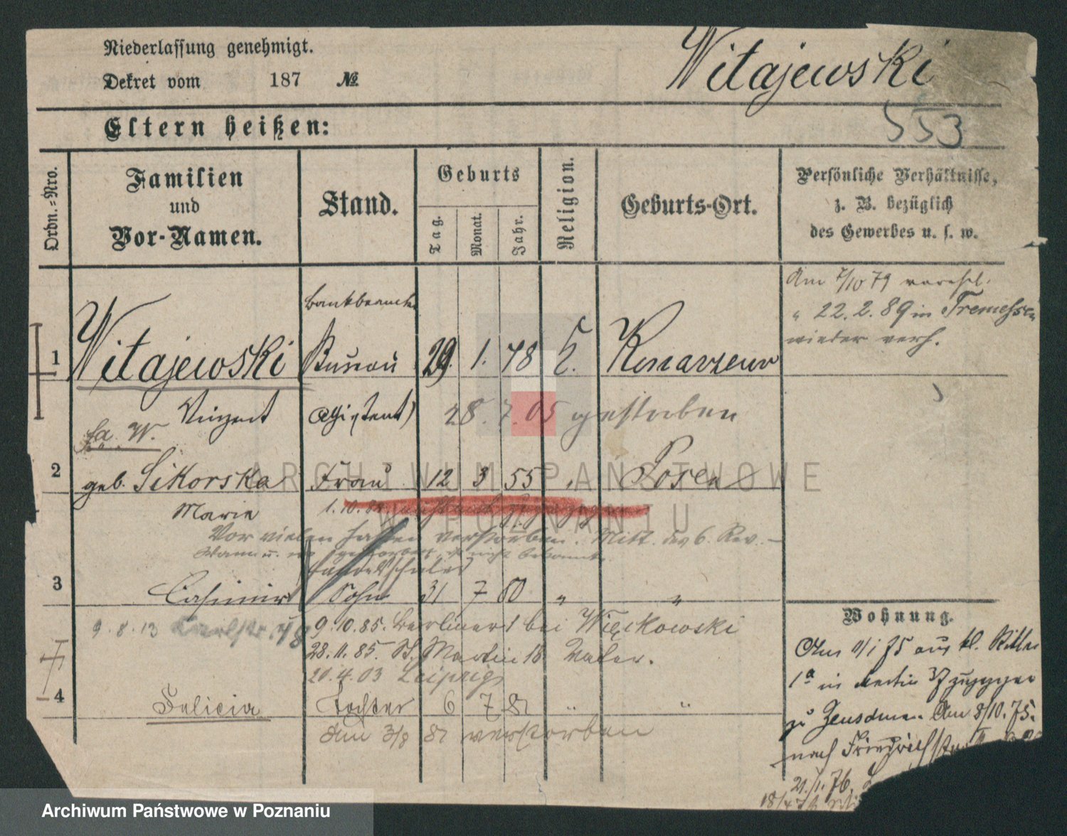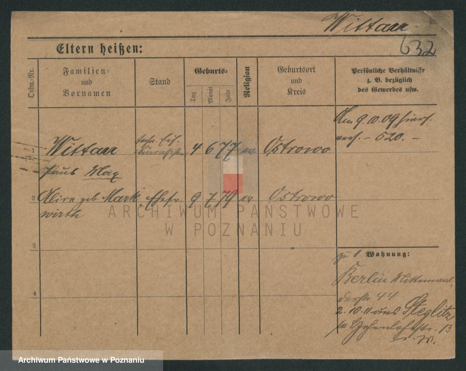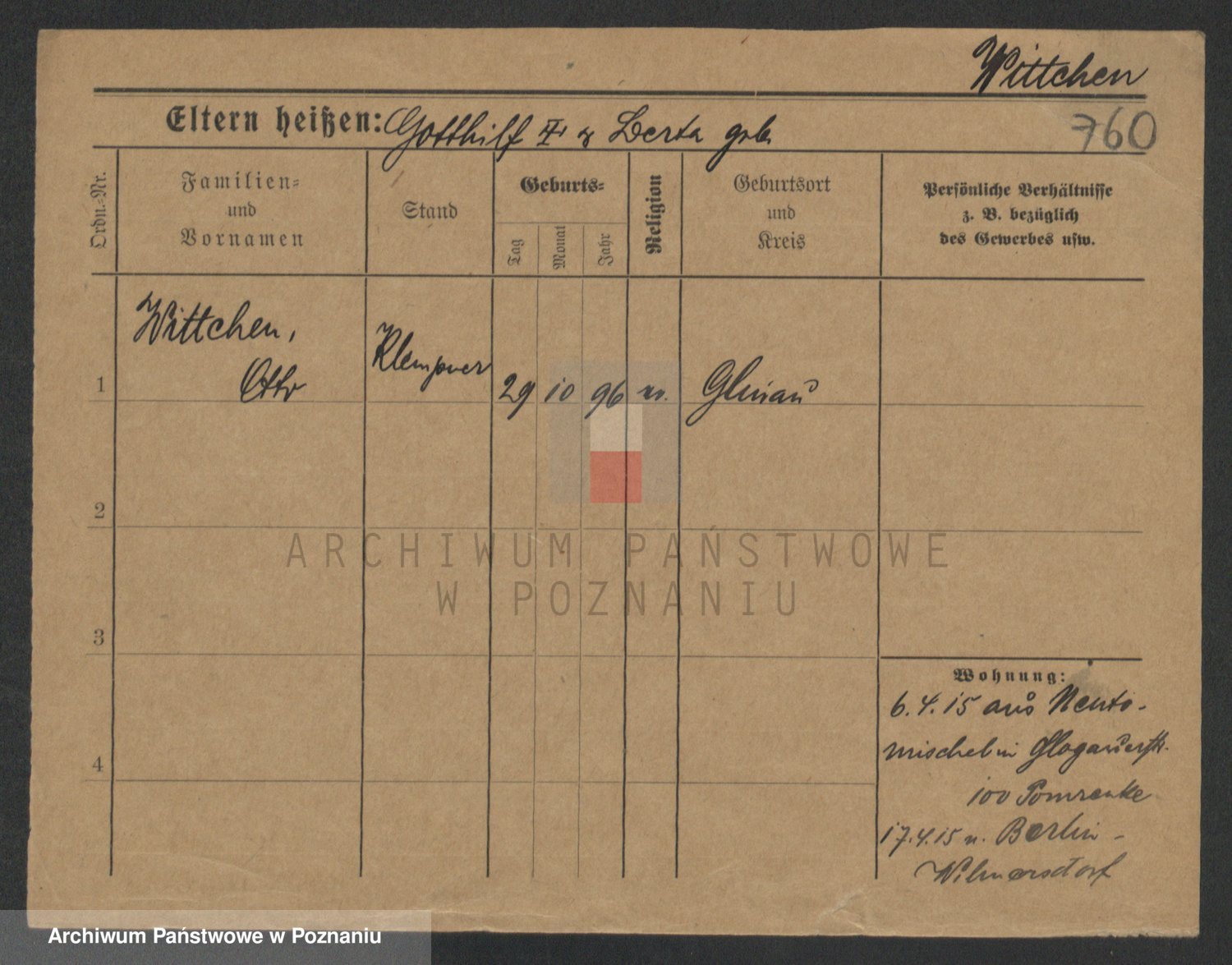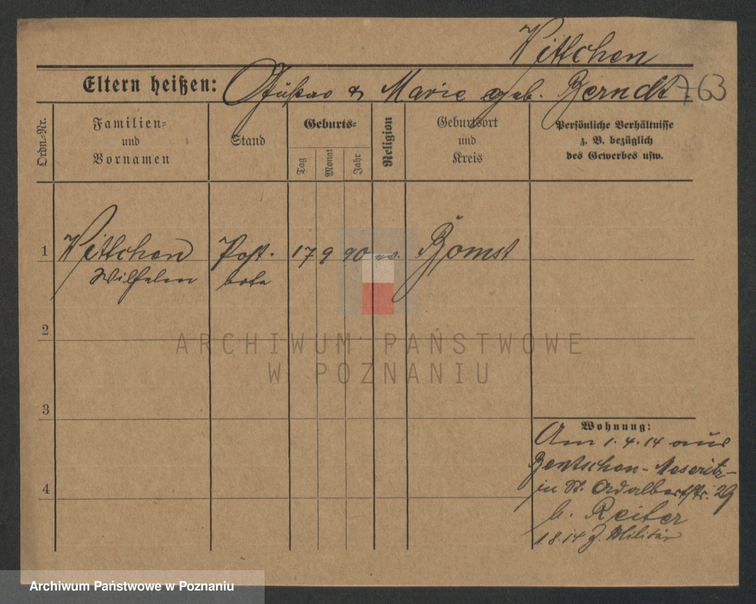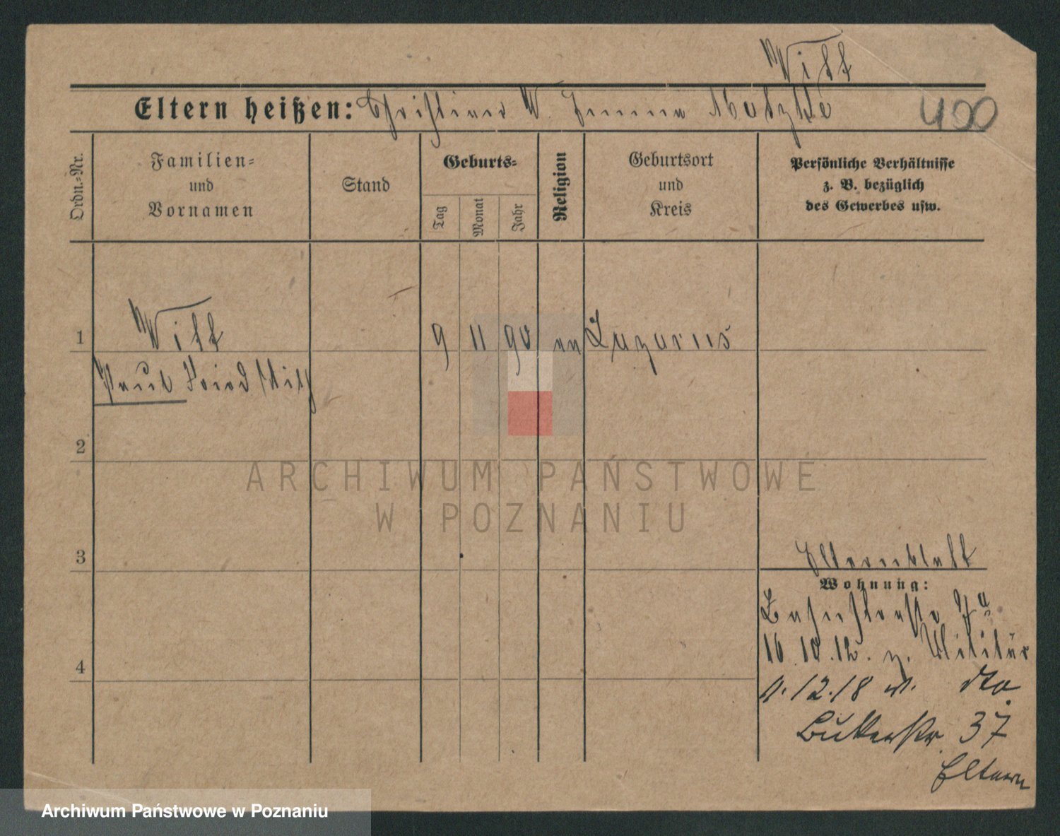 Podgląd karty osobowej dostępny jest po kliknięciu na nazwisko lub ikonkę karty. Można dokonywać powiększenia (ikony na górze) lub przechodzić między kolejnymi skanami (strzałki po bokach).