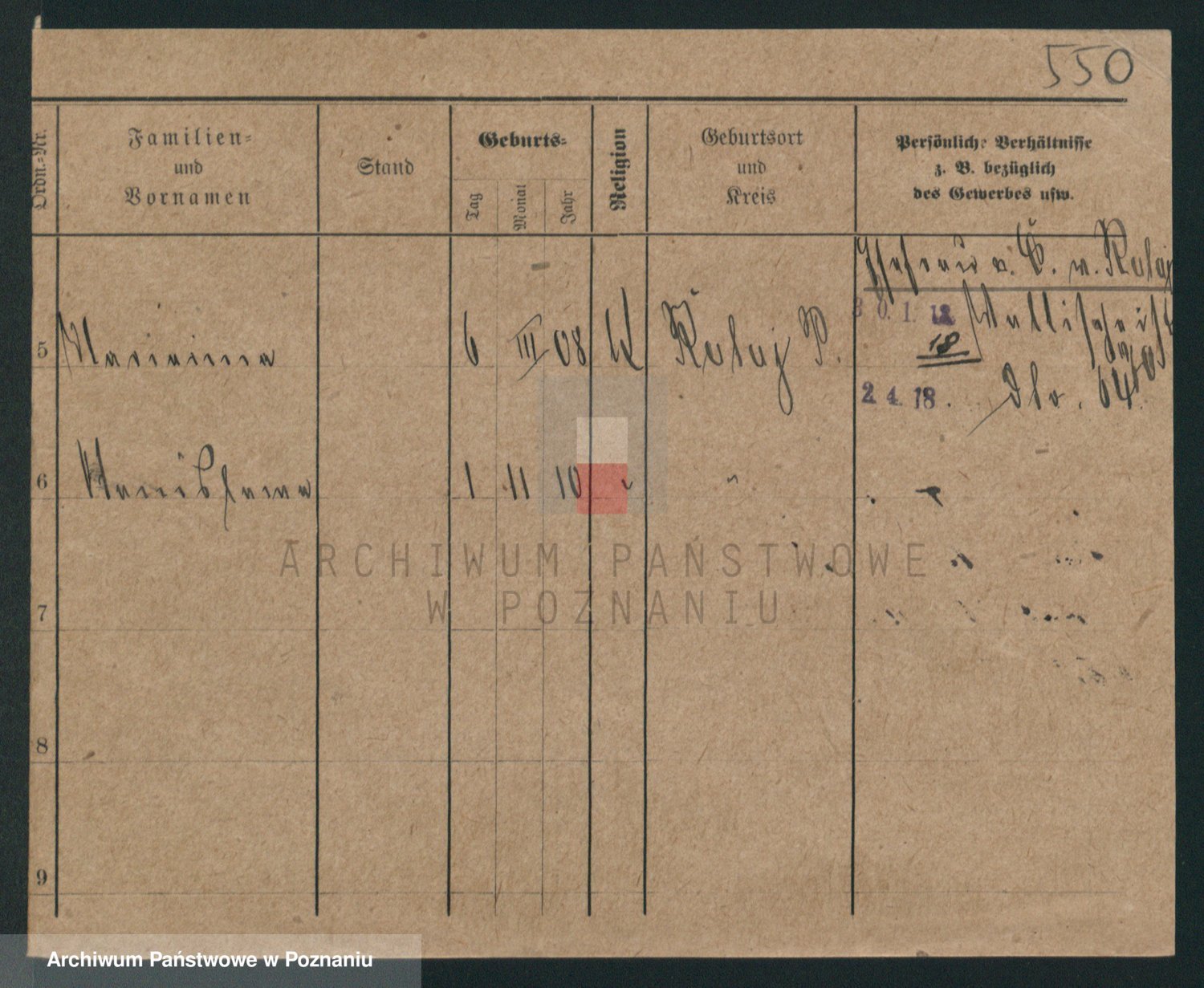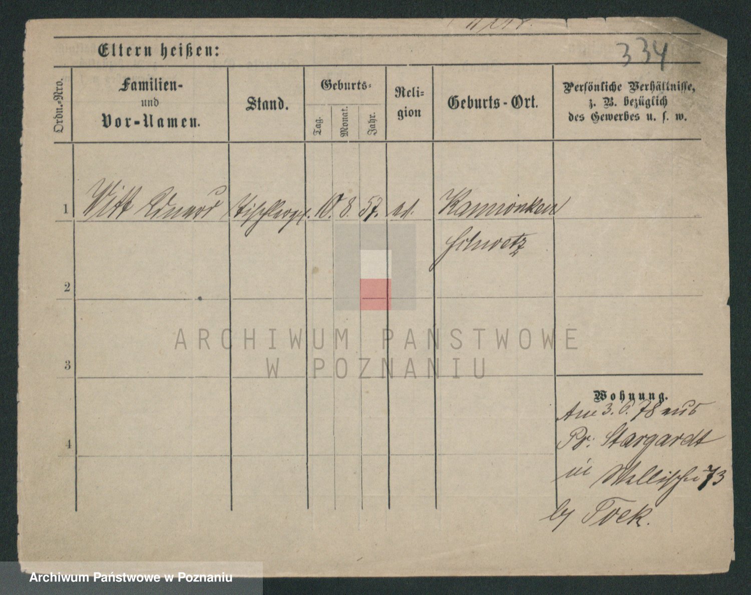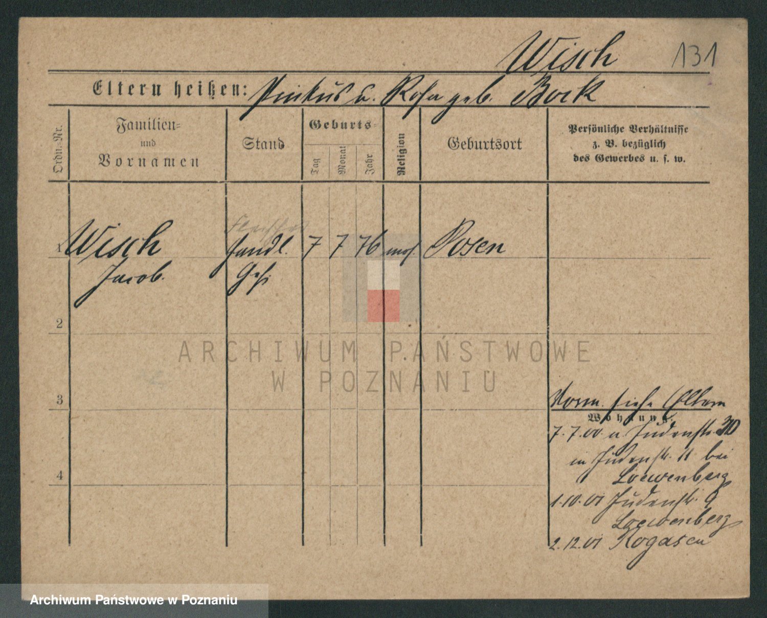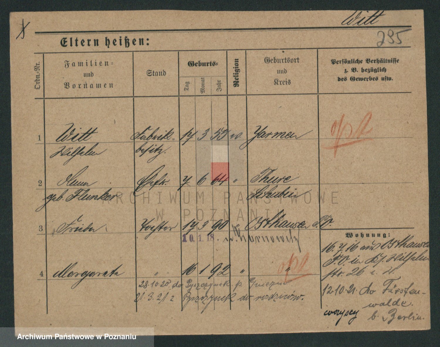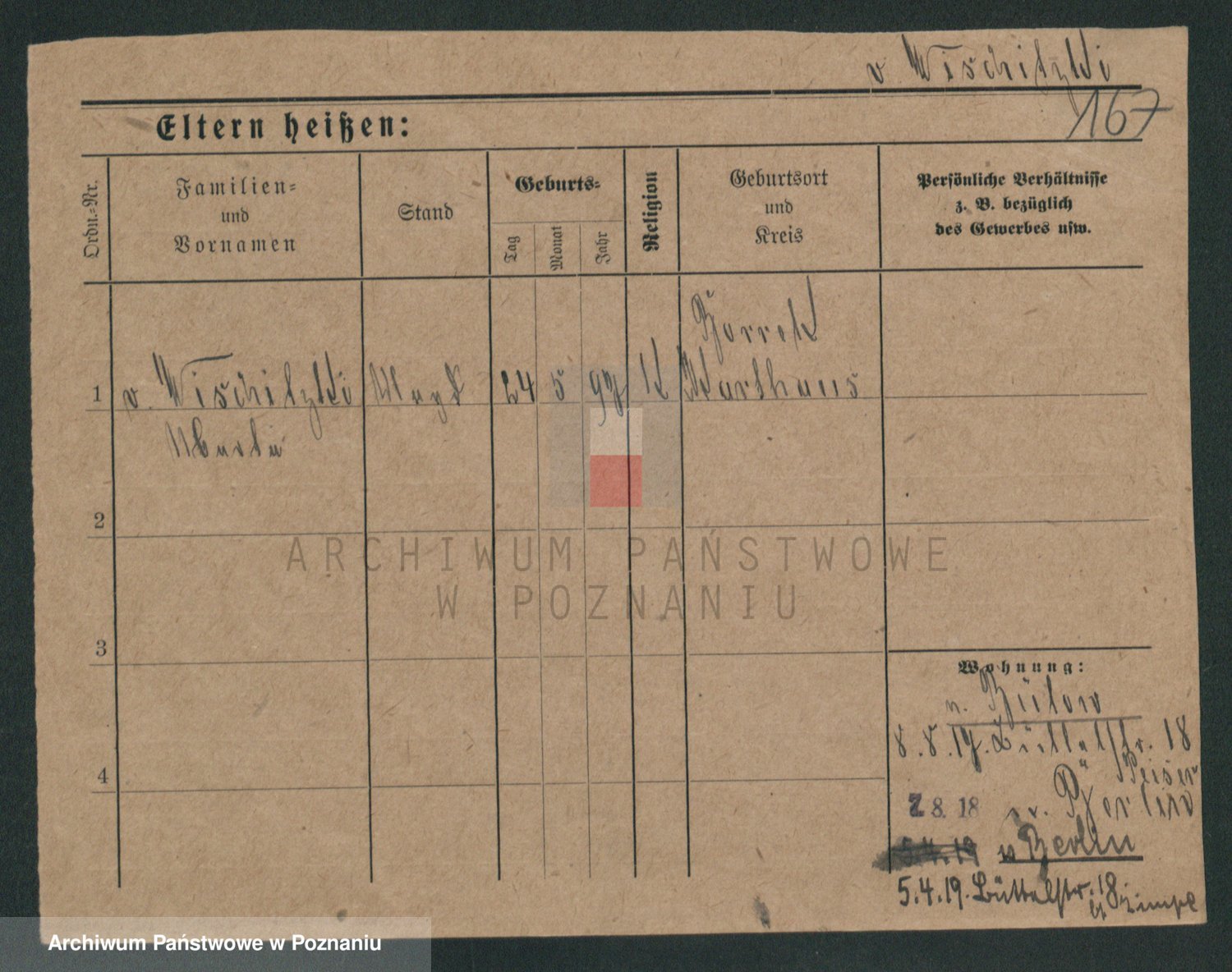 Podgląd karty osobowej dostępny jest po kliknięciu na nazwisko lub ikonkę karty. Można dokonywać powiększenia (ikony na górze) lub przechodzić między kolejnymi skanami (strzałki po bokach).