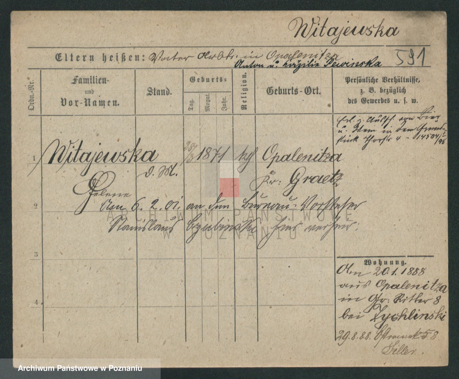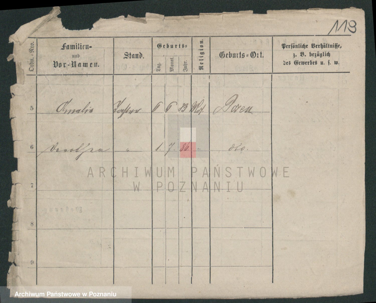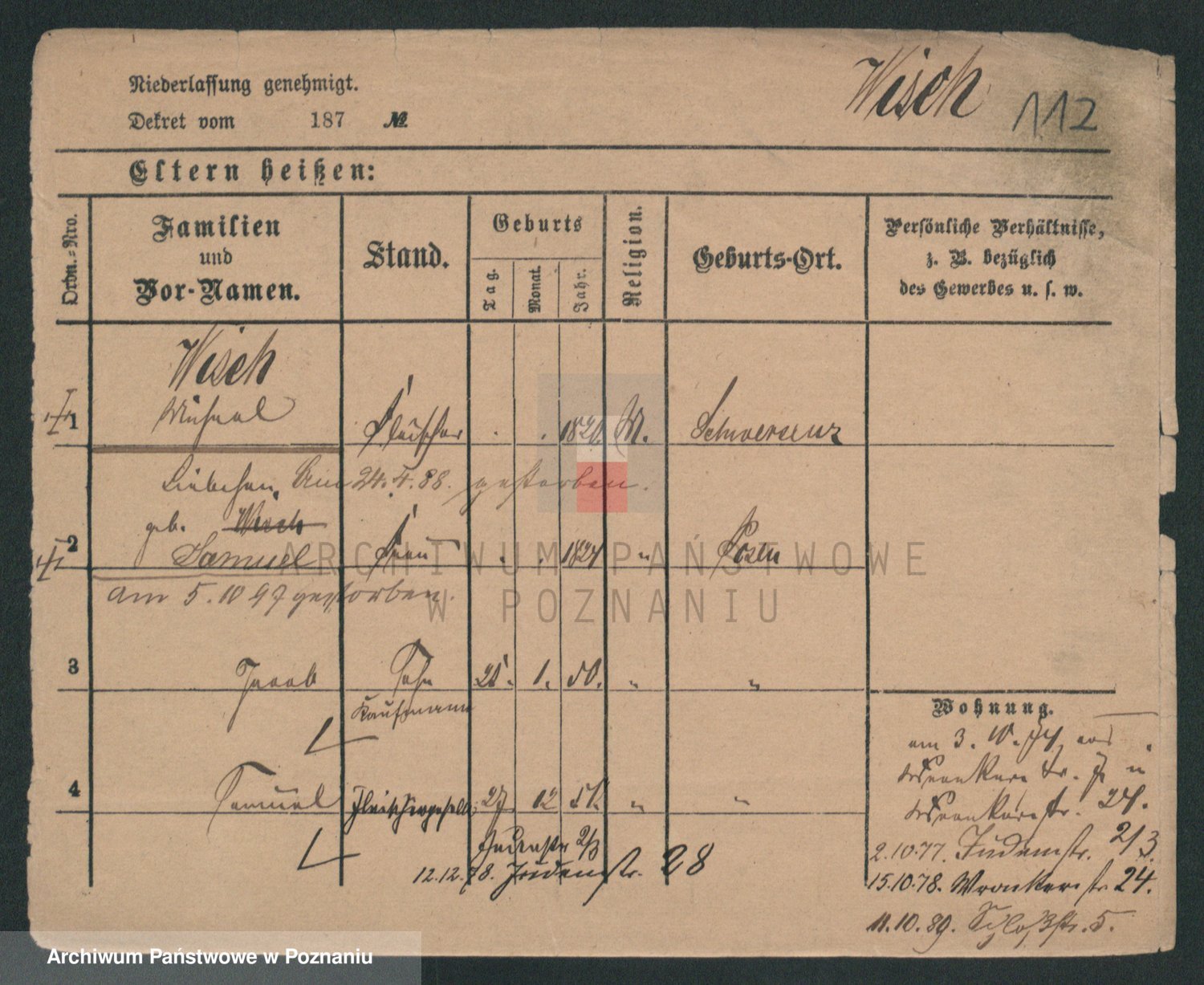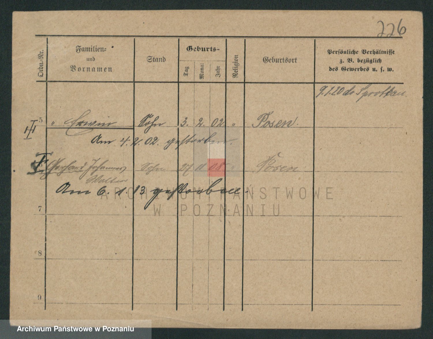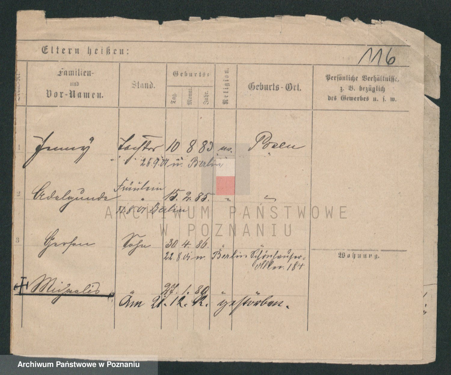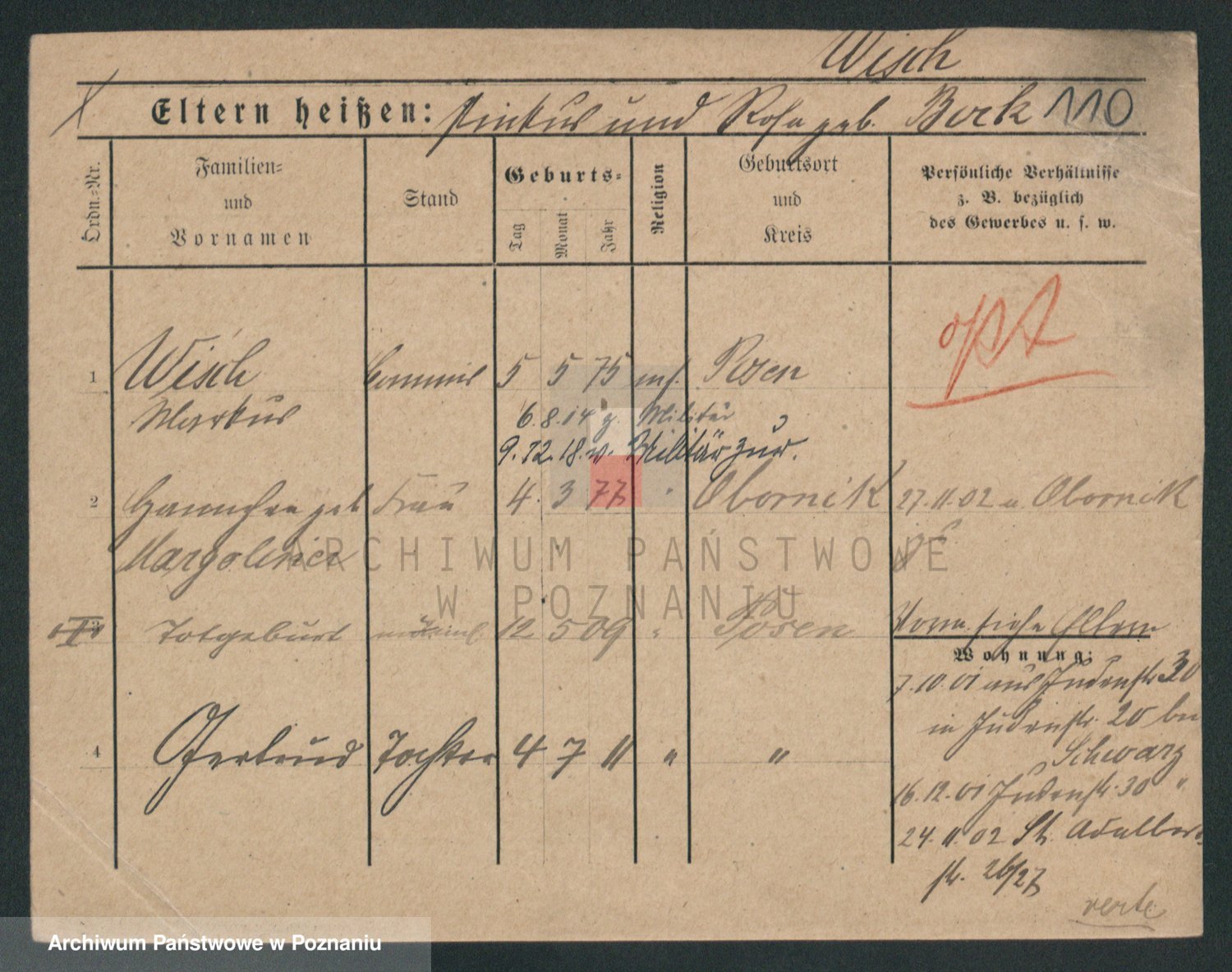 Podgląd karty osobowej dostępny jest po kliknięciu na nazwisko lub ikonkę karty. Można dokonywać powiększenia (ikony na górze) lub przechodzić między kolejnymi skanami (strzałki po bokach).