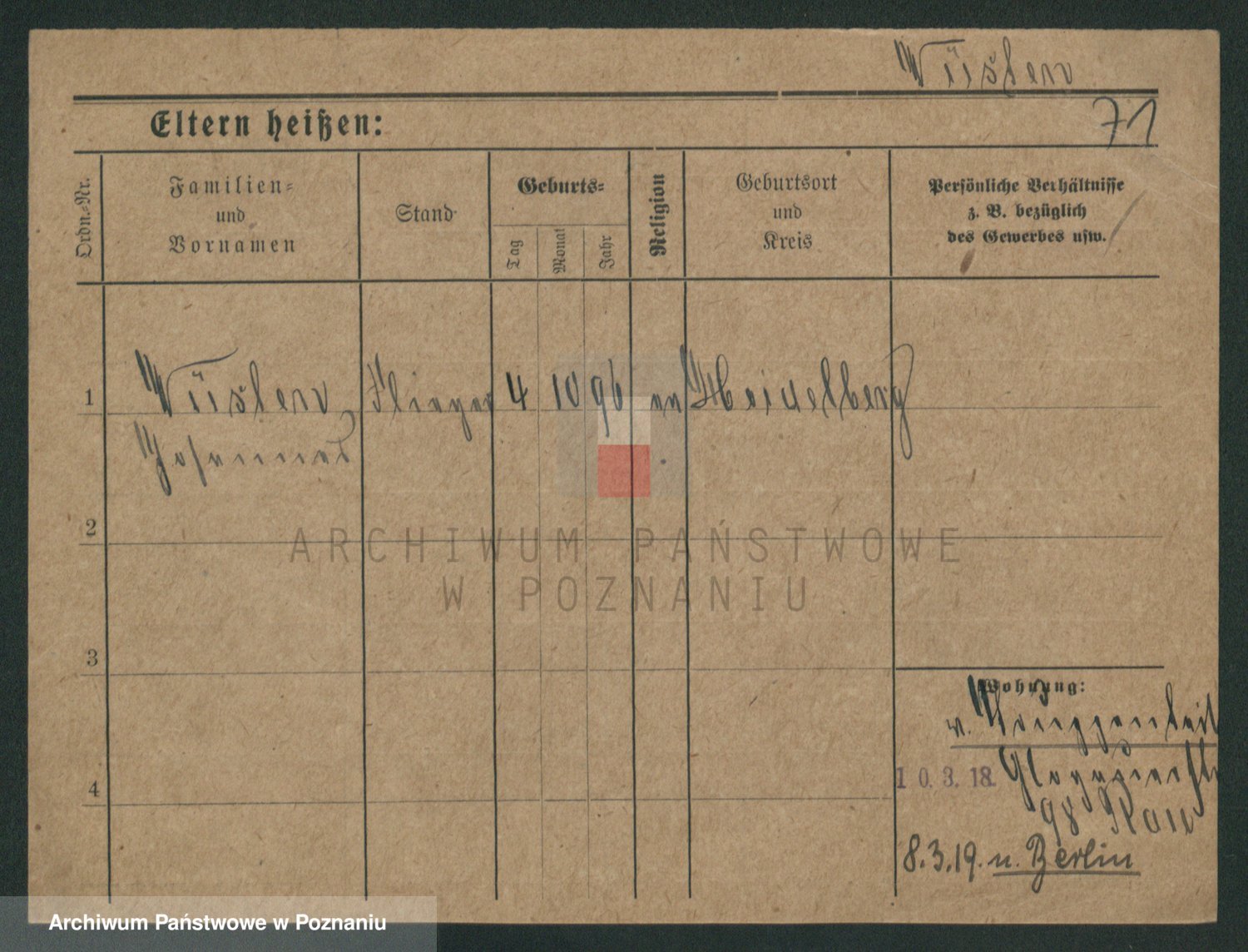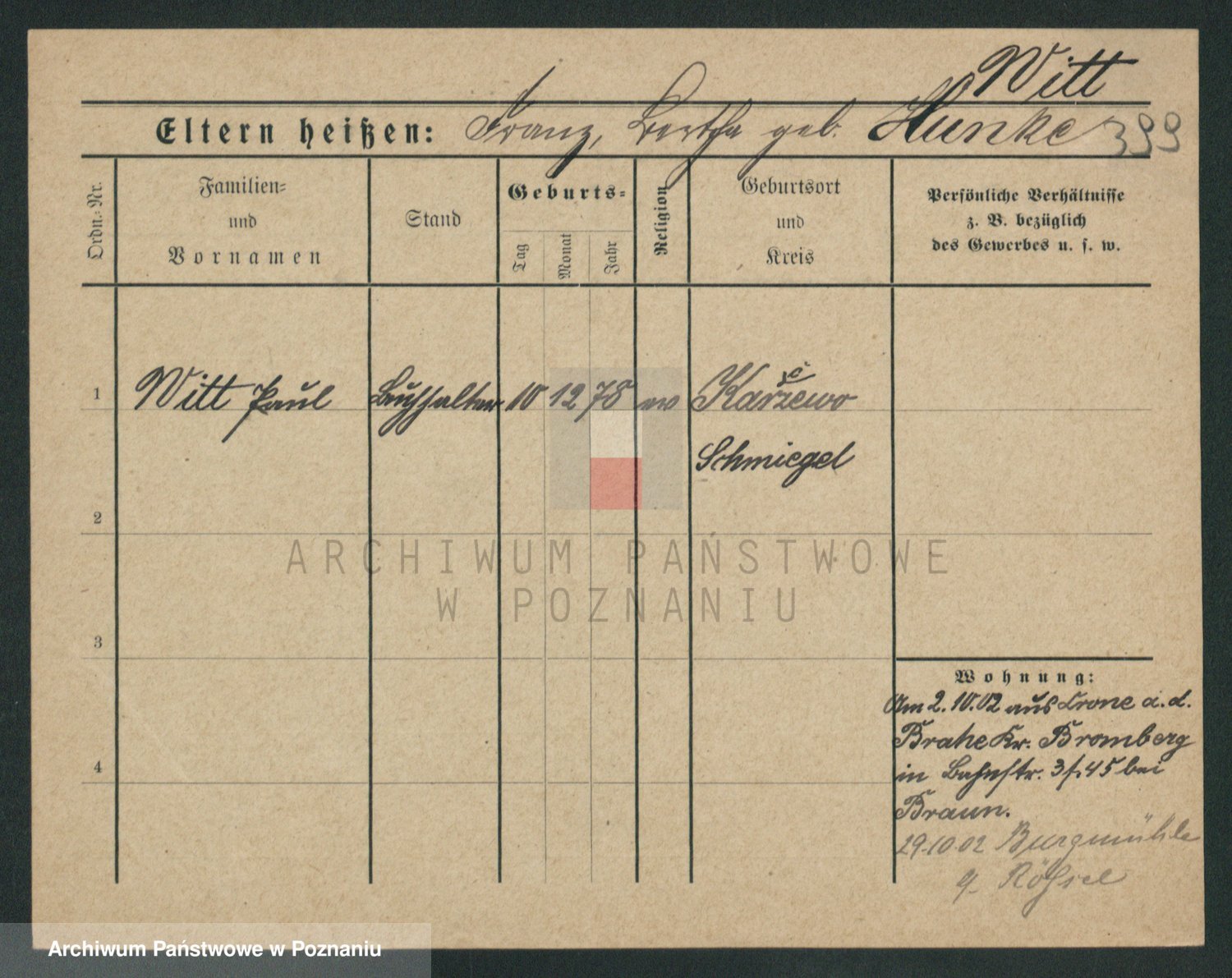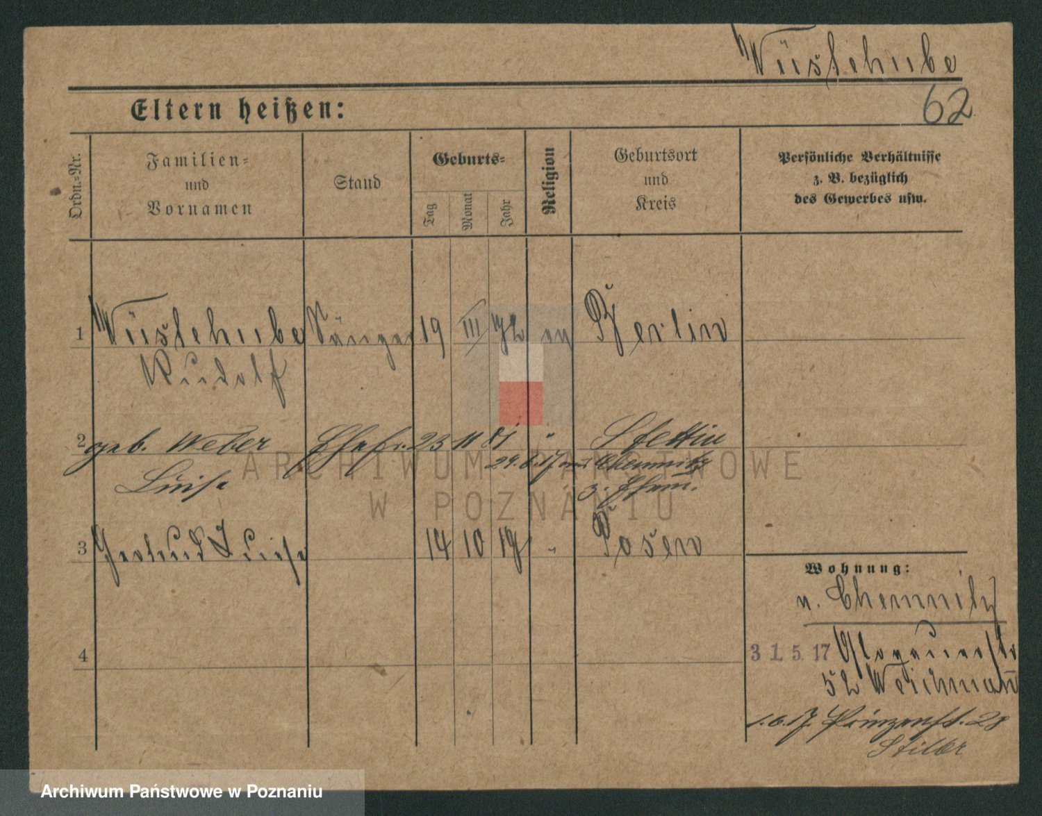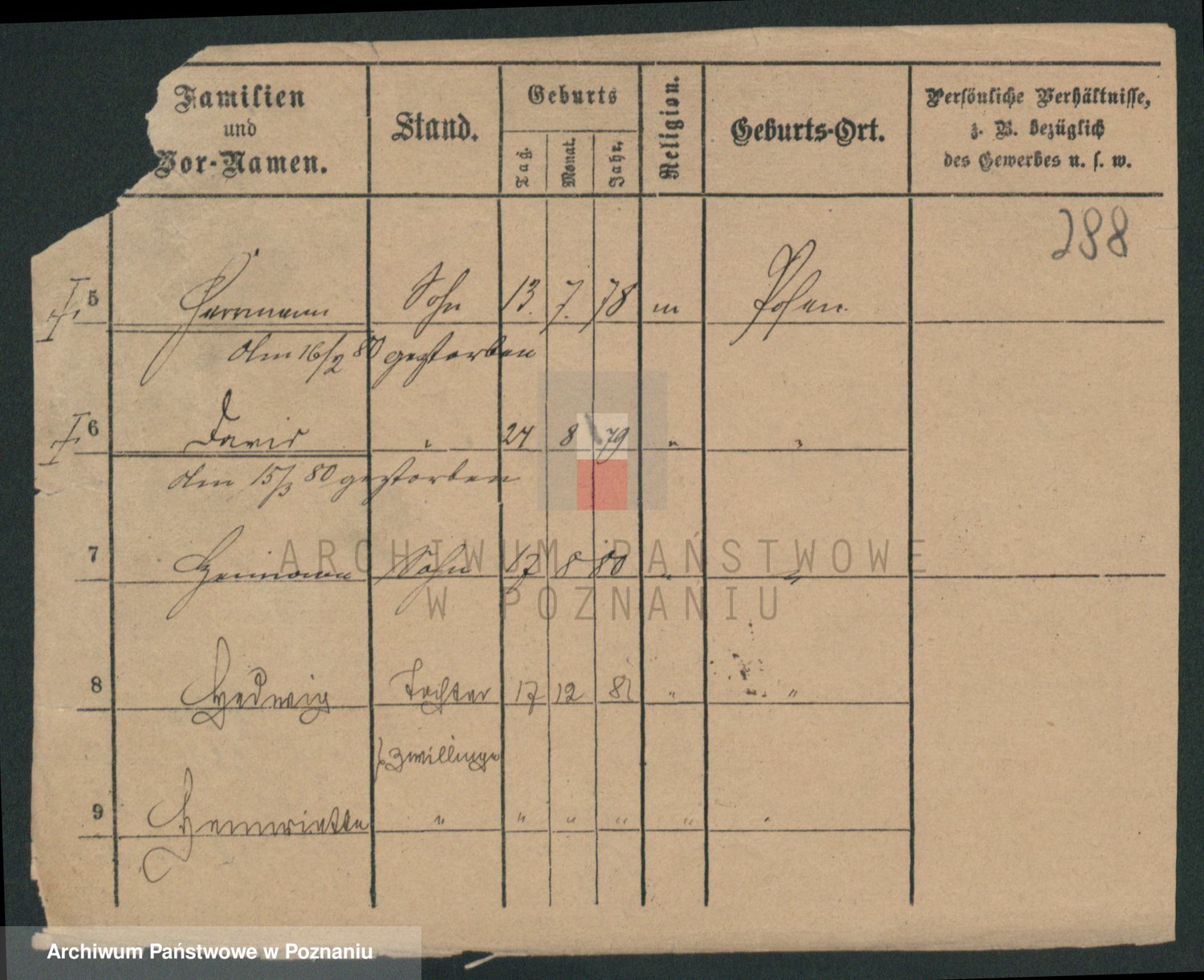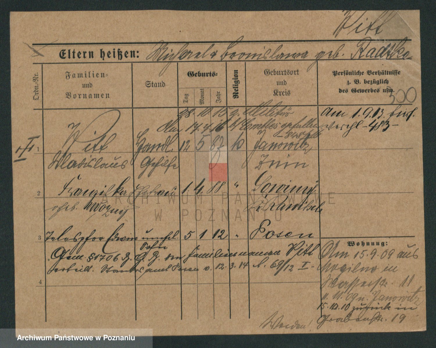 Podgląd karty osobowej dostępny jest po kliknięciu na nazwisko lub ikonkę karty. Można dokonywać powiększenia (ikony na górze) lub przechodzić między kolejnymi skanami (strzałki po bokach).