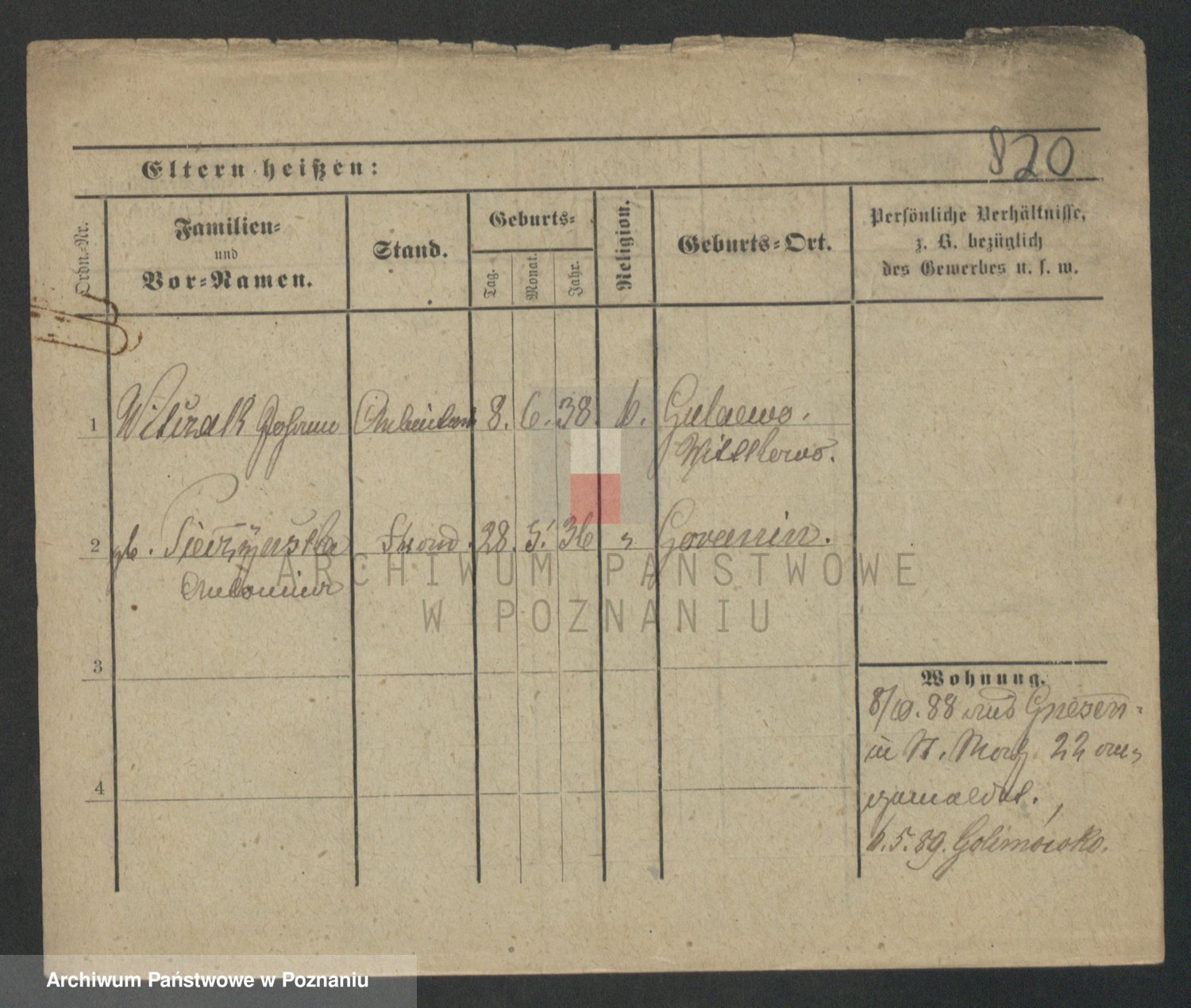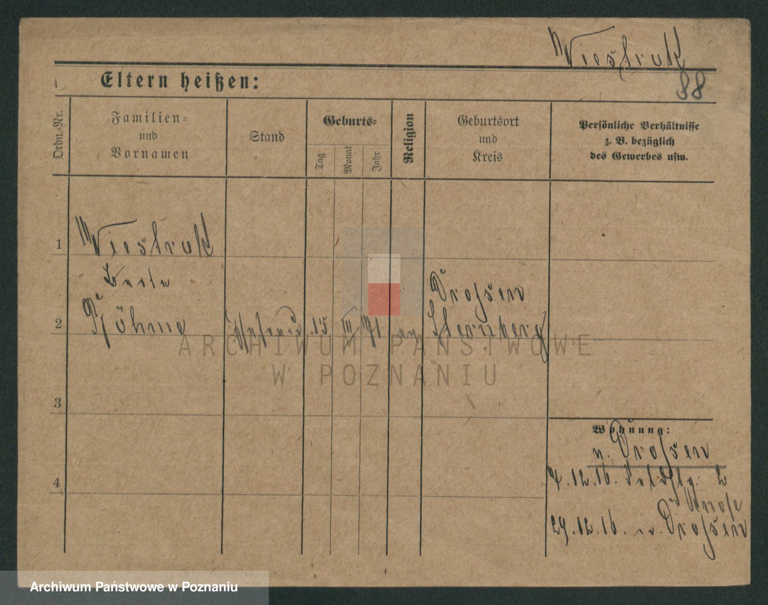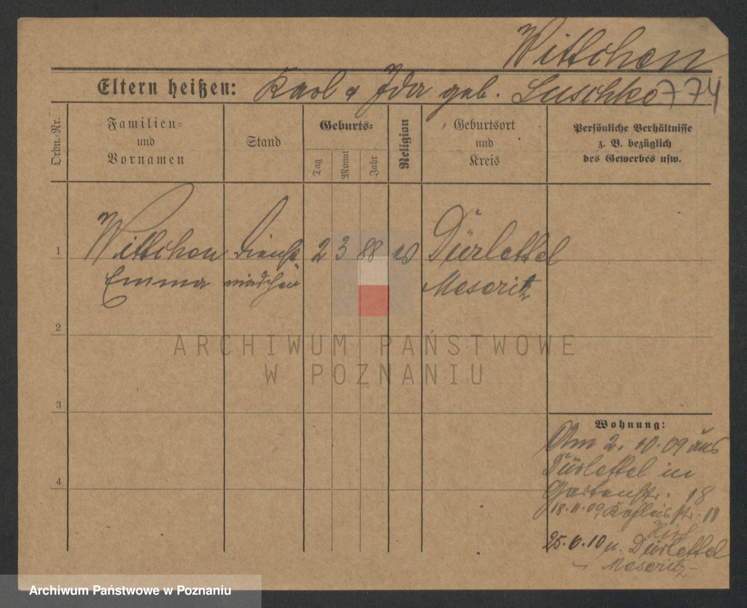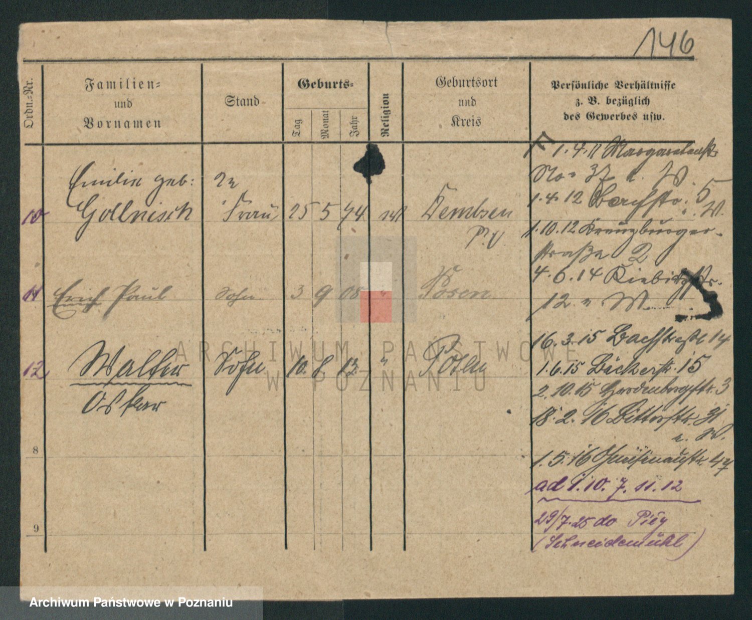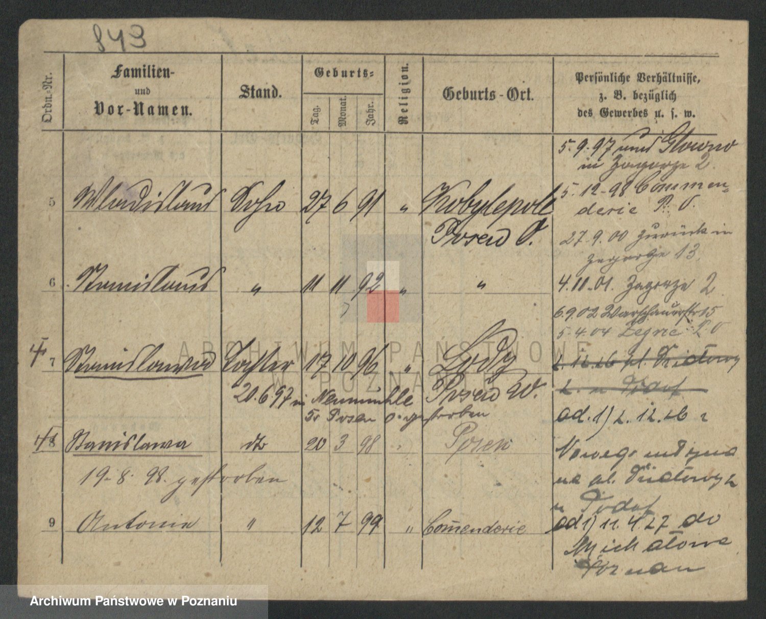 Podgląd karty osobowej dostępny jest po kliknięciu na nazwisko lub ikonkę karty. Można dokonywać powiększenia (ikony na górze) lub przechodzić między kolejnymi skanami (strzałki po bokach).