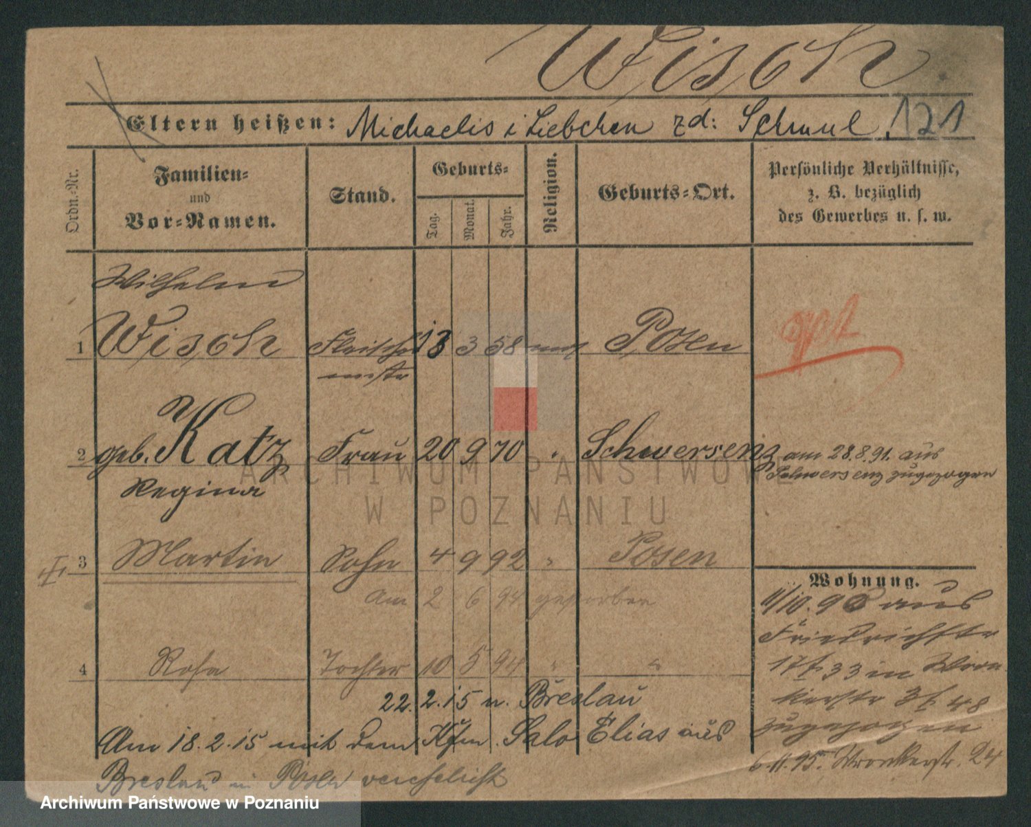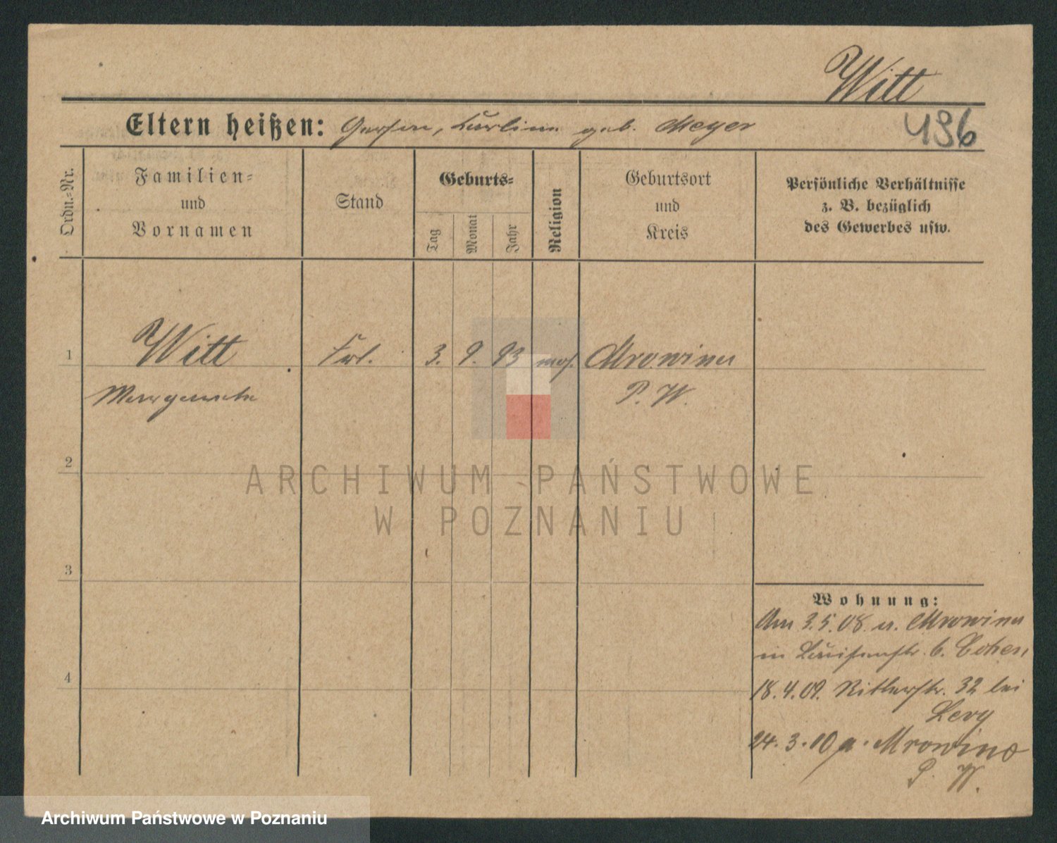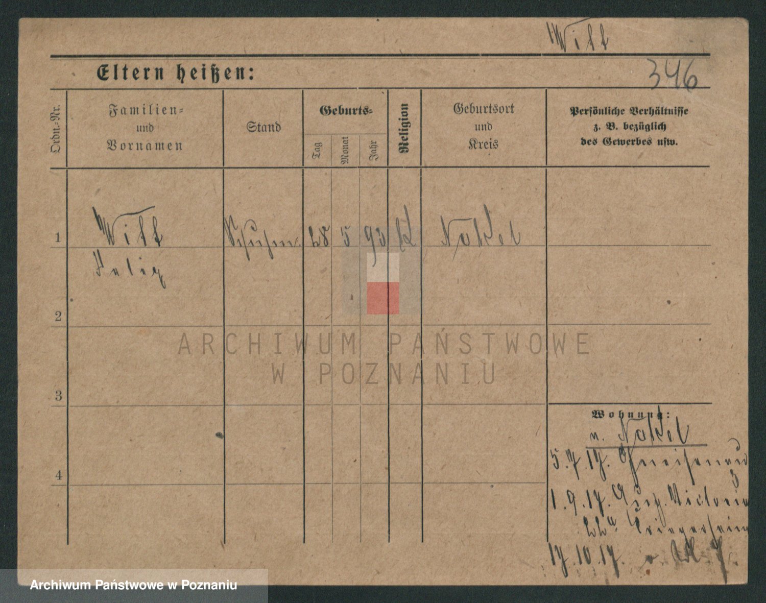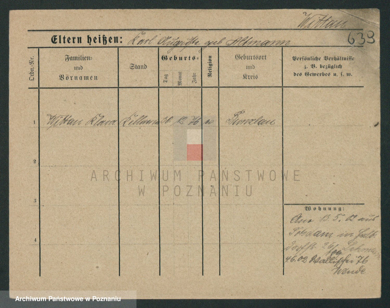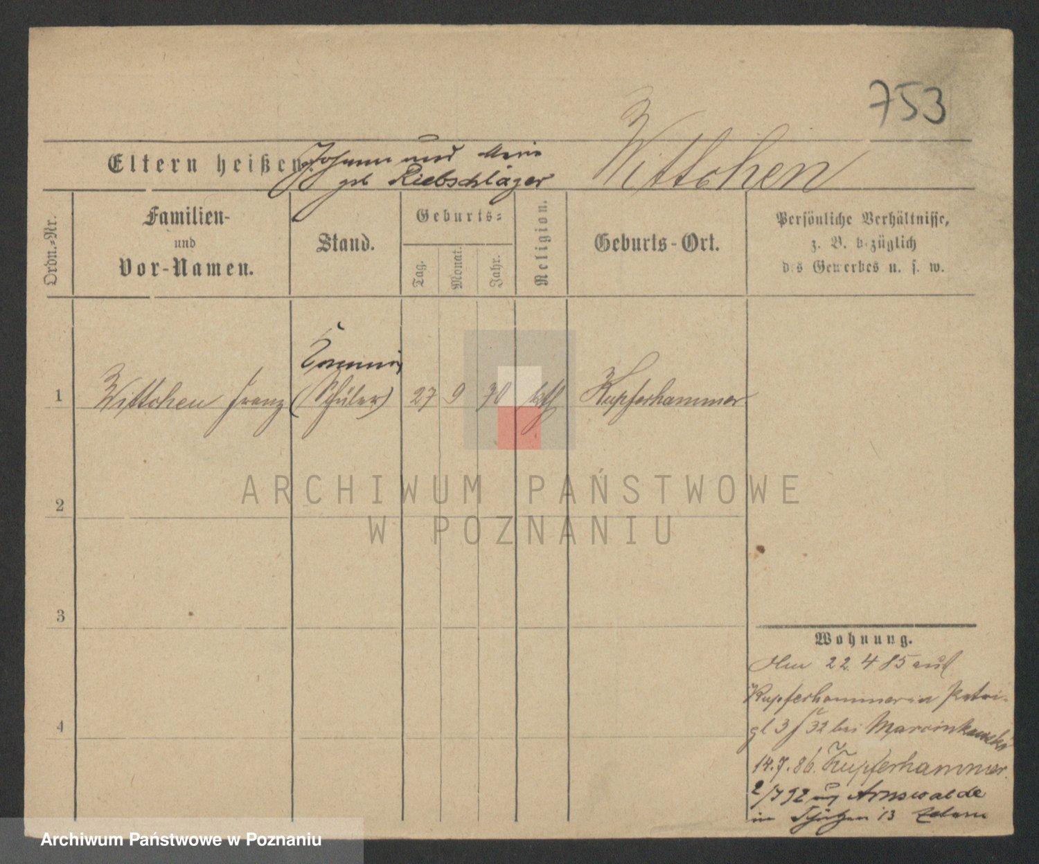 Podgląd karty osobowej dostępny jest po kliknięciu na nazwisko lub ikonkę karty. Można dokonywać powiększenia (ikony na górze) lub przechodzić między kolejnymi skanami (strzałki po bokach).