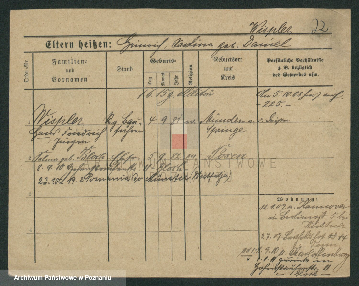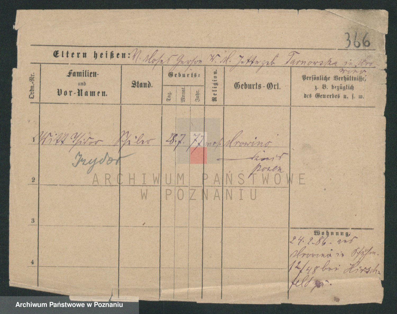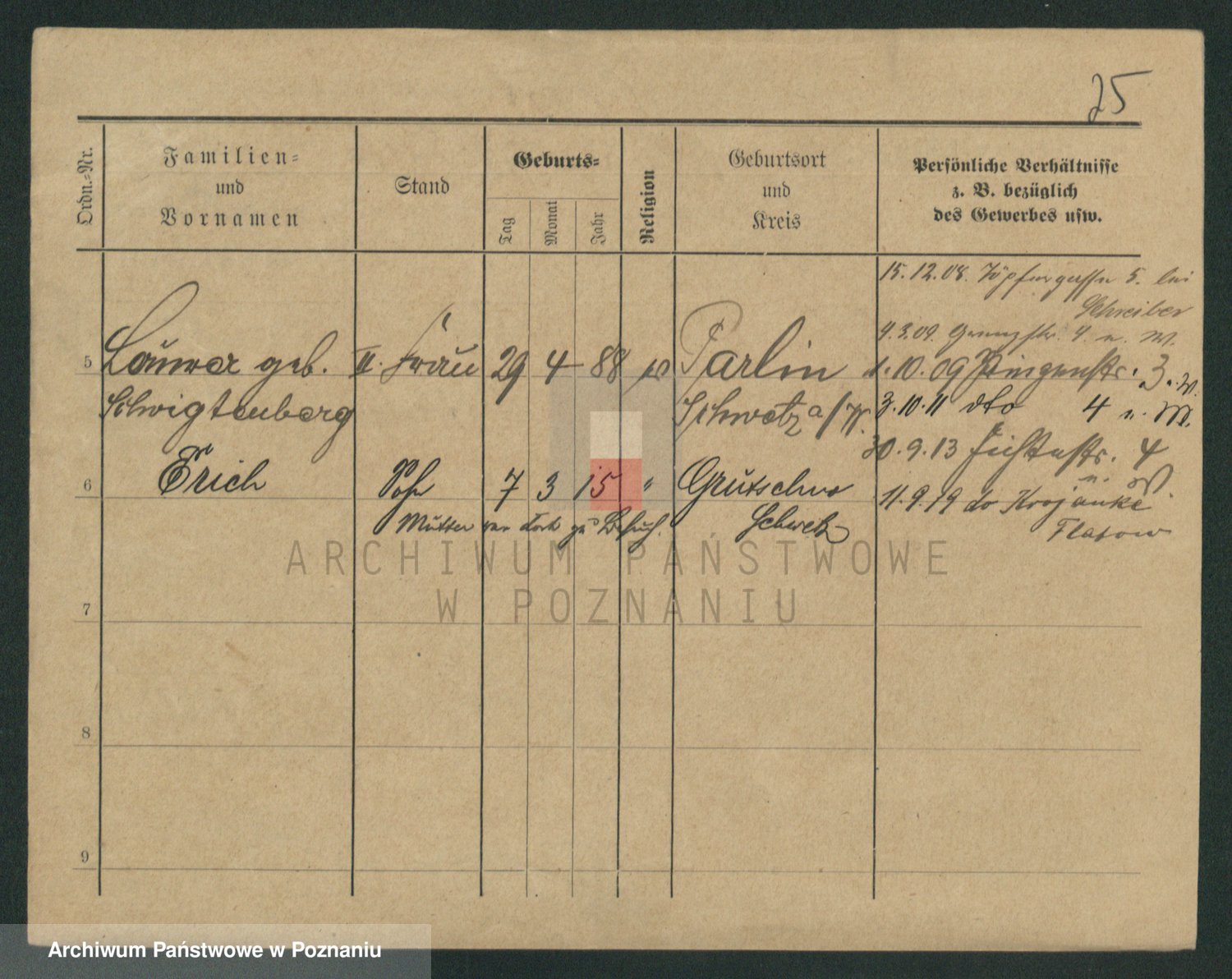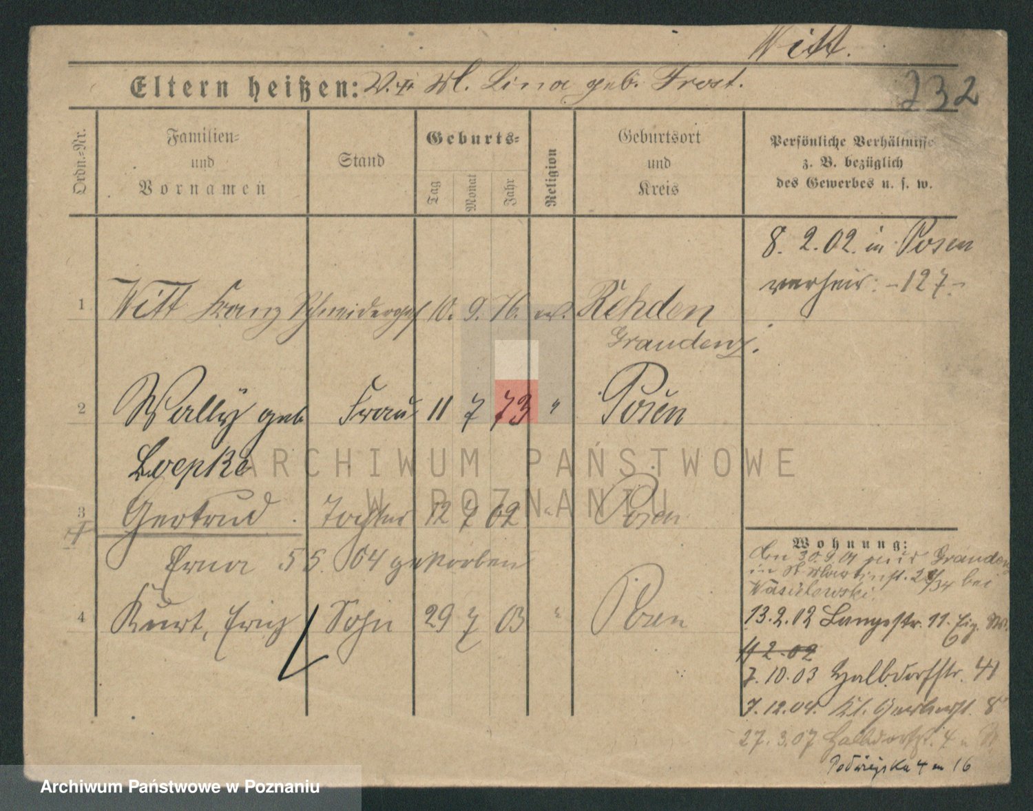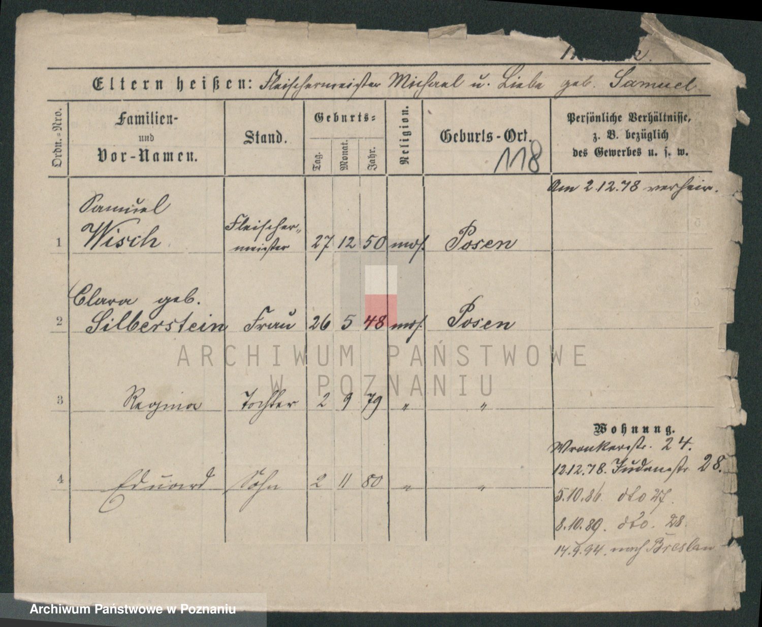 Podgląd karty osobowej dostępny jest po kliknięciu na nazwisko lub ikonkę karty. Można dokonywać powiększenia (ikony na górze) lub przechodzić między kolejnymi skanami (strzałki po bokach).
