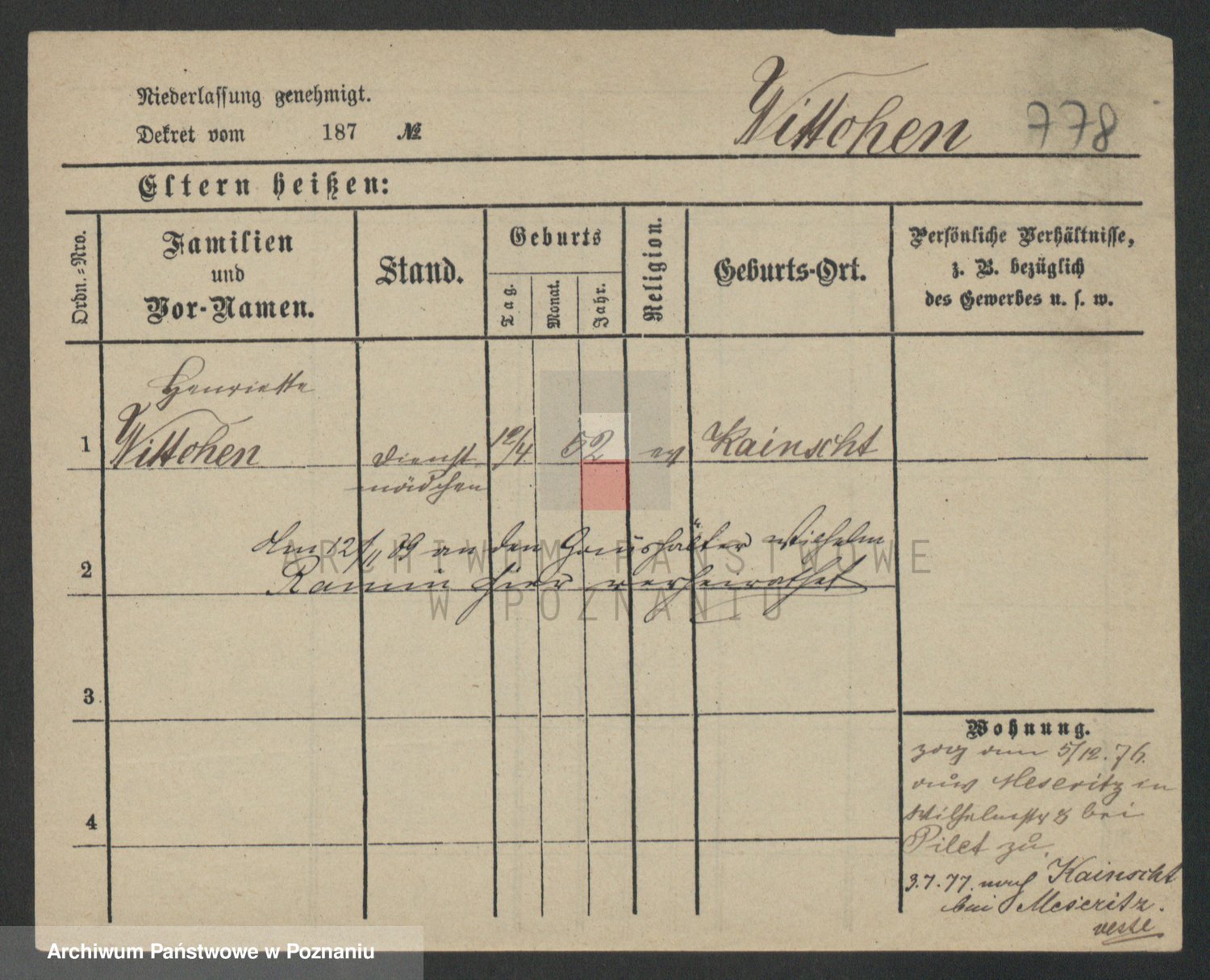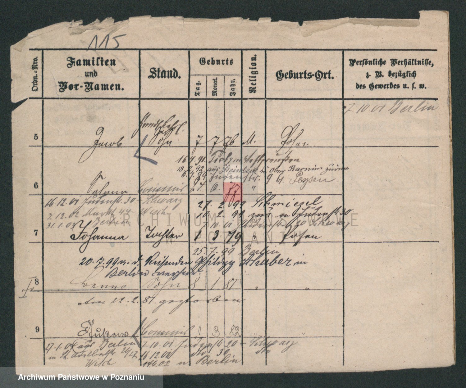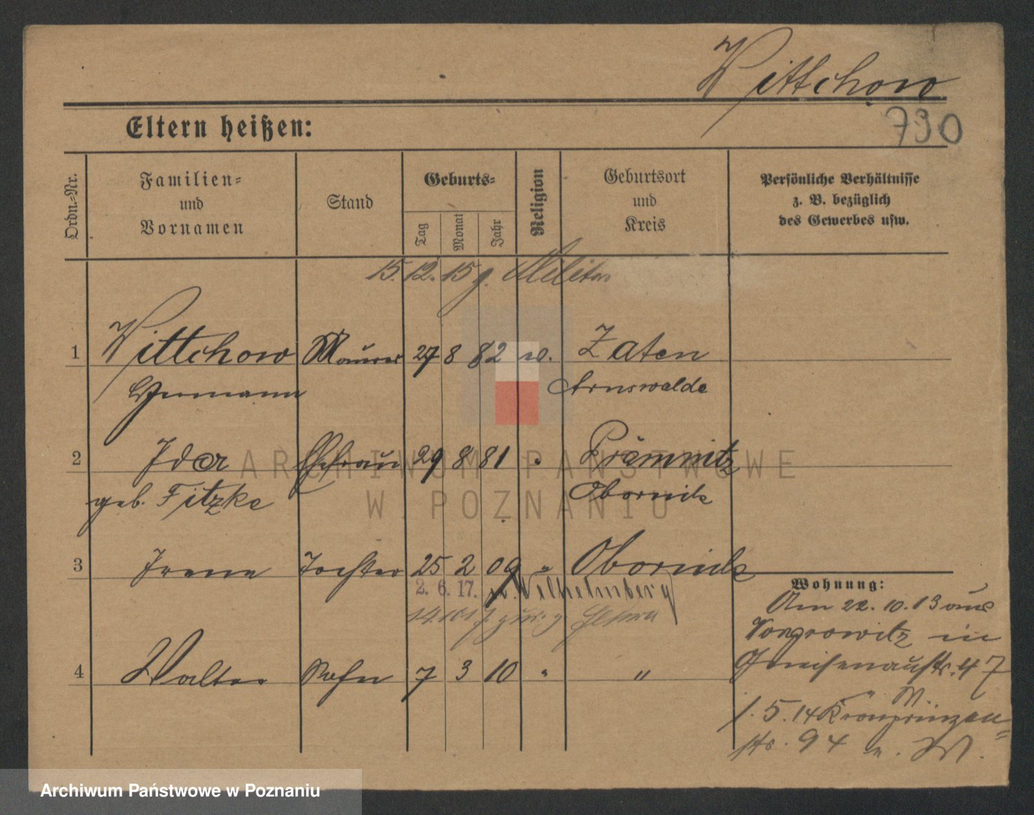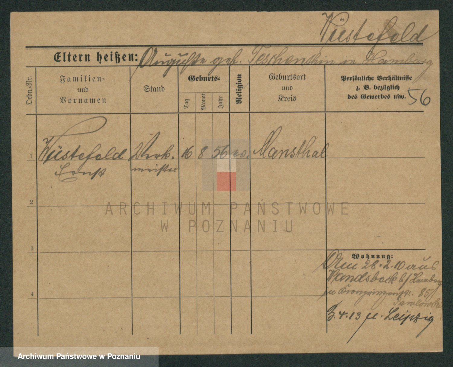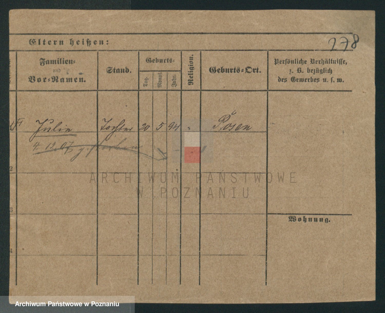 Podgląd karty osobowej dostępny jest po kliknięciu na nazwisko lub ikonkę karty. Można dokonywać powiększenia (ikony na górze) lub przechodzić między kolejnymi skanami (strzałki po bokach).
