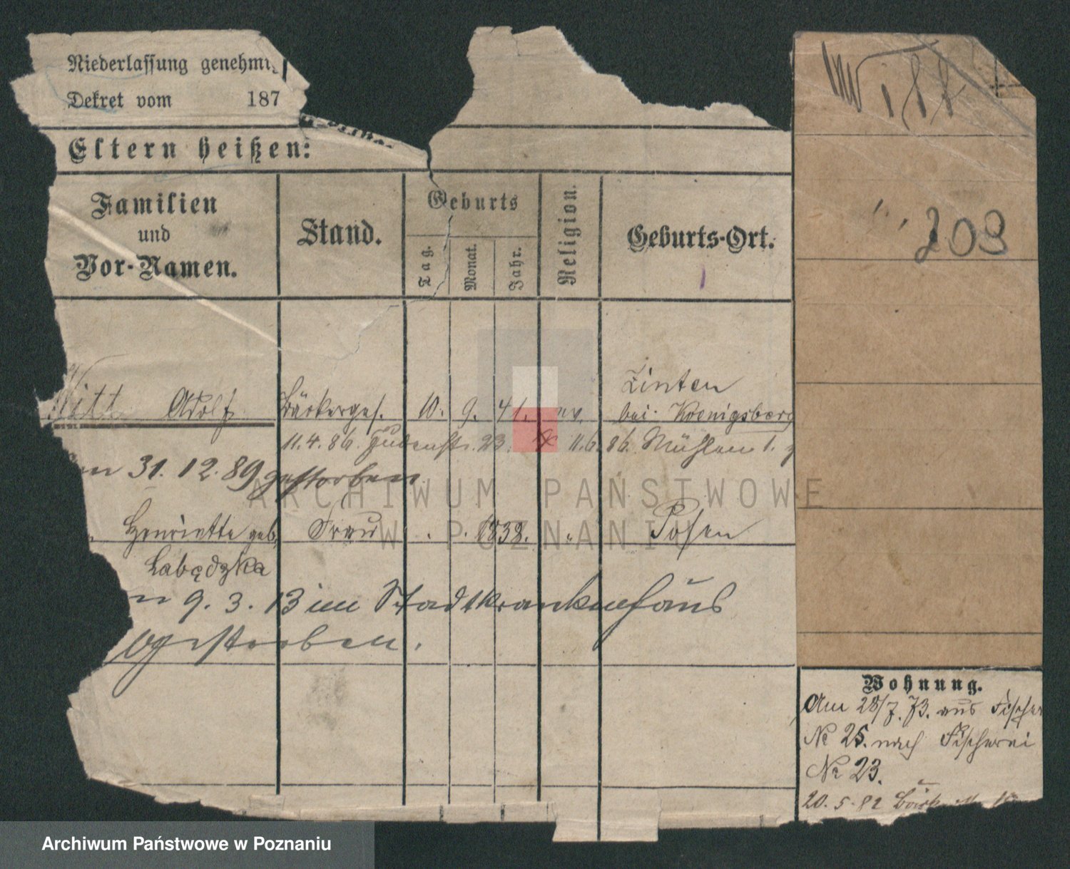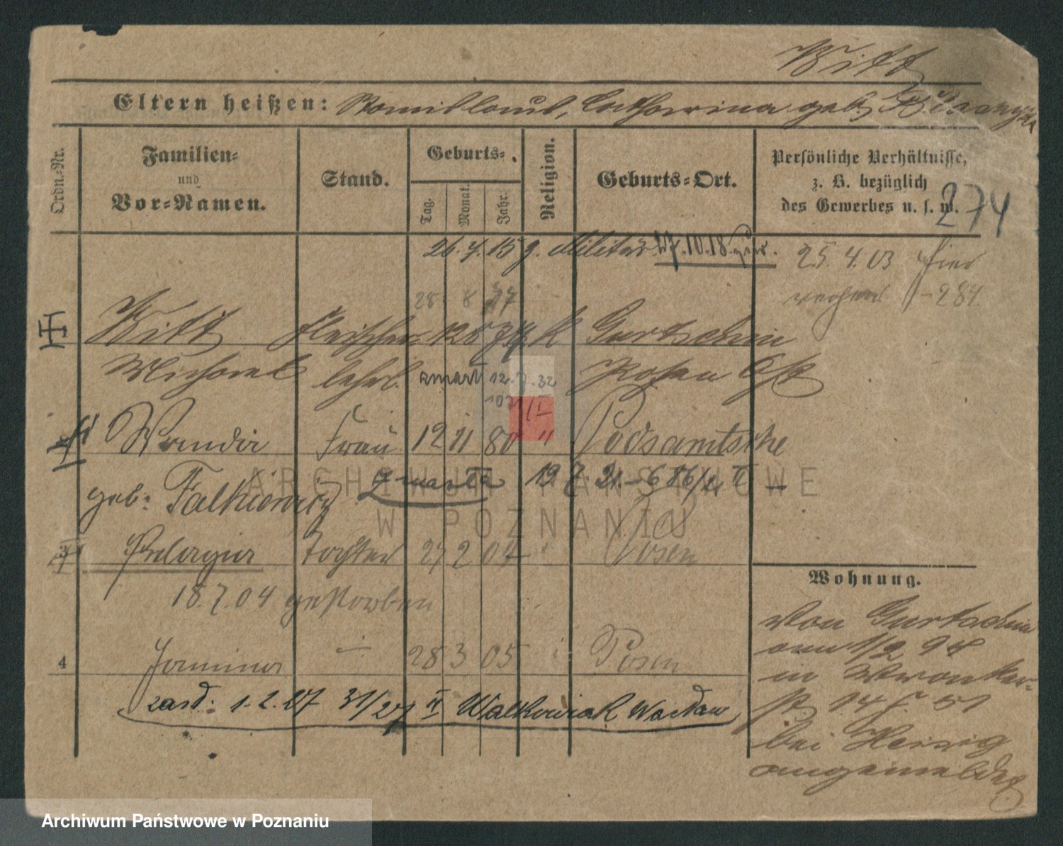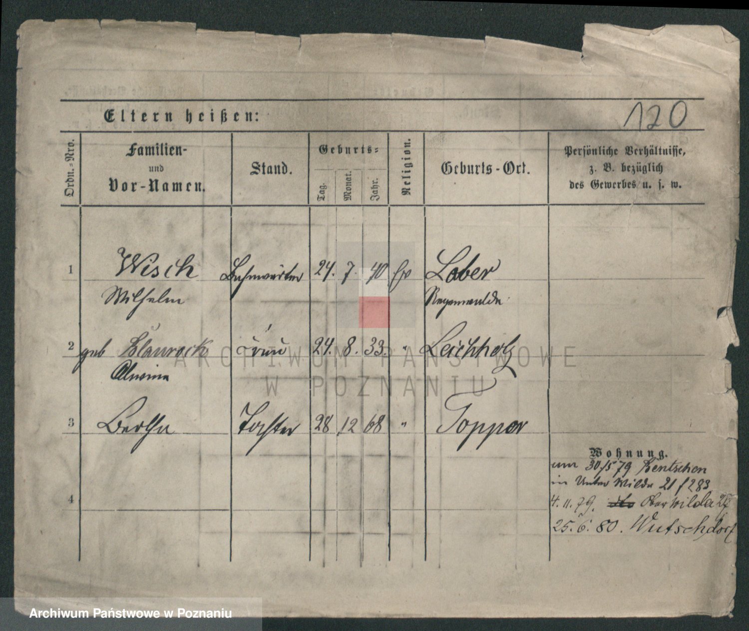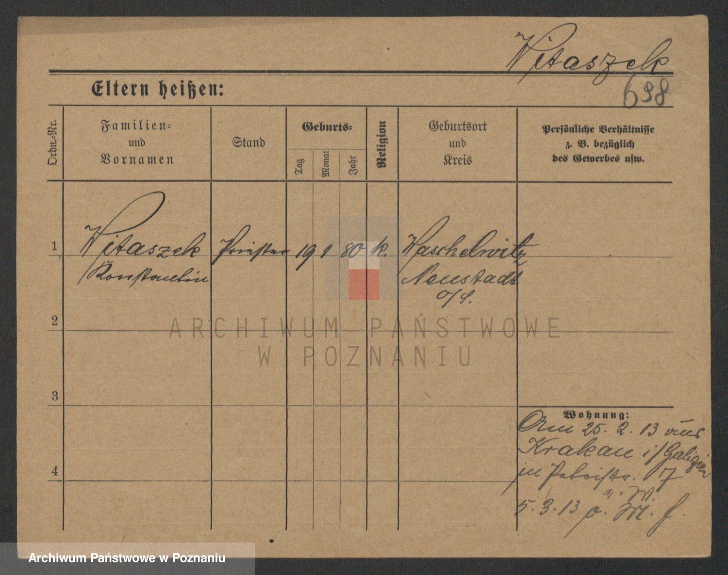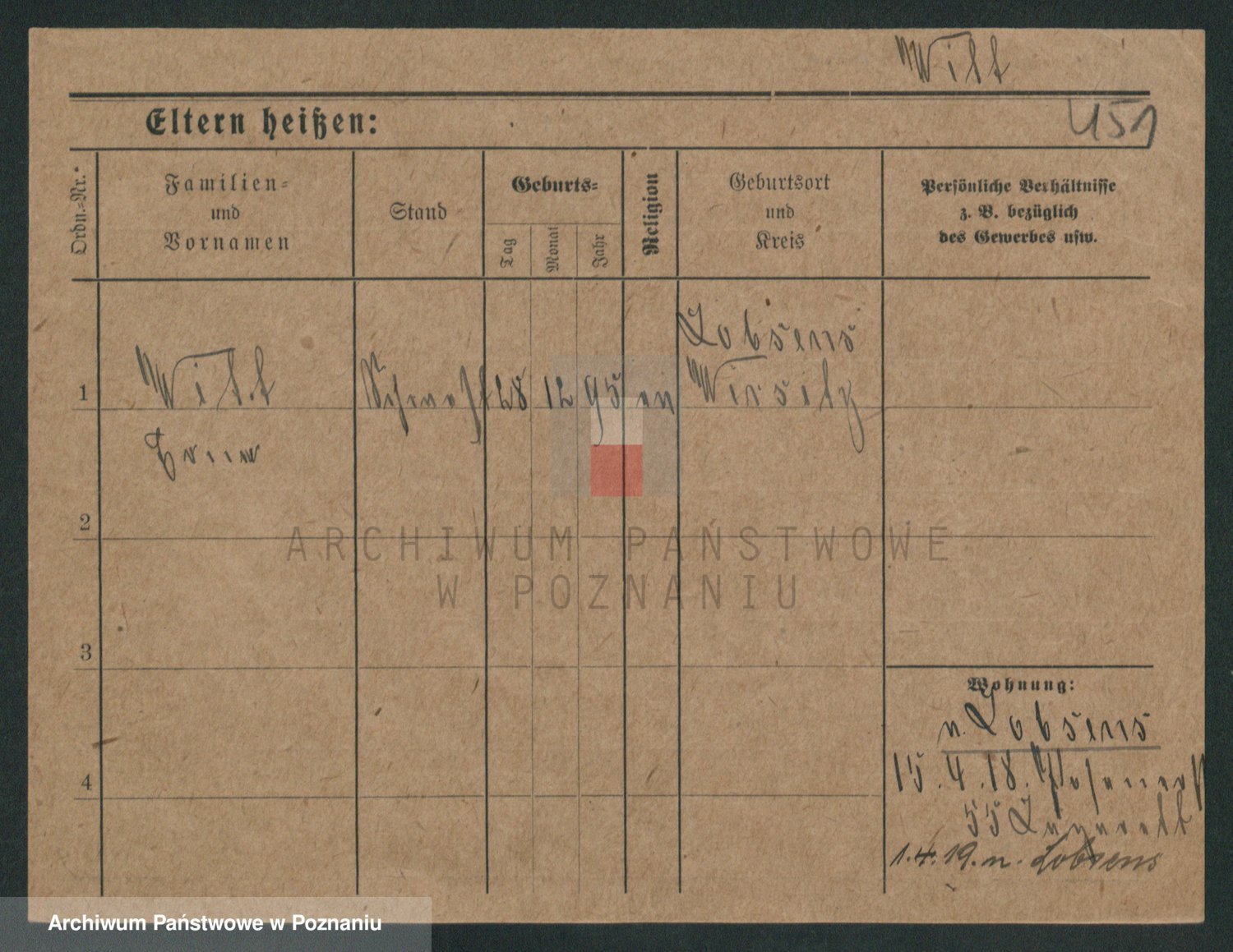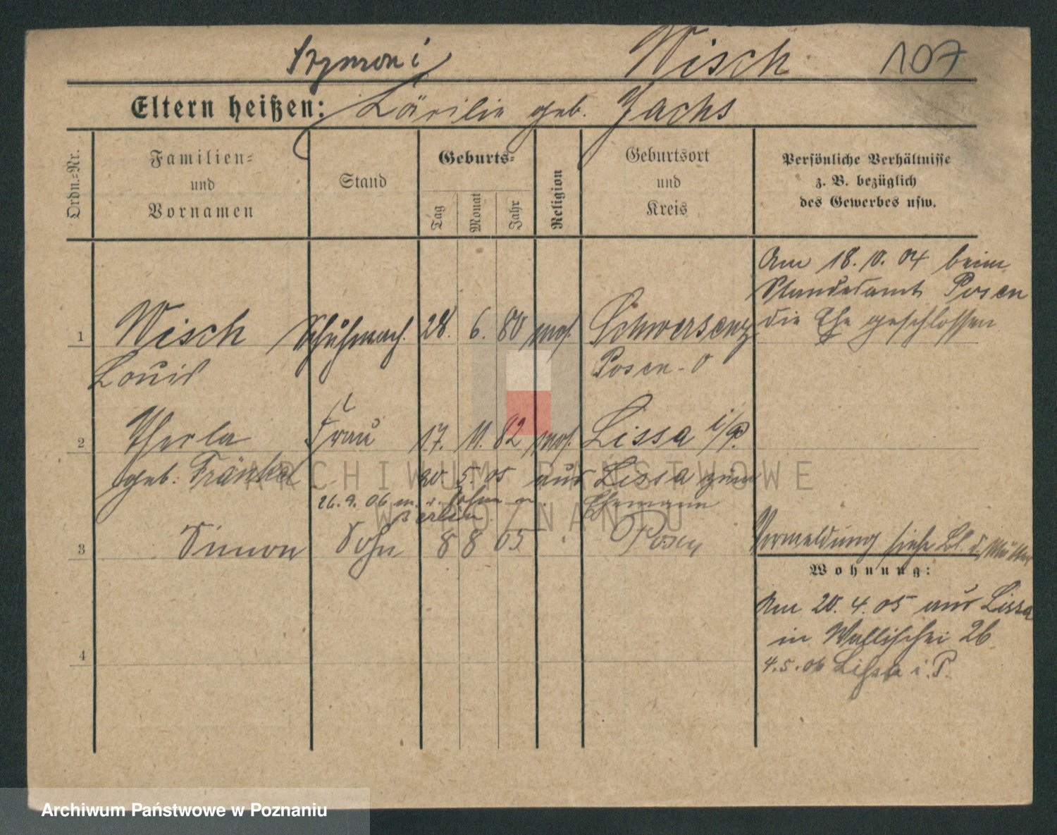 Podgląd karty osobowej dostępny jest po kliknięciu na nazwisko lub ikonkę karty. Można dokonywać powiększenia (ikony na górze) lub przechodzić między kolejnymi skanami (strzałki po bokach).