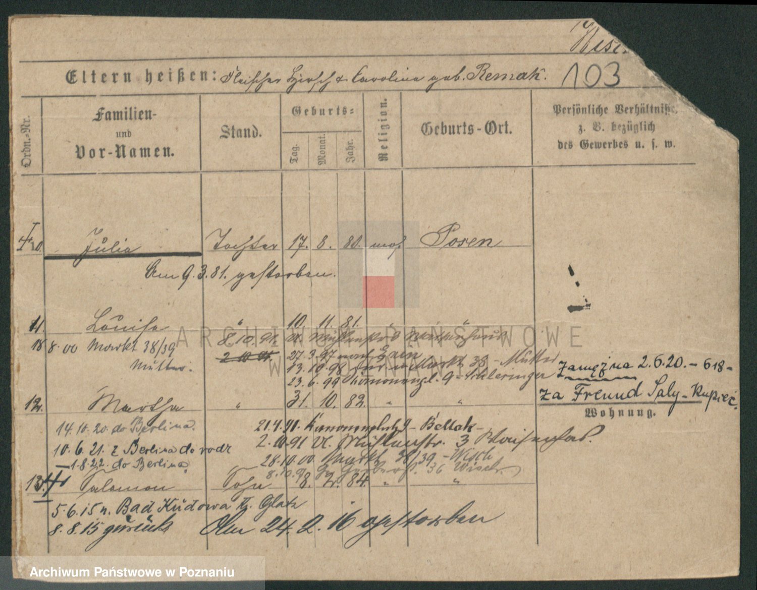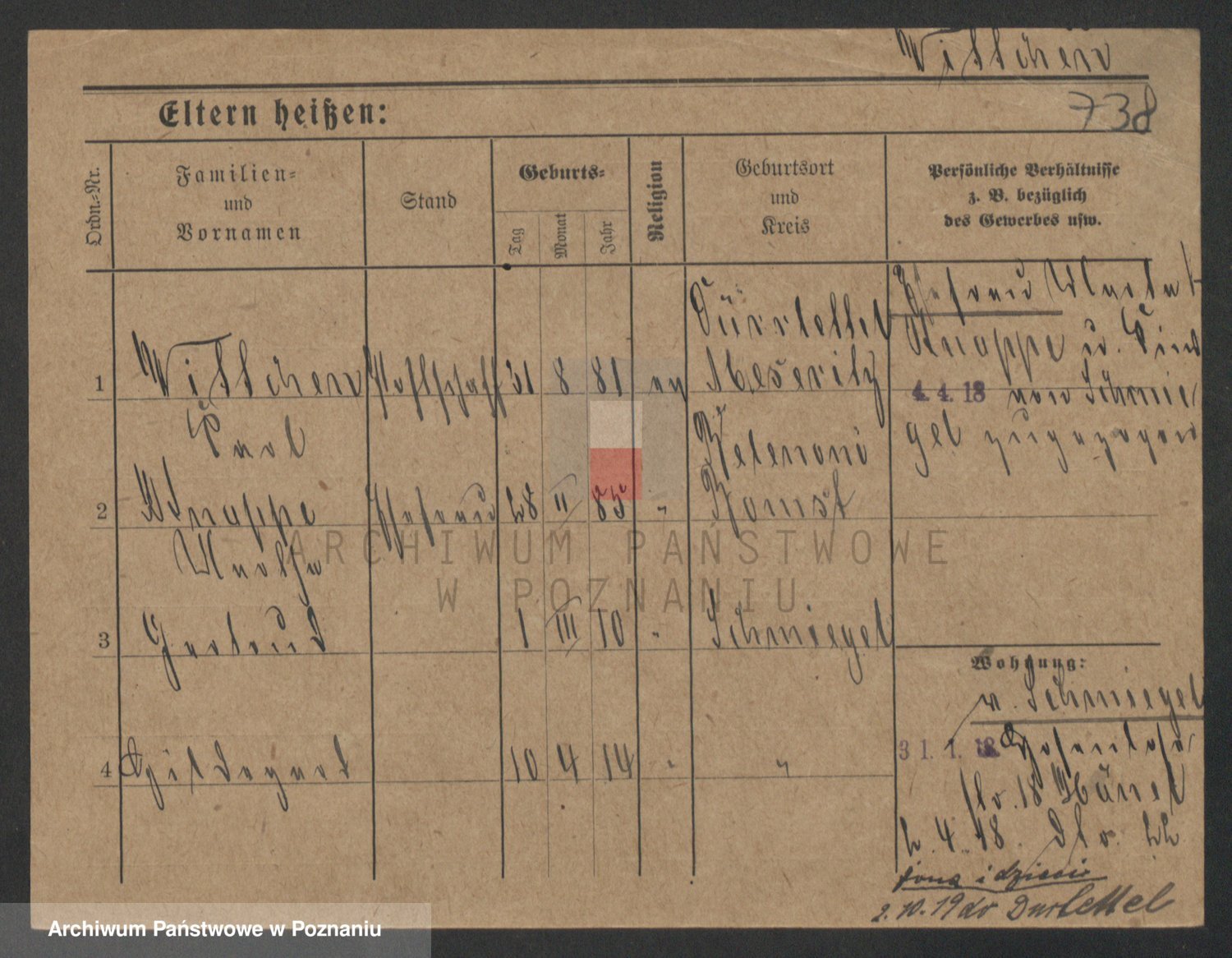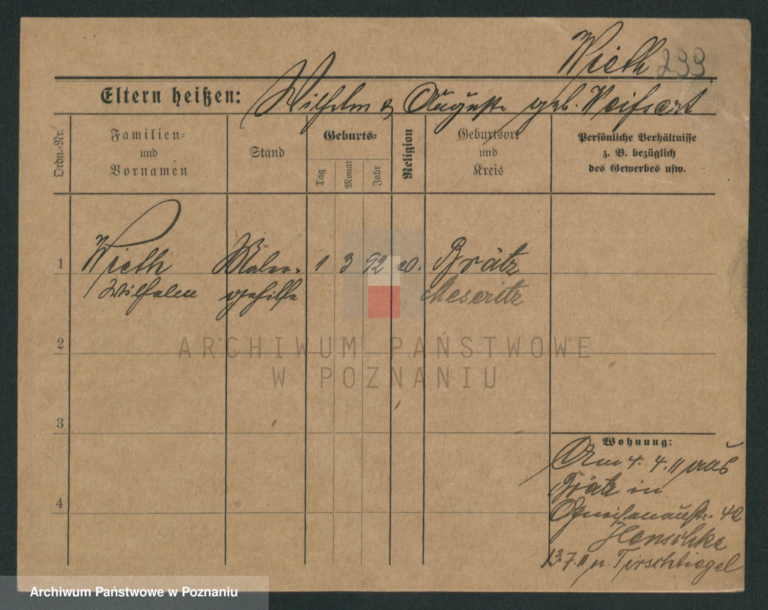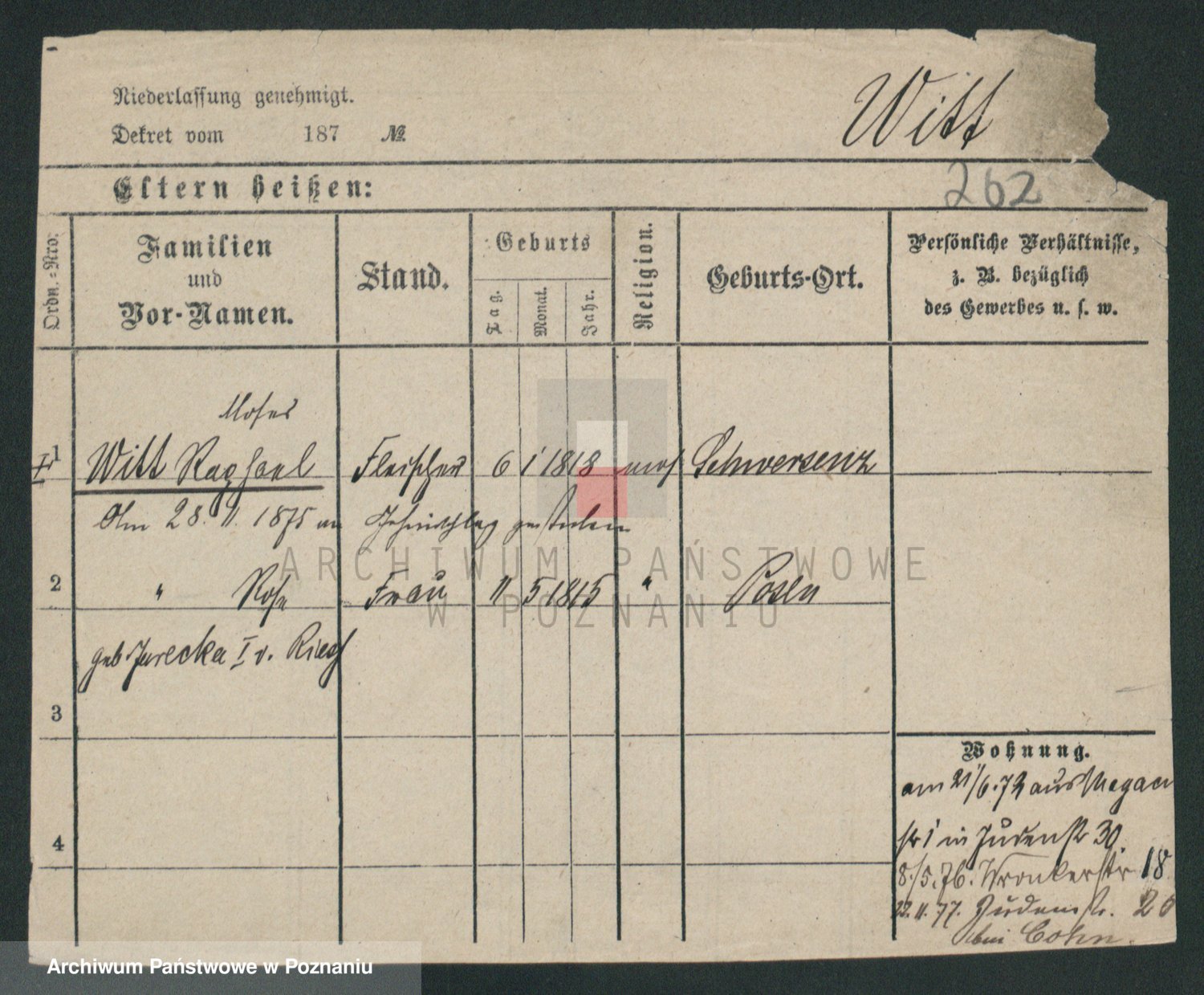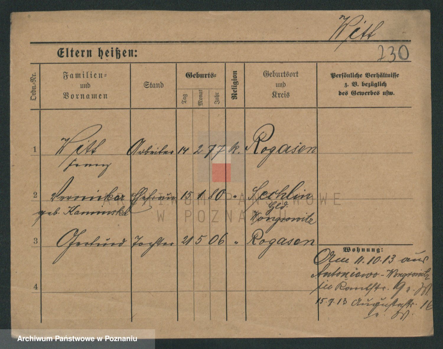 Podgląd karty osobowej dostępny jest po kliknięciu na nazwisko lub ikonkę karty. Można dokonywać powiększenia (ikony na górze) lub przechodzić między kolejnymi skanami (strzałki po bokach).